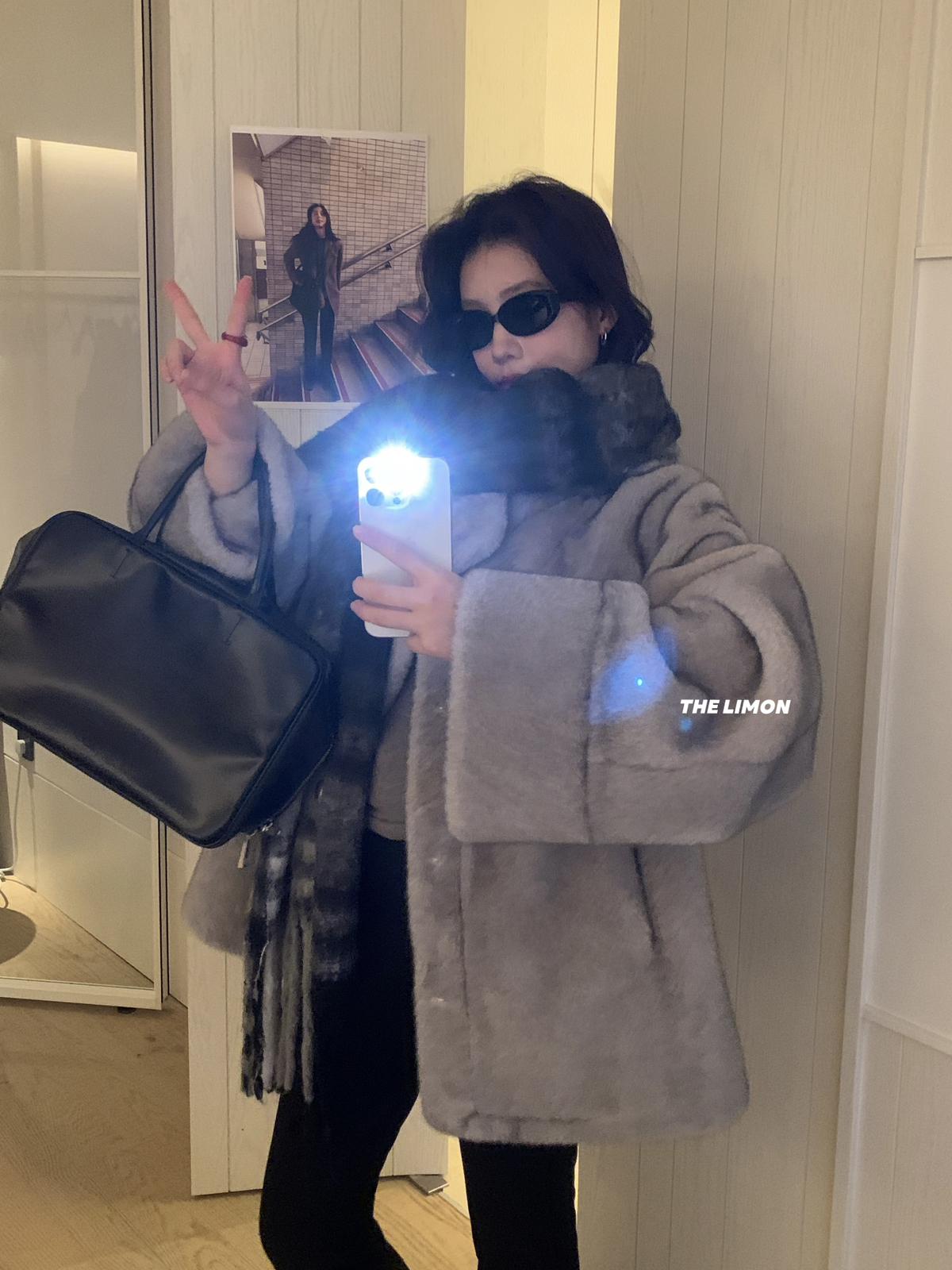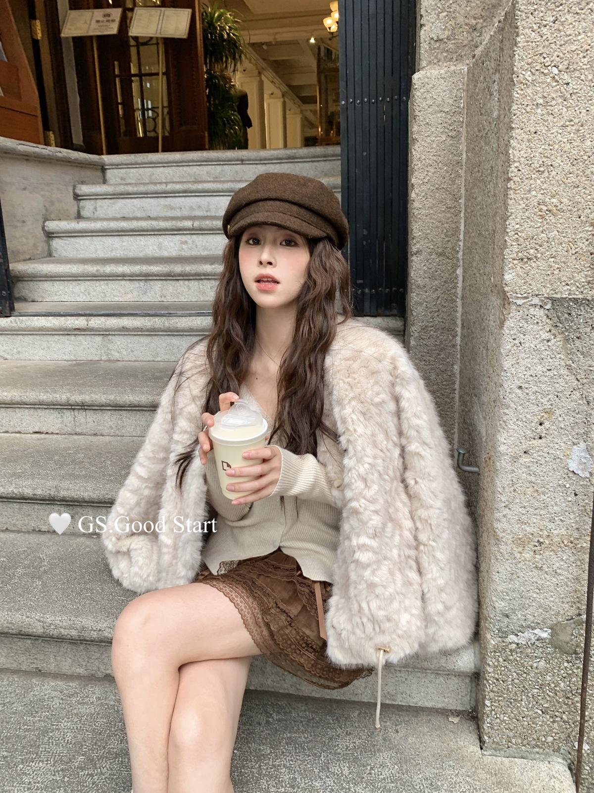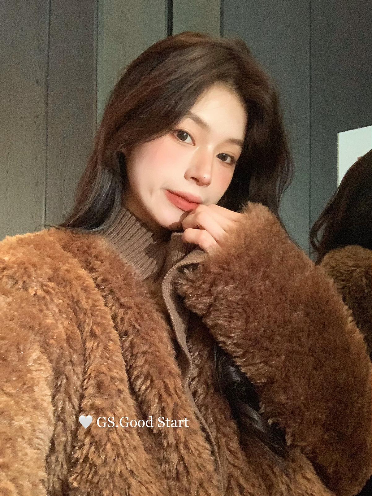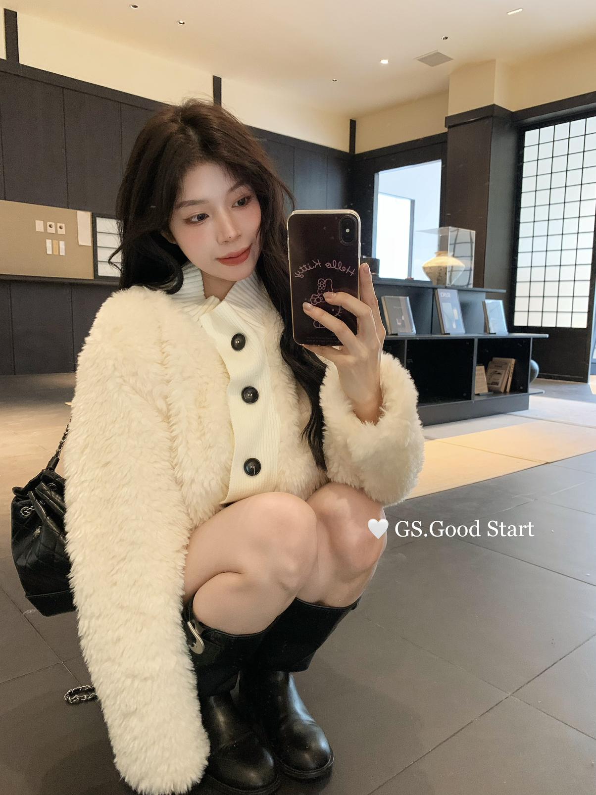 【C7949】老錢慵懶風百搭洋氣環保毛短外套