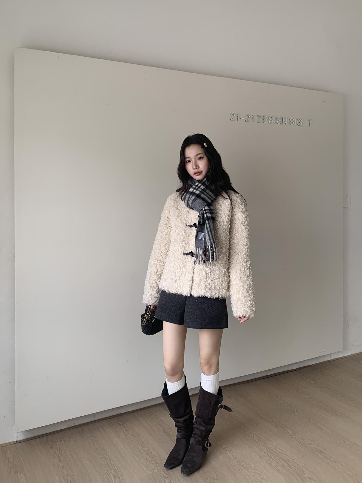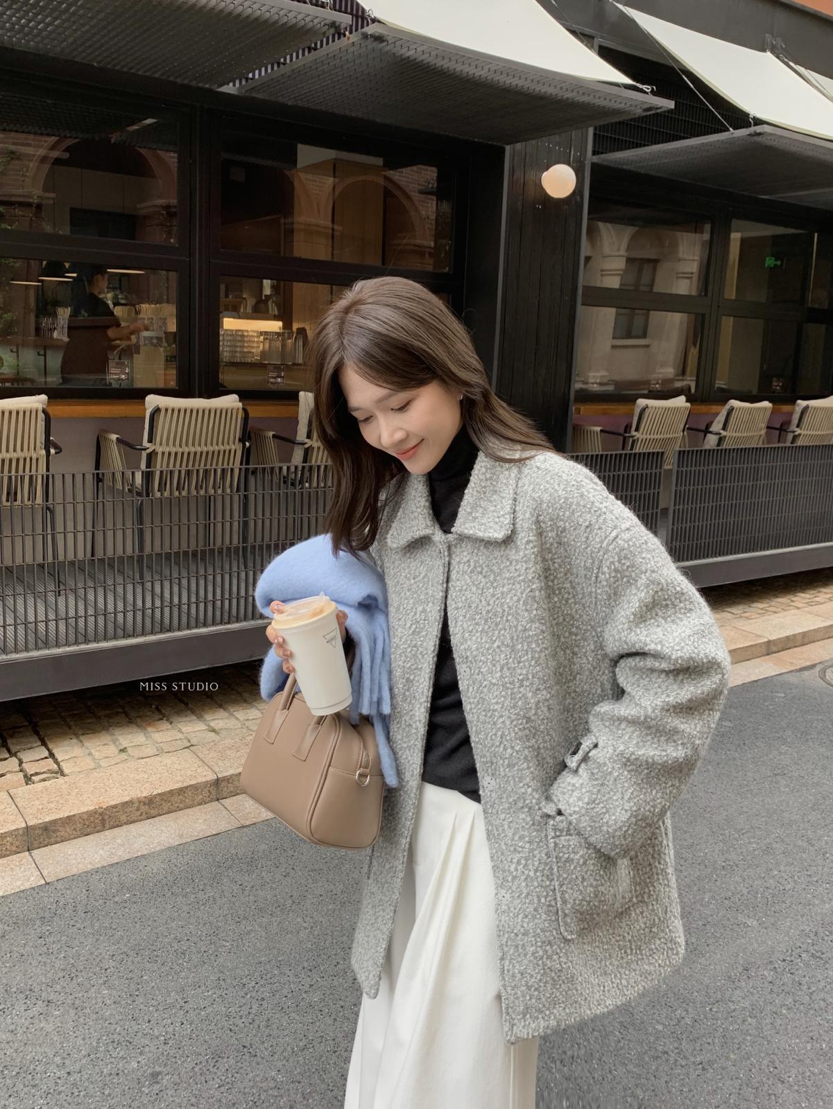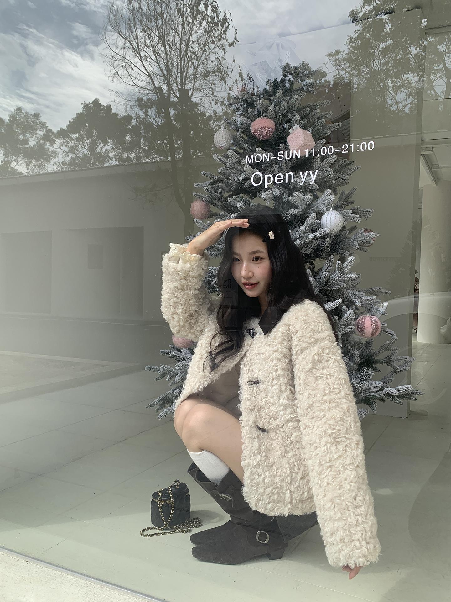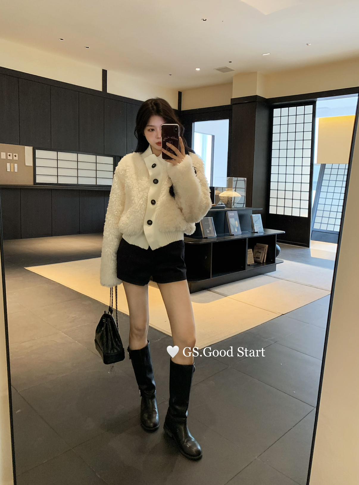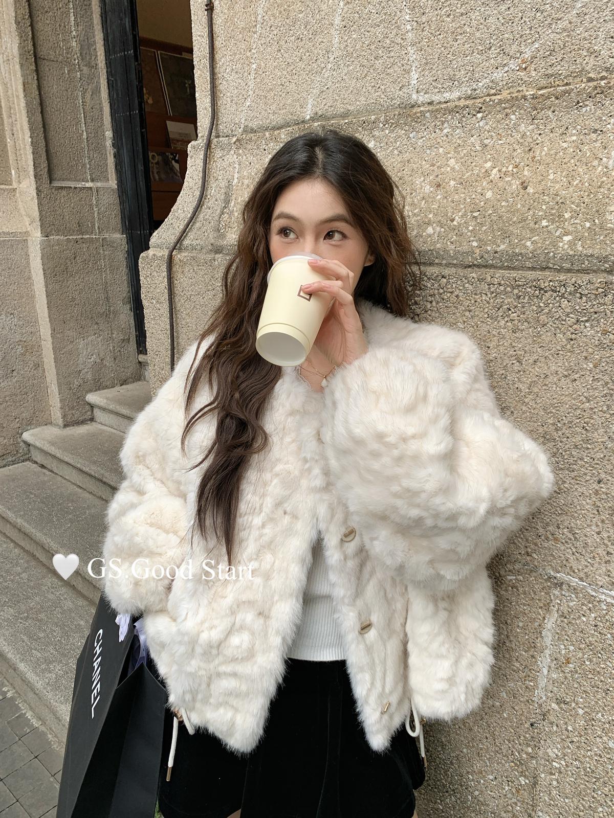 【C7949】老錢慵懶風百搭洋氣環保毛短外套