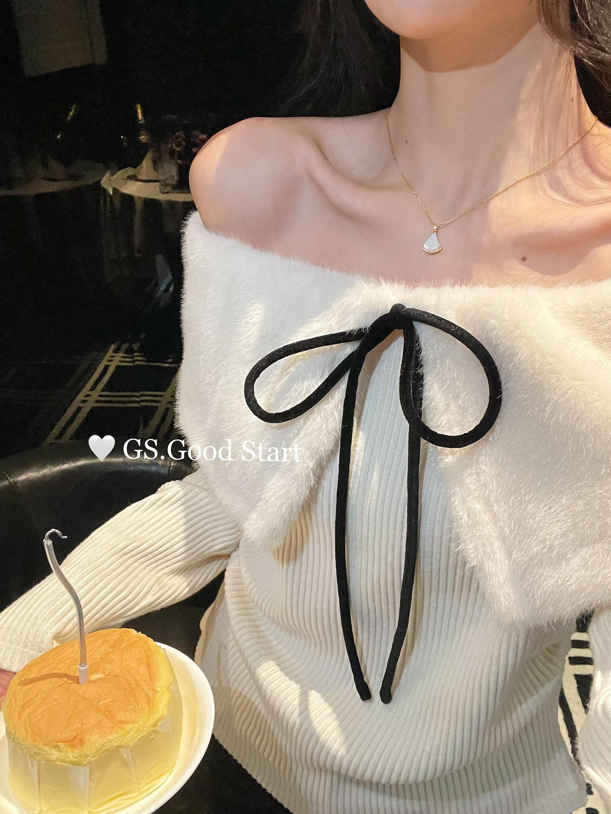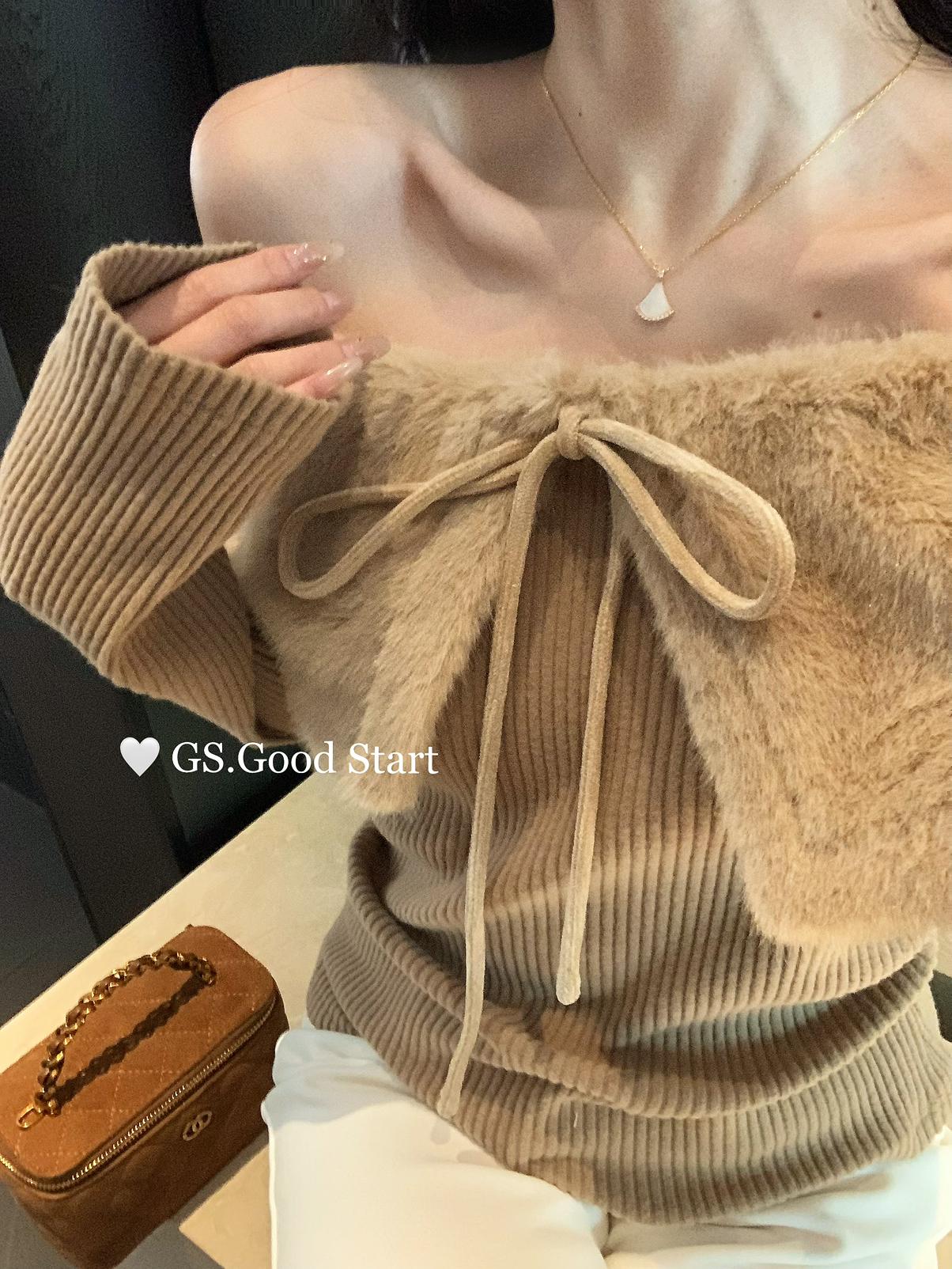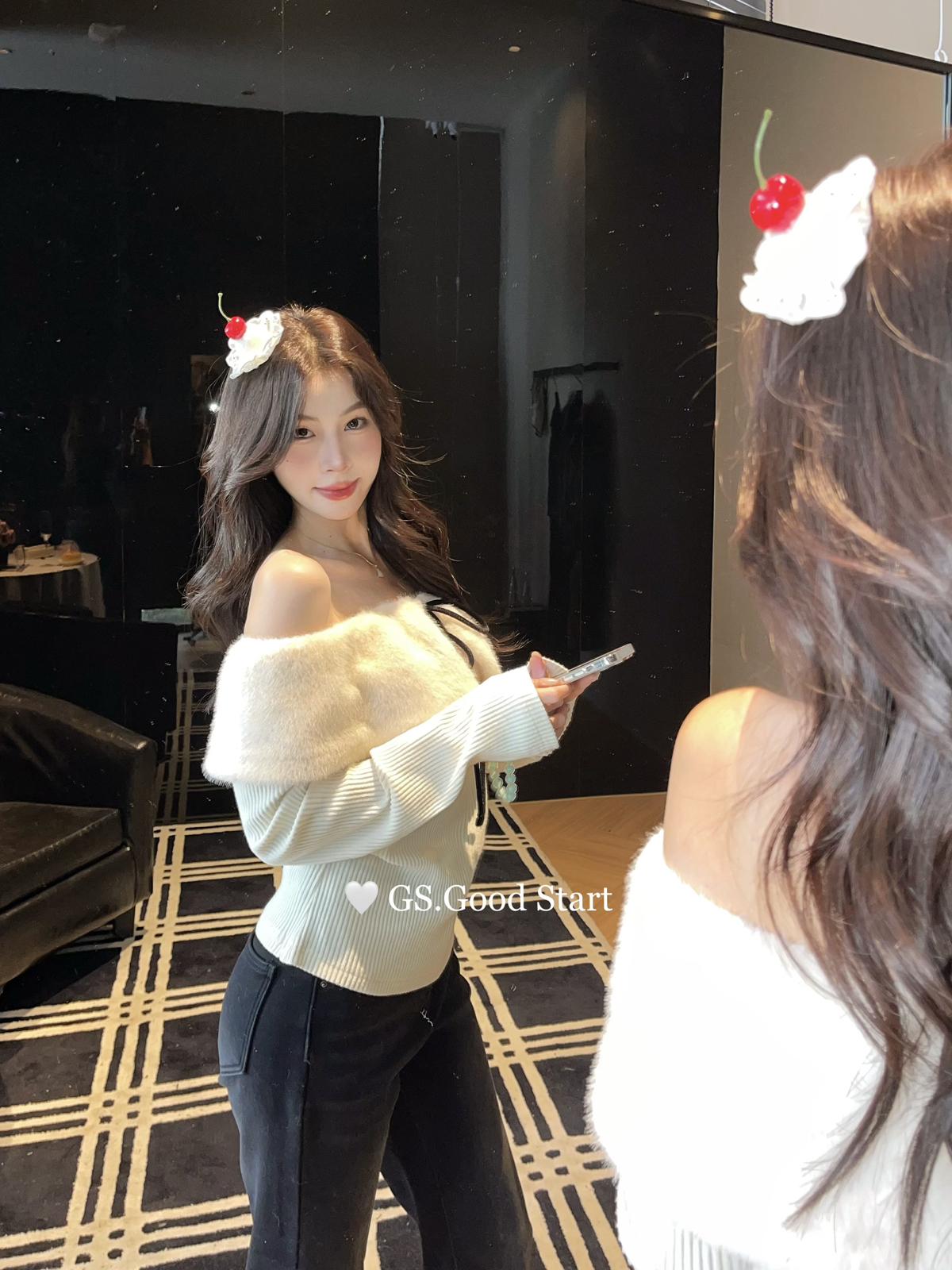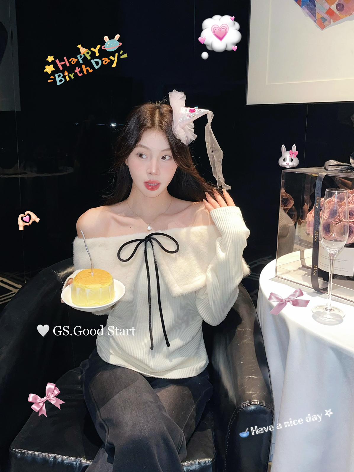 【C8011】按頭安利!香香軟軟嘟*少女感十足~秋冬季純欲氛圍感毛絨一字肩小衫