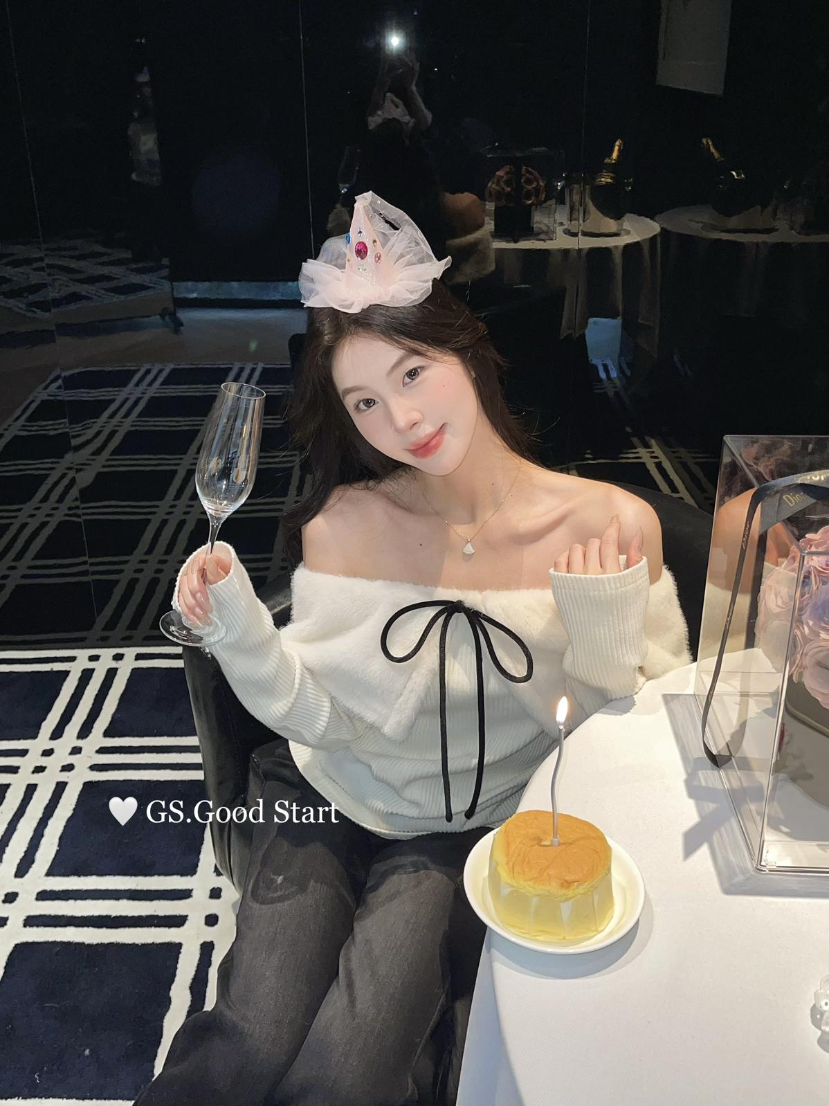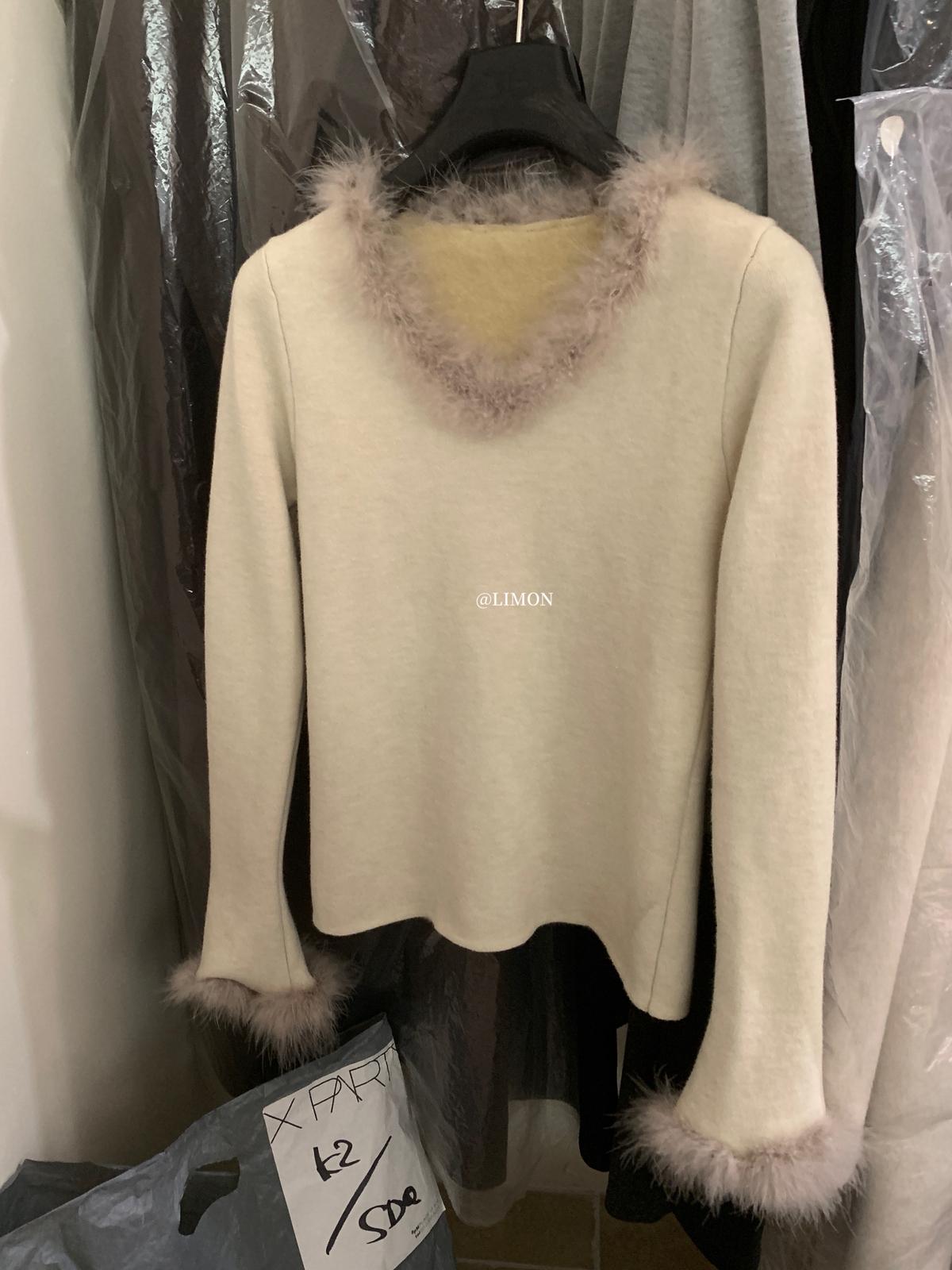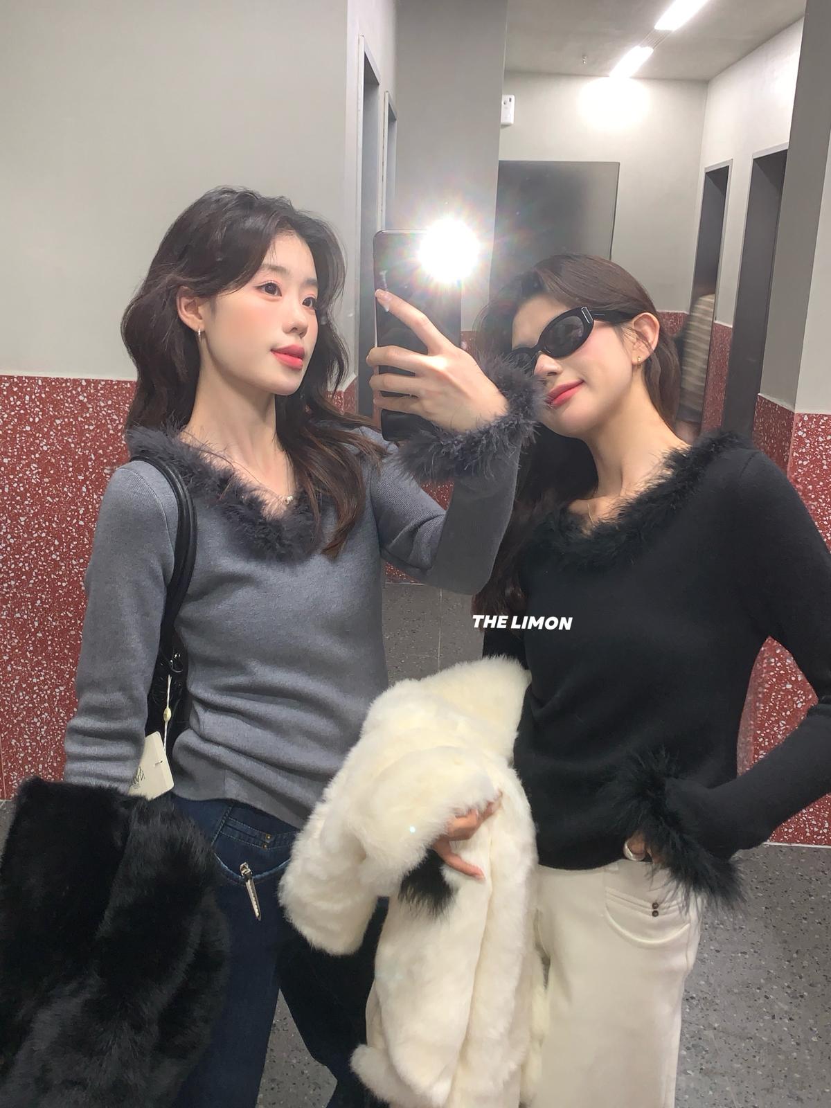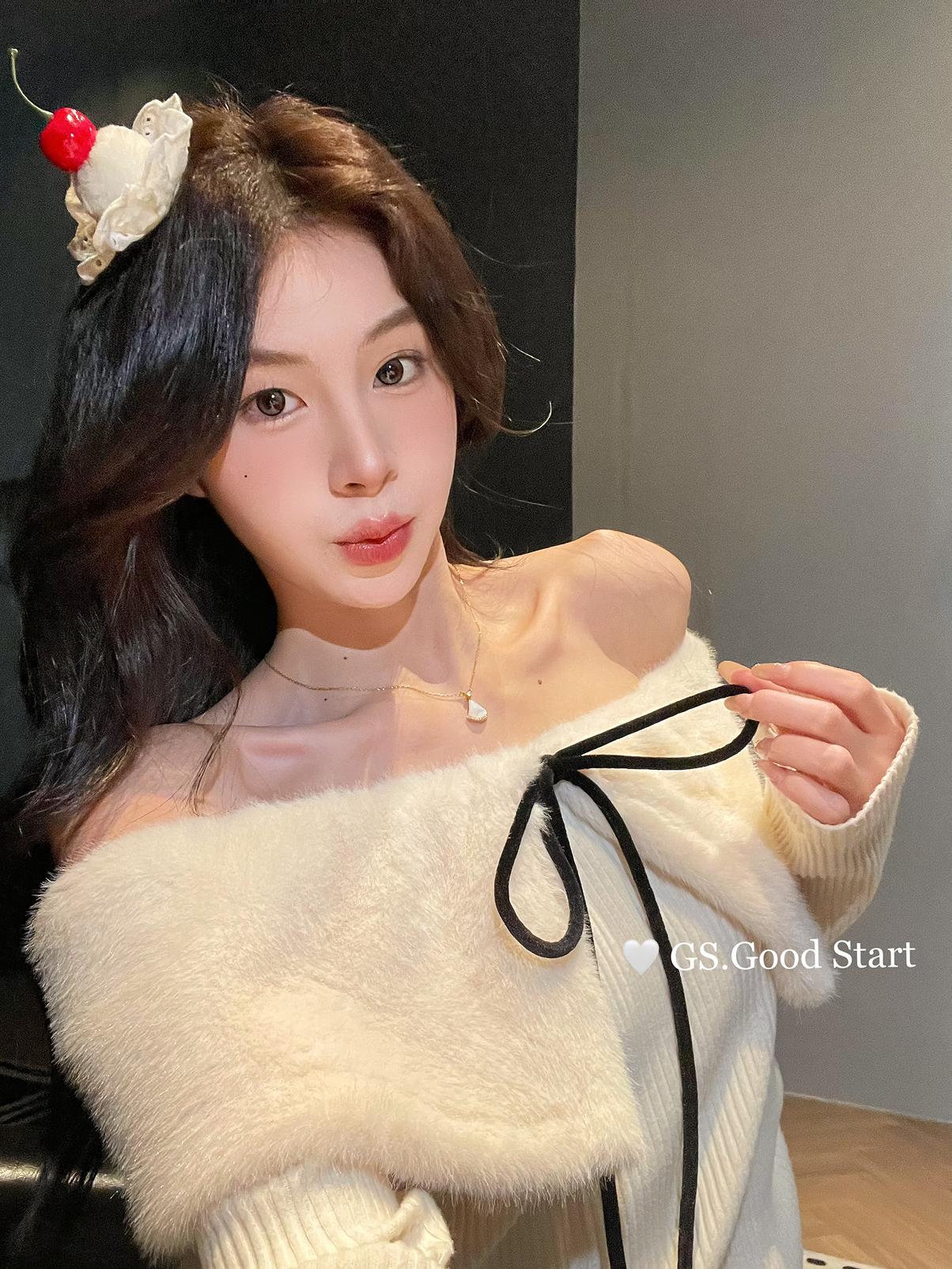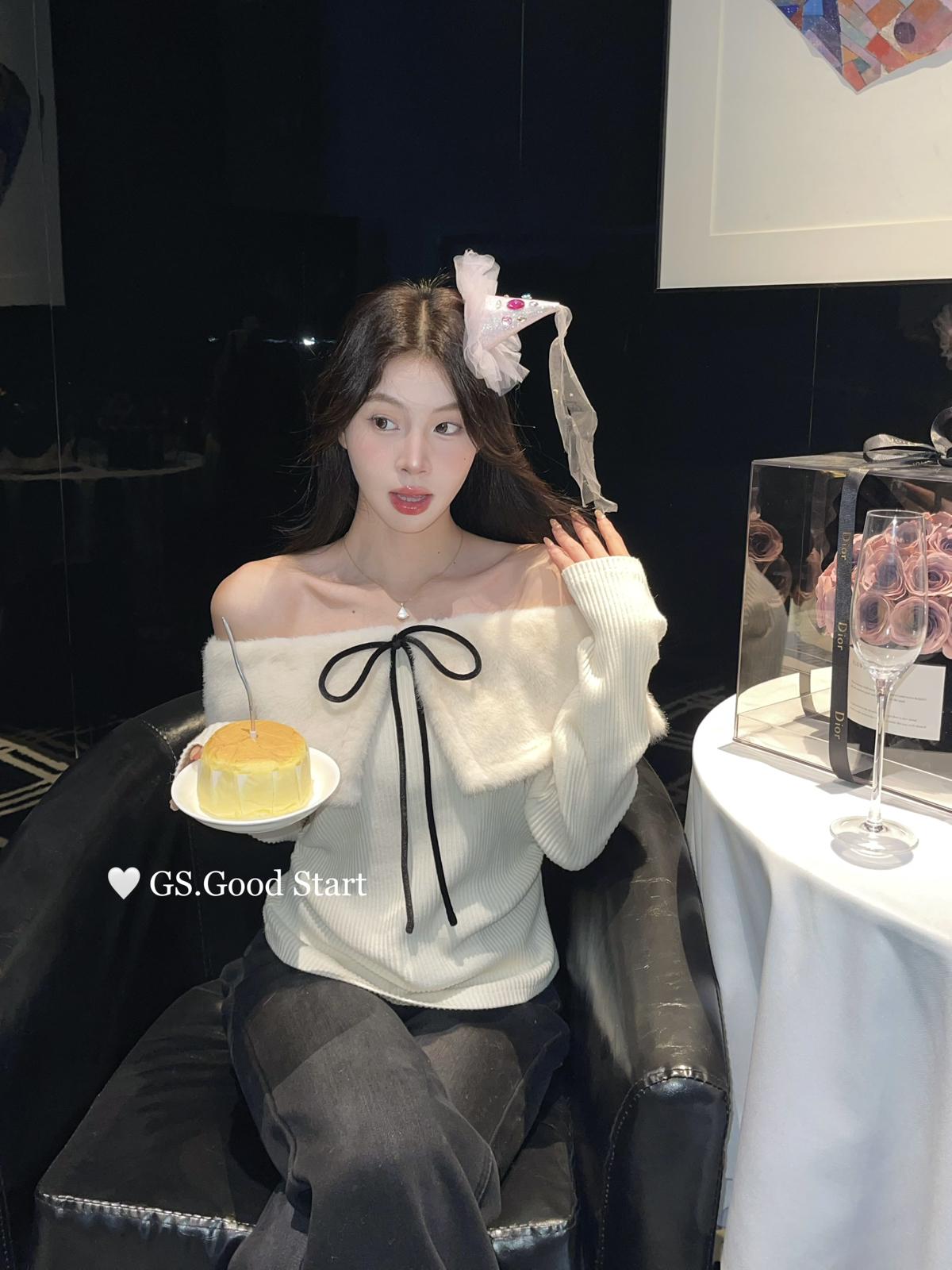 【C8011】按頭安利!香香軟軟嘟*少女感十足~秋冬季純欲氛圍感毛絨一字肩小衫