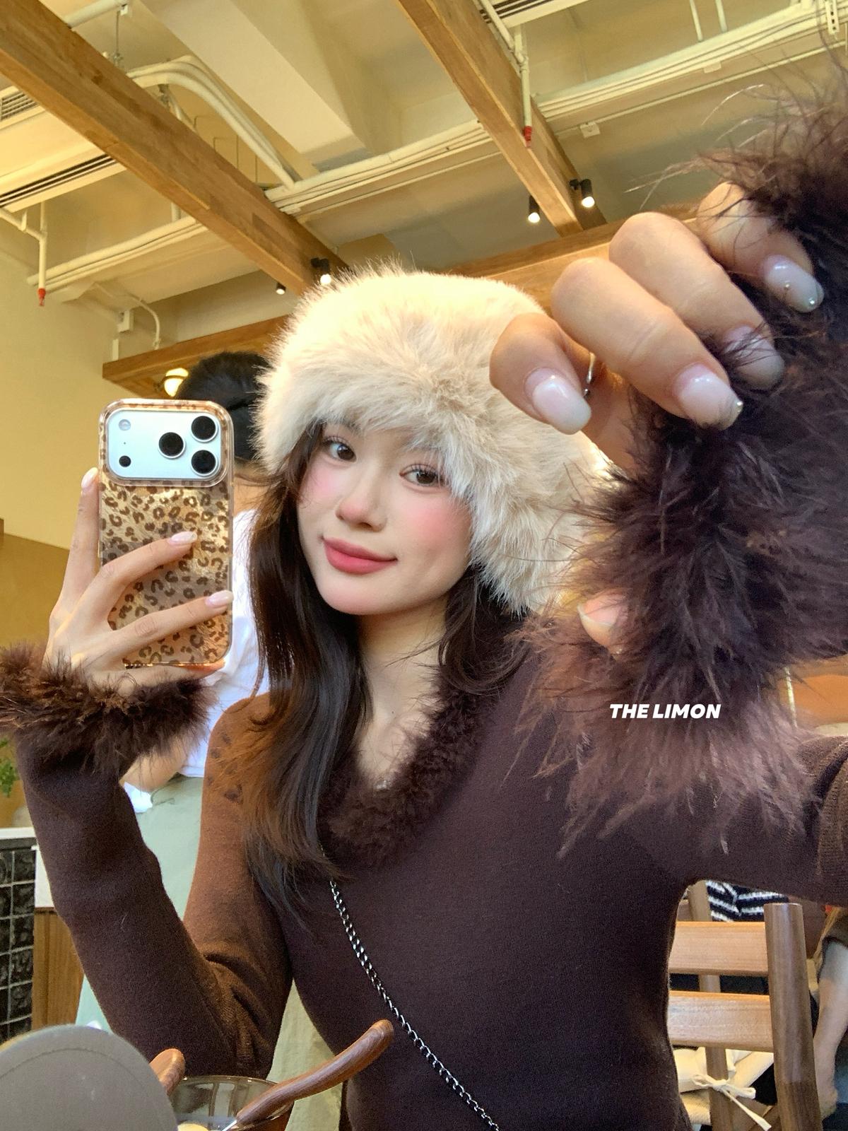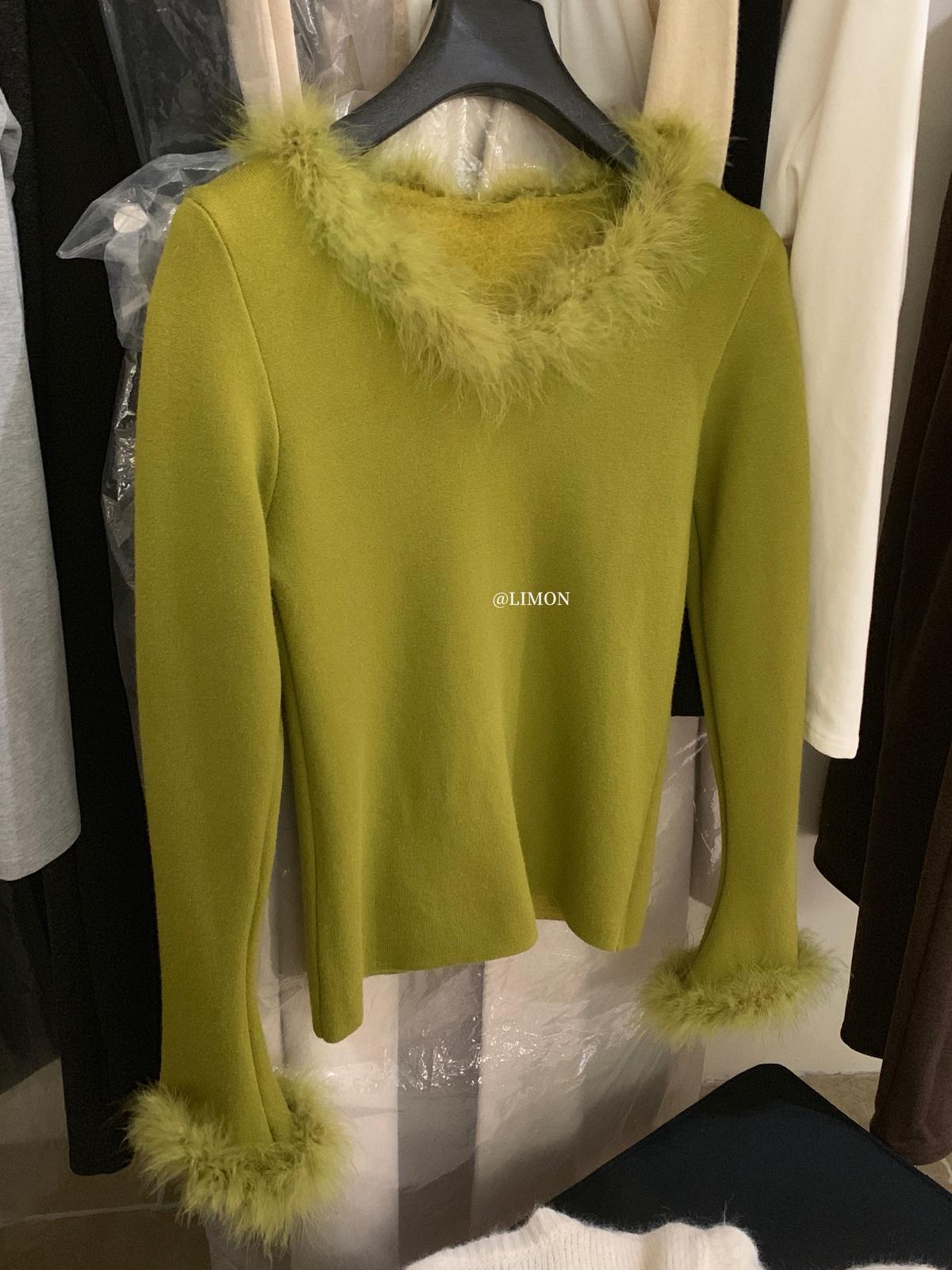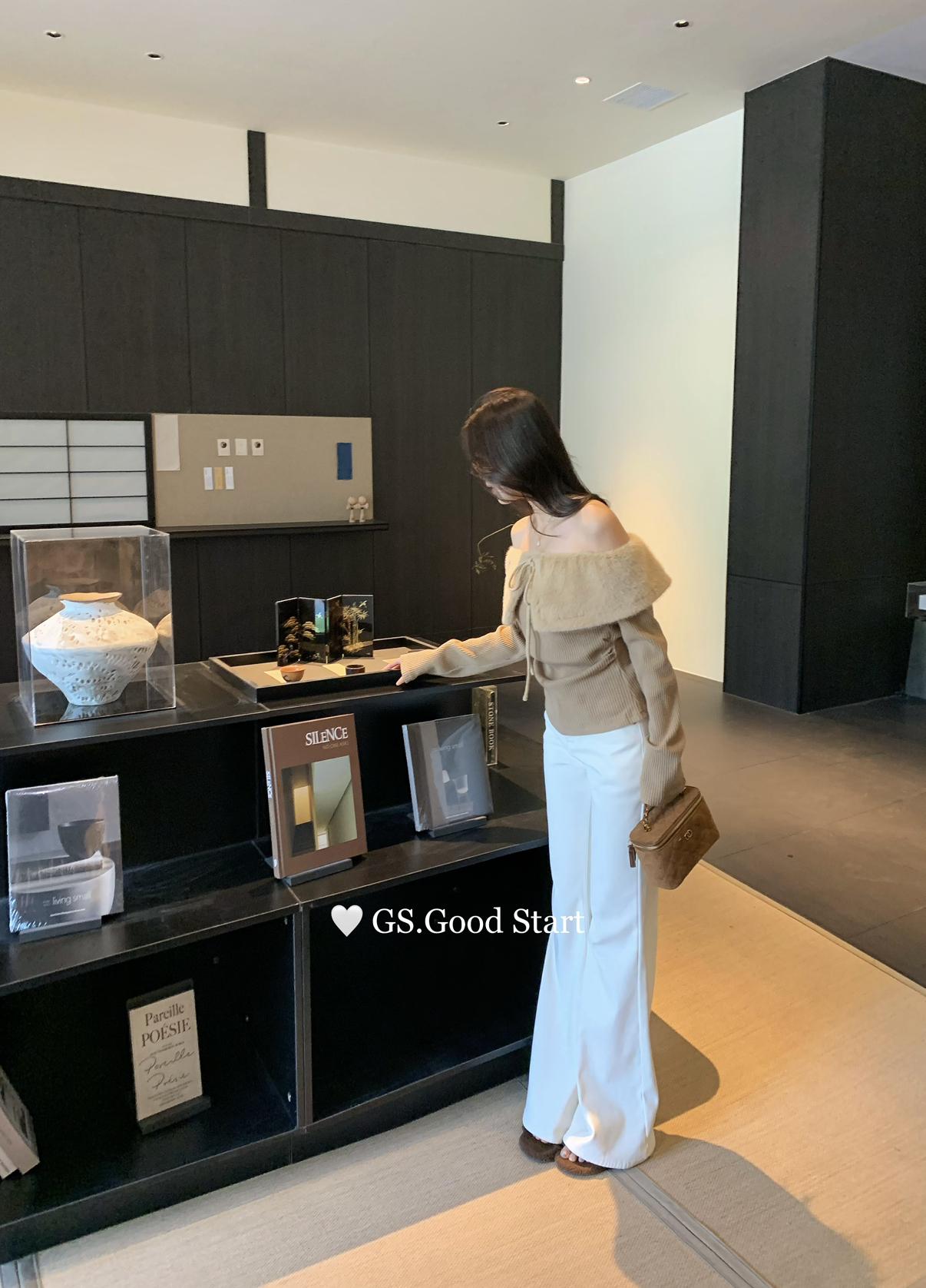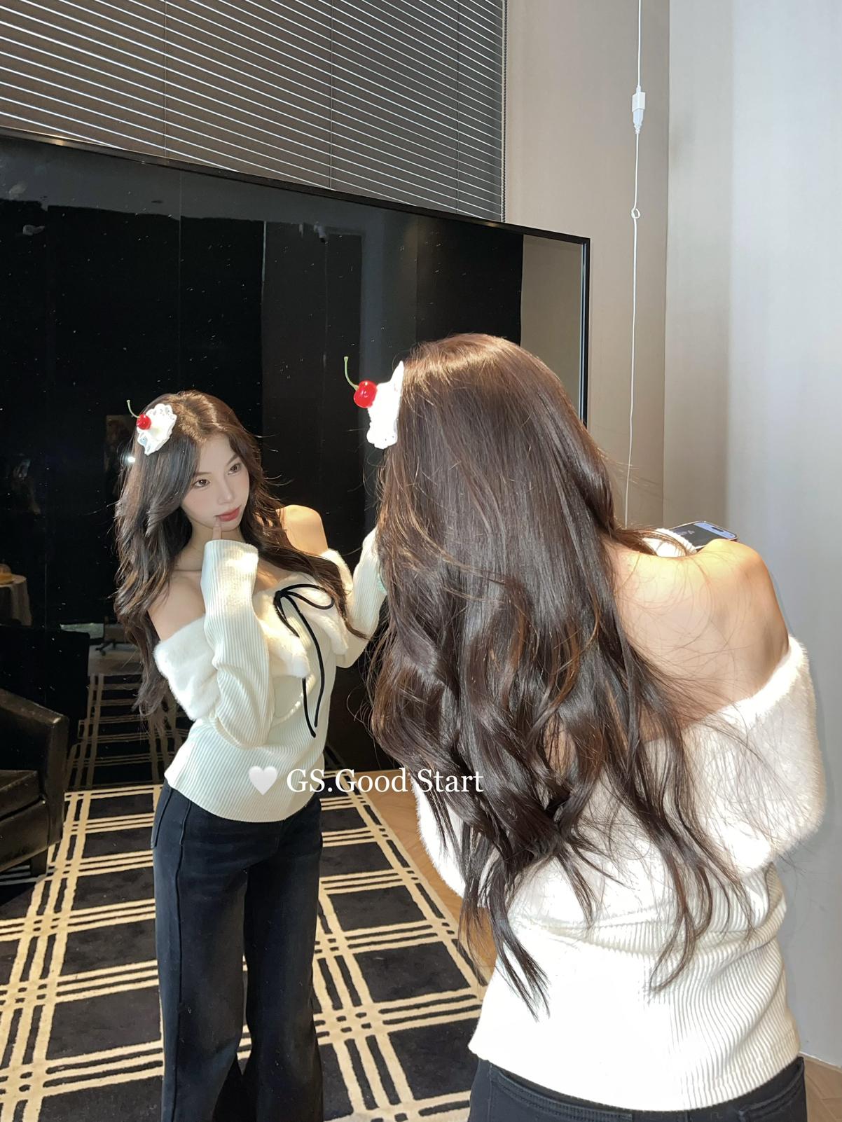 【C8011】按頭安利!香香軟軟嘟*少女感十足~秋冬季純欲氛圍感毛絨一字肩小衫