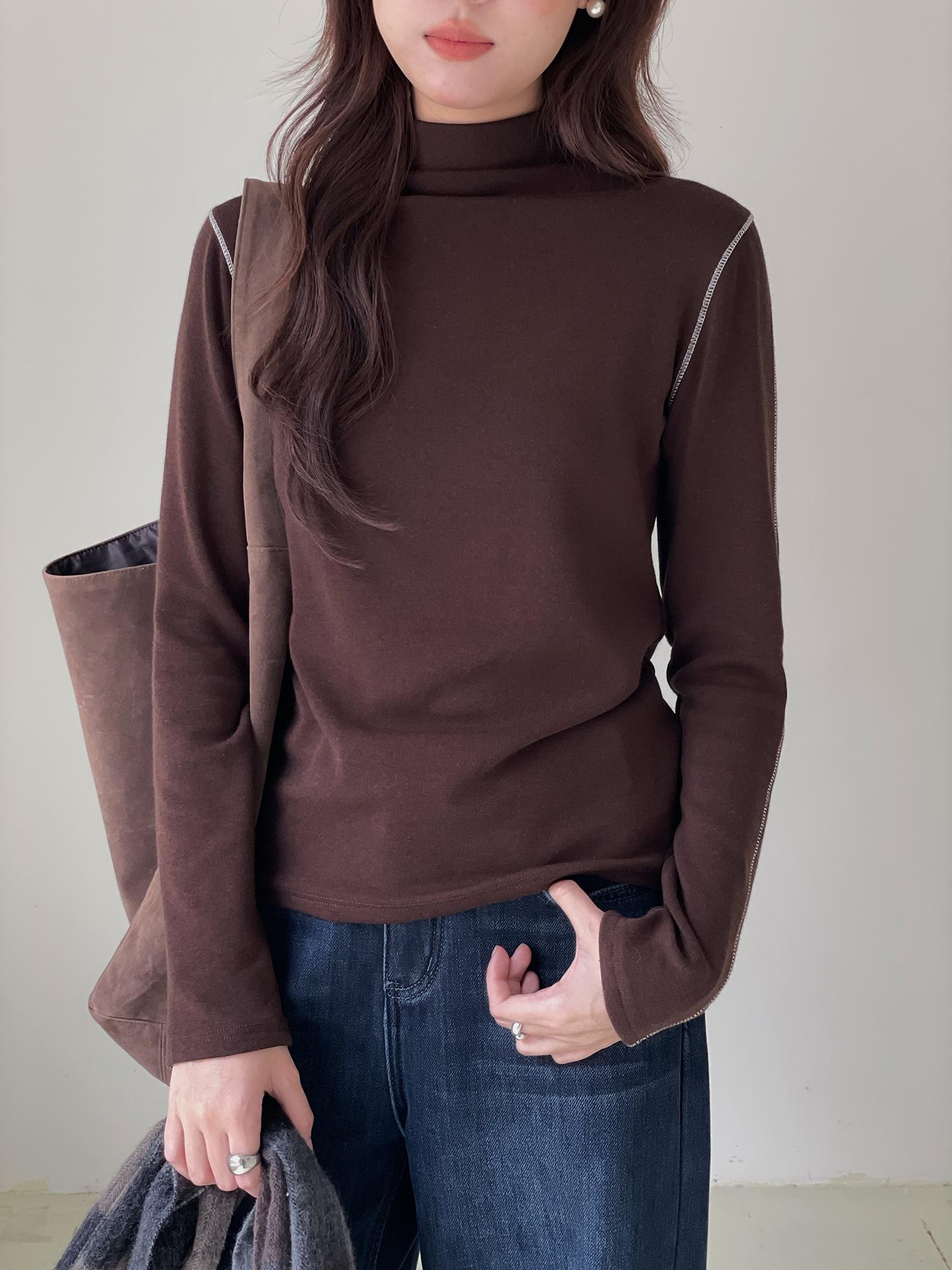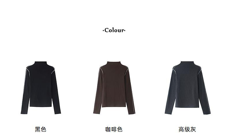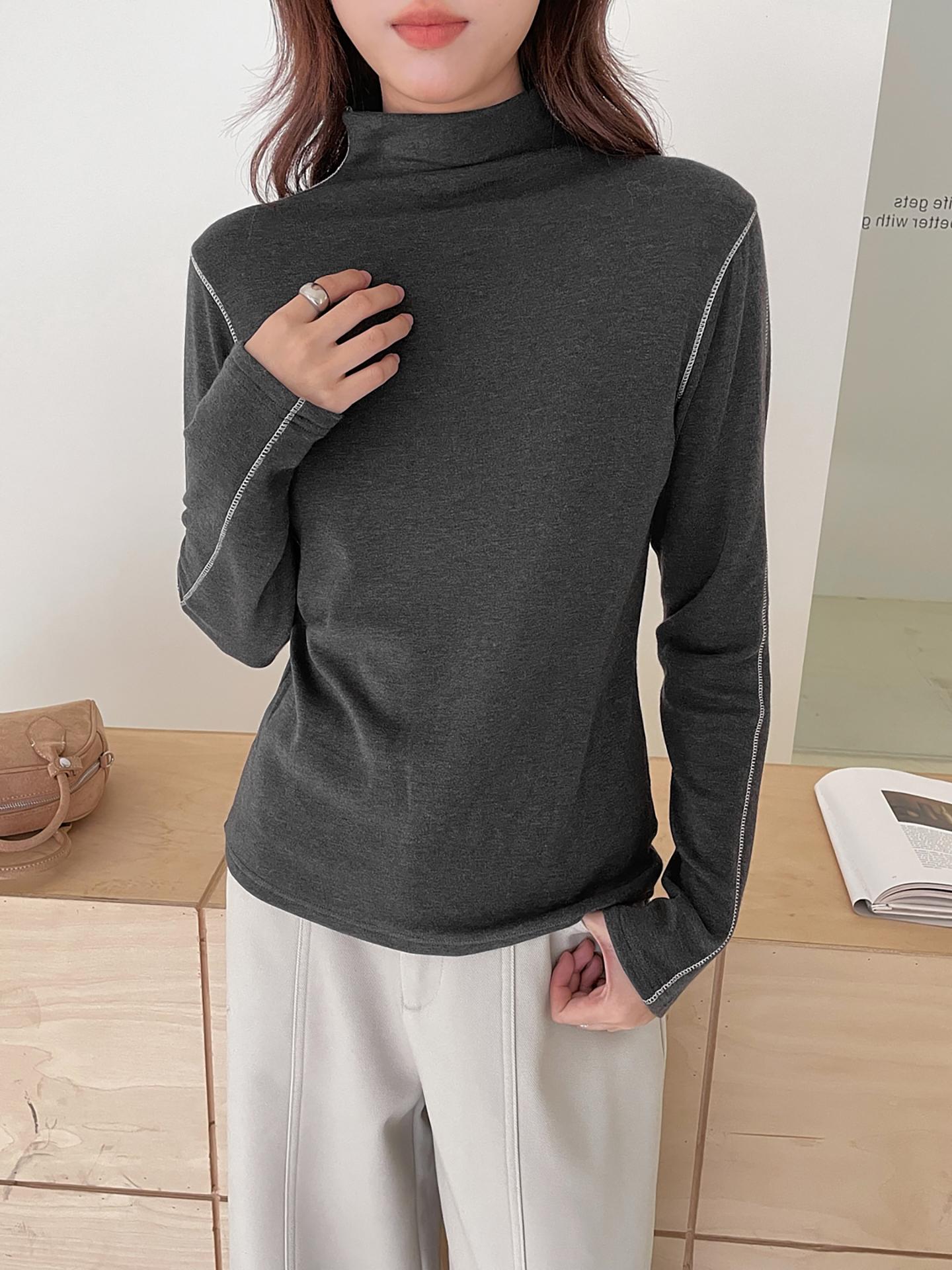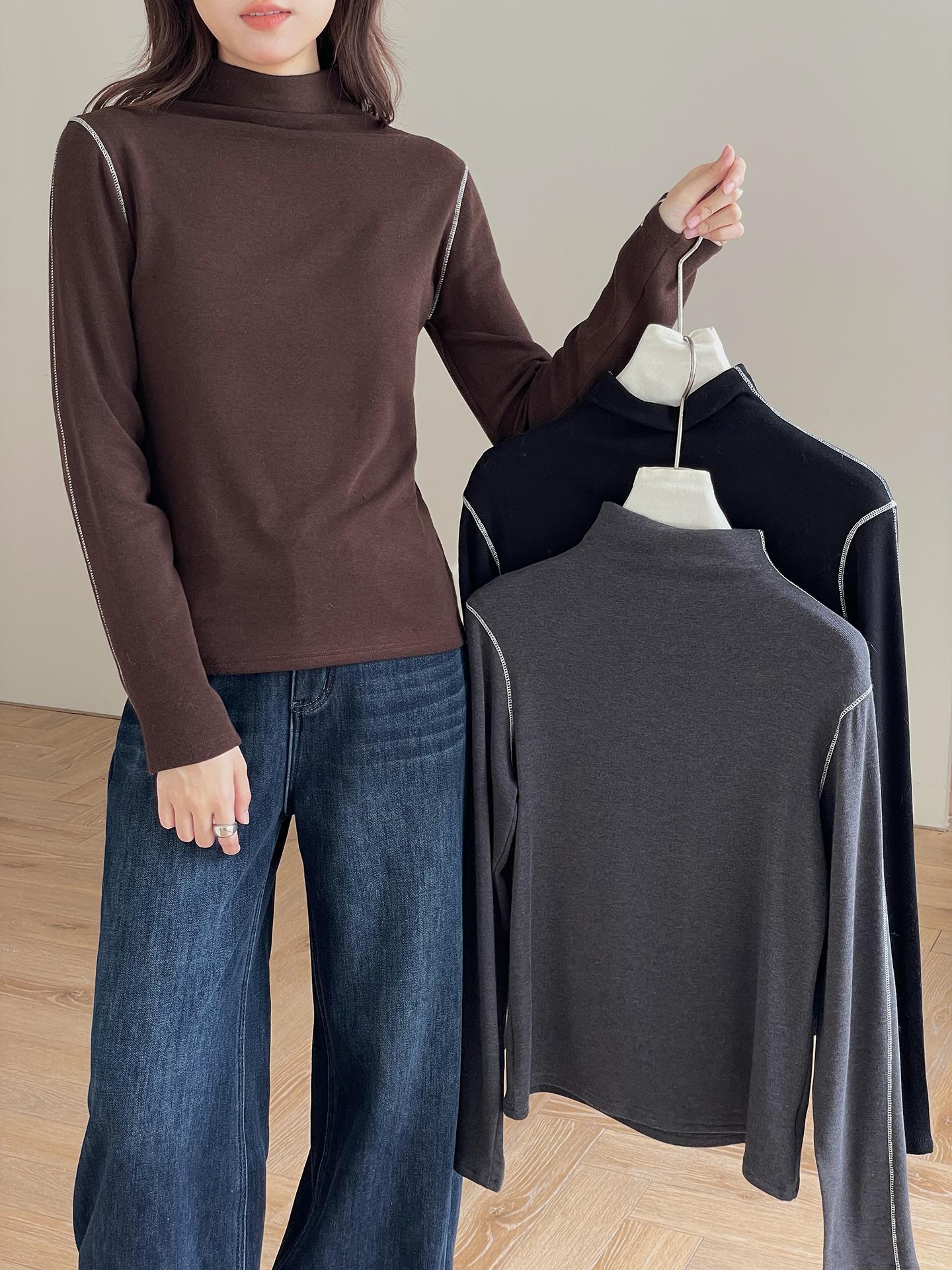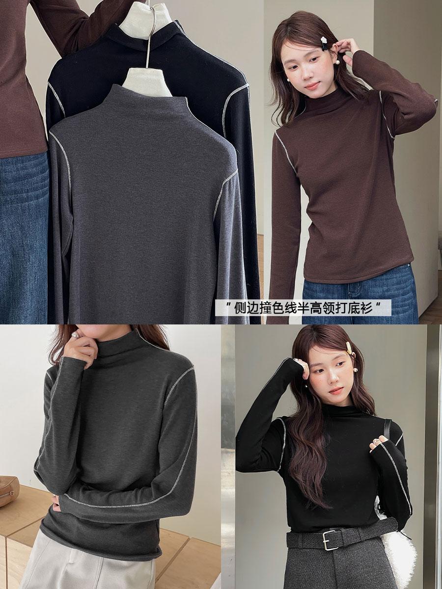 【C7958】冬上新!韓系通勤側邊撞色線半高領內搭薄絨打底長袖T恤