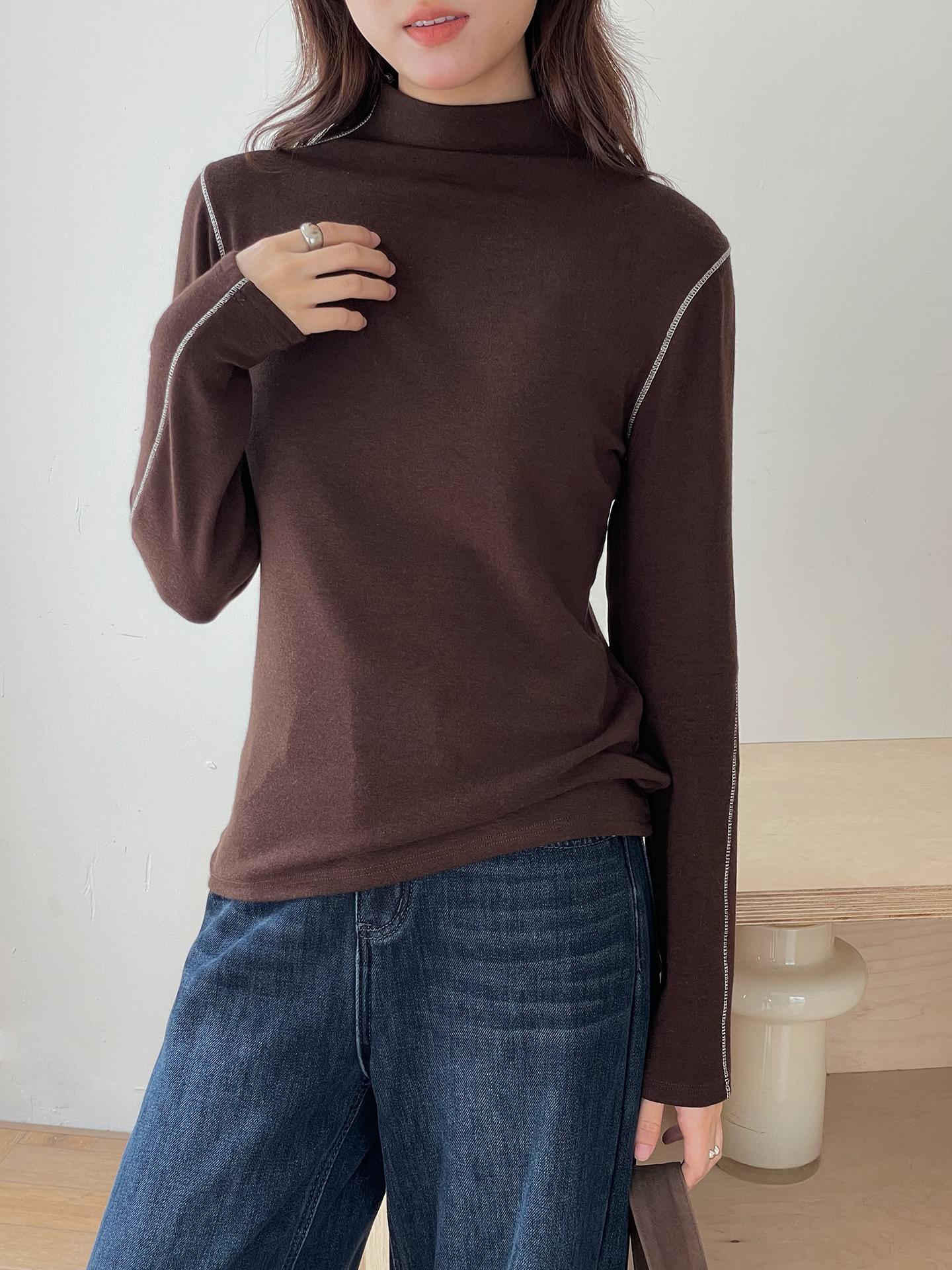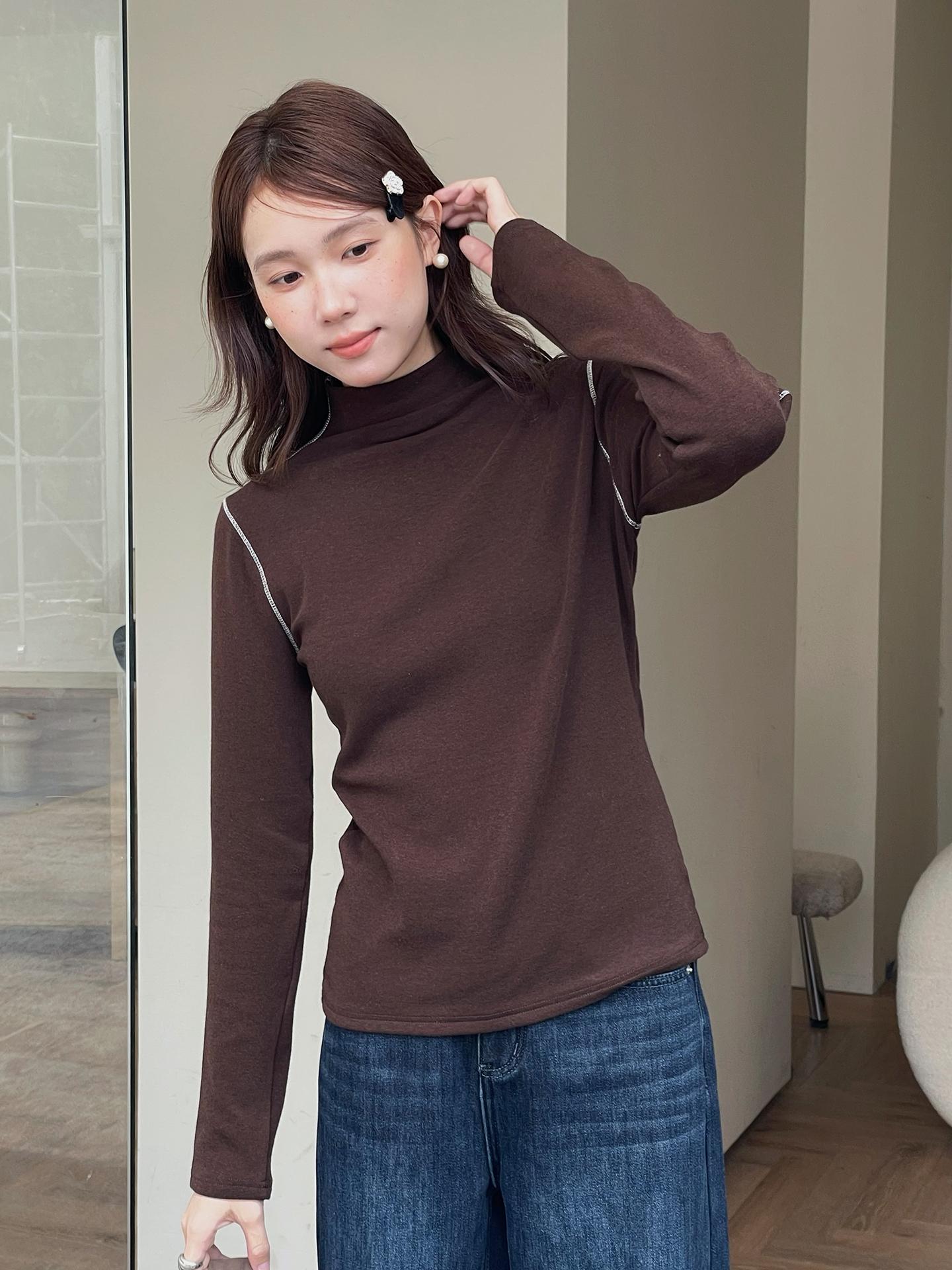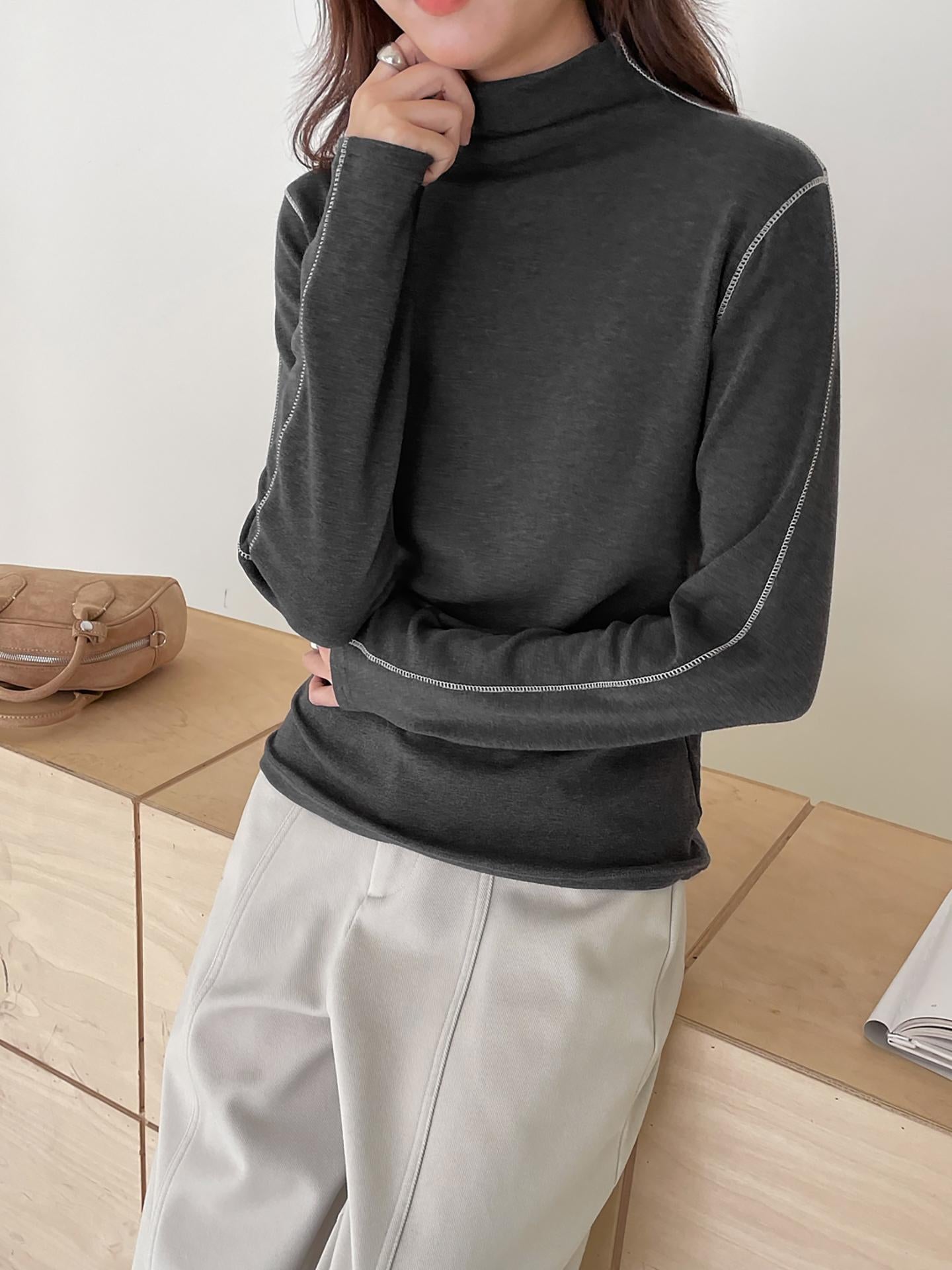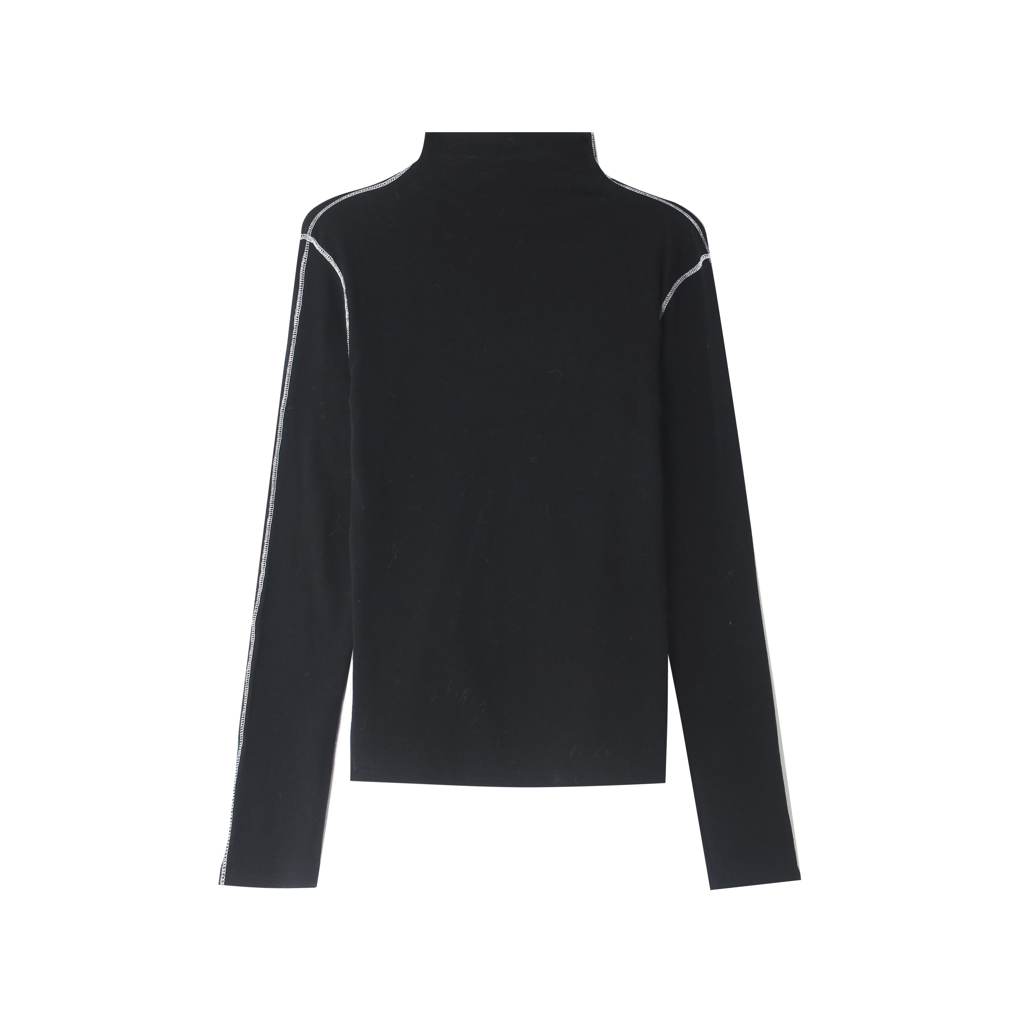 【C7958】冬上新!韓系通勤側邊撞色線半高領內搭薄絨打底長袖T恤