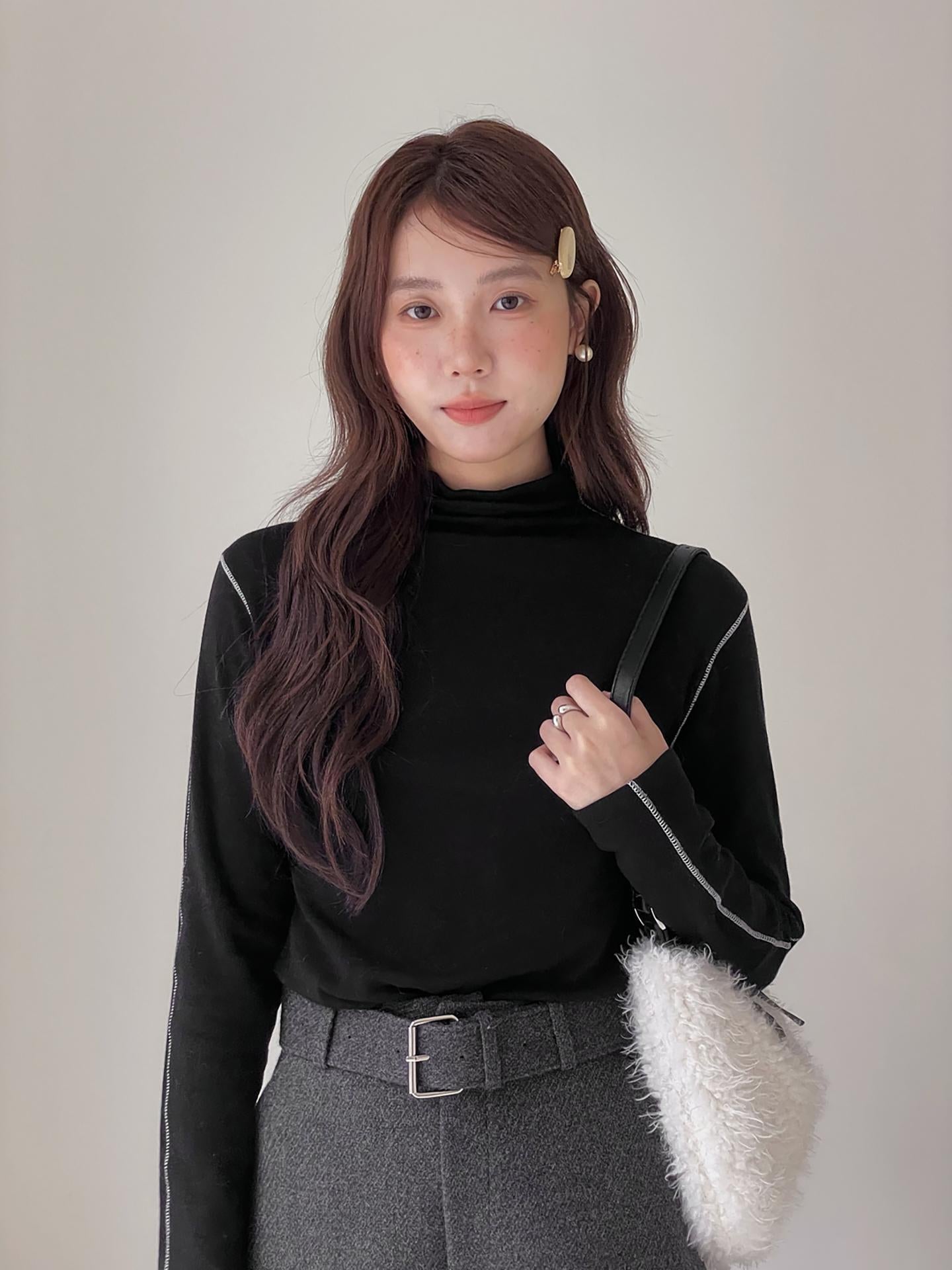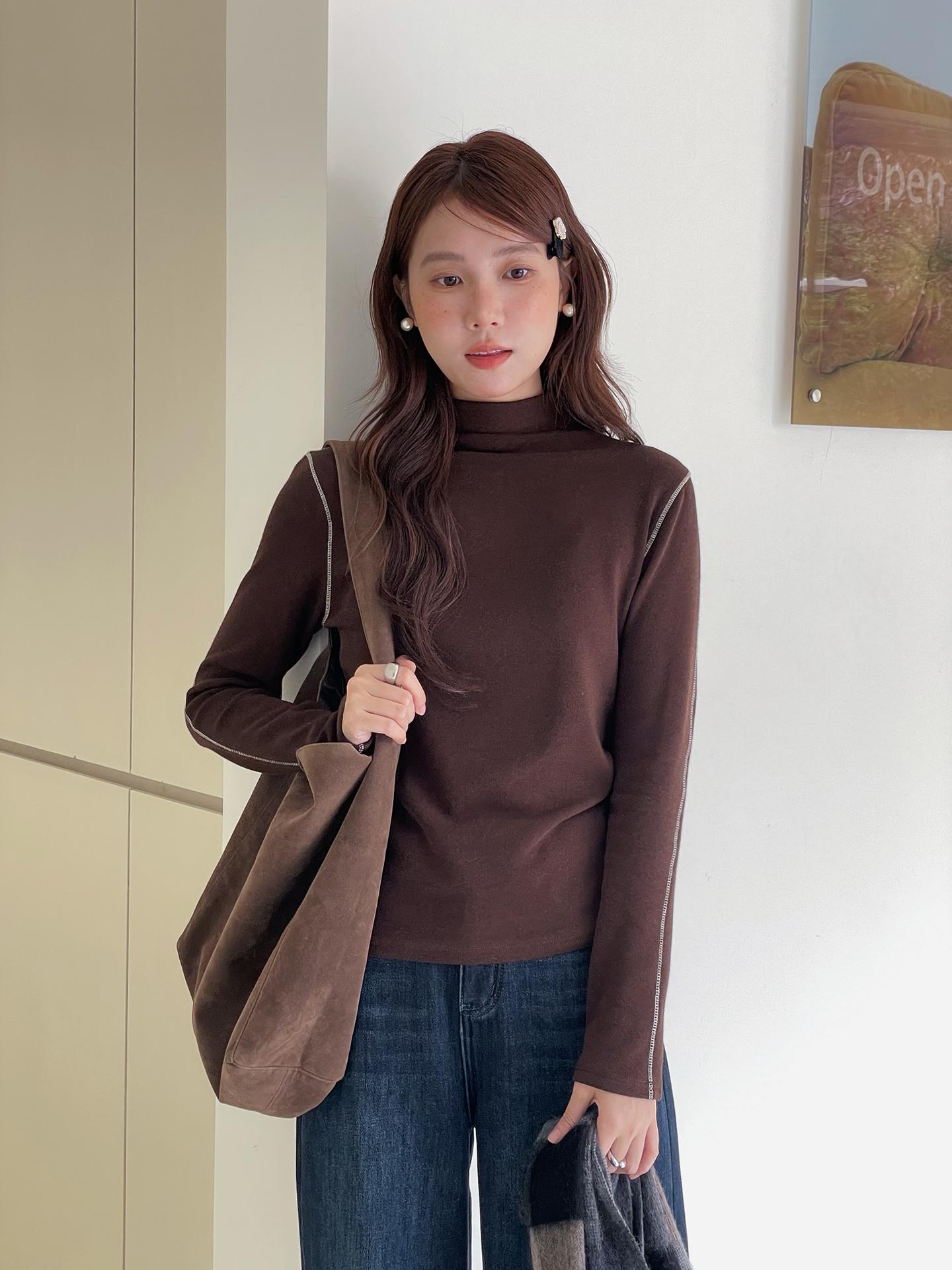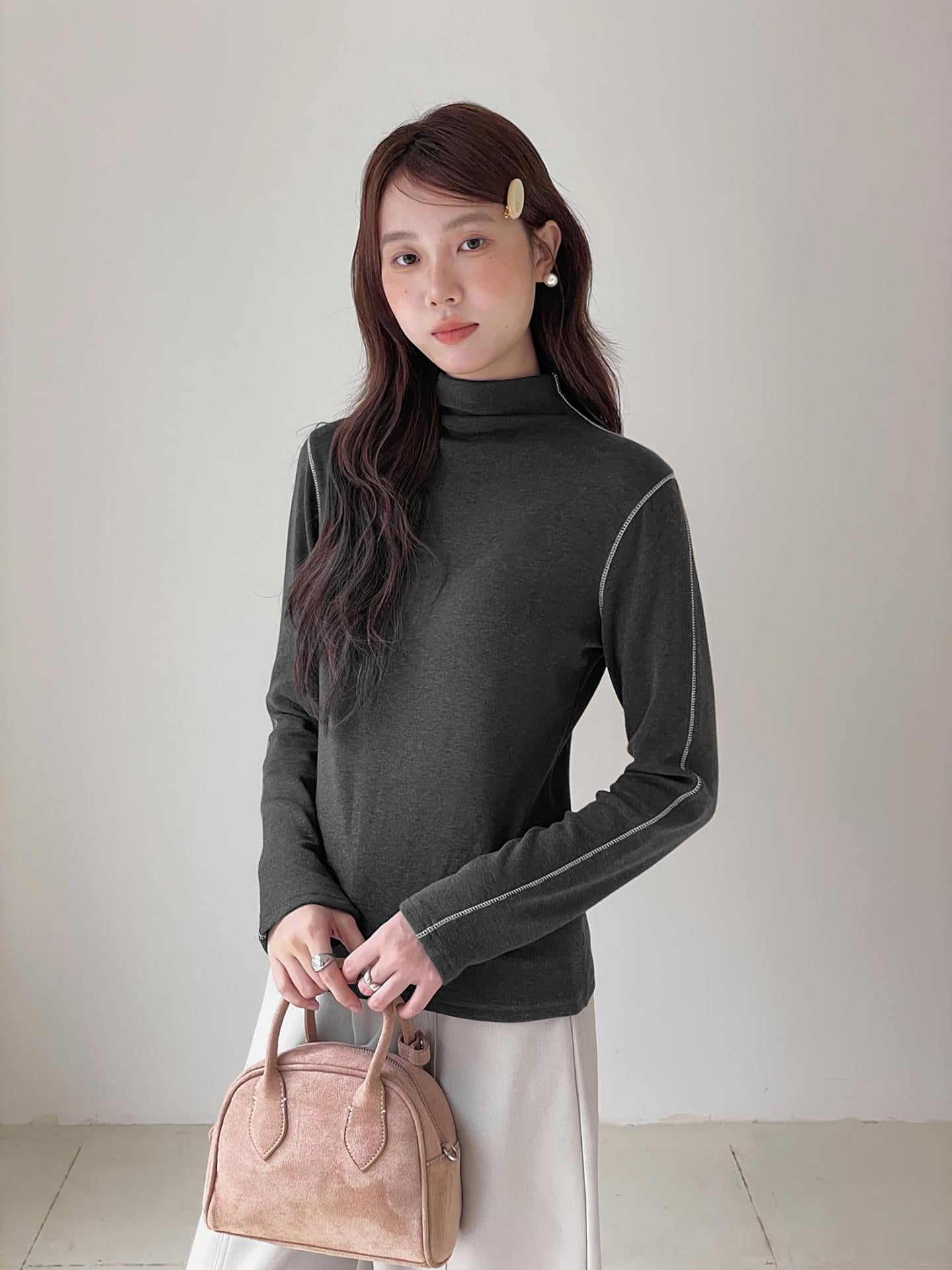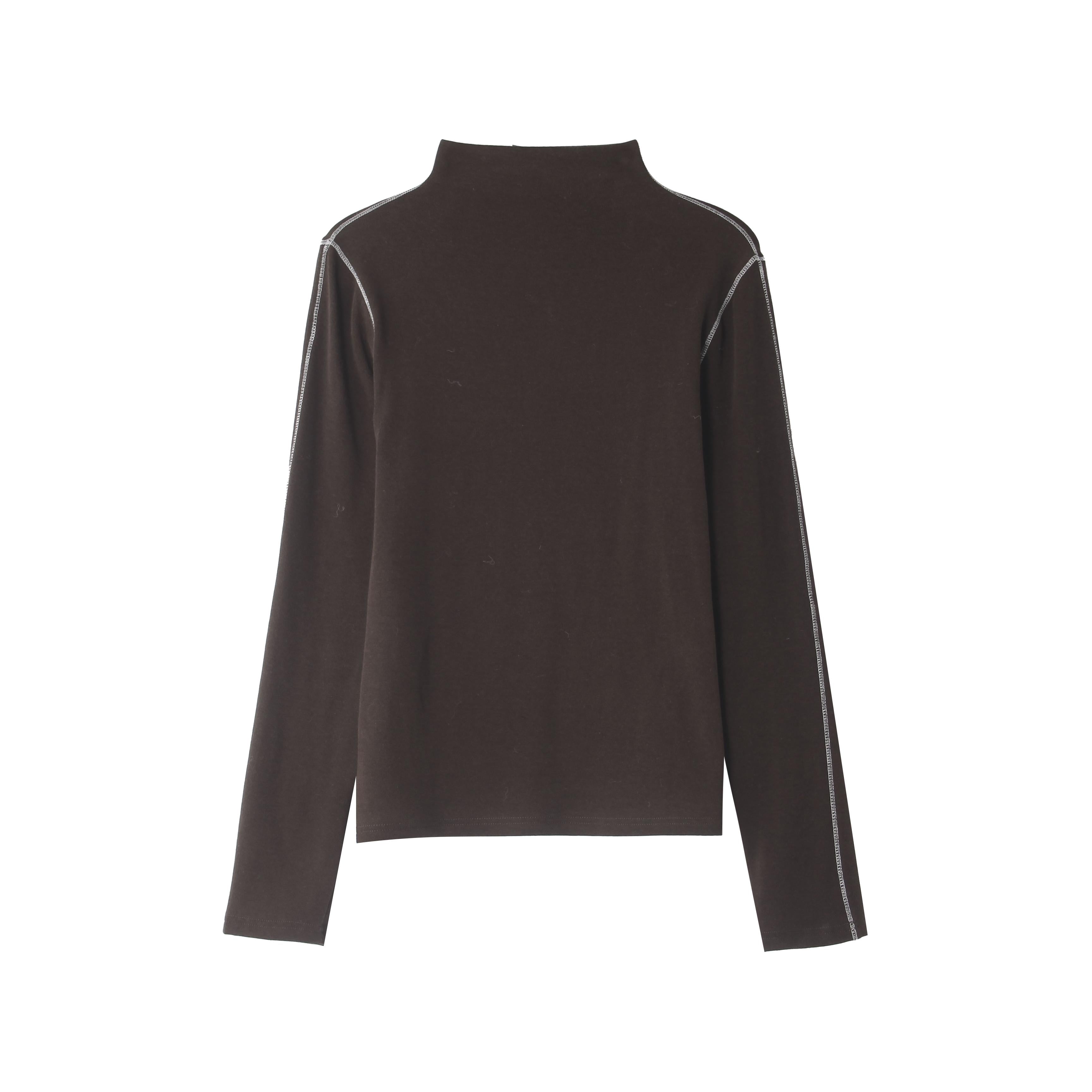 【C7958】冬上新!韓系通勤側邊撞色線半高領內搭薄絨打底長袖T恤