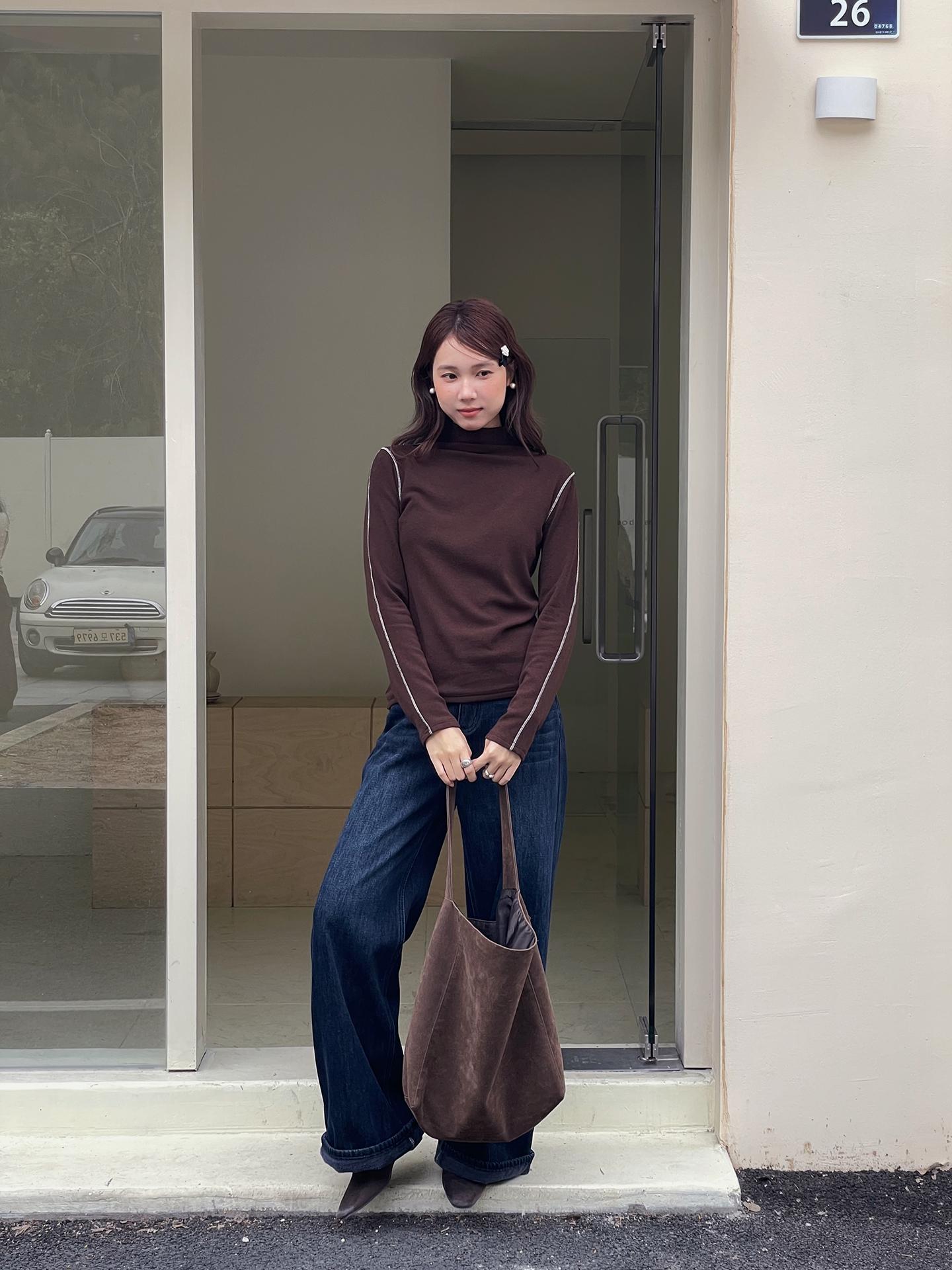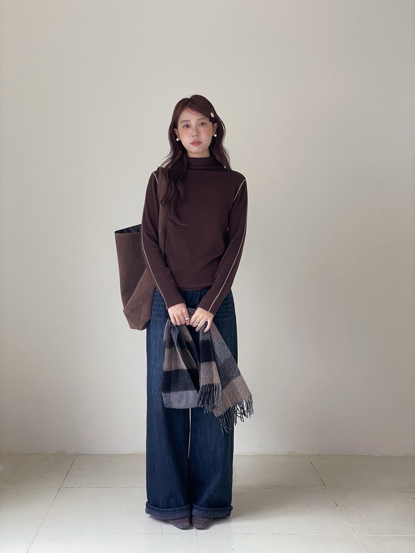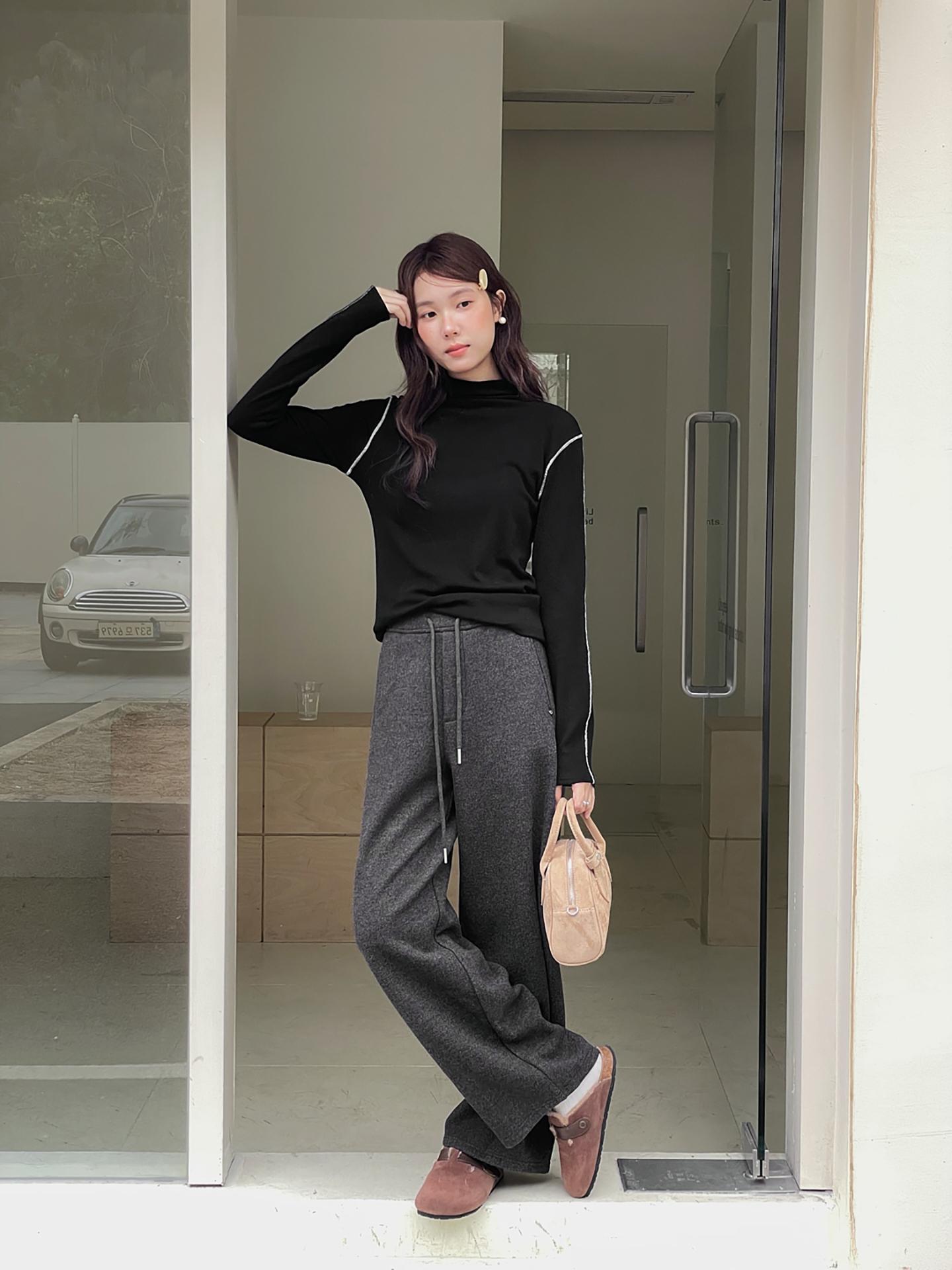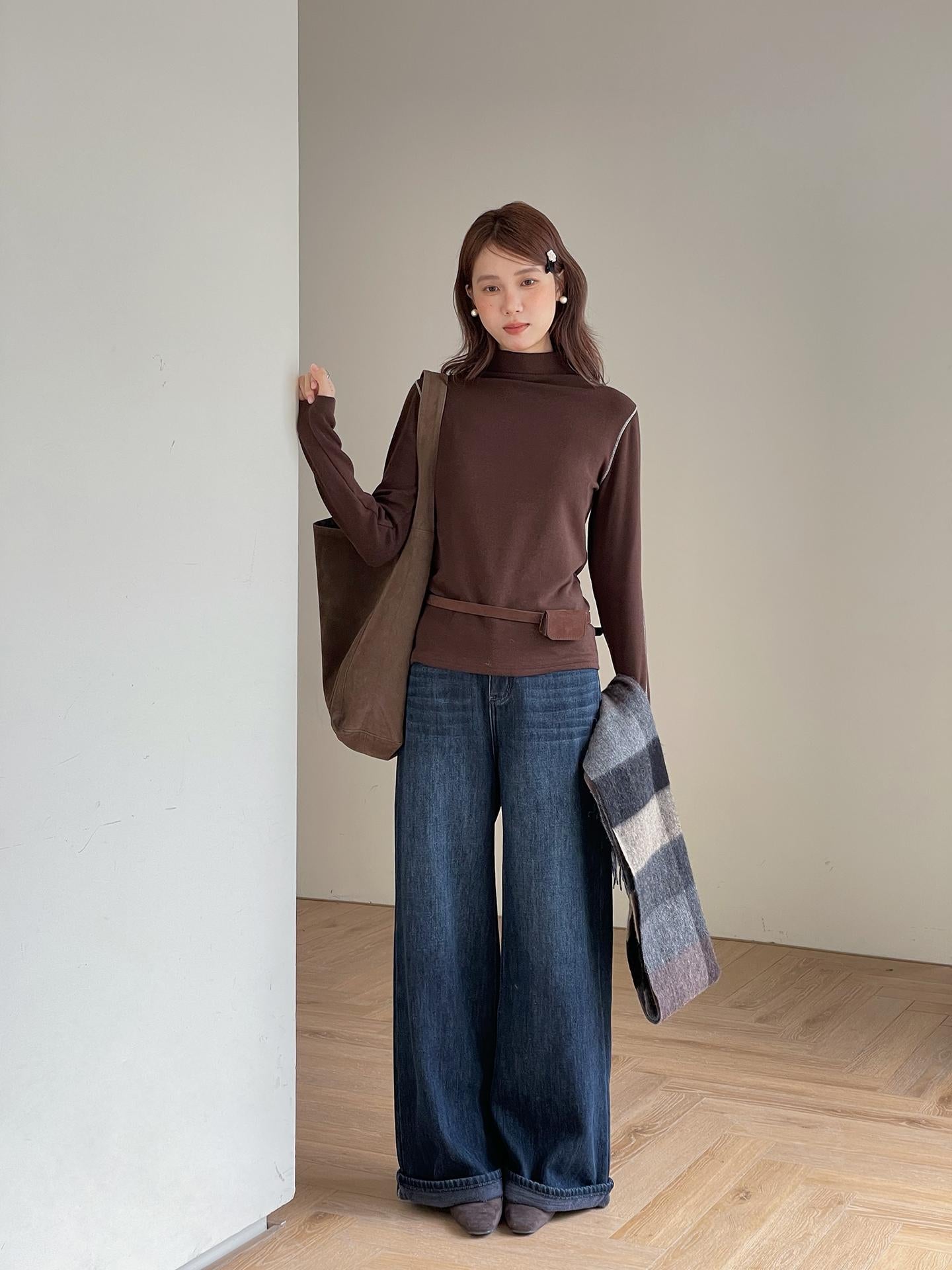 【C7958】冬上新!韓系通勤側邊撞色線半高領內搭薄絨打底長袖T恤
