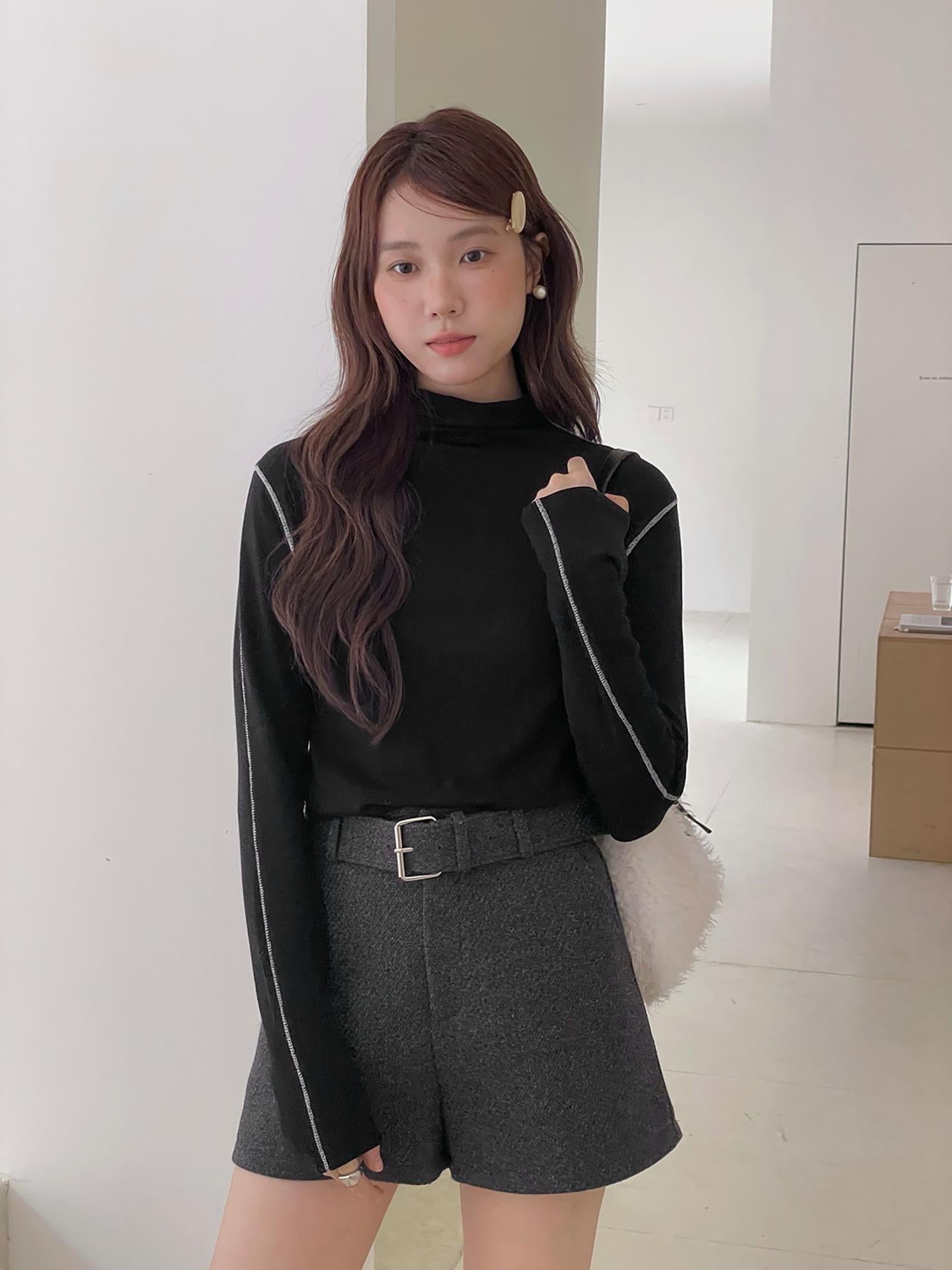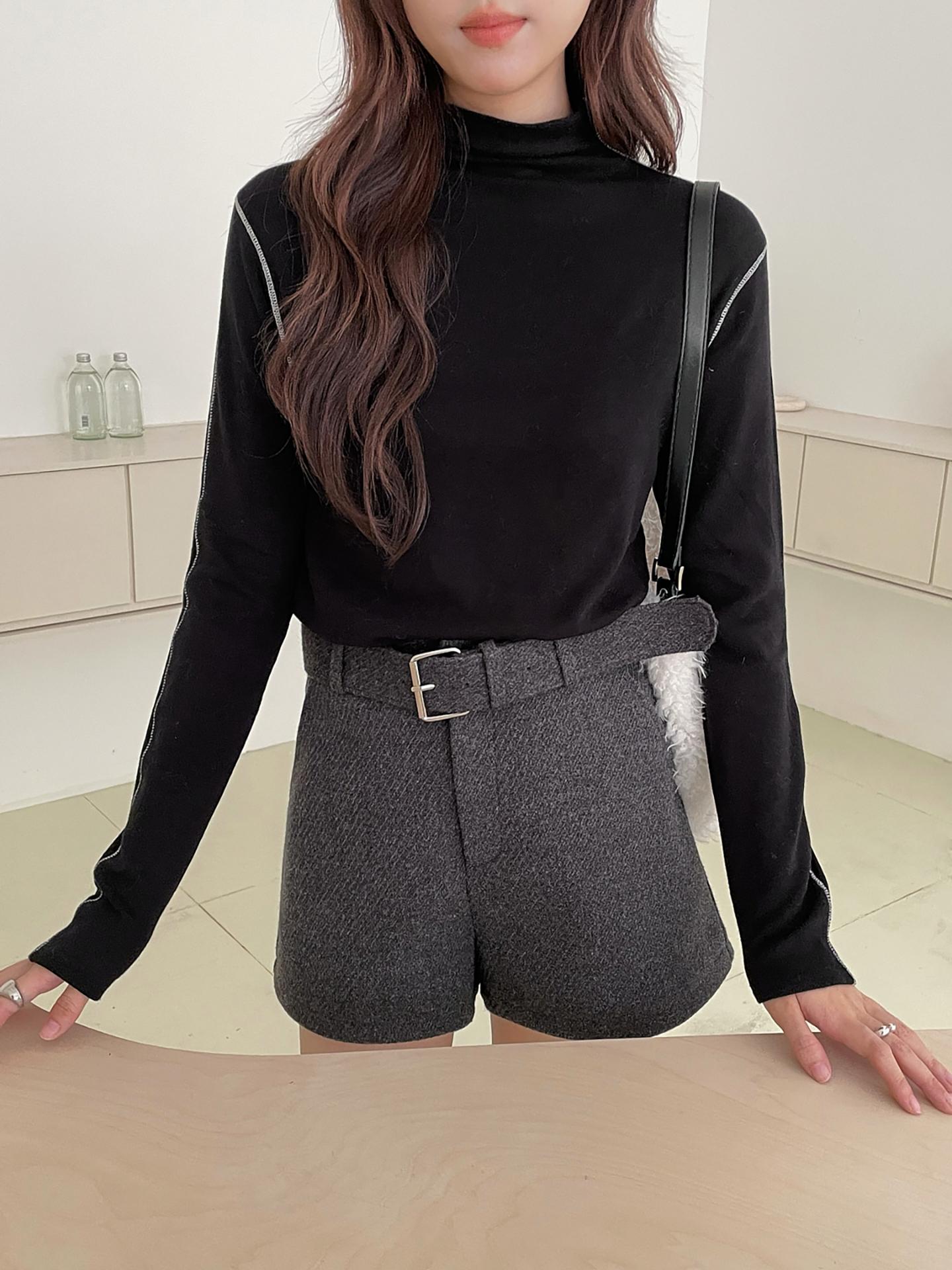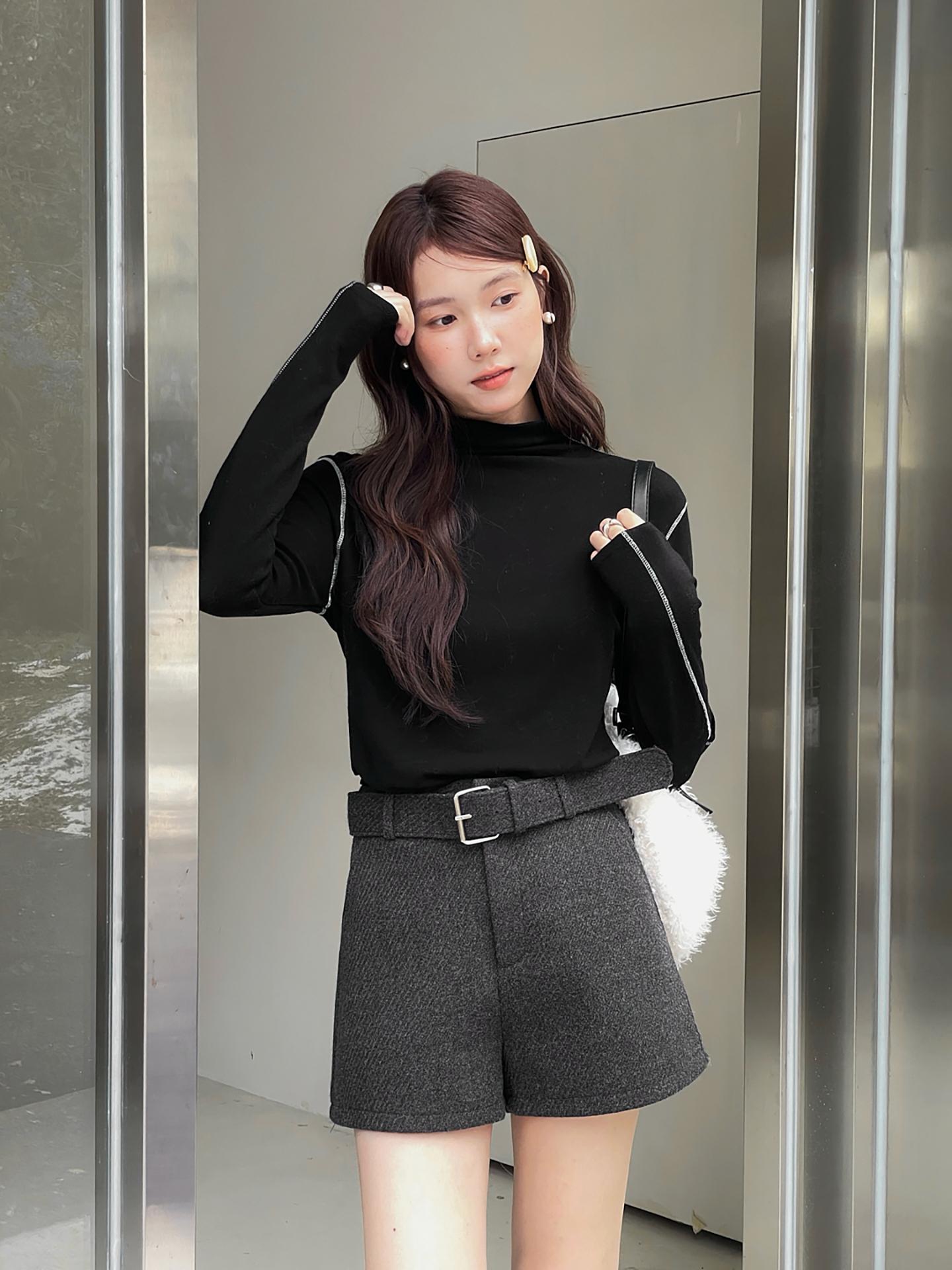 【C7959】冬上新!韓系通勤高腰a字毛呢休閒短褲(配腰帶)