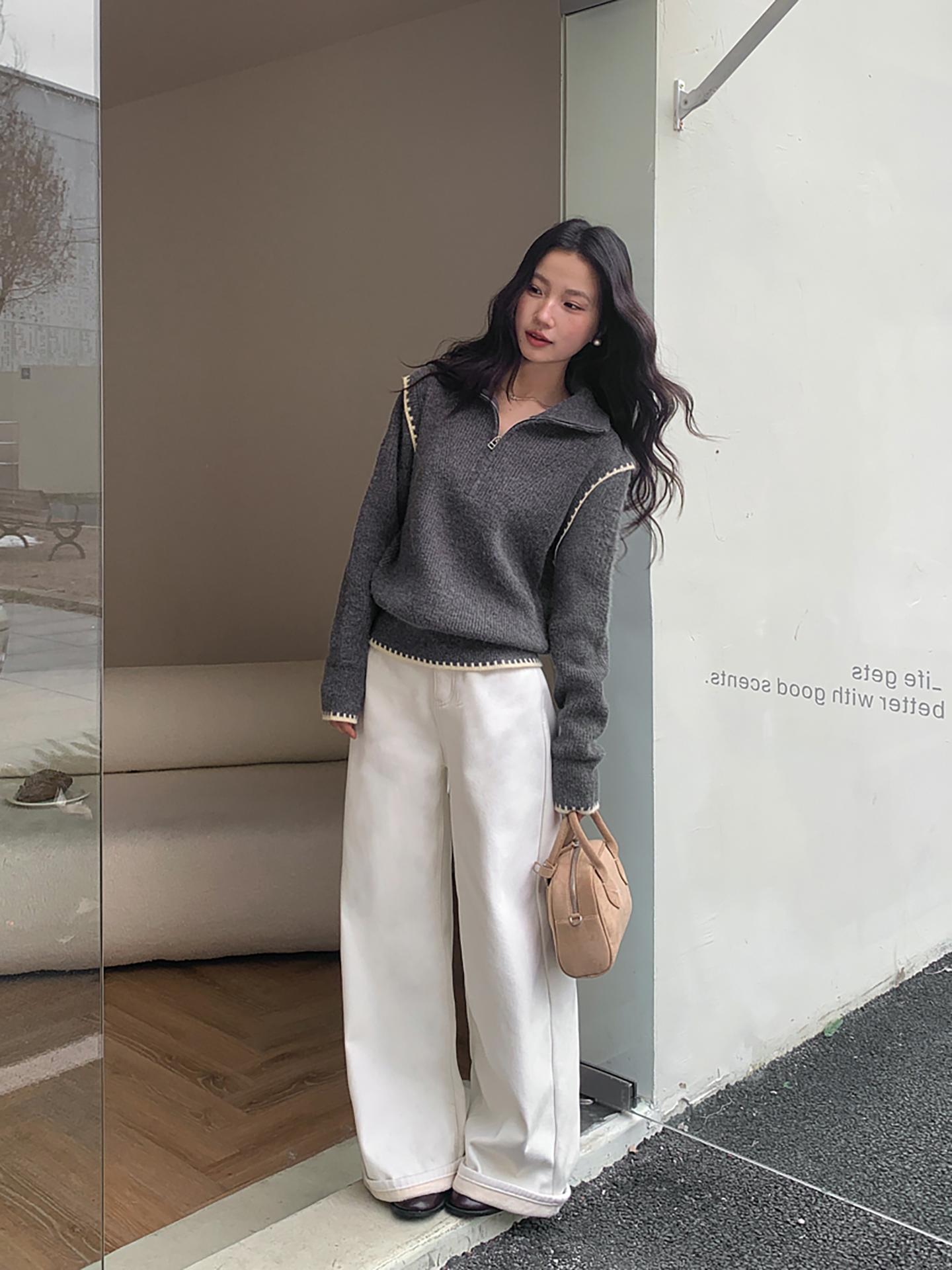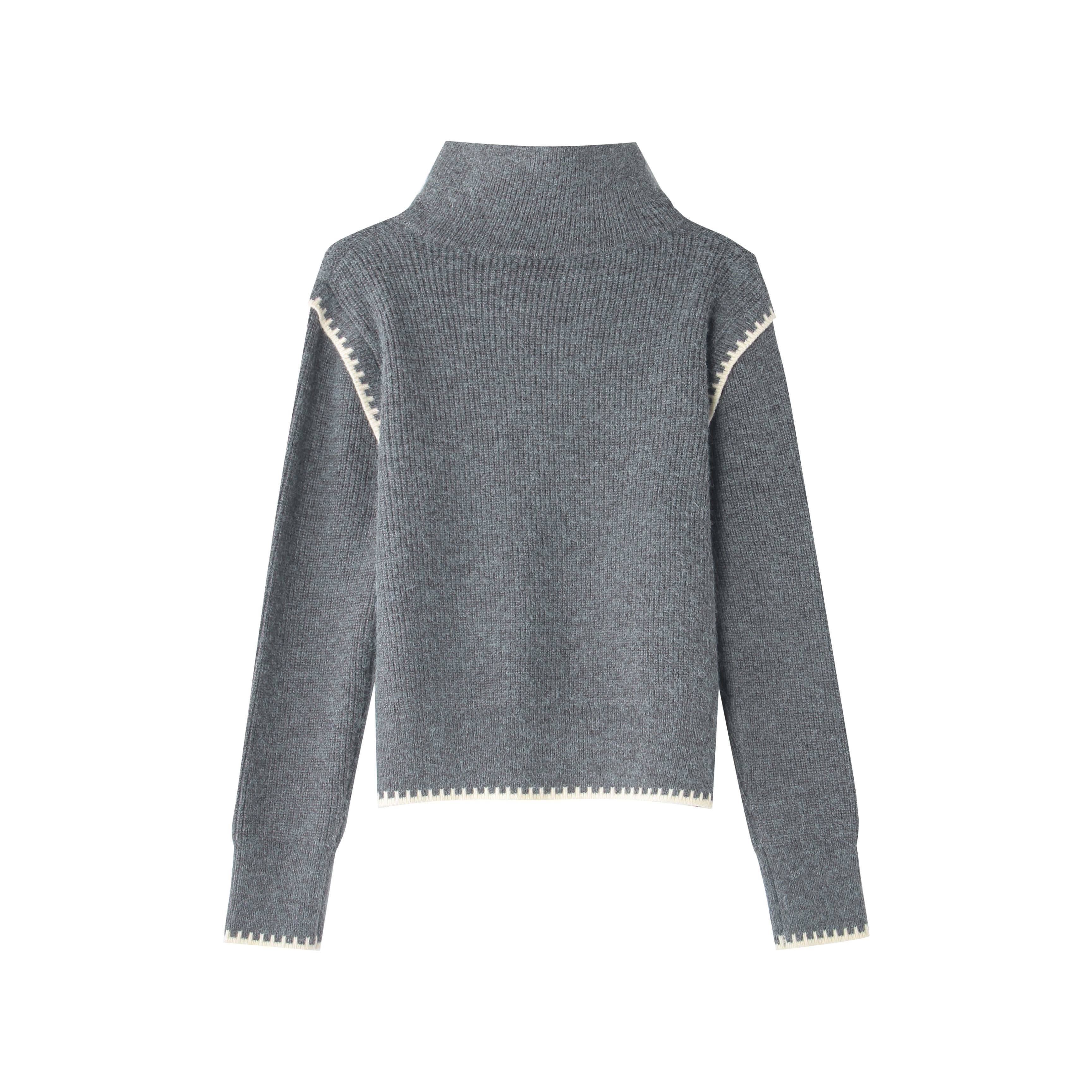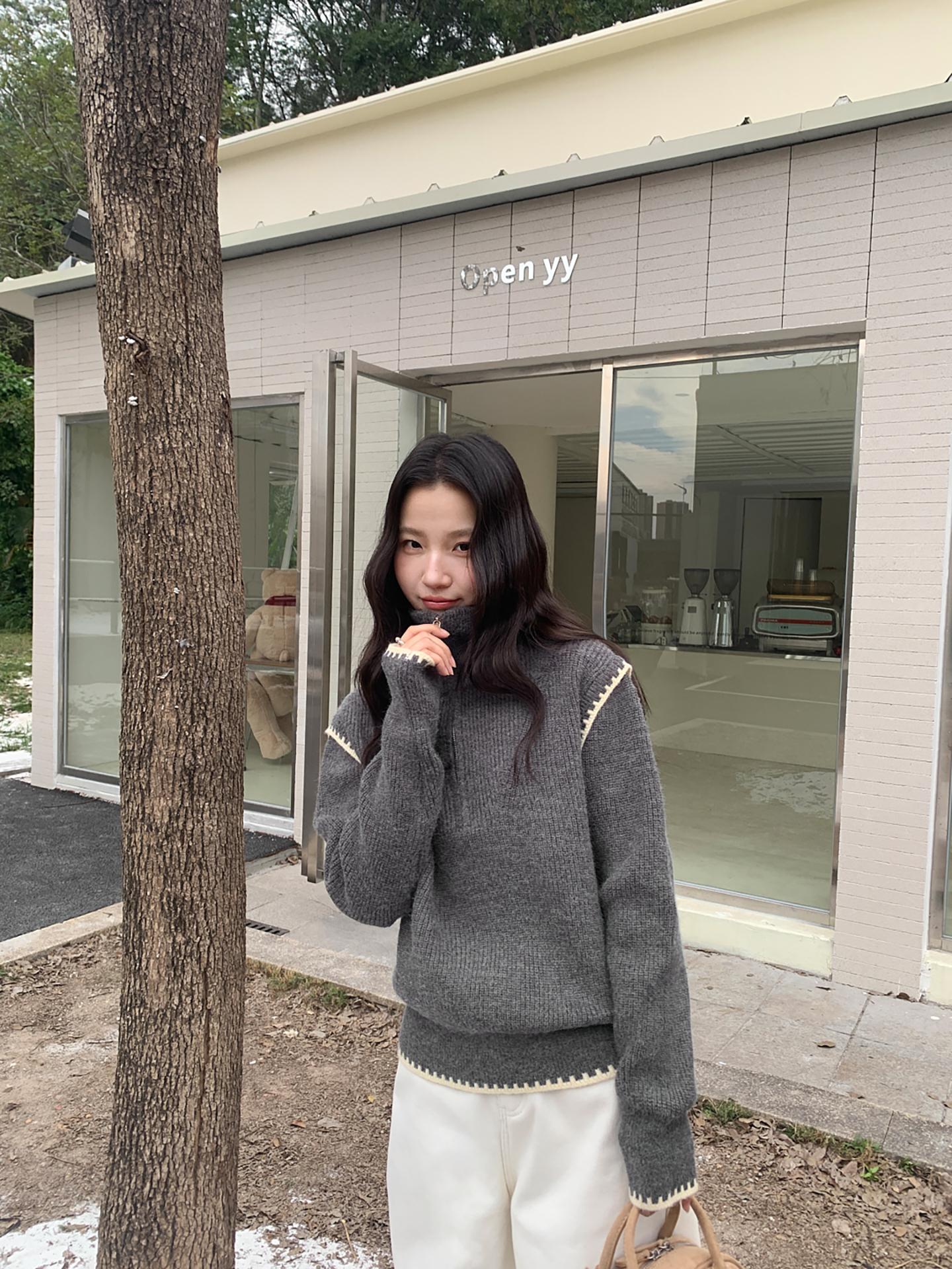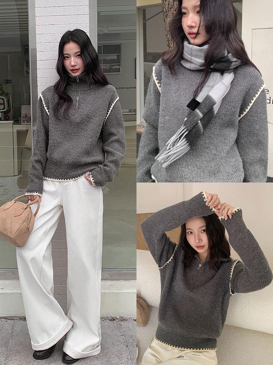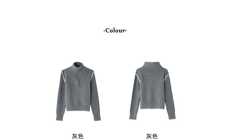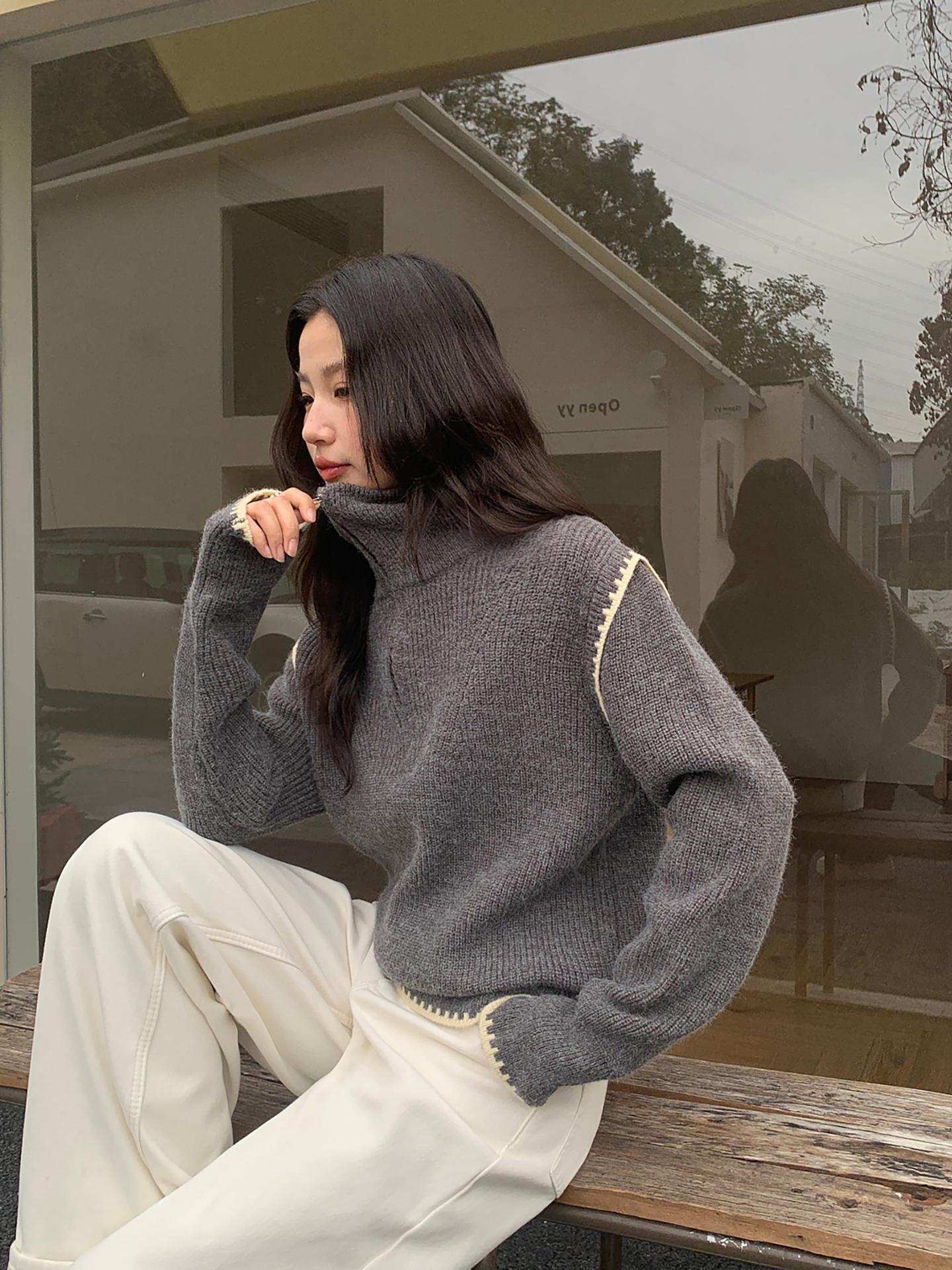 【C7960】冬上新!復古撞色半拉鍊高領針織衫長袖套頭保暖毛衣