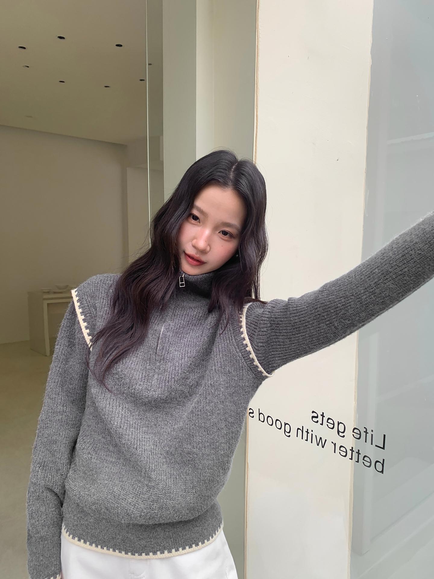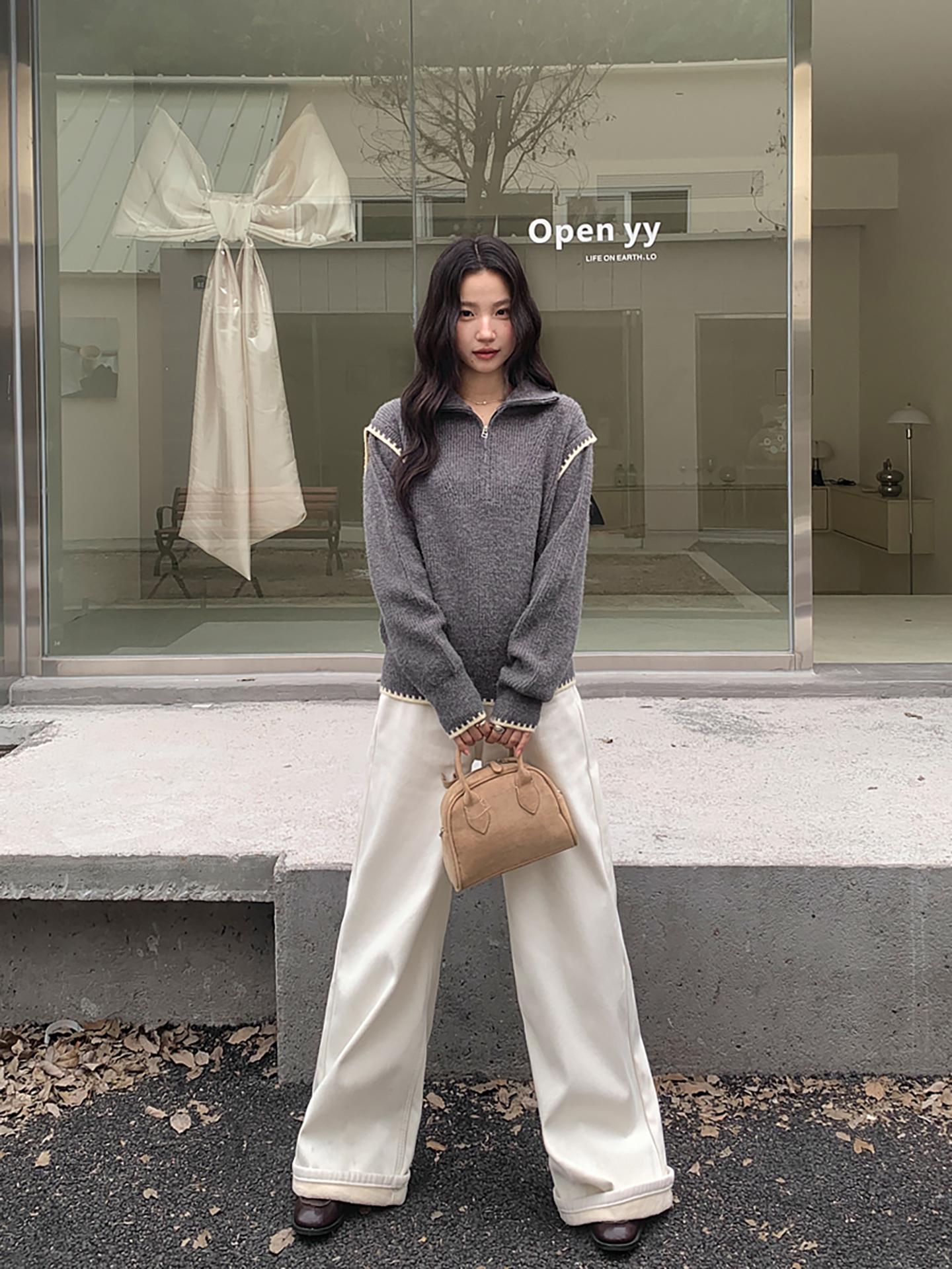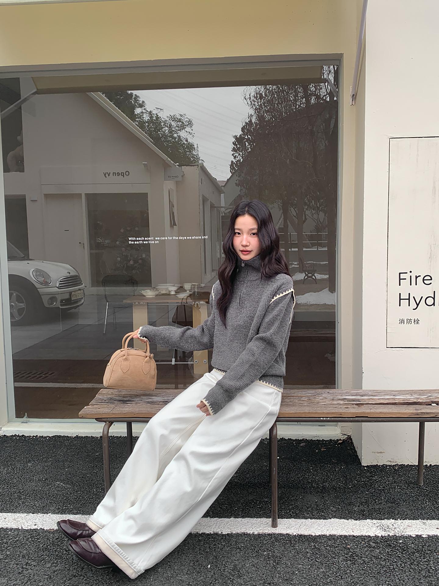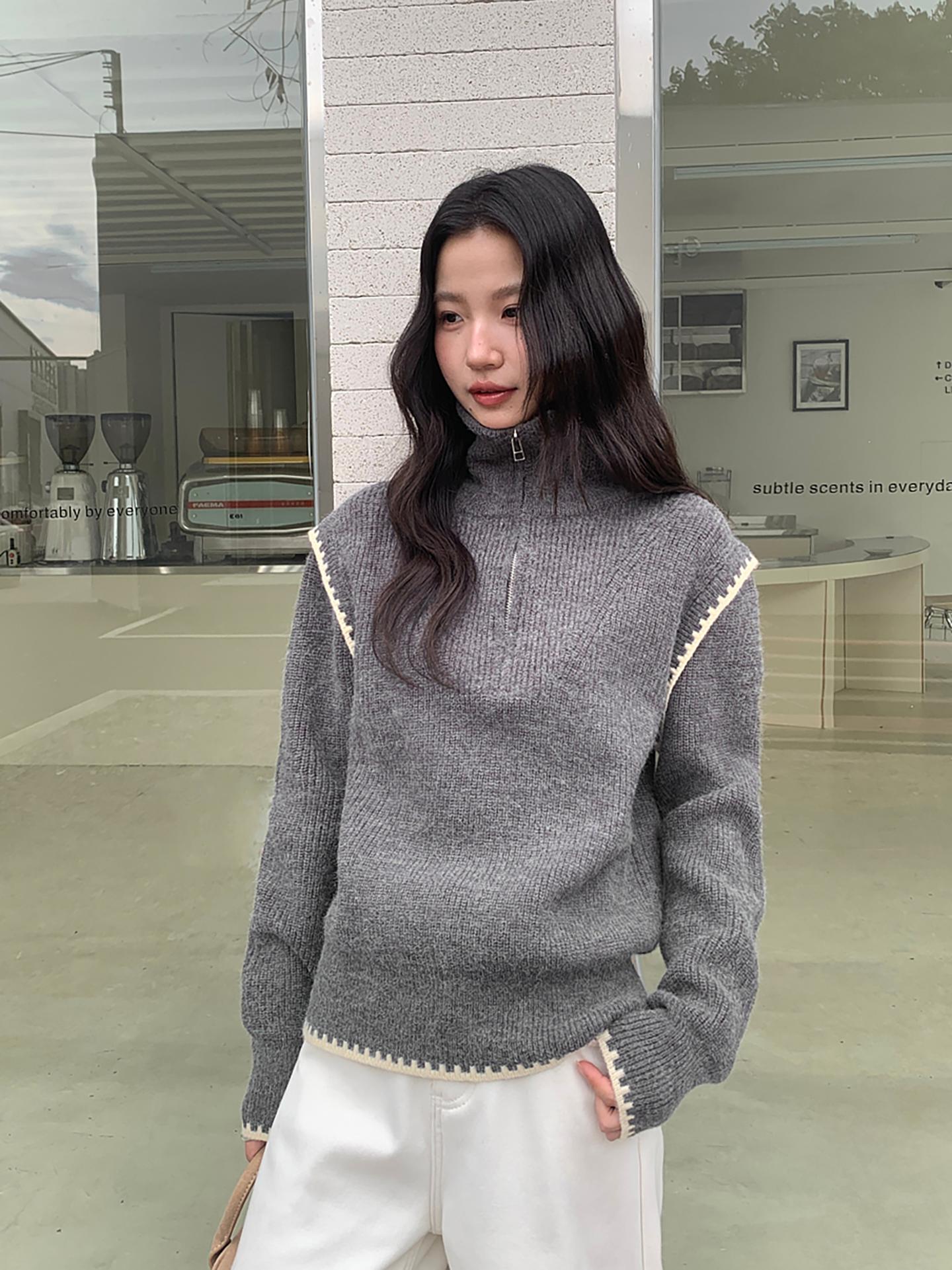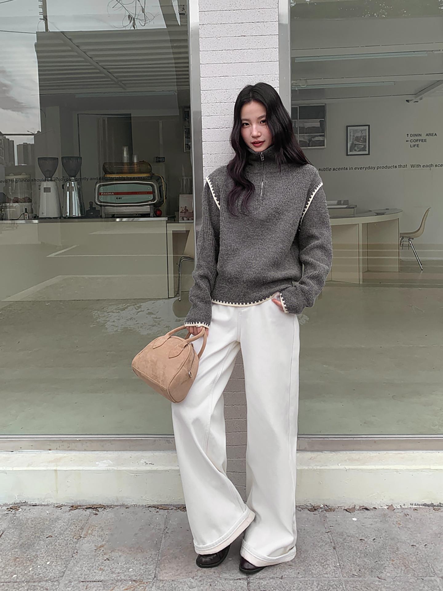 【C7960】冬上新!復古撞色半拉鍊高領針織衫長袖套頭保暖毛衣