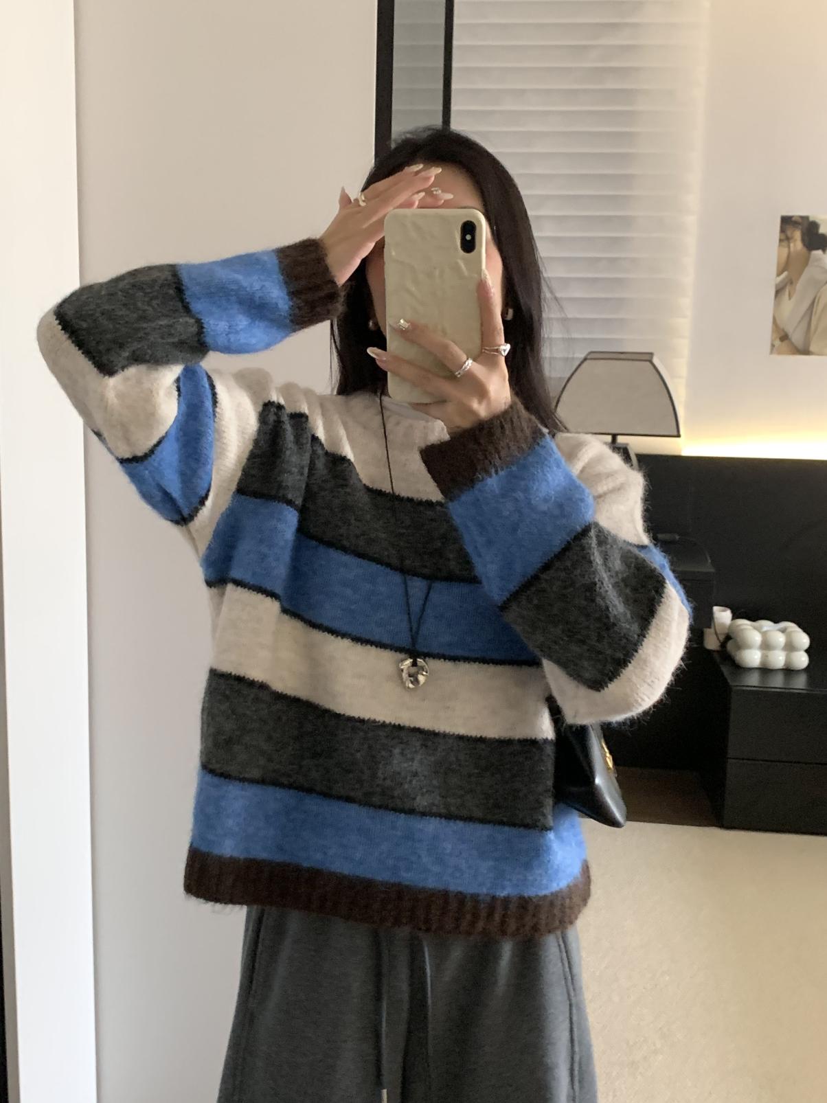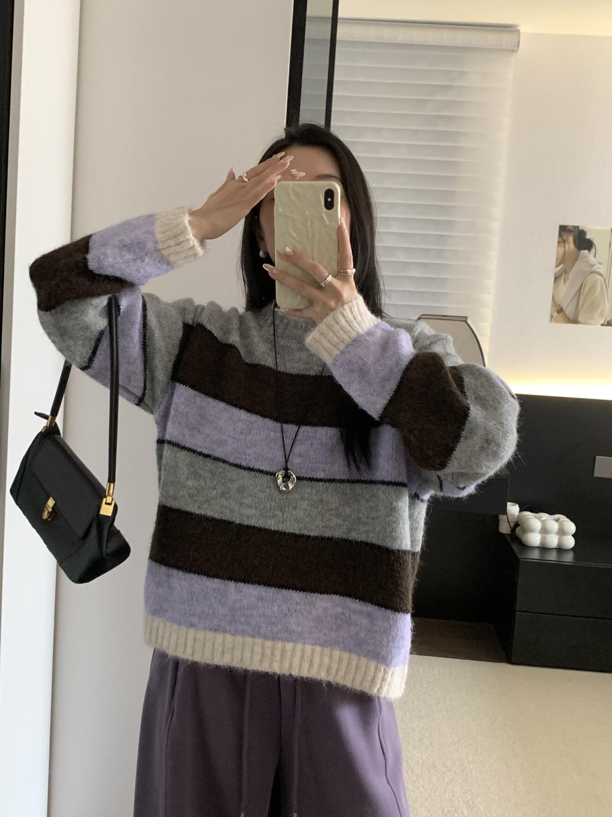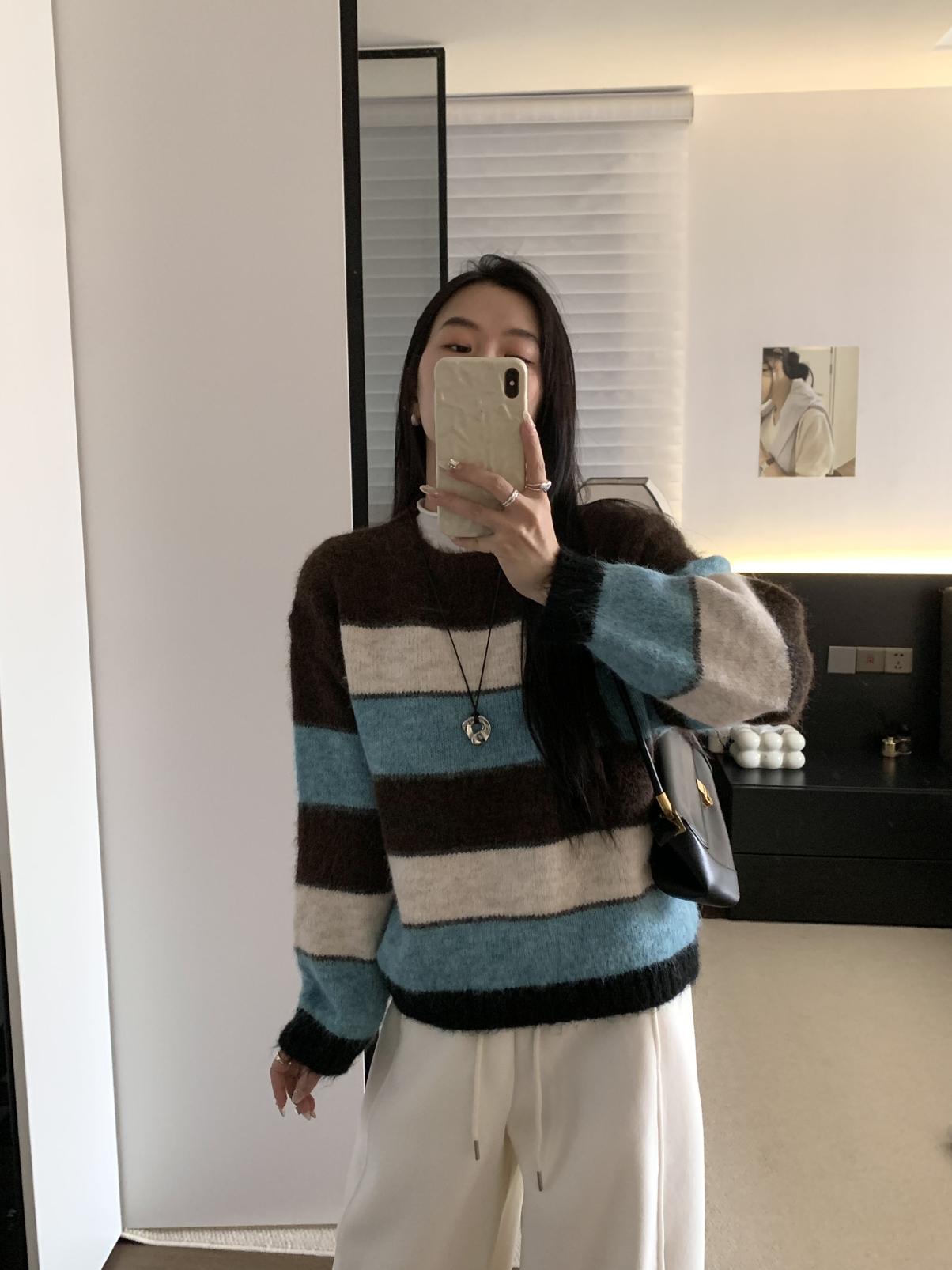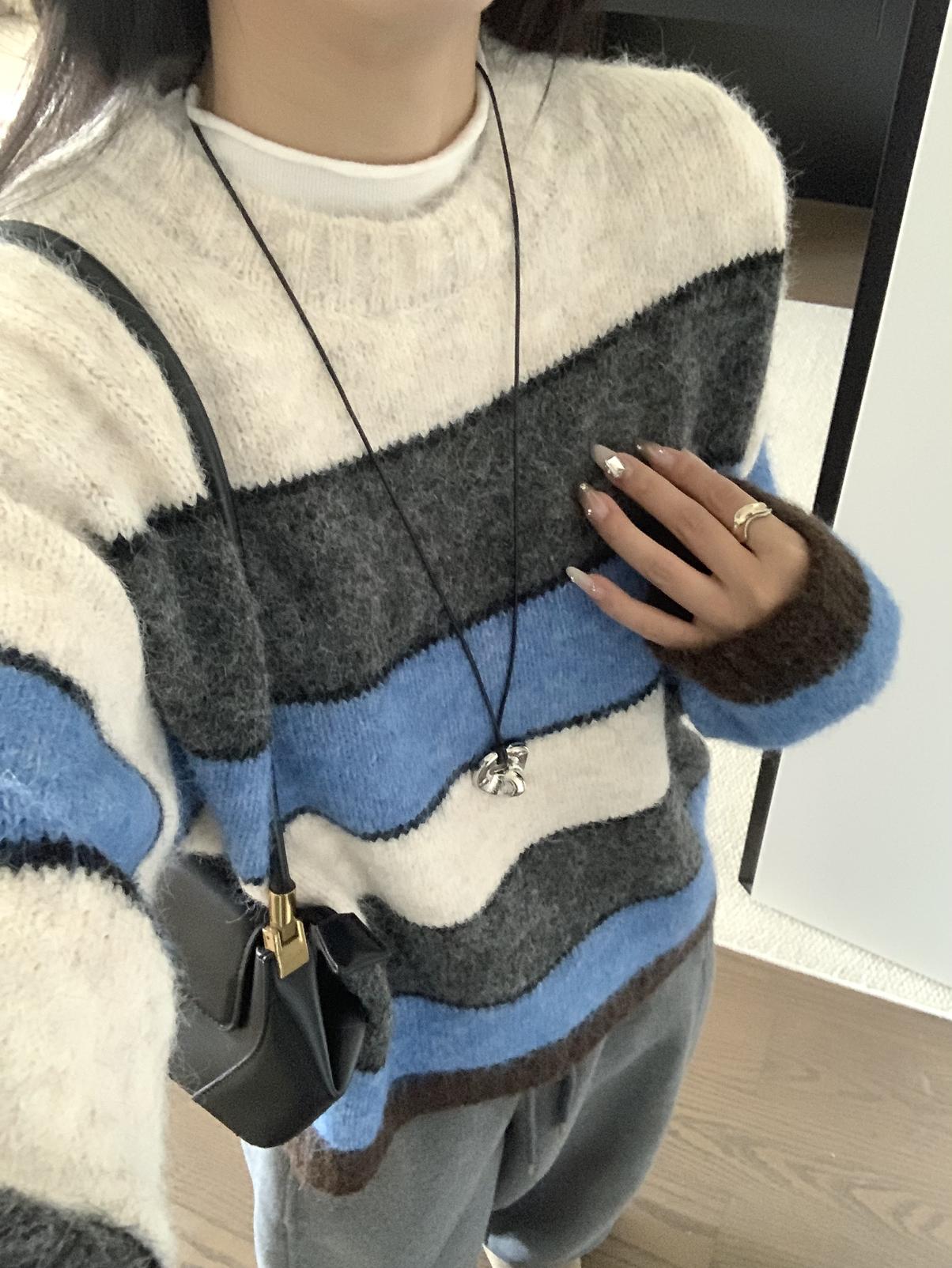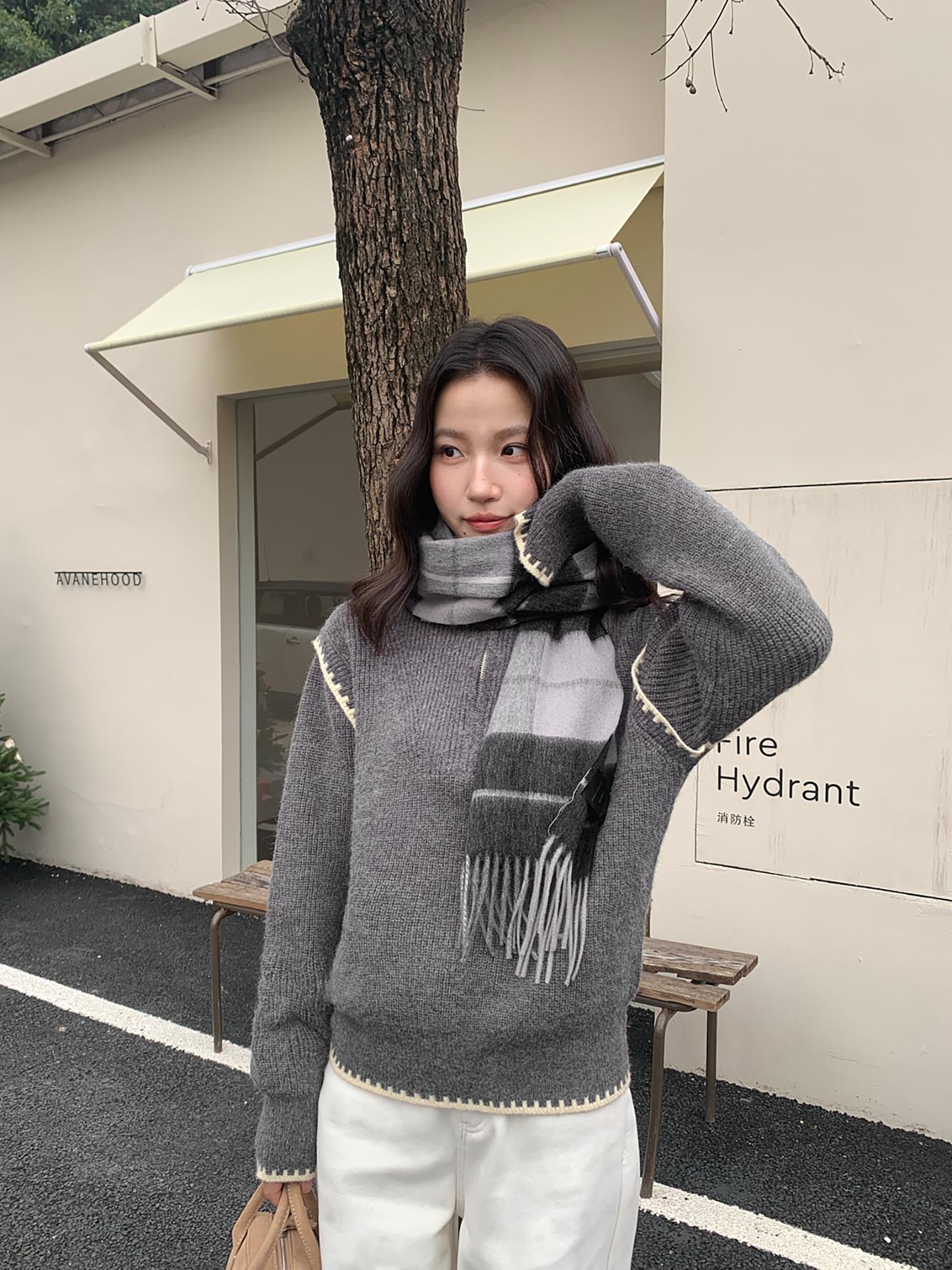 【C7987】韓系休閒撞色大版套頭保暖毛衣