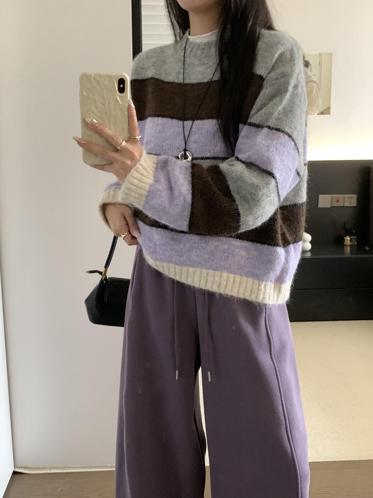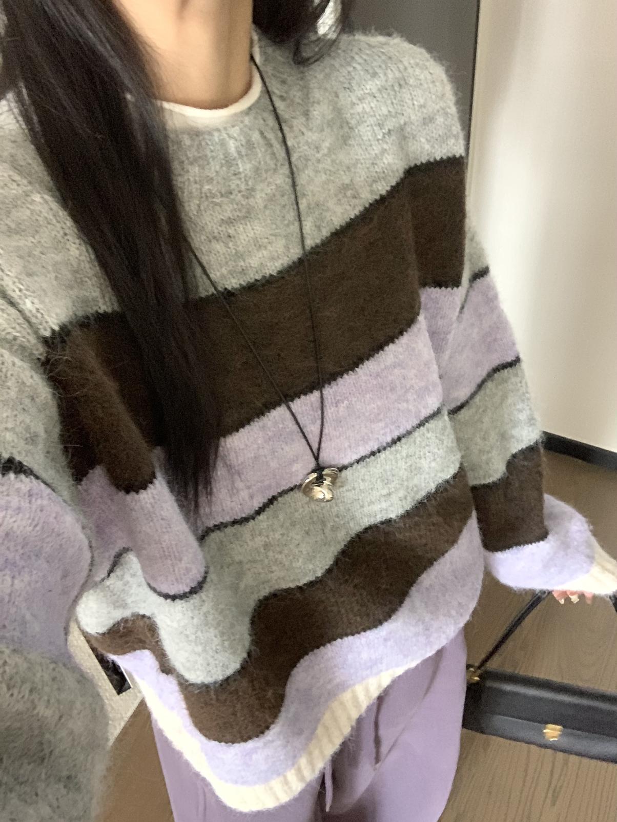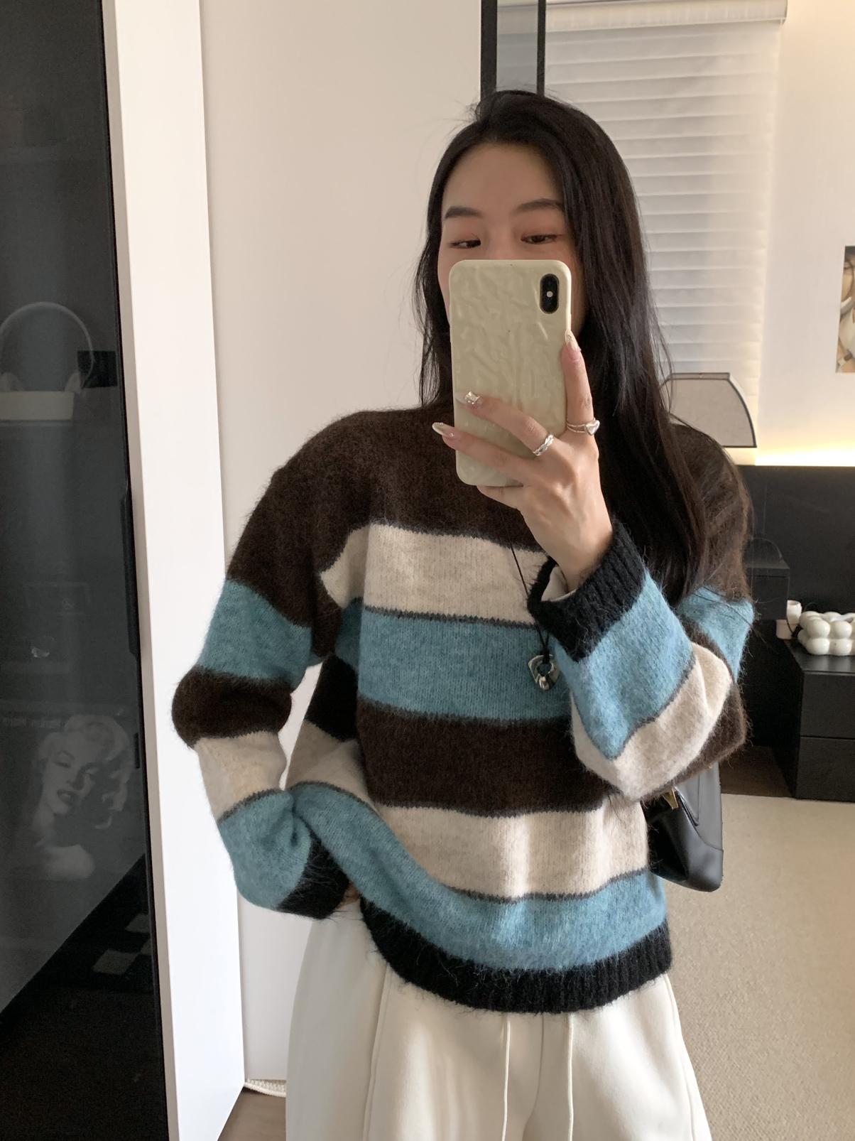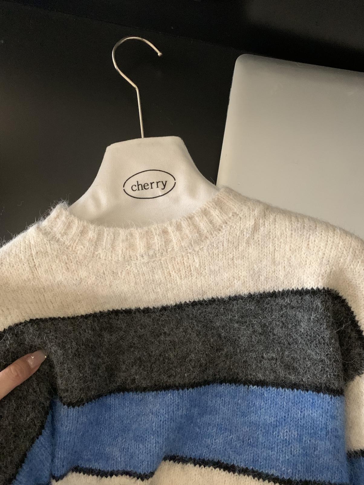 【C7987】韓系休閒撞色大版套頭保暖毛衣