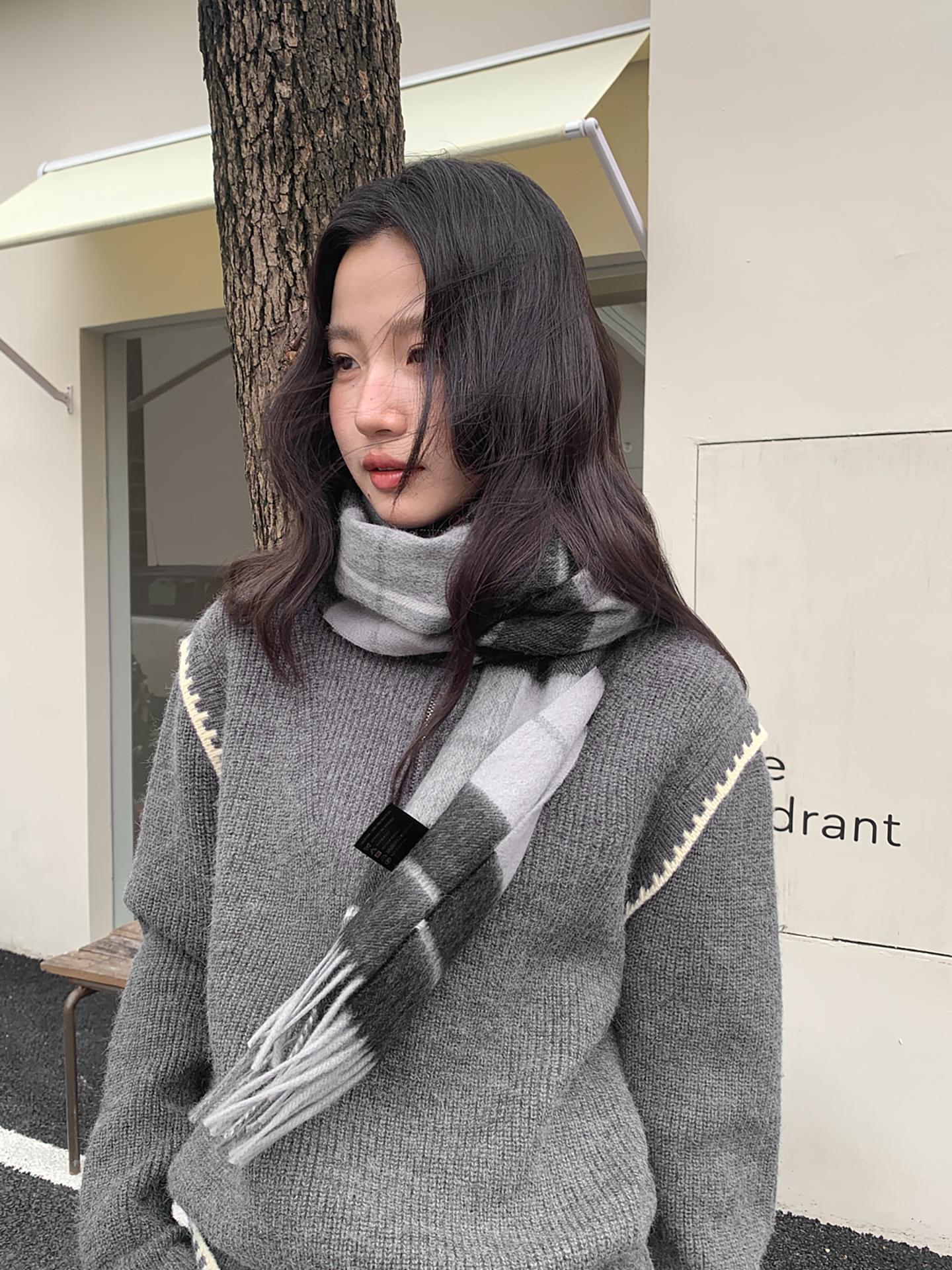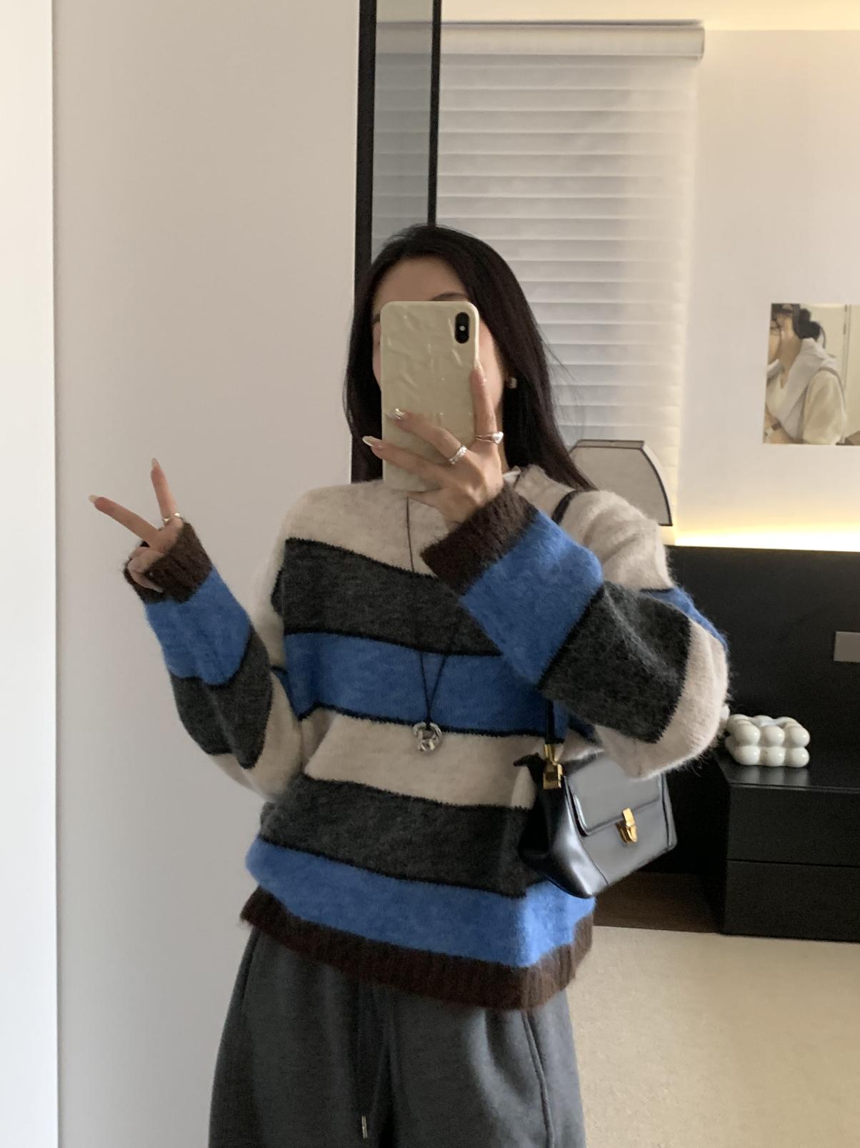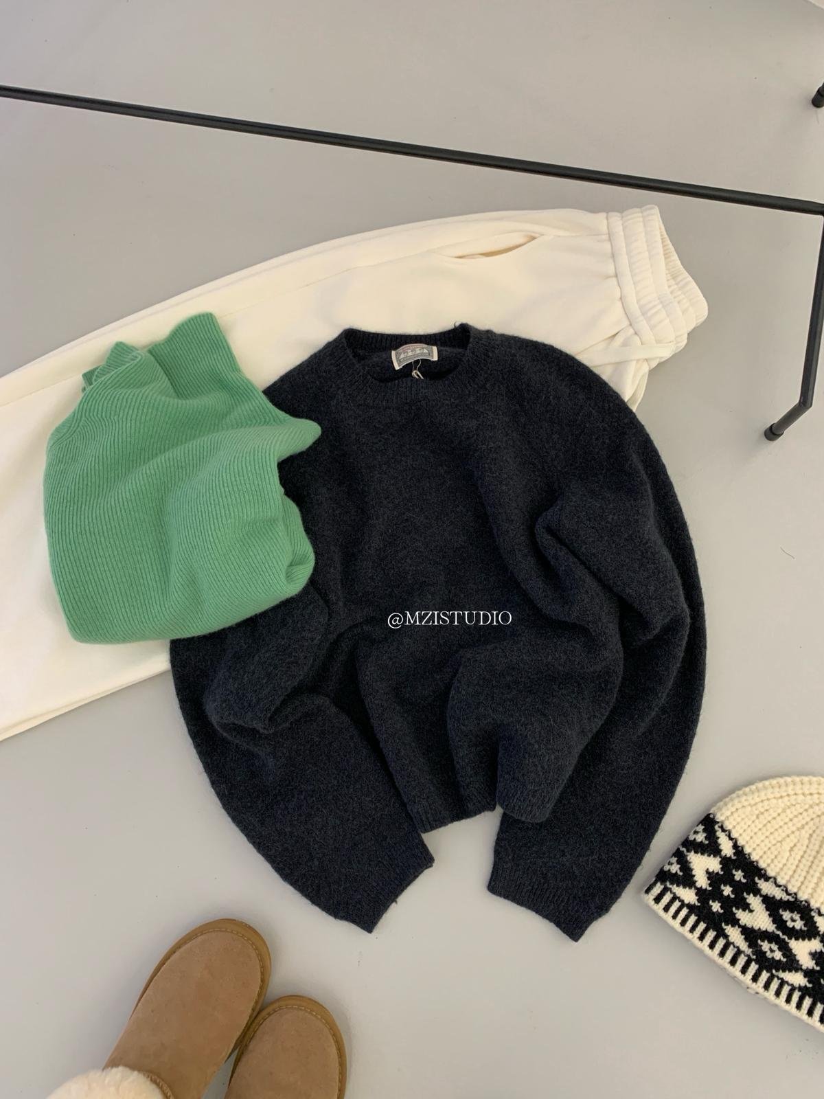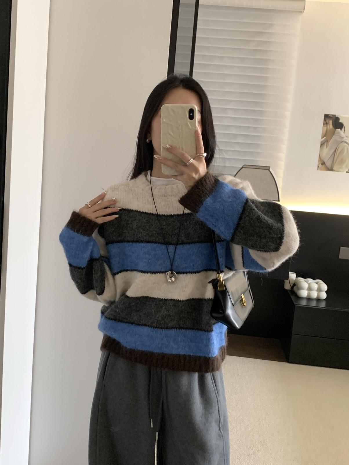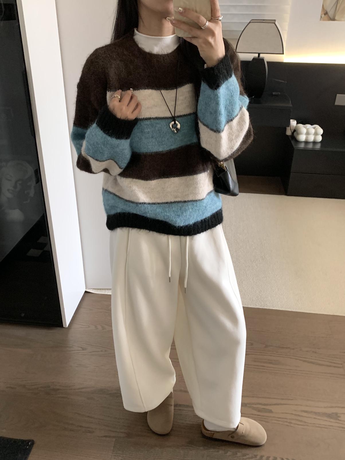 【C7987】韓系休閒撞色大版套頭保暖毛衣
