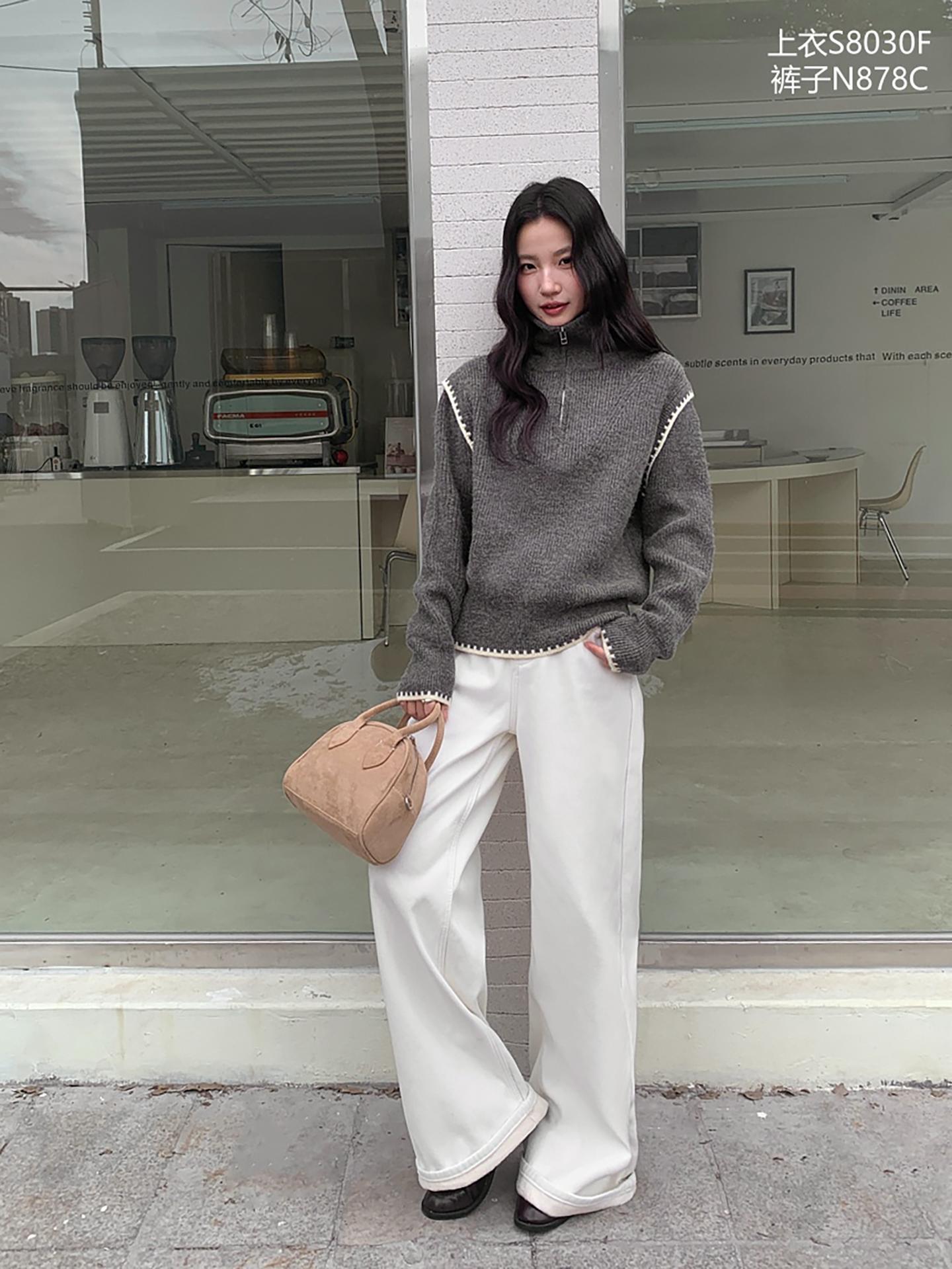【C7943】鬆馳感寬鬆加絨保暖高腰直筒休閒褲休閒褲