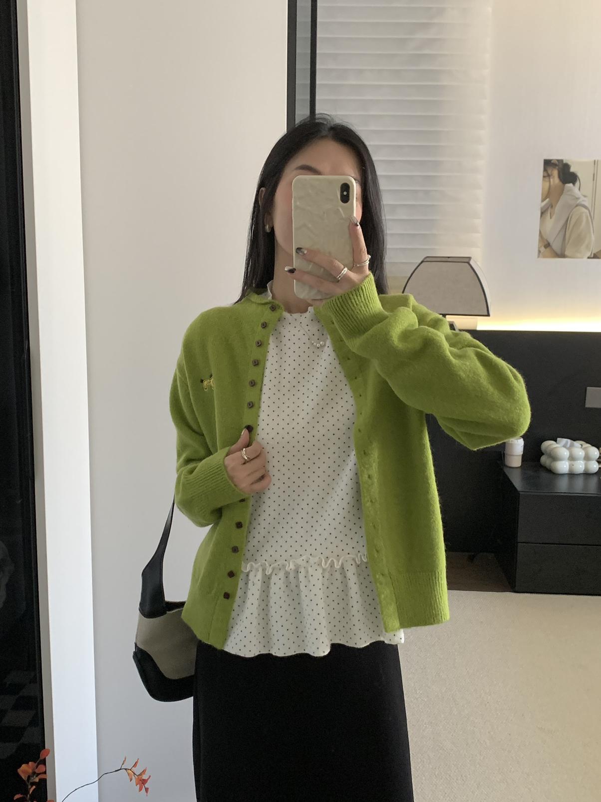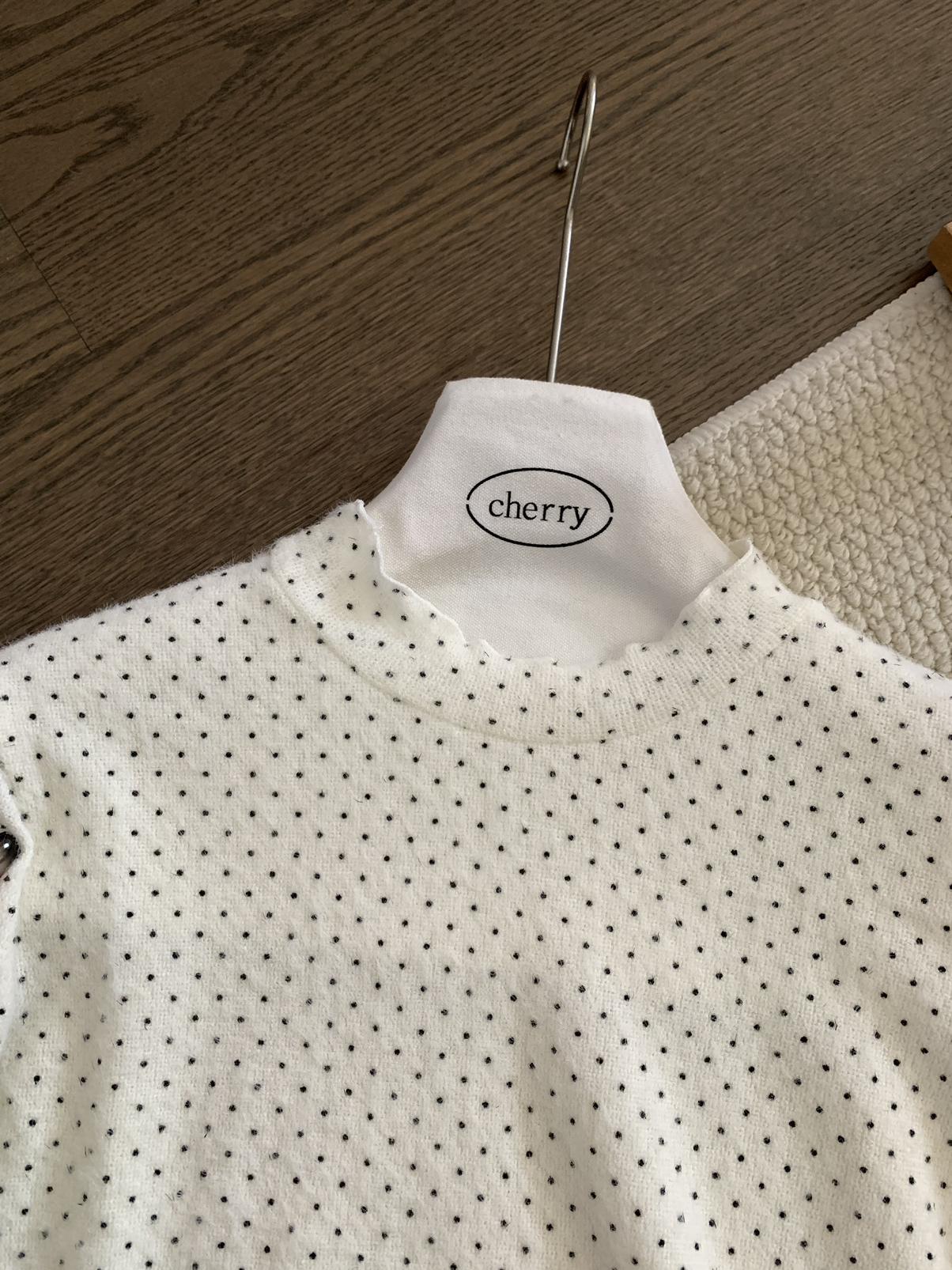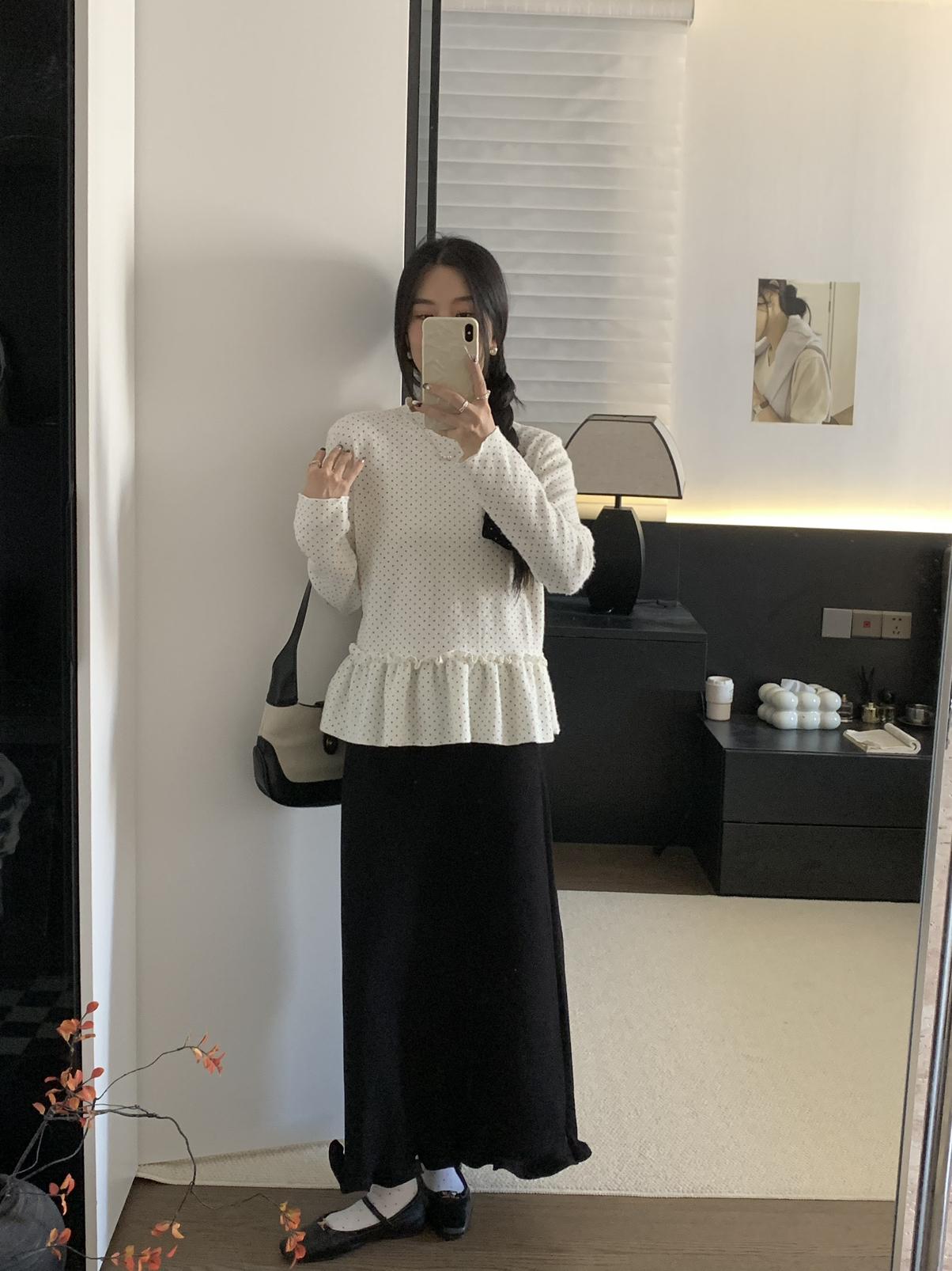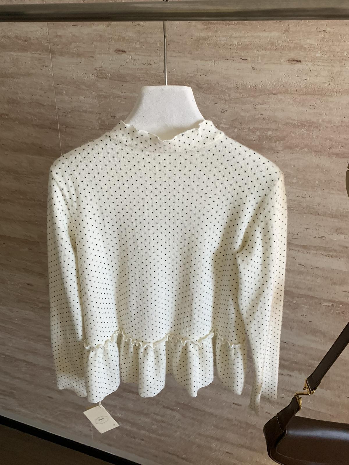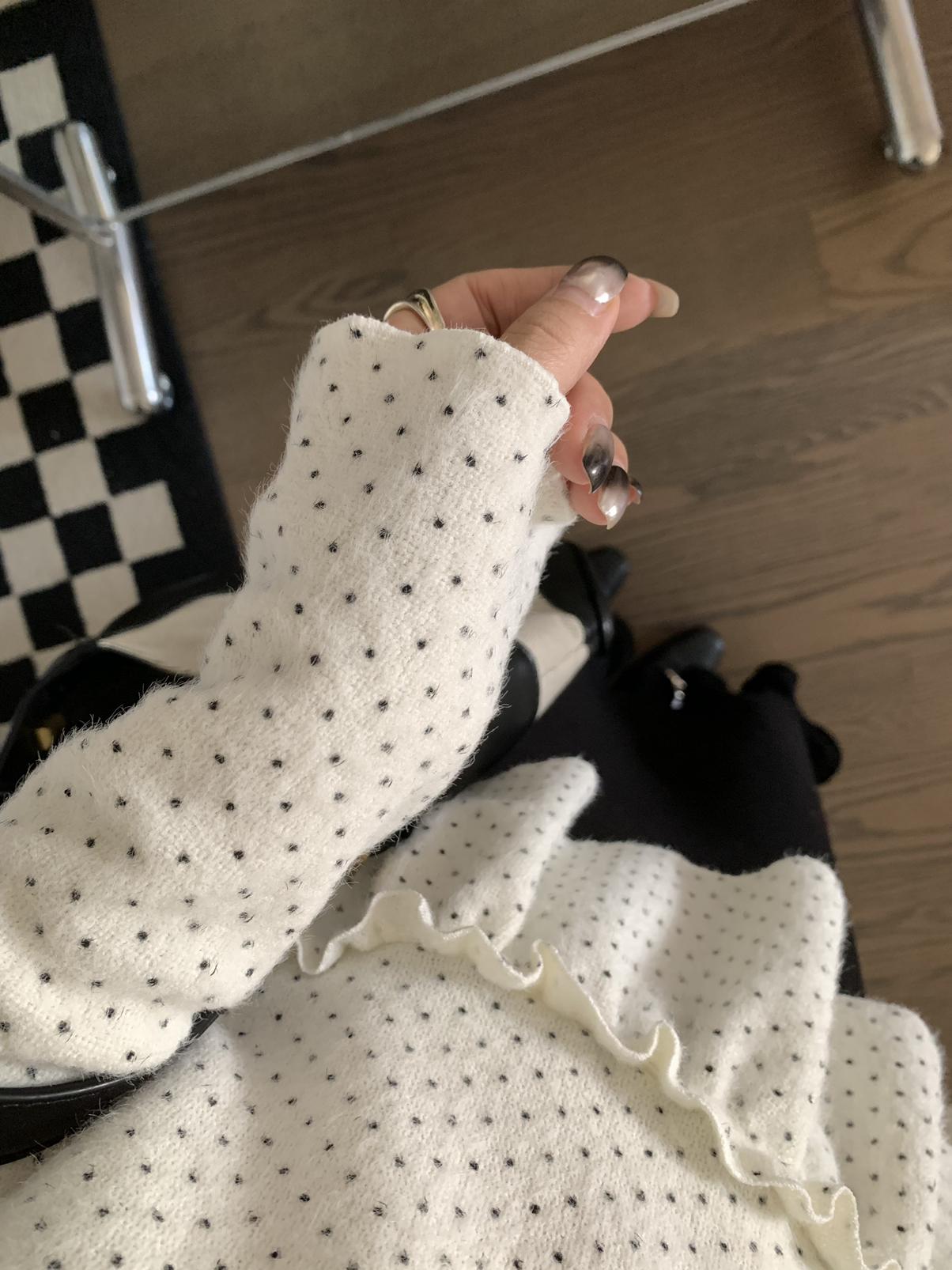 【C7966】韓系波點中領木耳邊寬鬆上衣打底衫