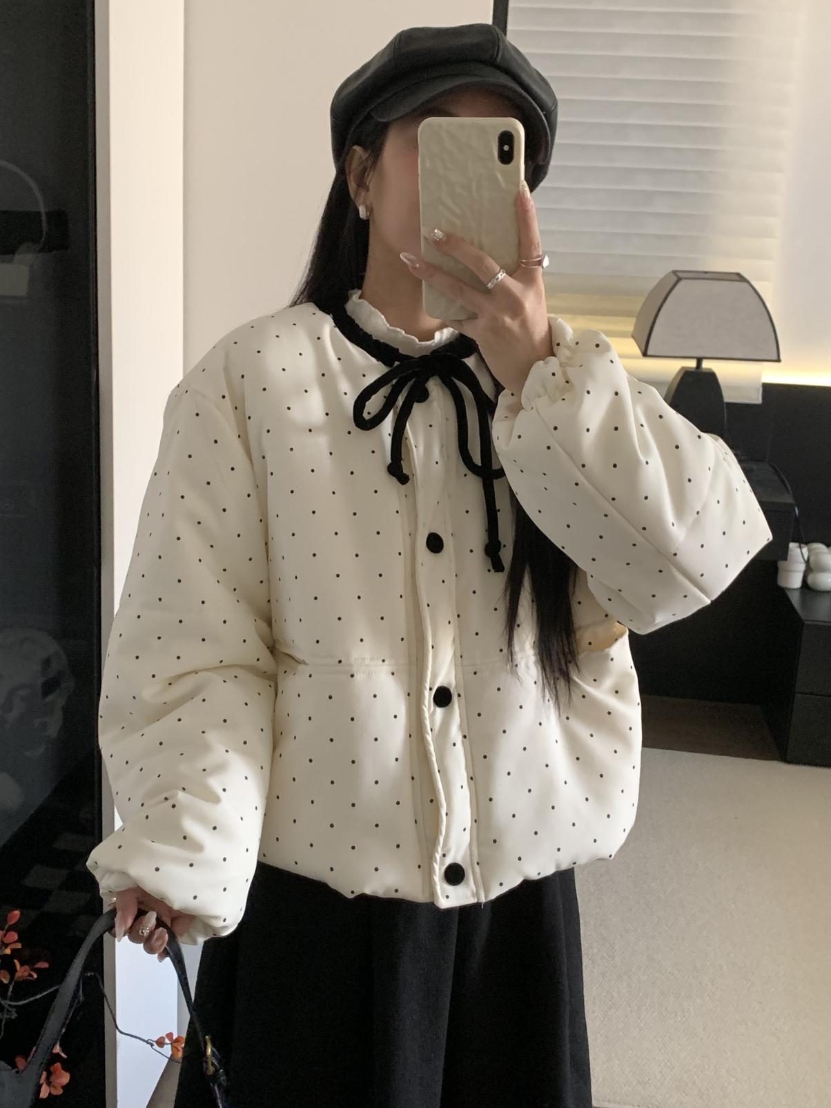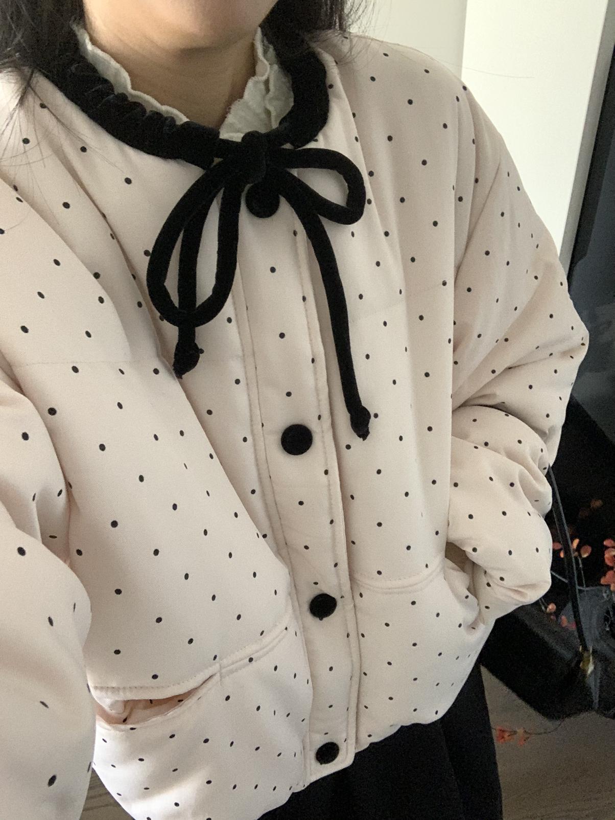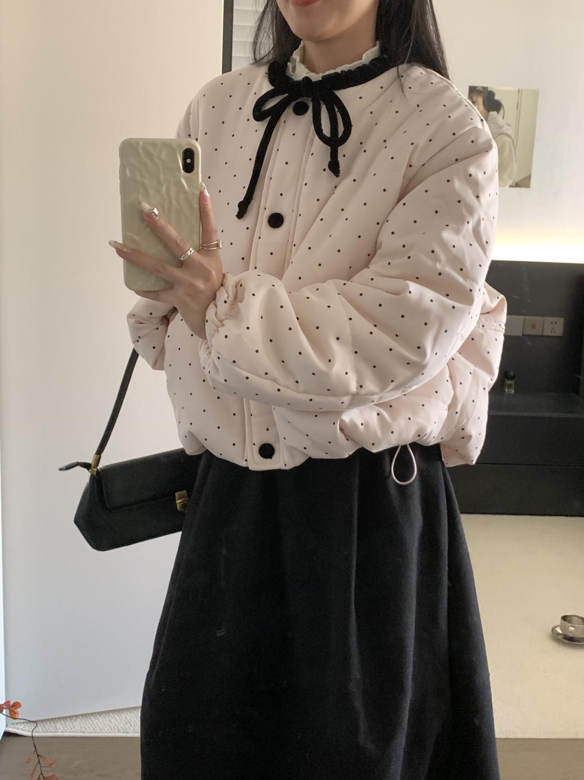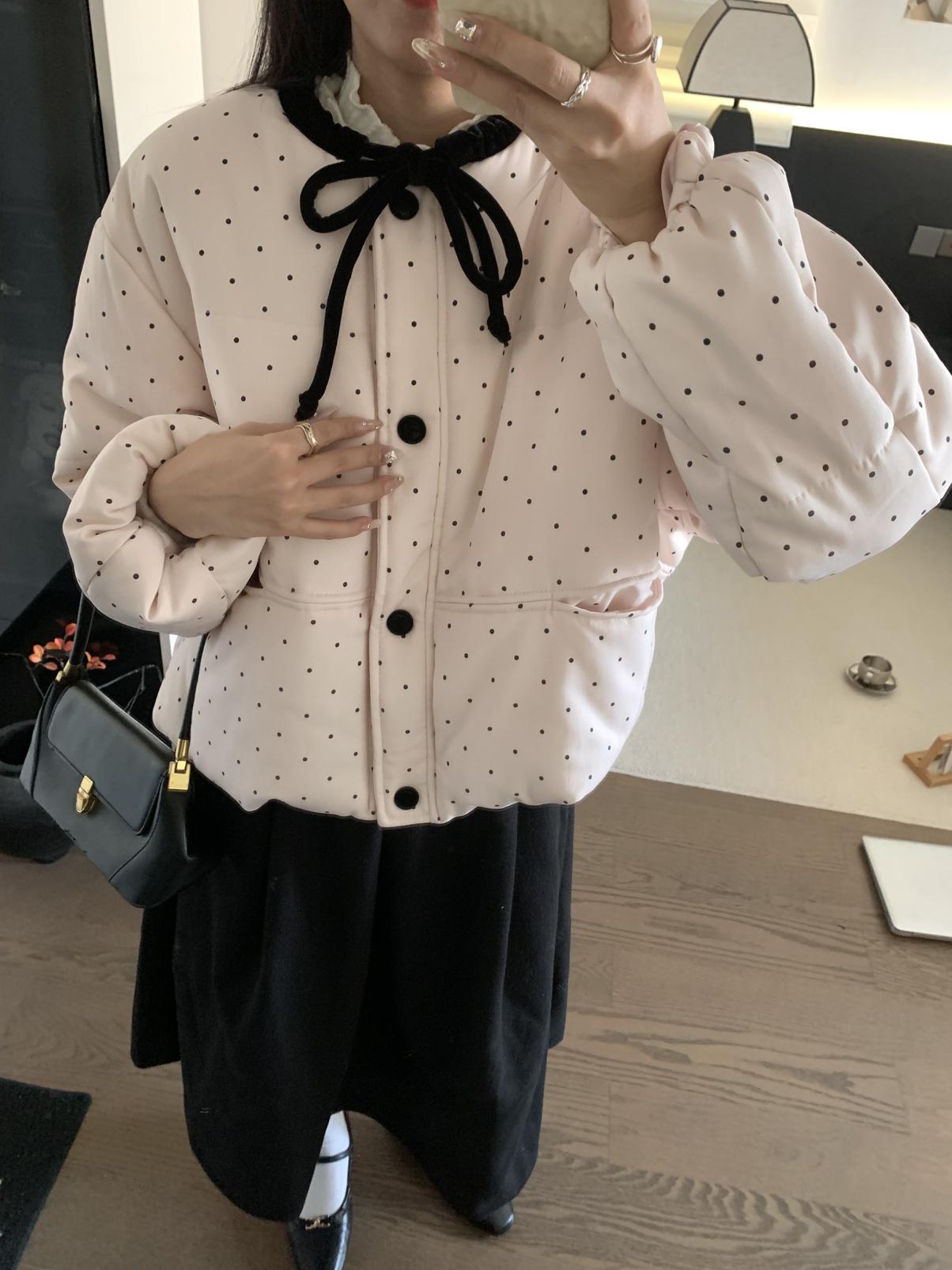 【C7968】韓系甜美波點蝴蝶結保暖外套棉服