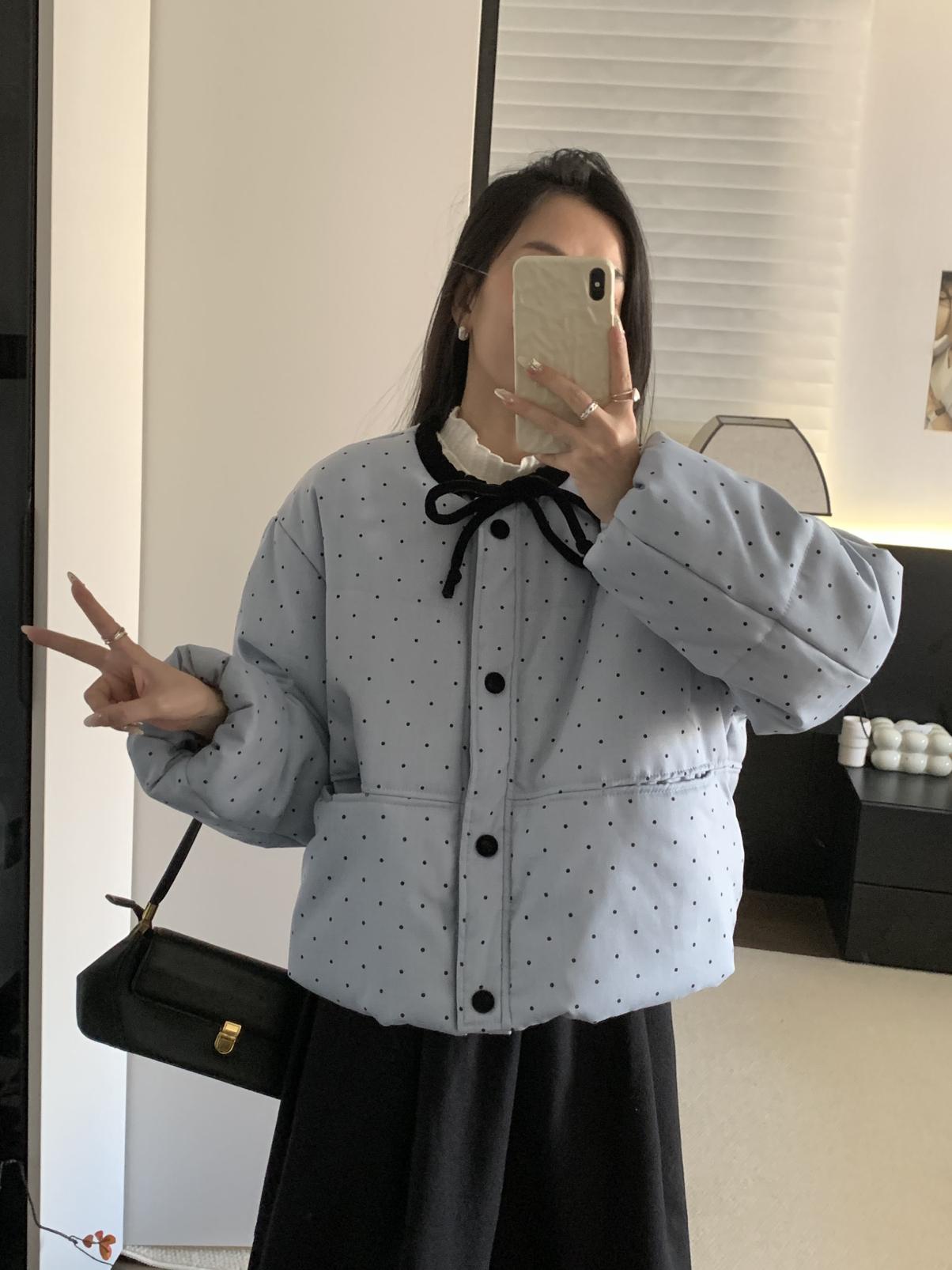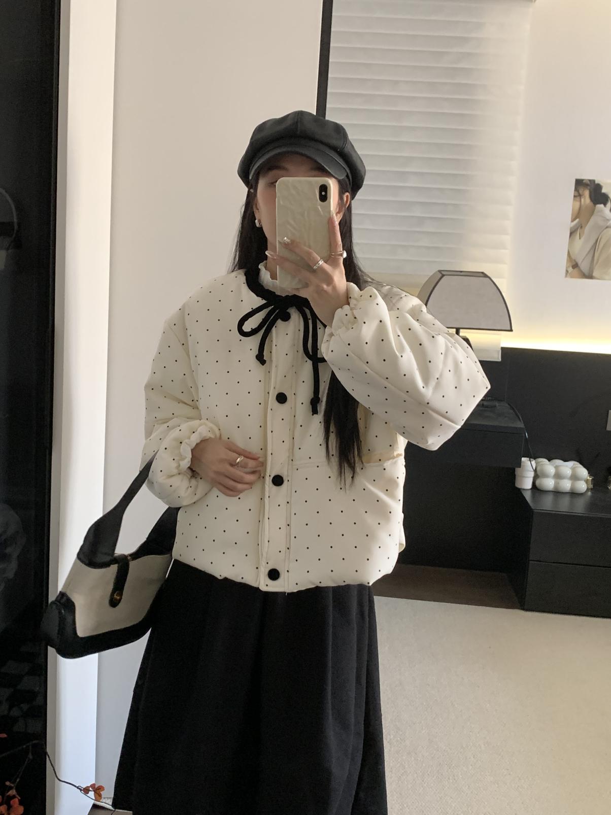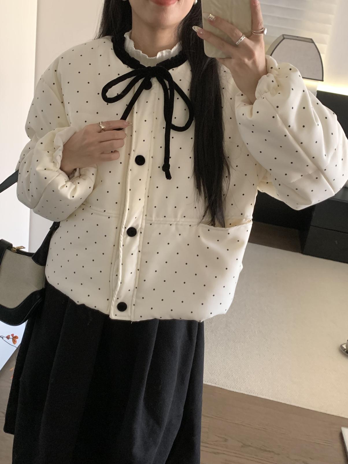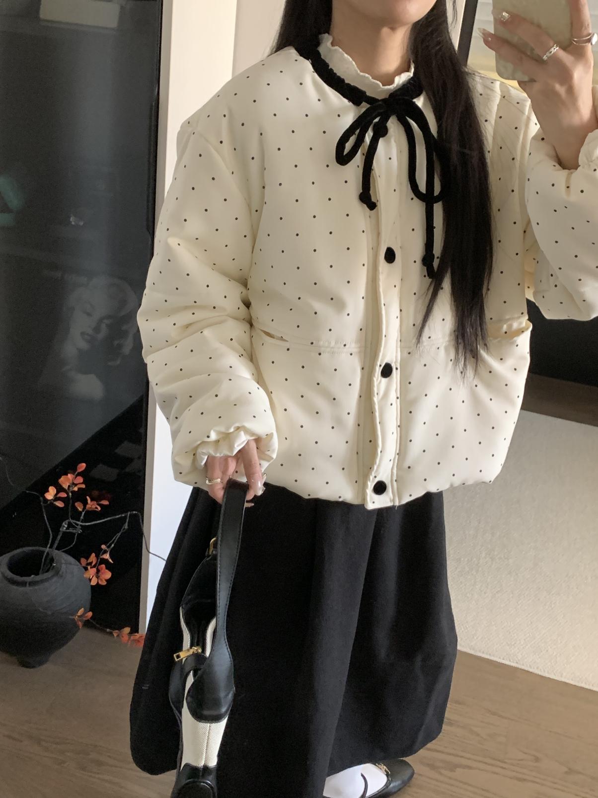 【C7968】韓系甜美波點蝴蝶結保暖外套棉服
