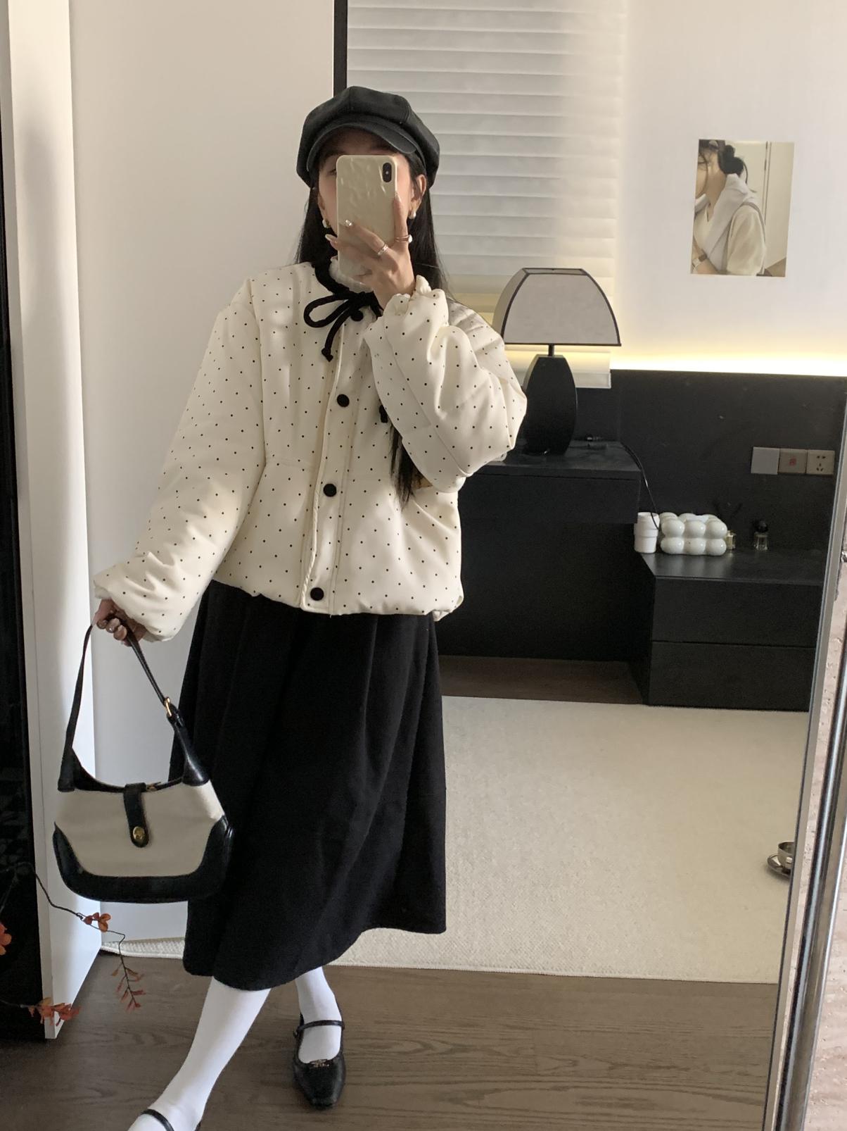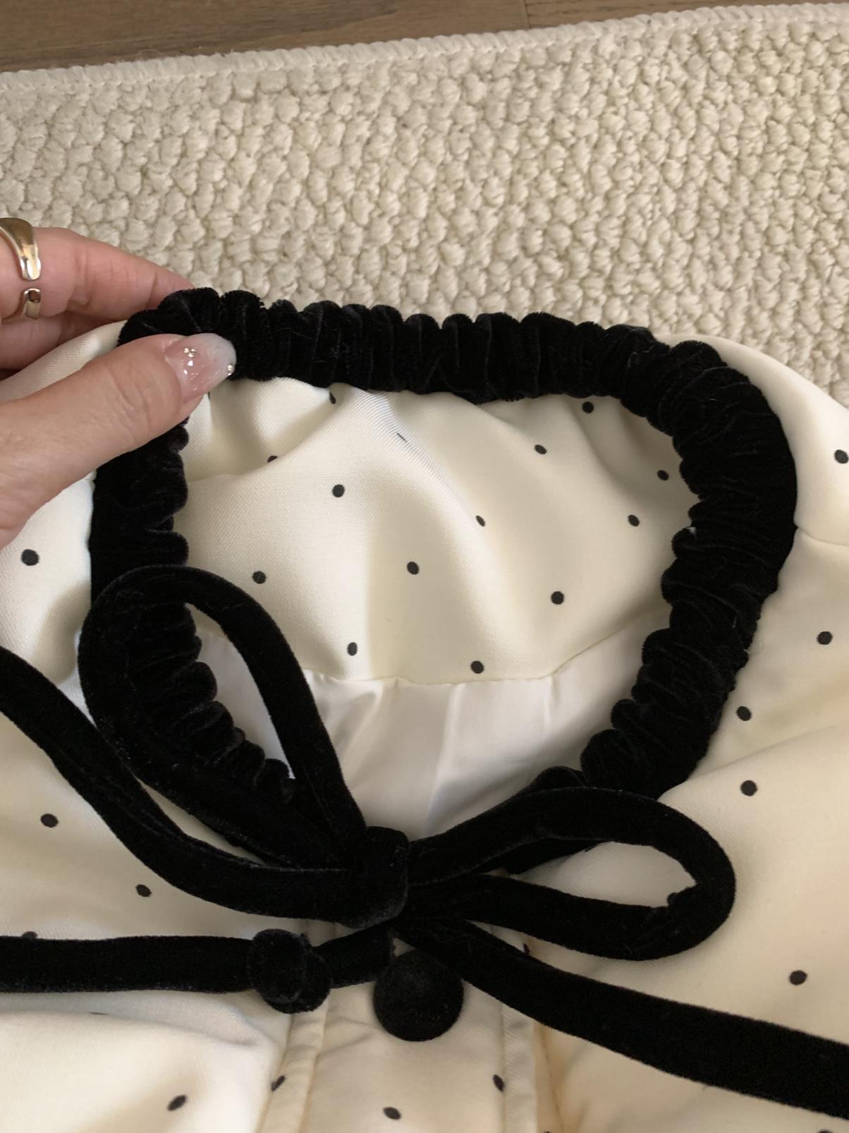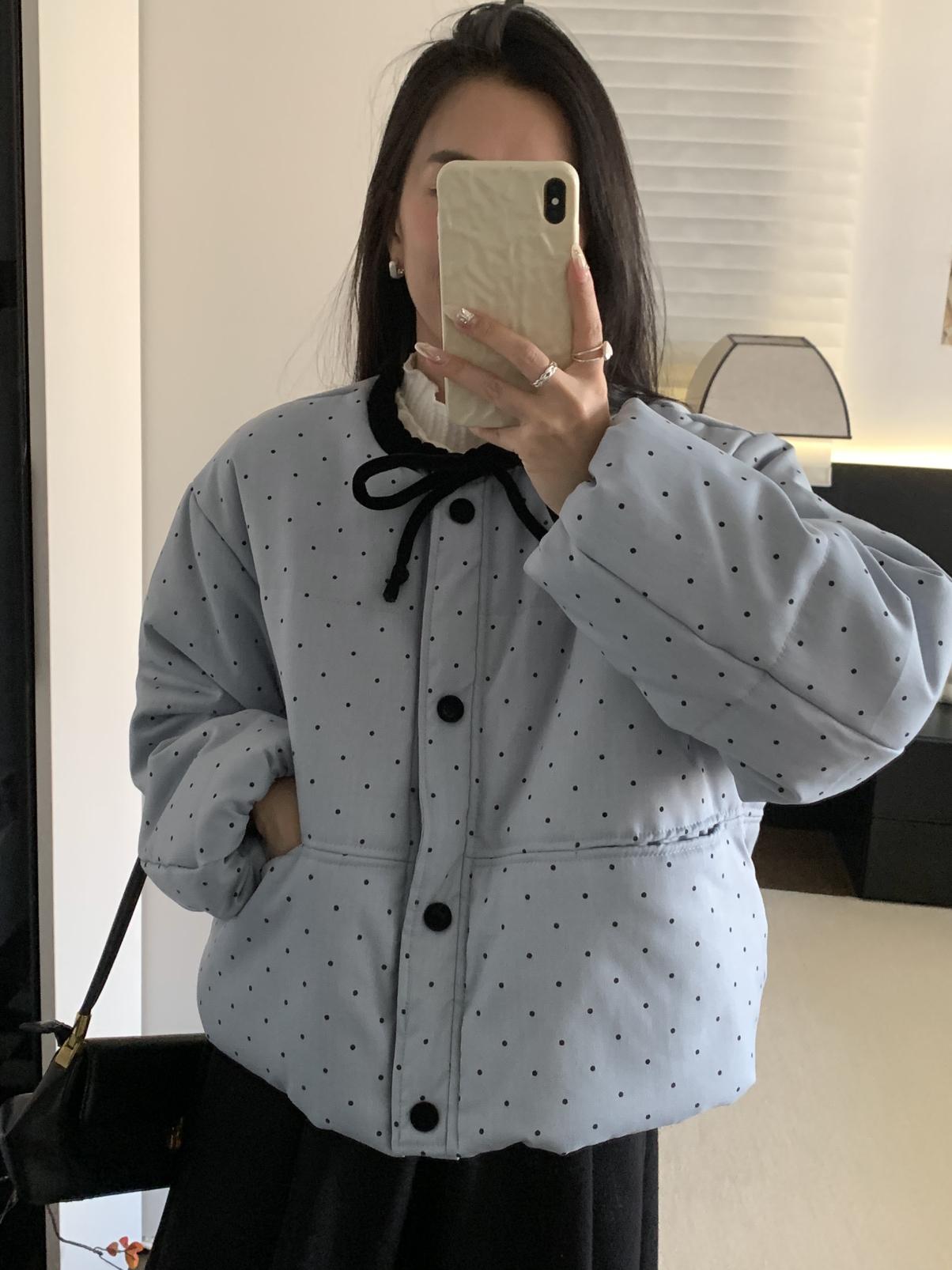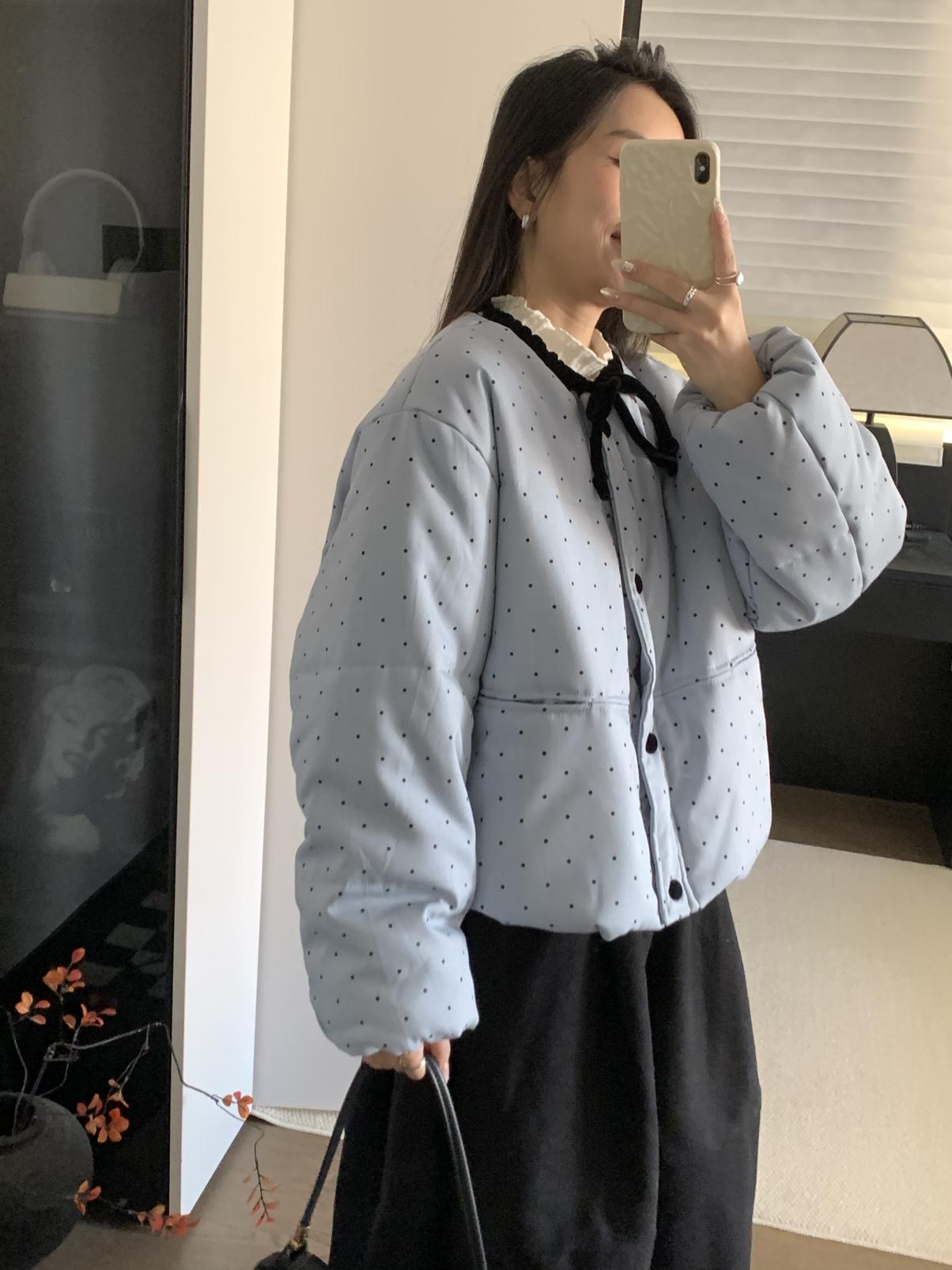 【C7968】韓系甜美波點蝴蝶結保暖外套棉服