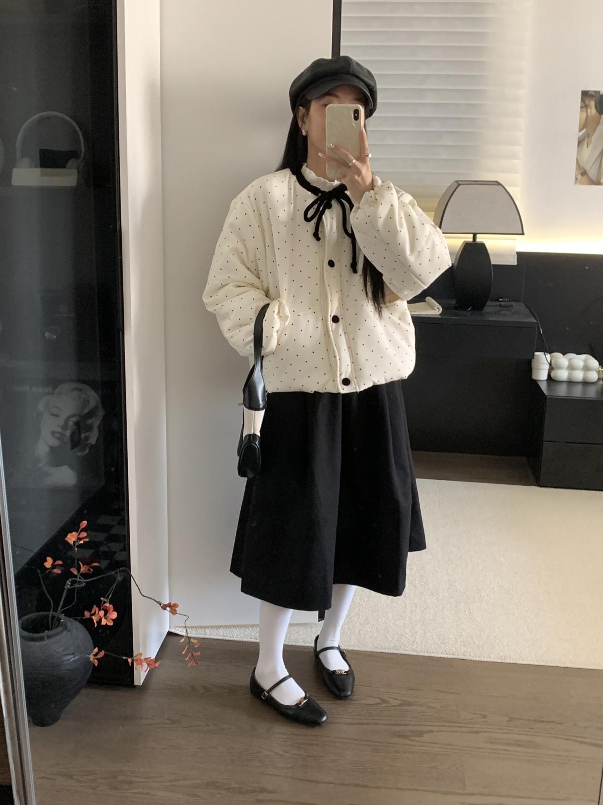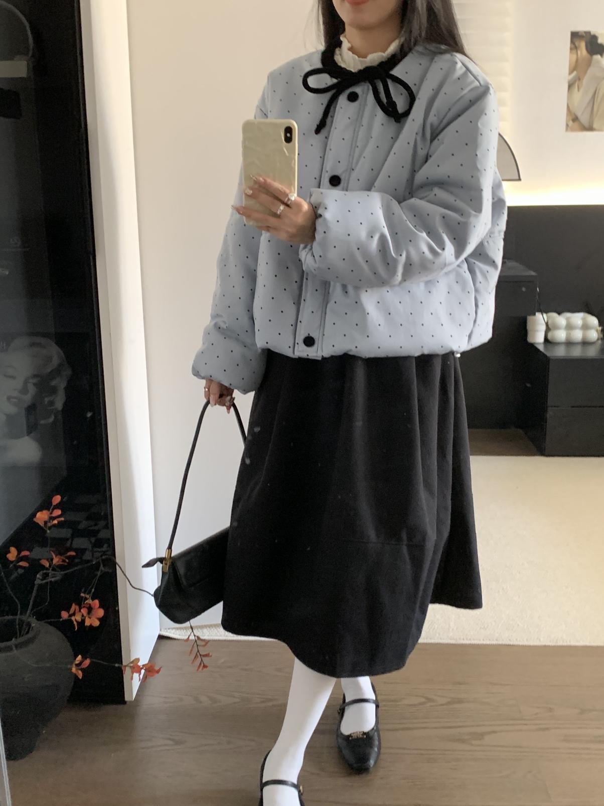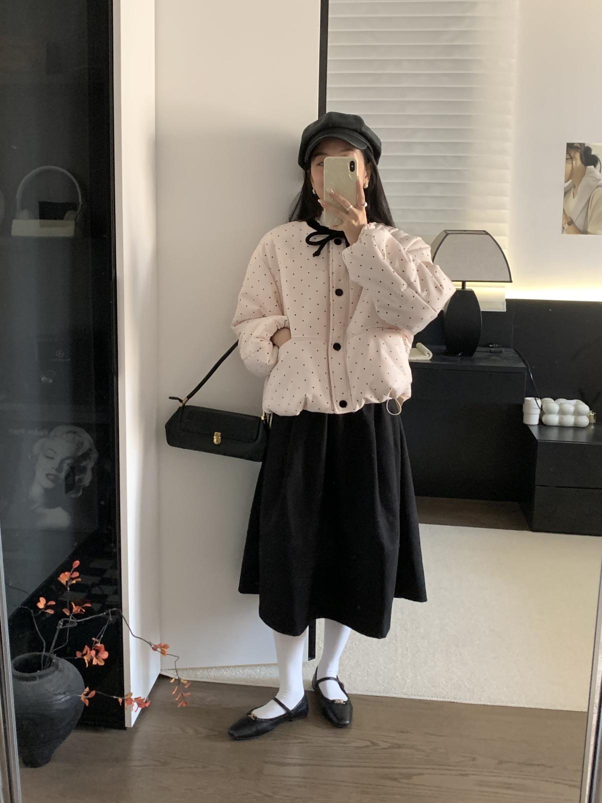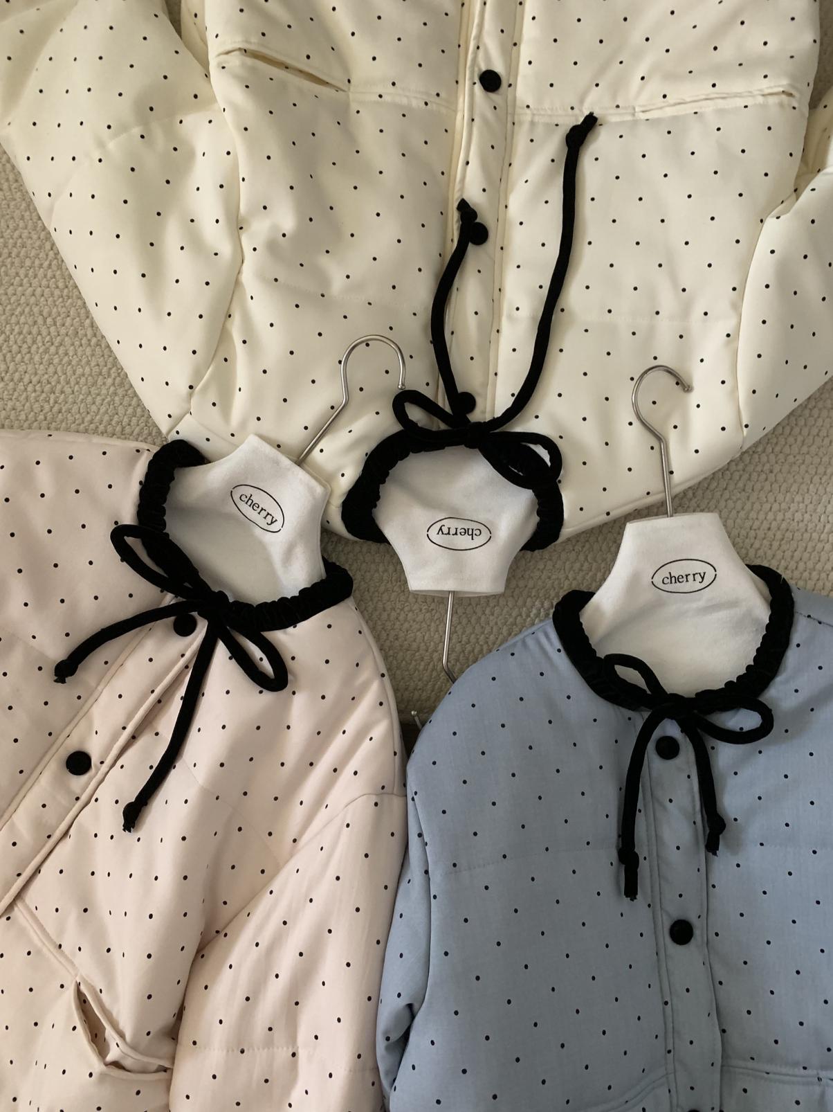 【C7968】韓系甜美波點蝴蝶結保暖外套棉服