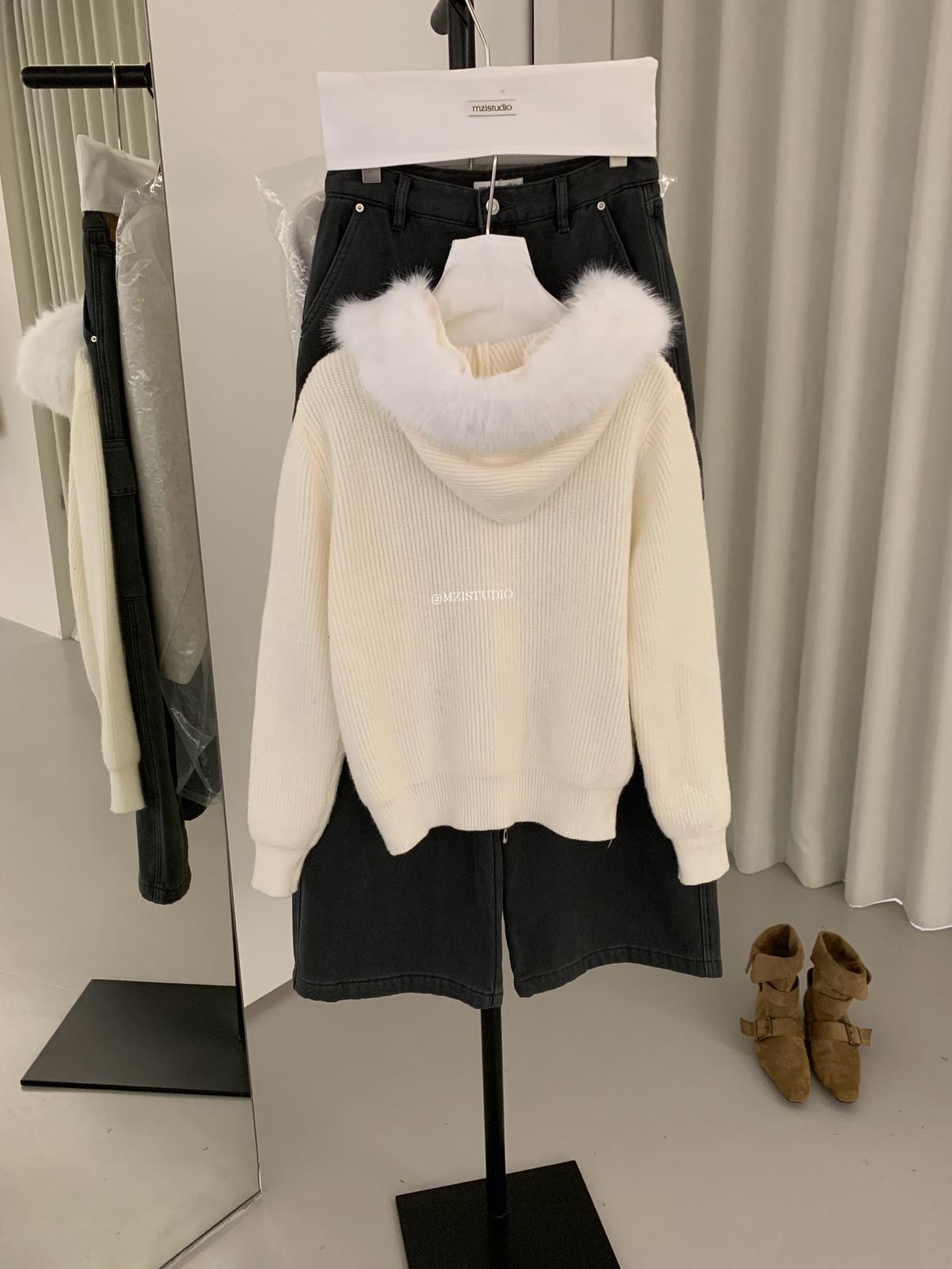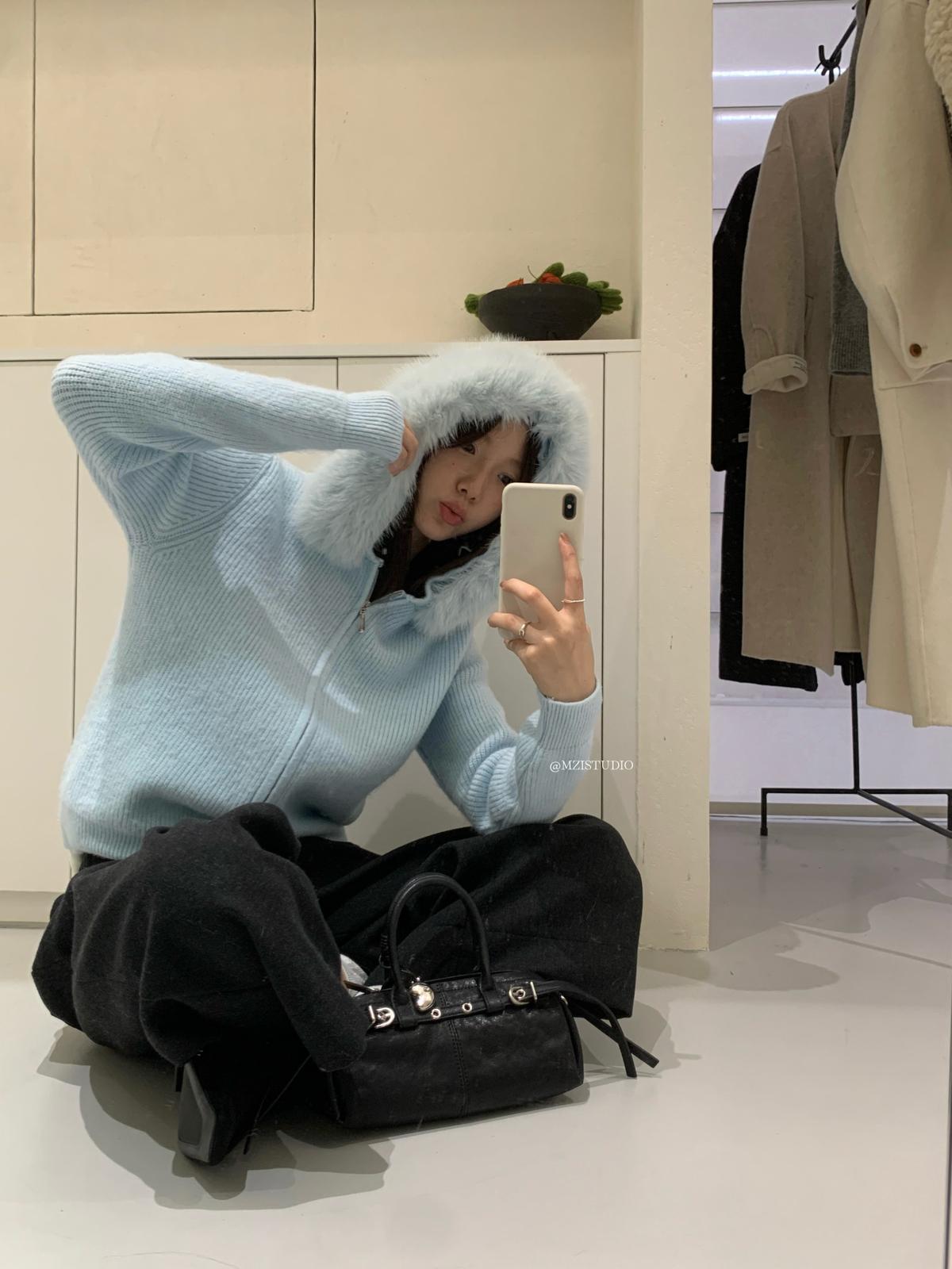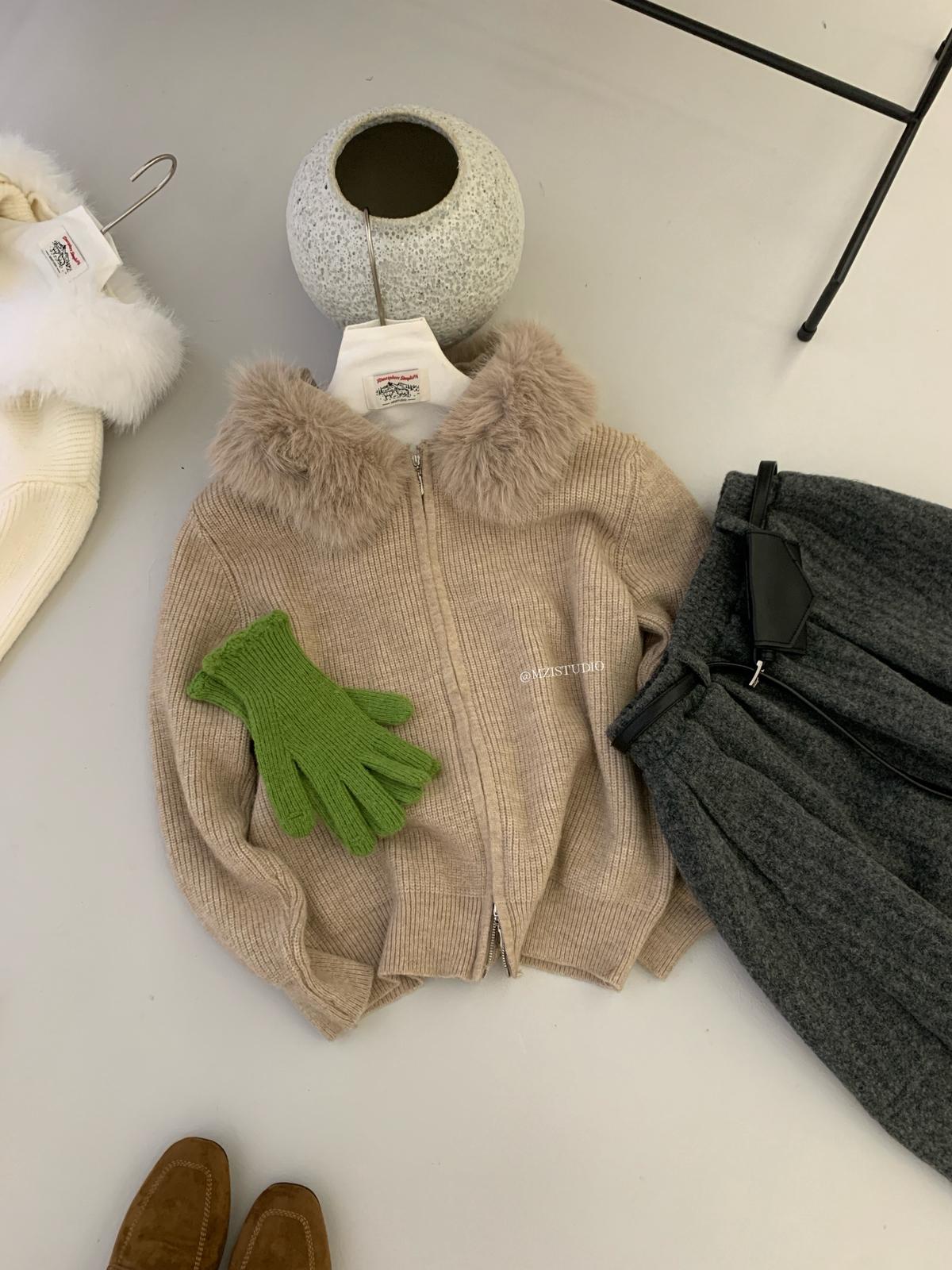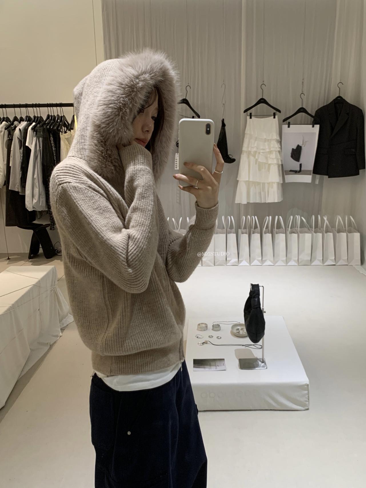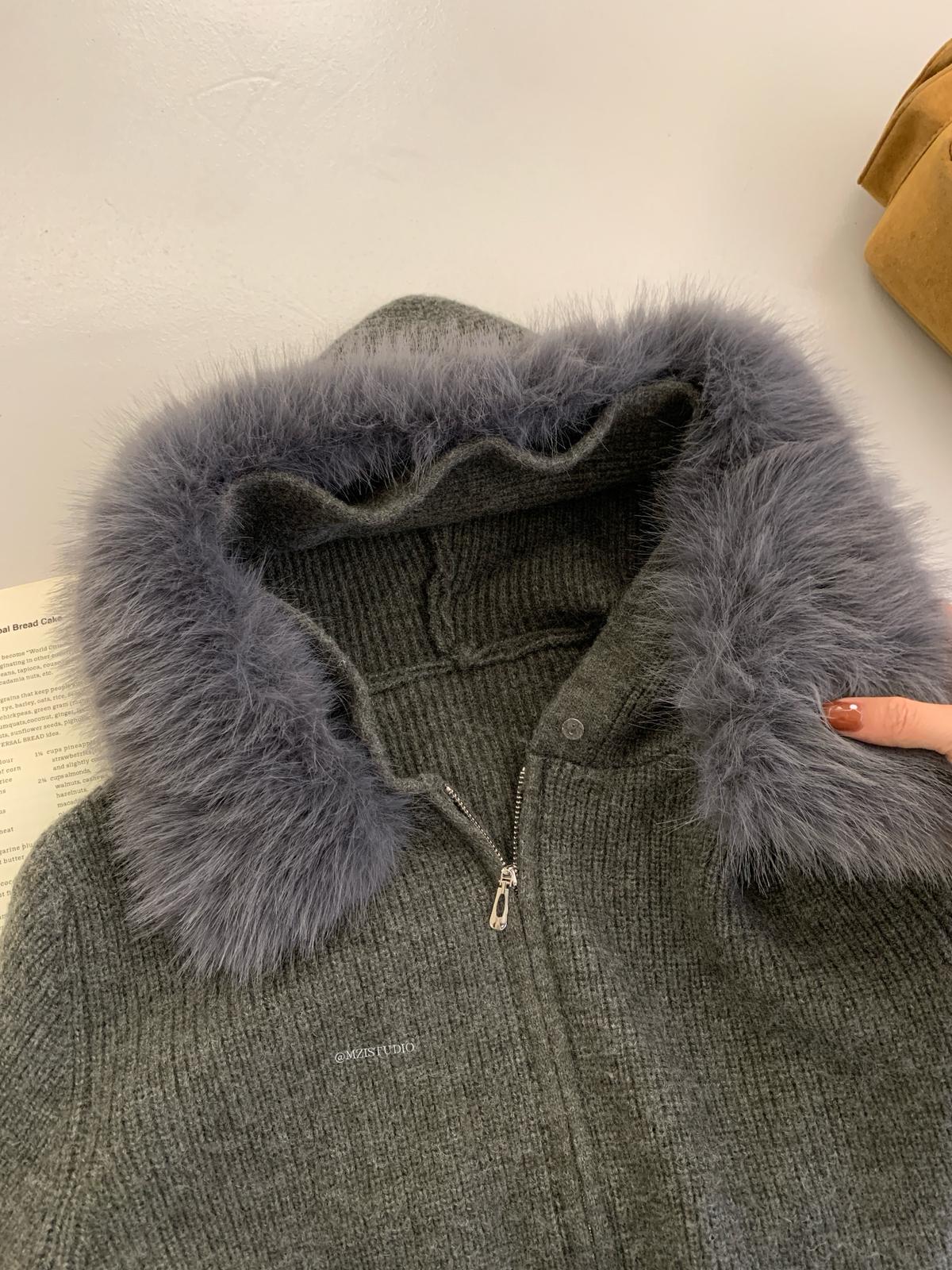 【C7970】冬日糯米糰子韓標可拆卸毛毛連帽拉鍊軟糯親膚簡約針織開衫