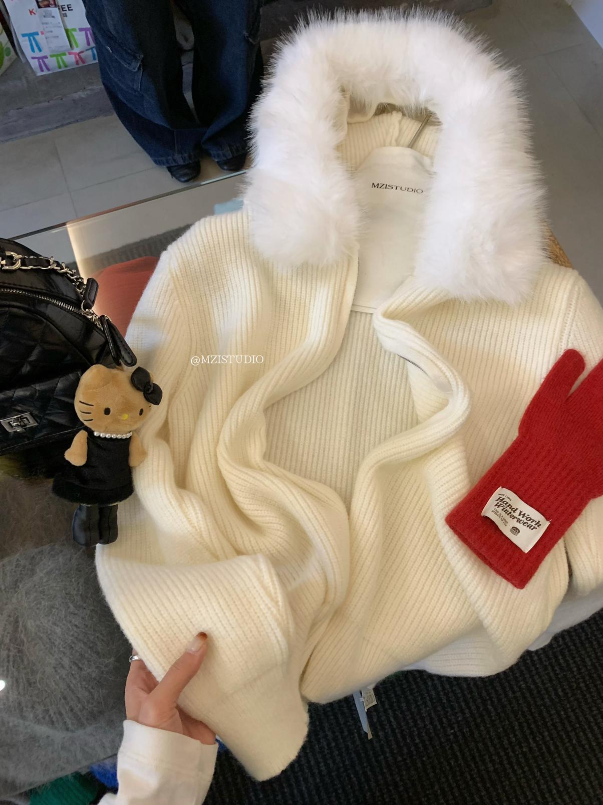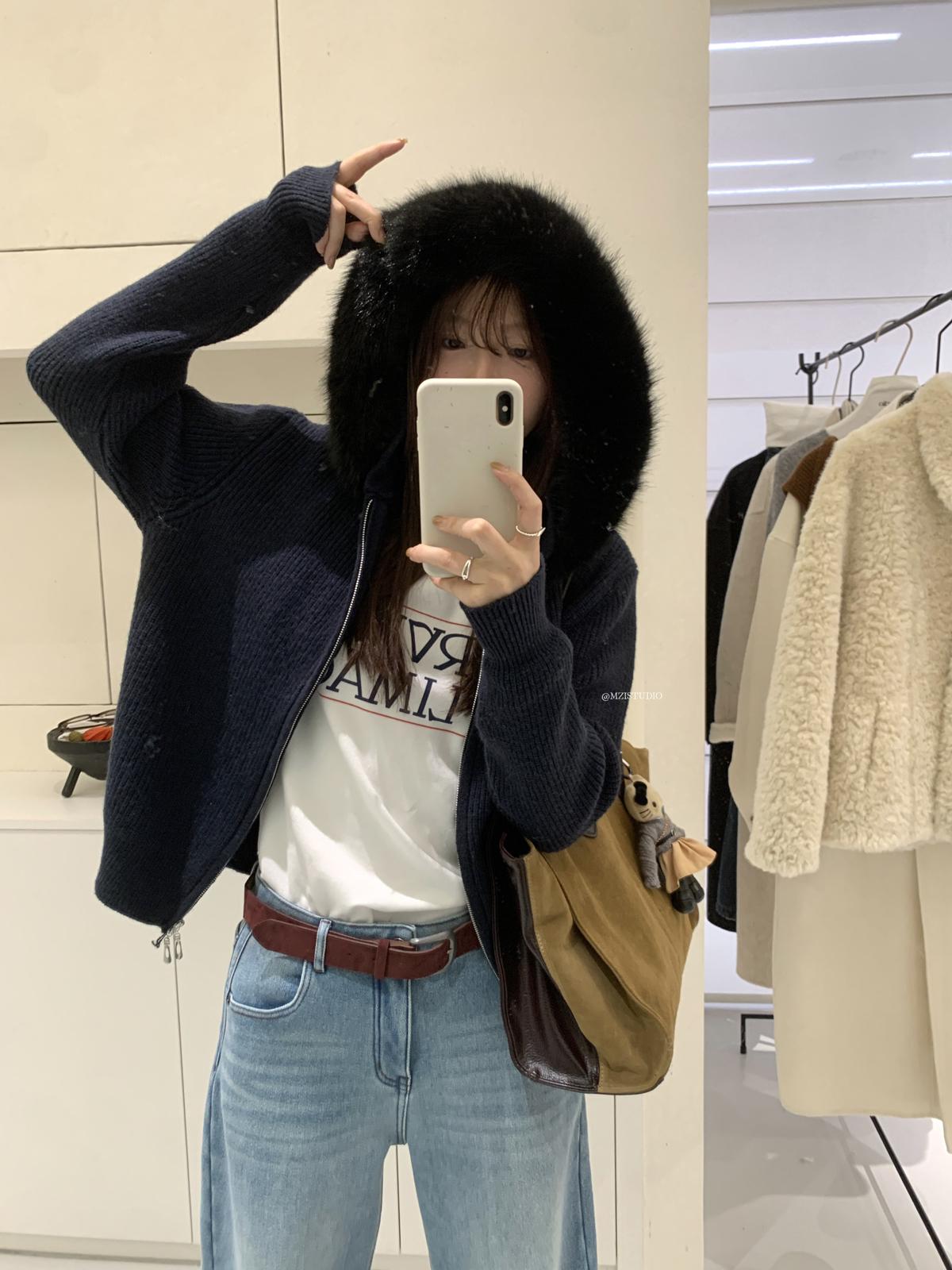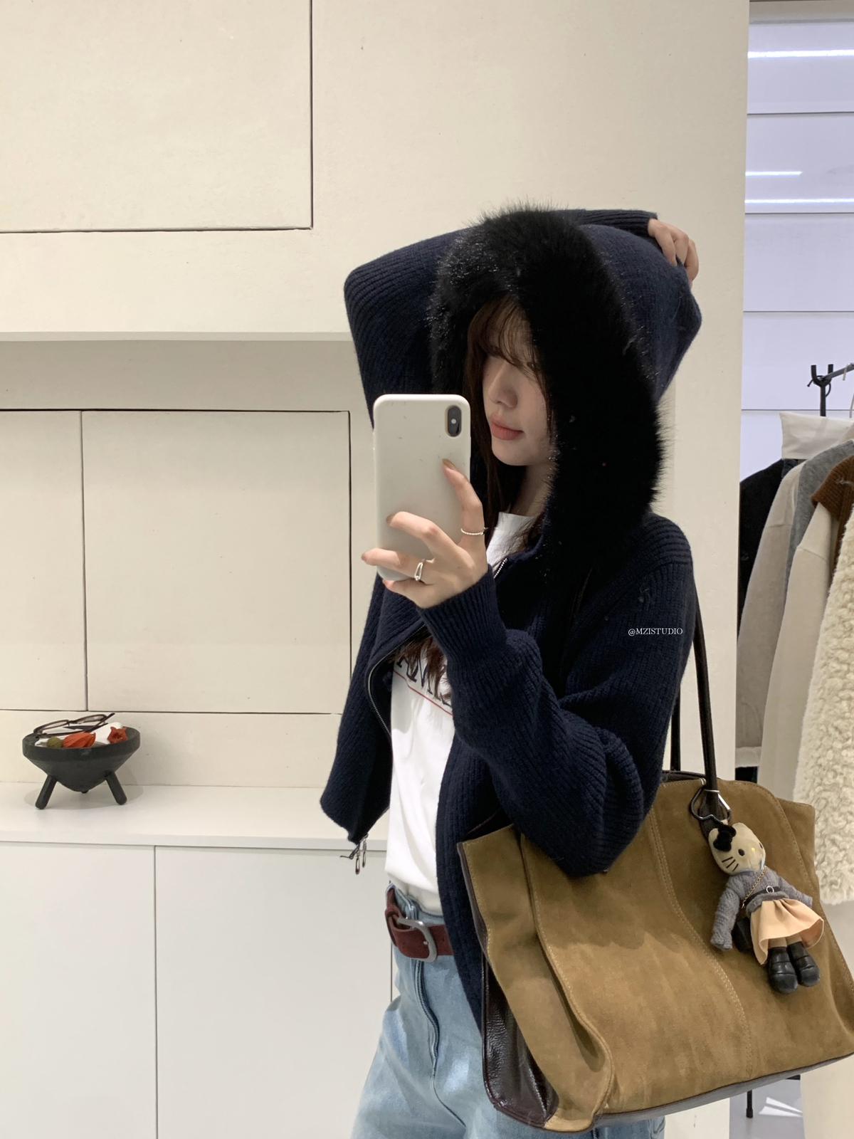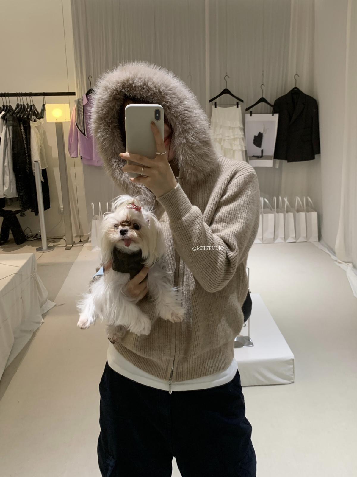 【C7970】冬日糯米糰子韓標可拆卸毛毛連帽拉鍊軟糯親膚簡約針織開衫
