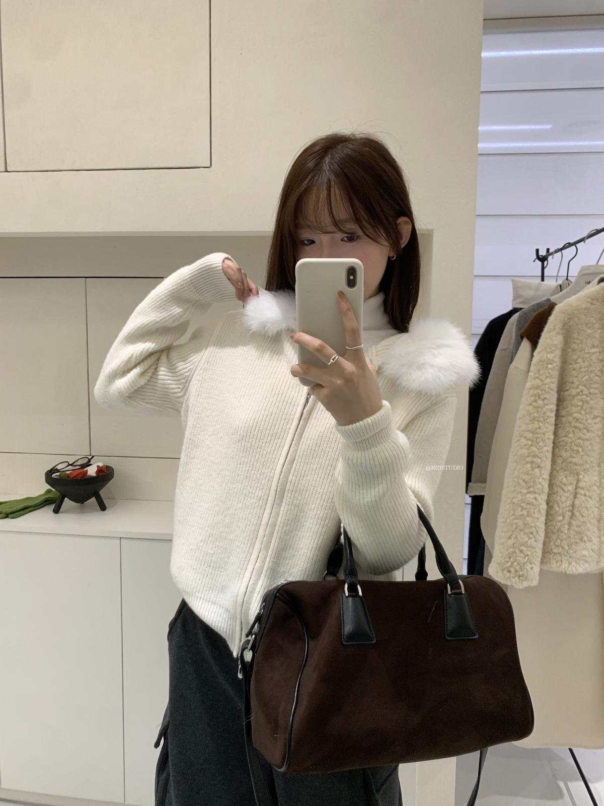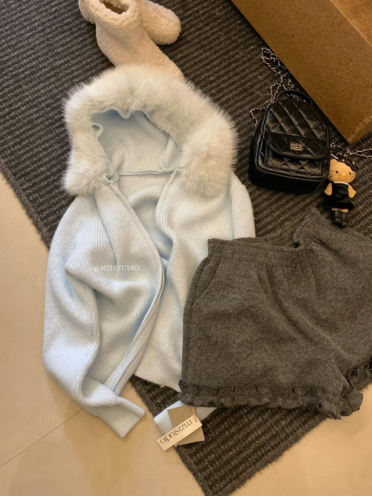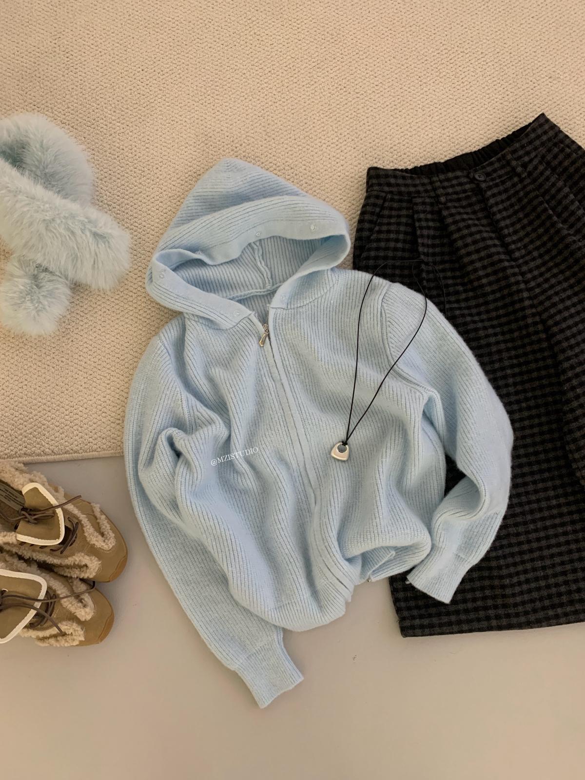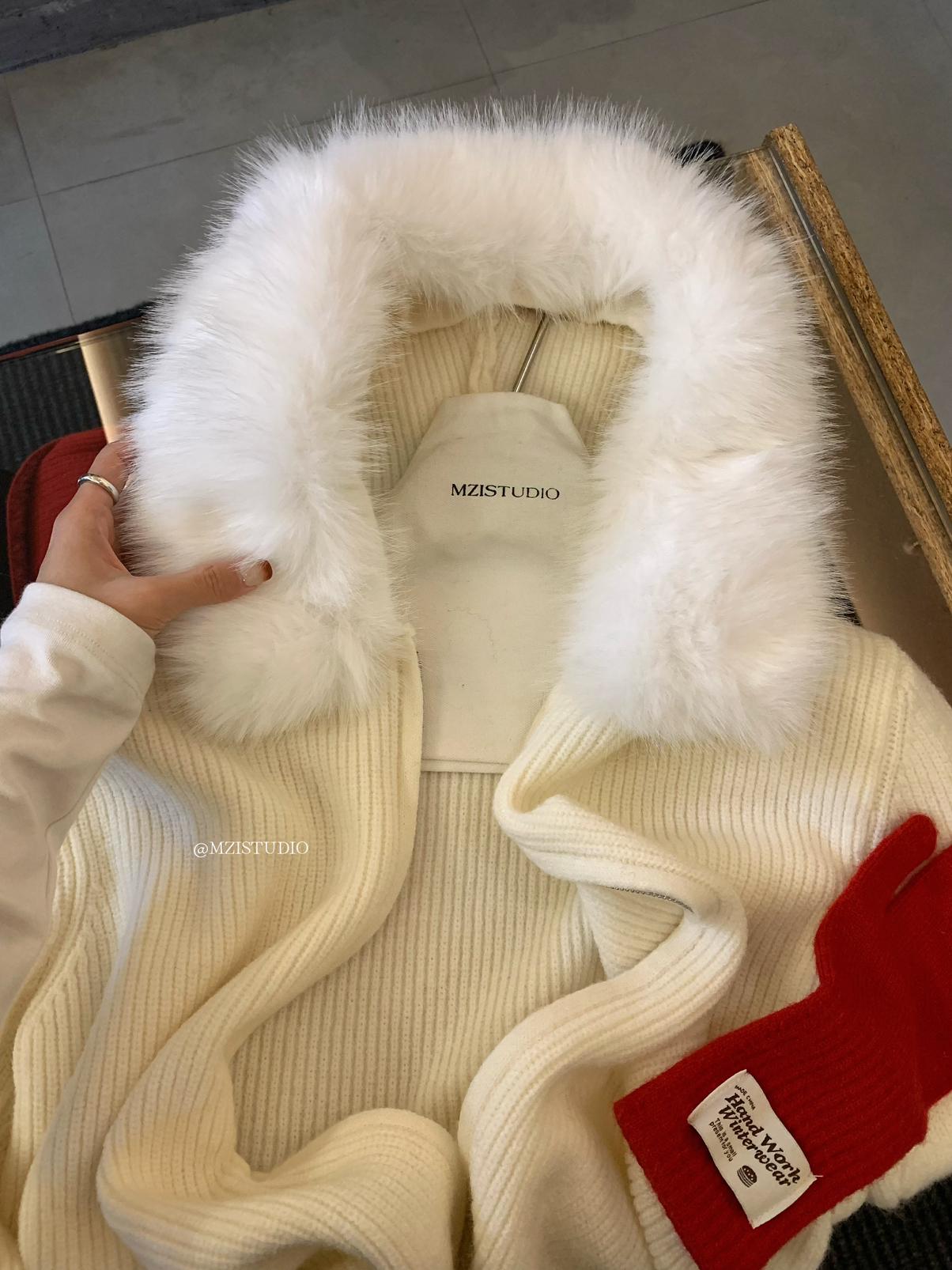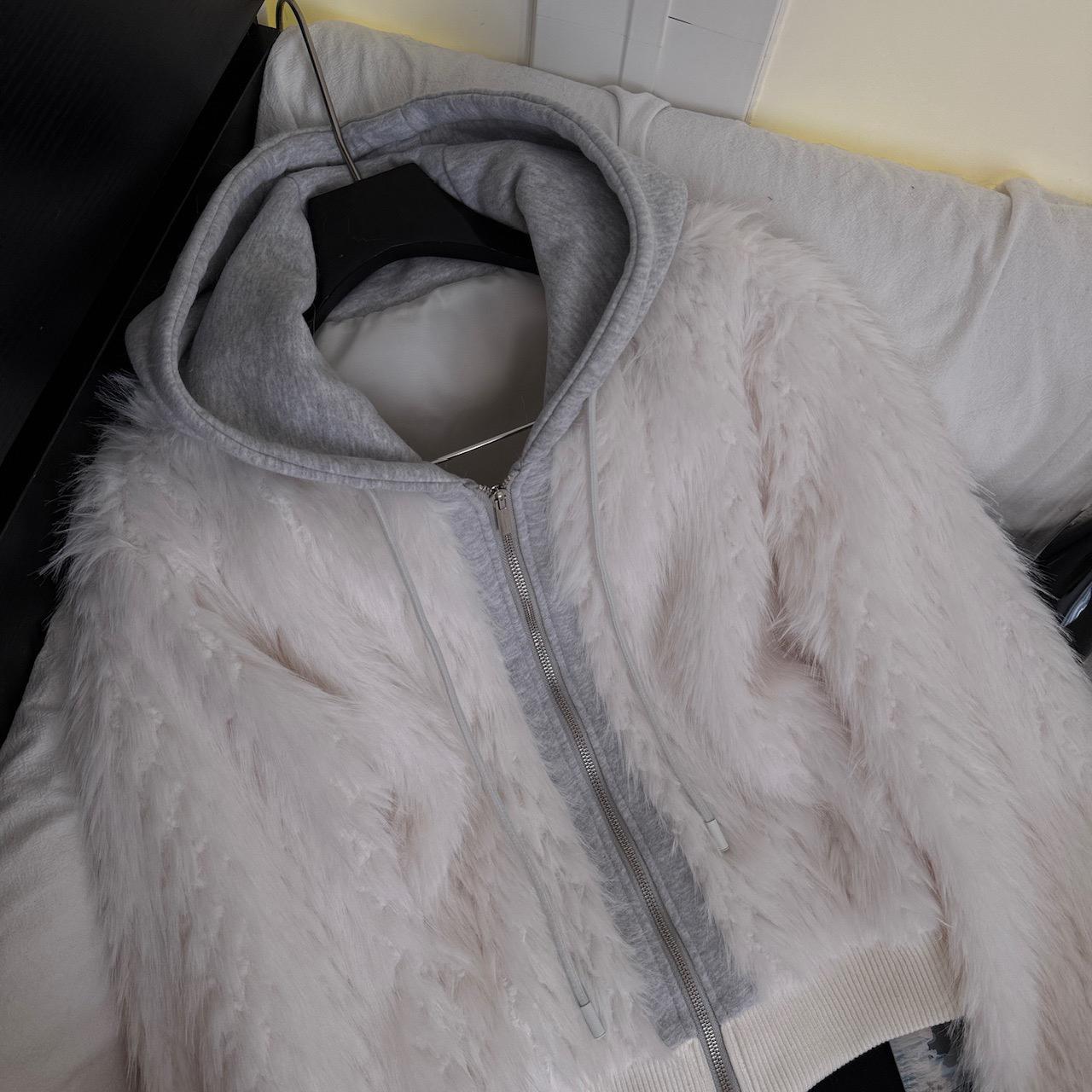 【C7970】冬日糯米糰子韓標可拆卸毛毛連帽拉鍊軟糯親膚簡約針織開衫