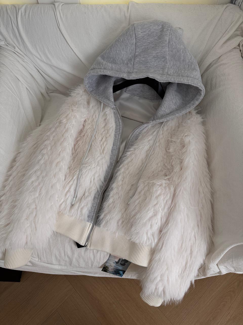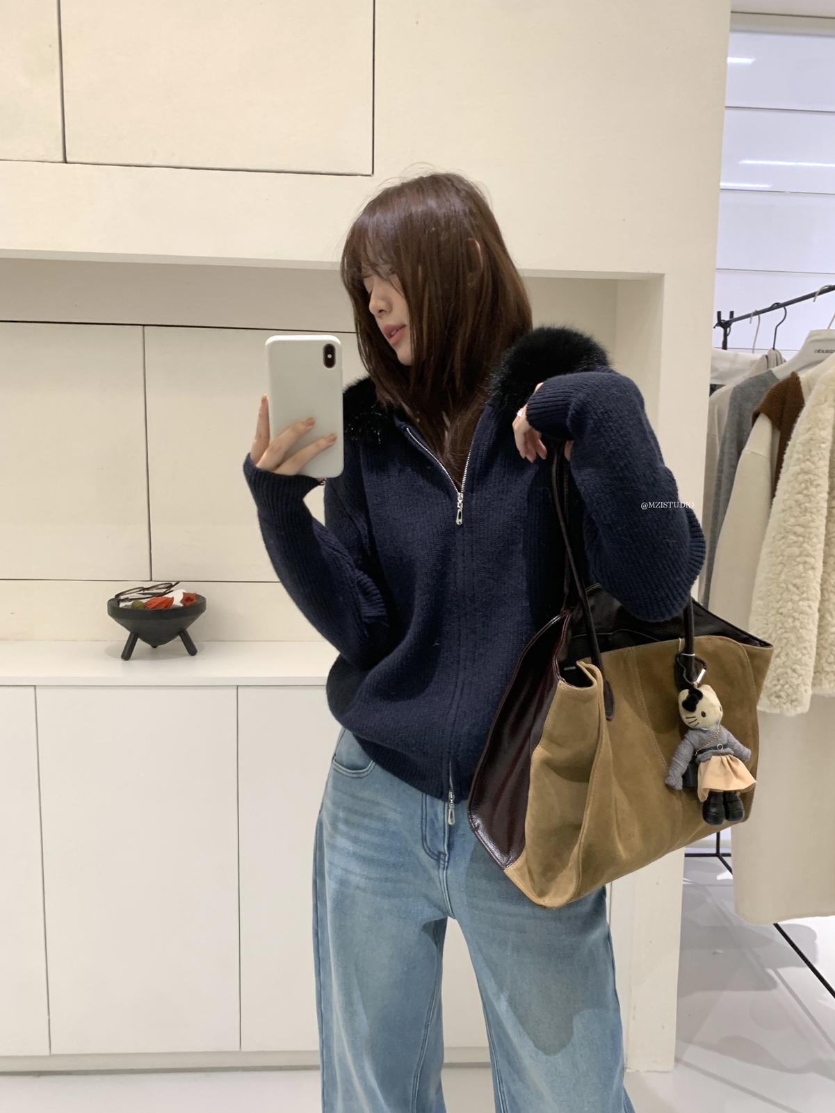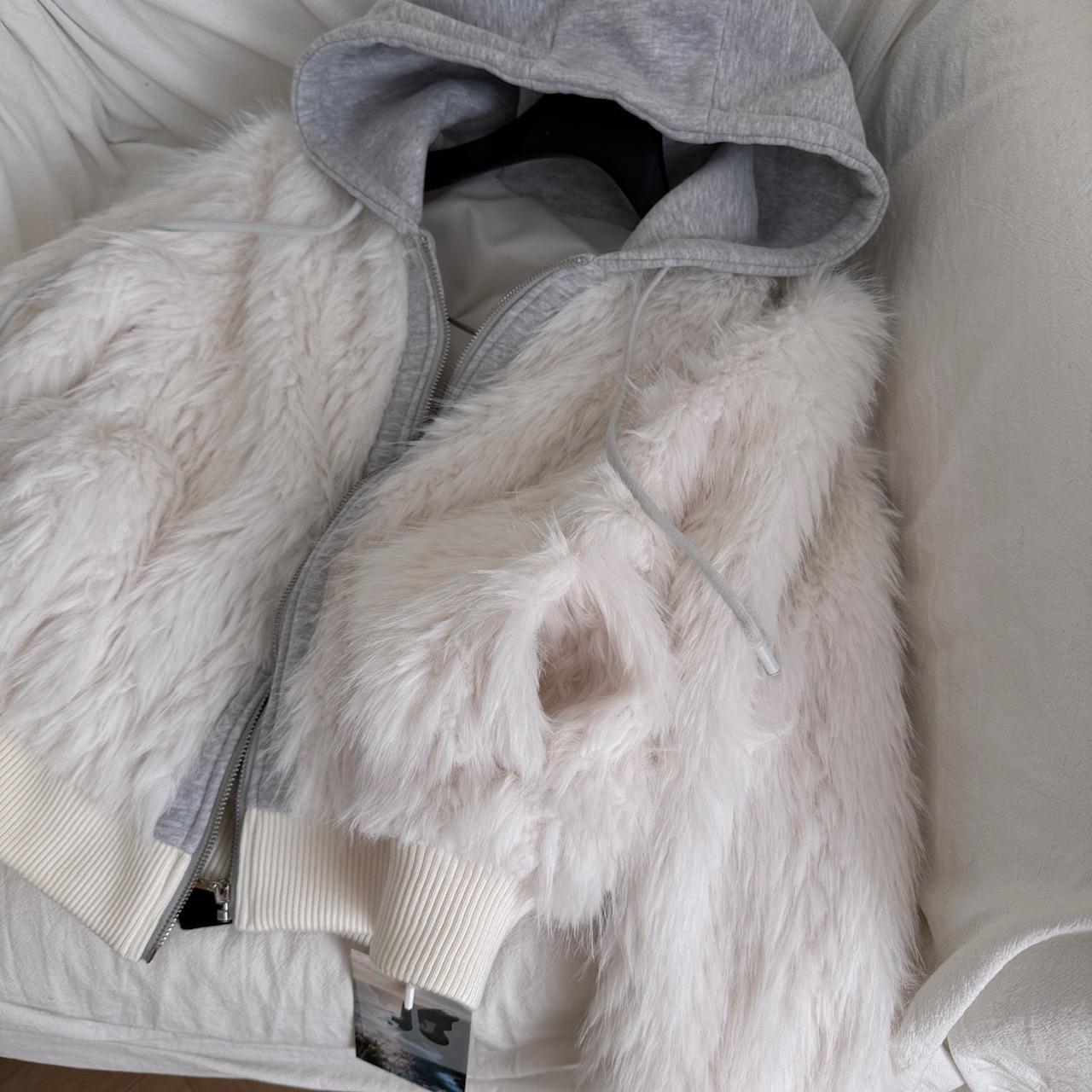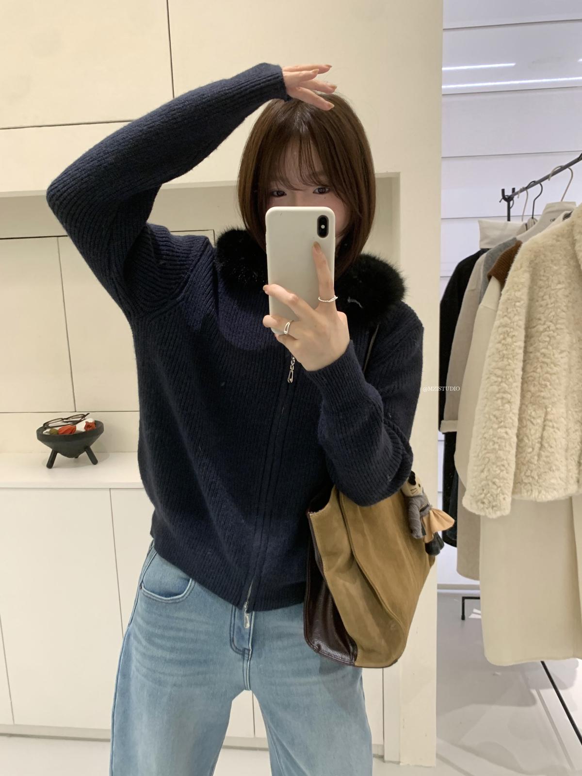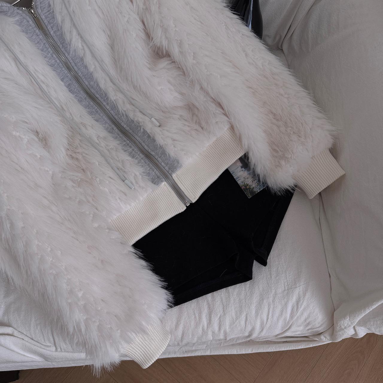【C7970】冬日糯米糰子韓標可拆卸毛毛連帽拉鍊軟糯親膚簡約針織開衫