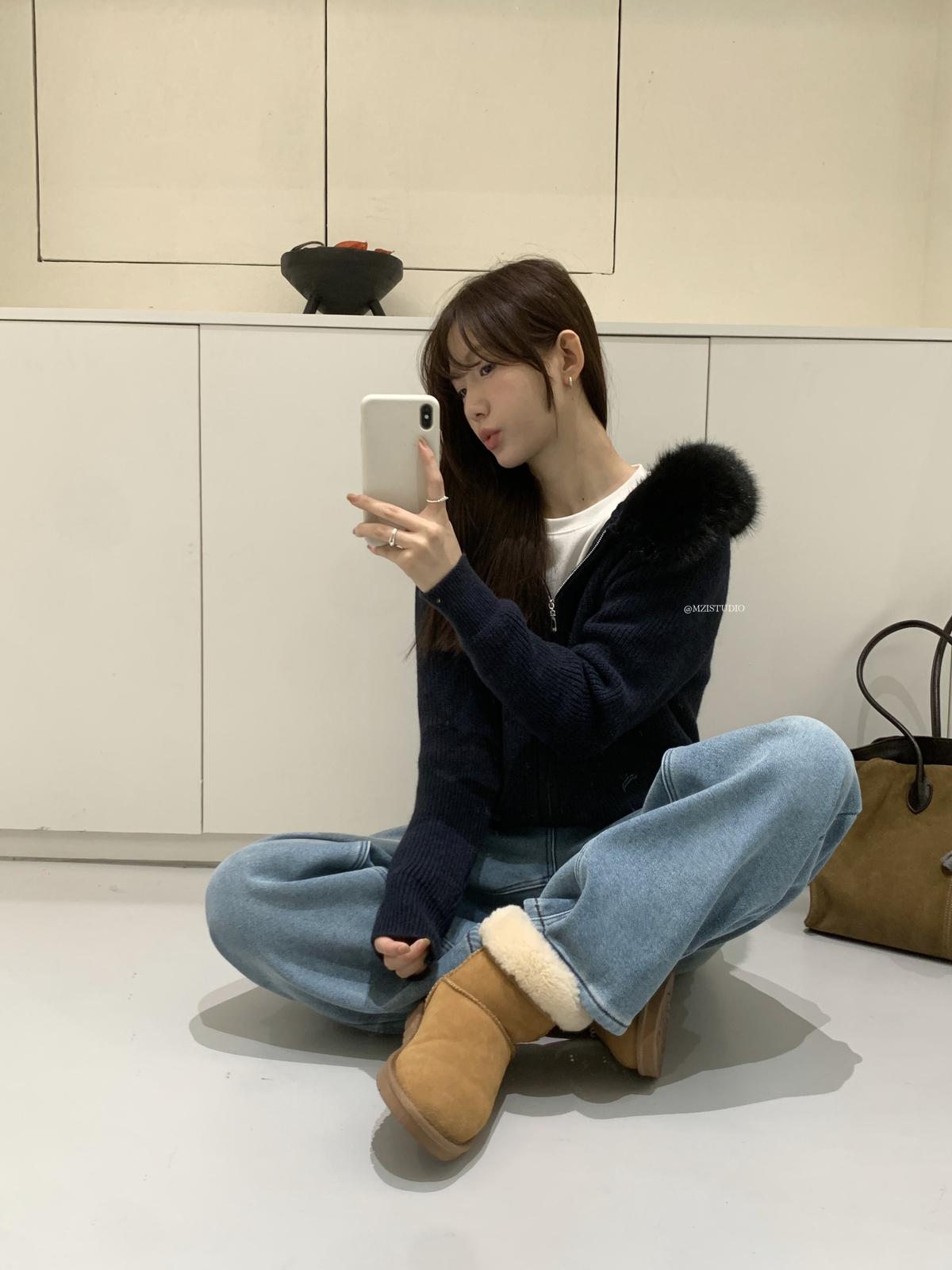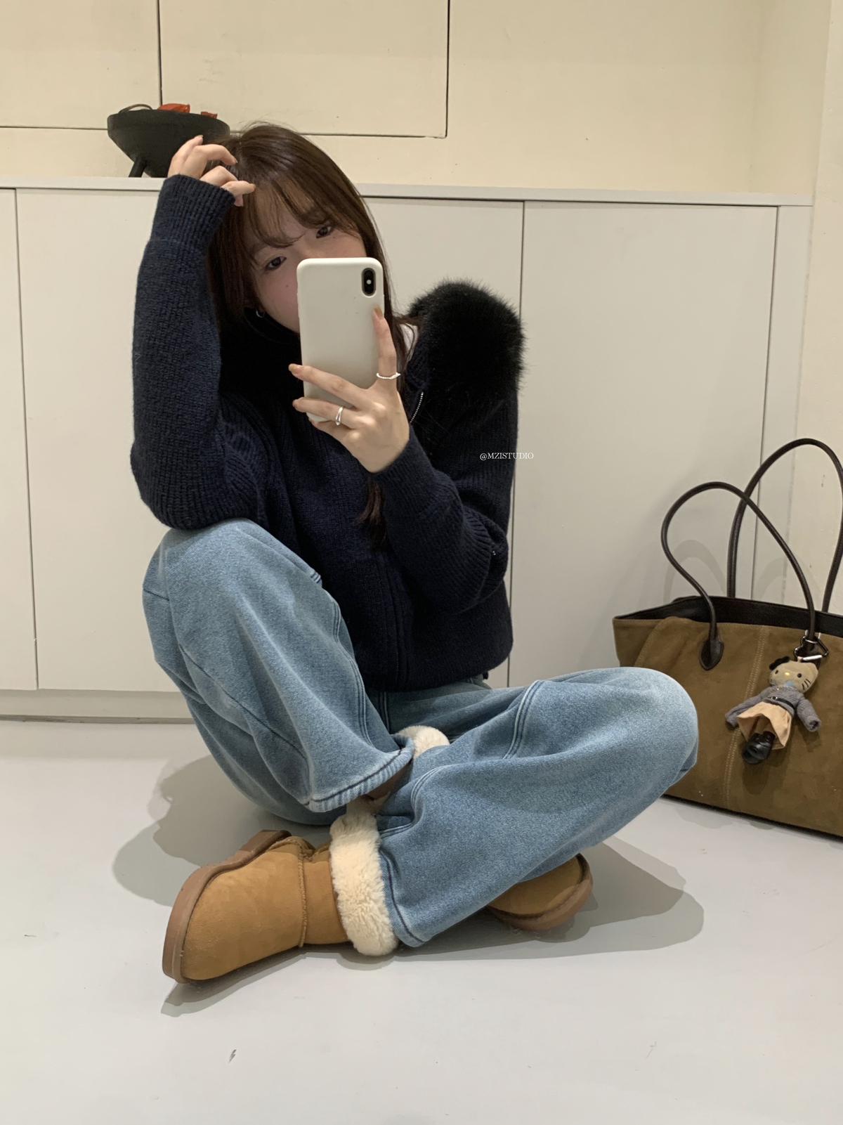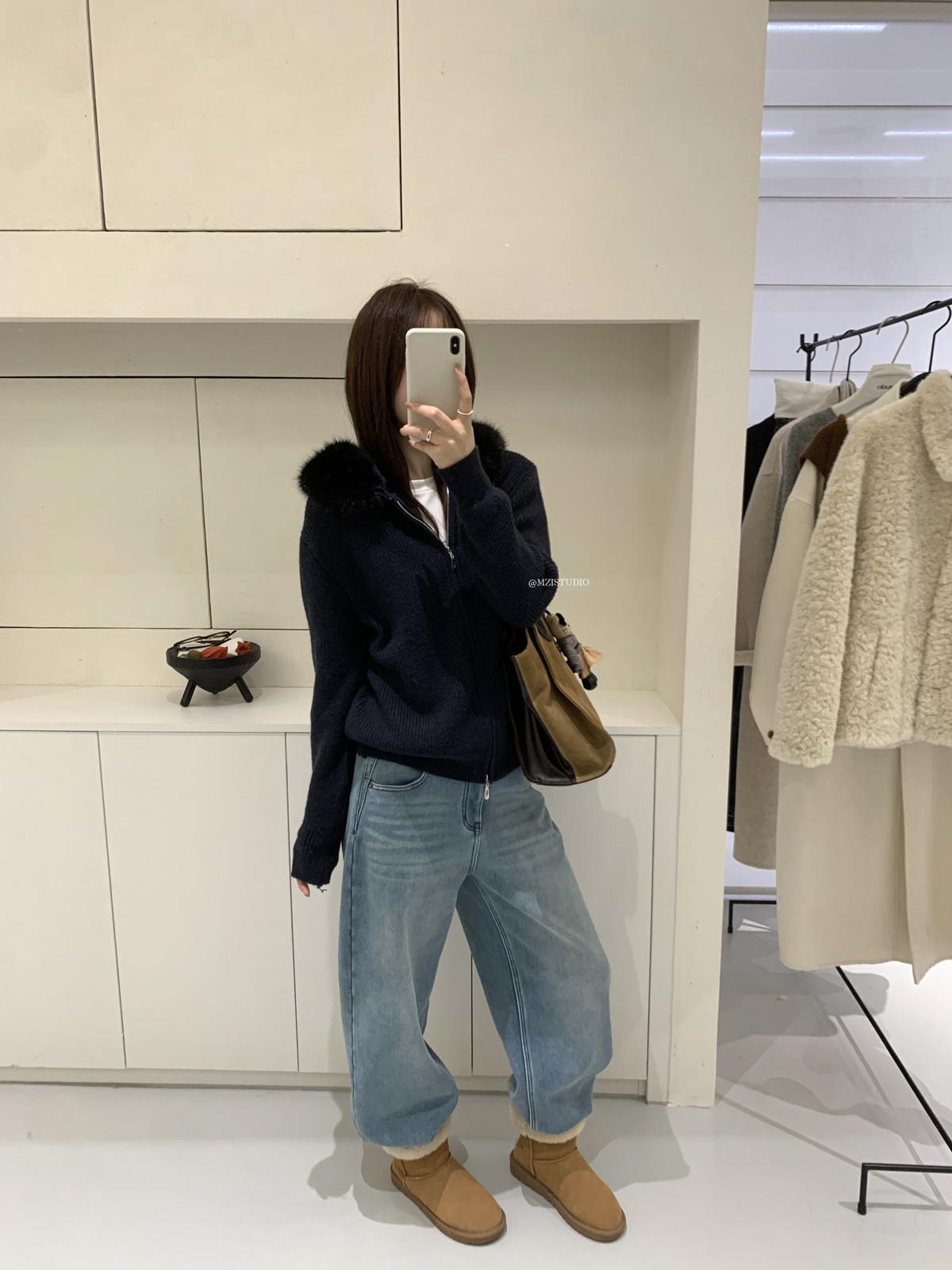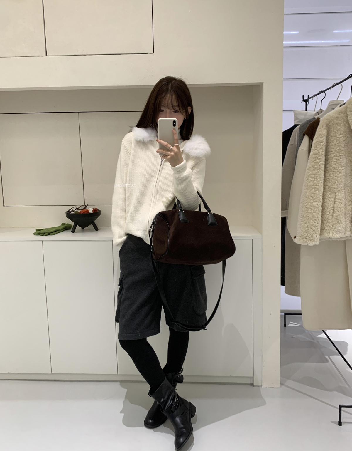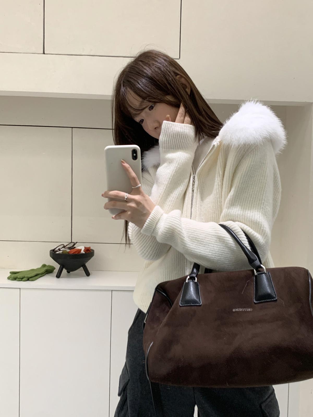 【C7970】冬日糯米糰子韓標可拆卸毛毛連帽拉鍊軟糯親膚簡約針織開衫