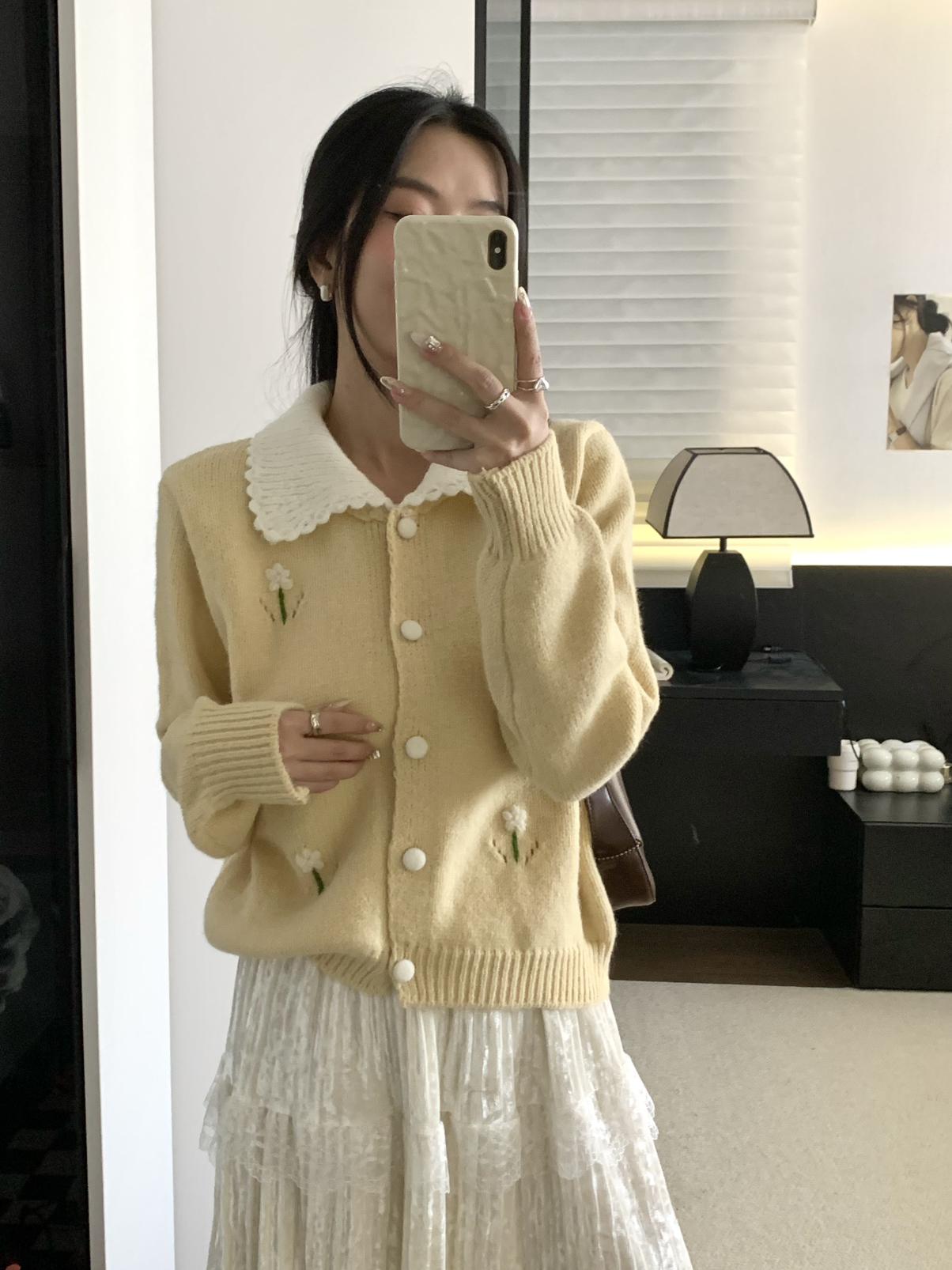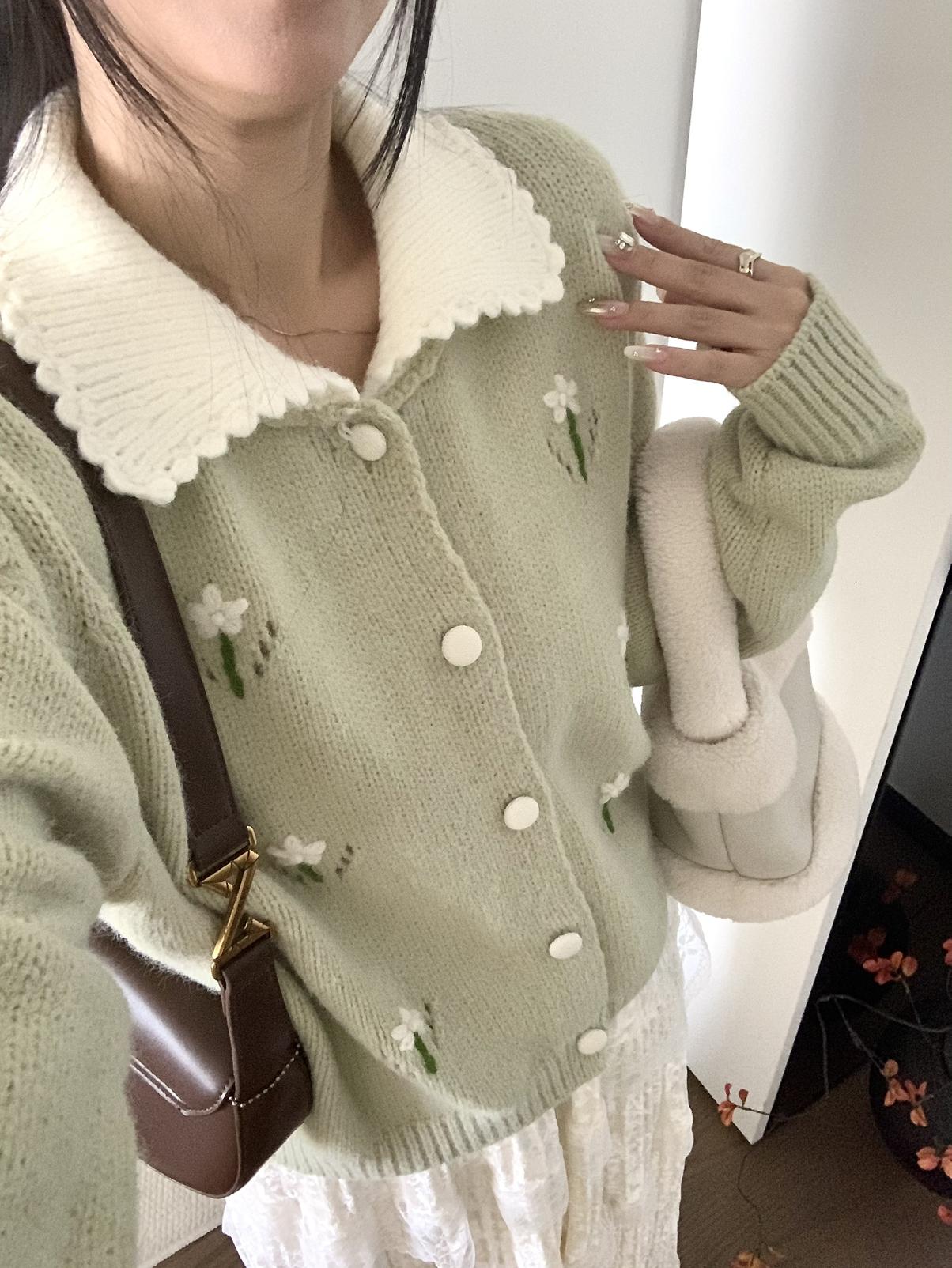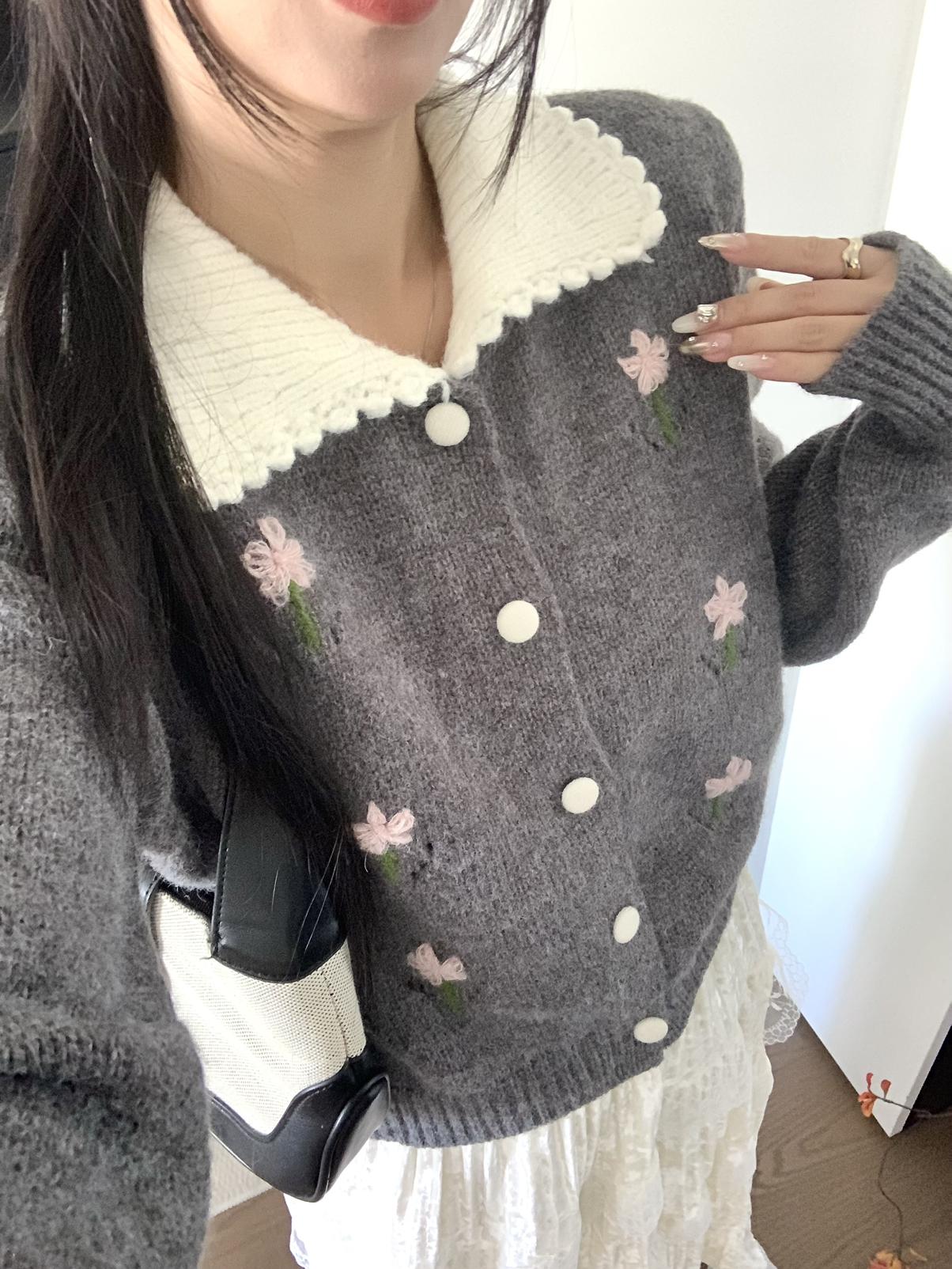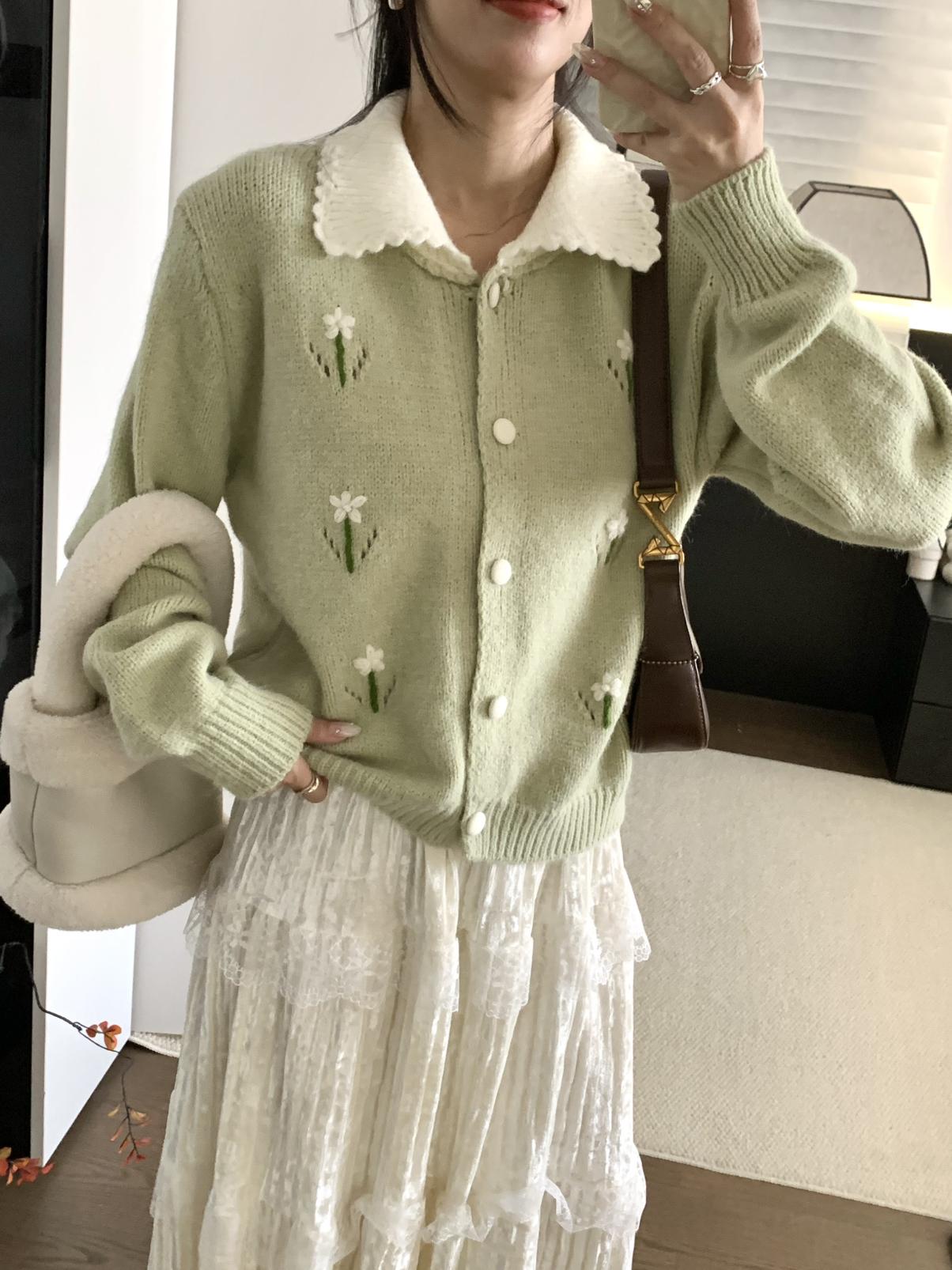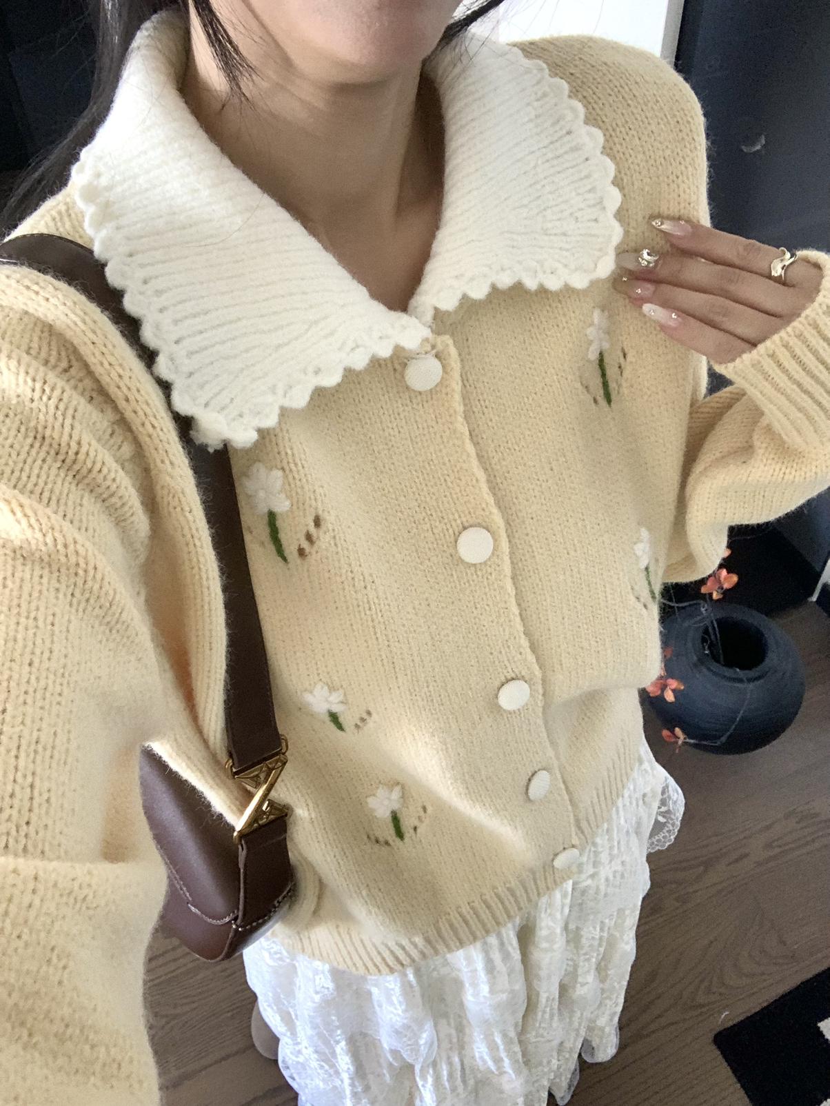 【C7986】小清新重工手工鉤花翻領保暖毛衣