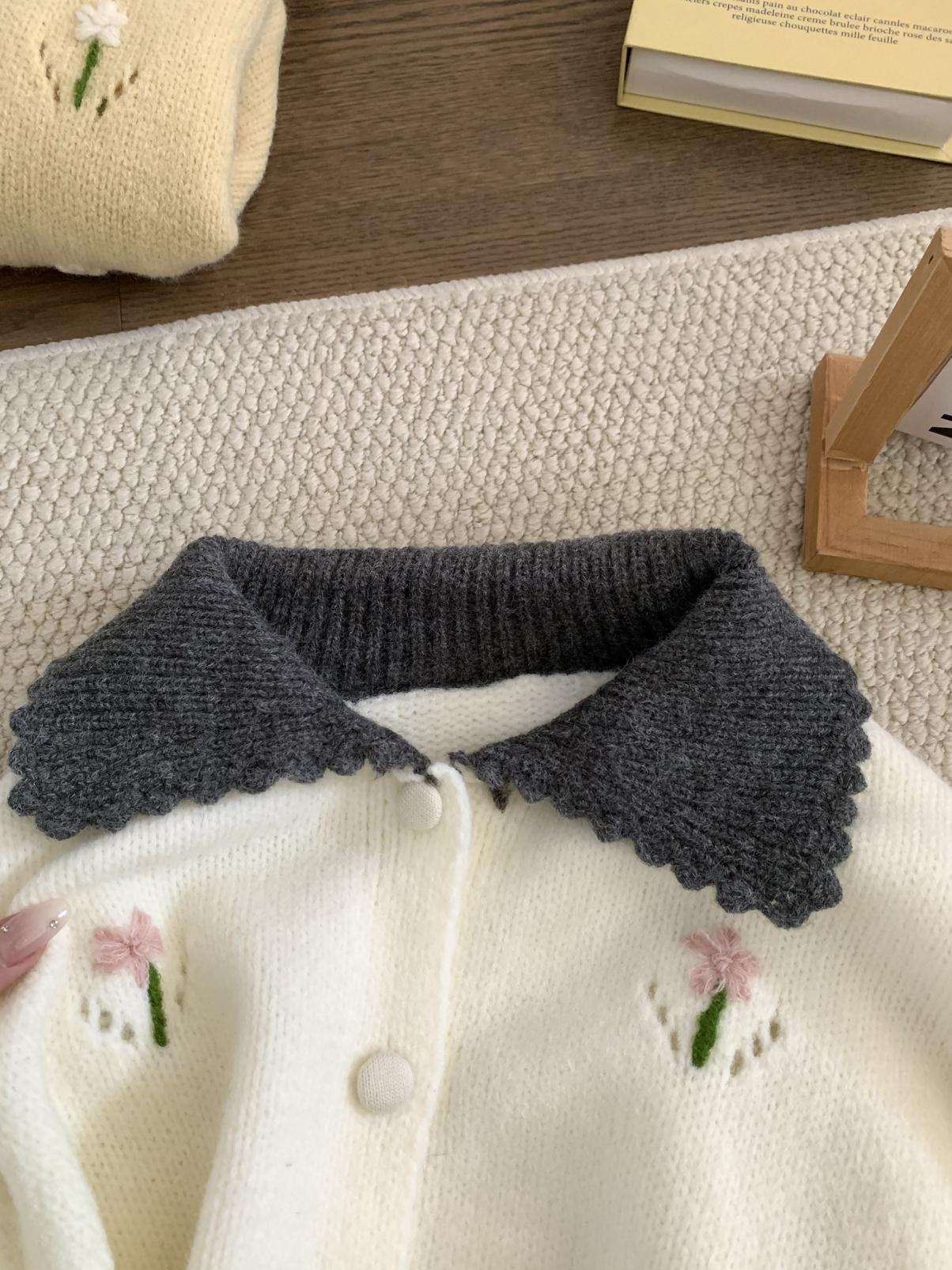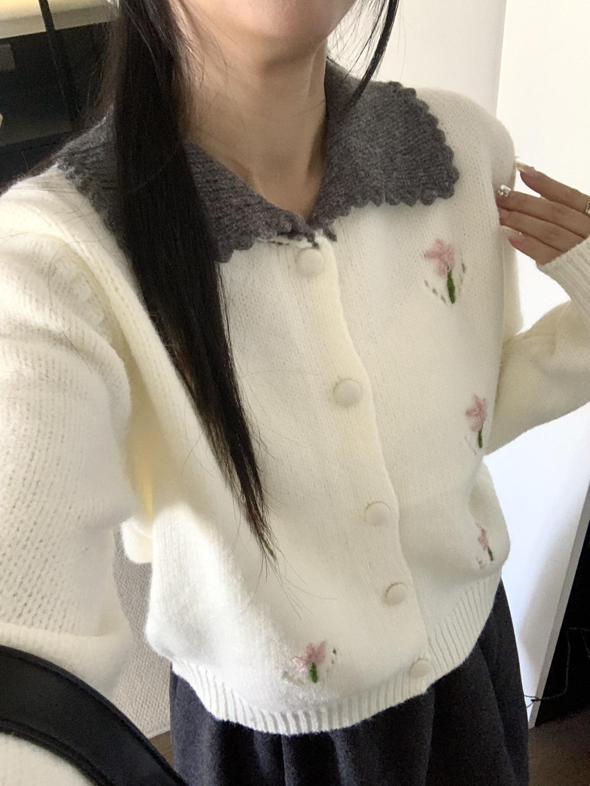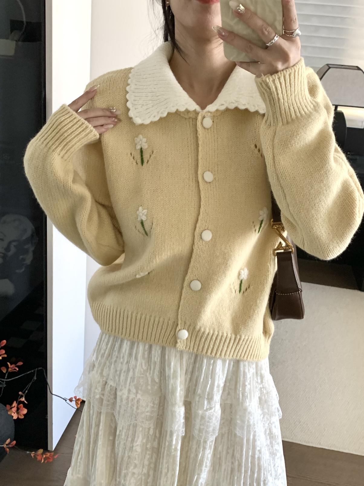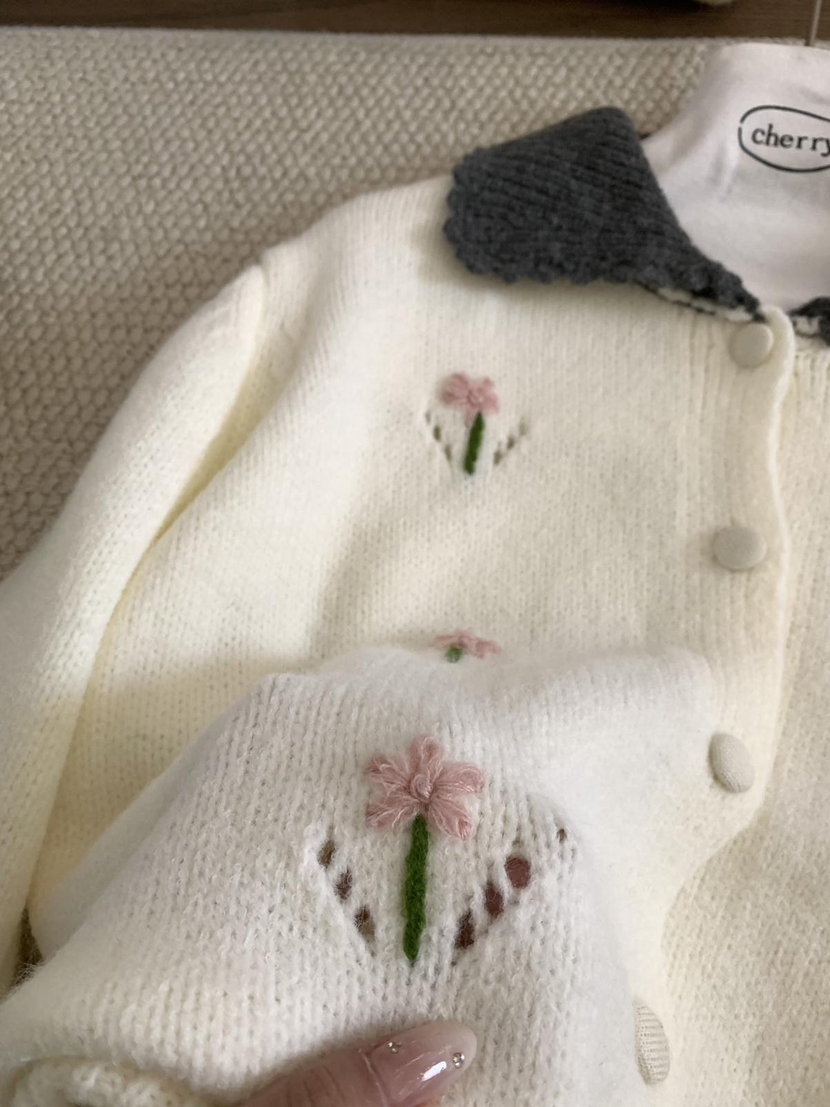 【C7986】小清新重工手工鉤花翻領保暖毛衣