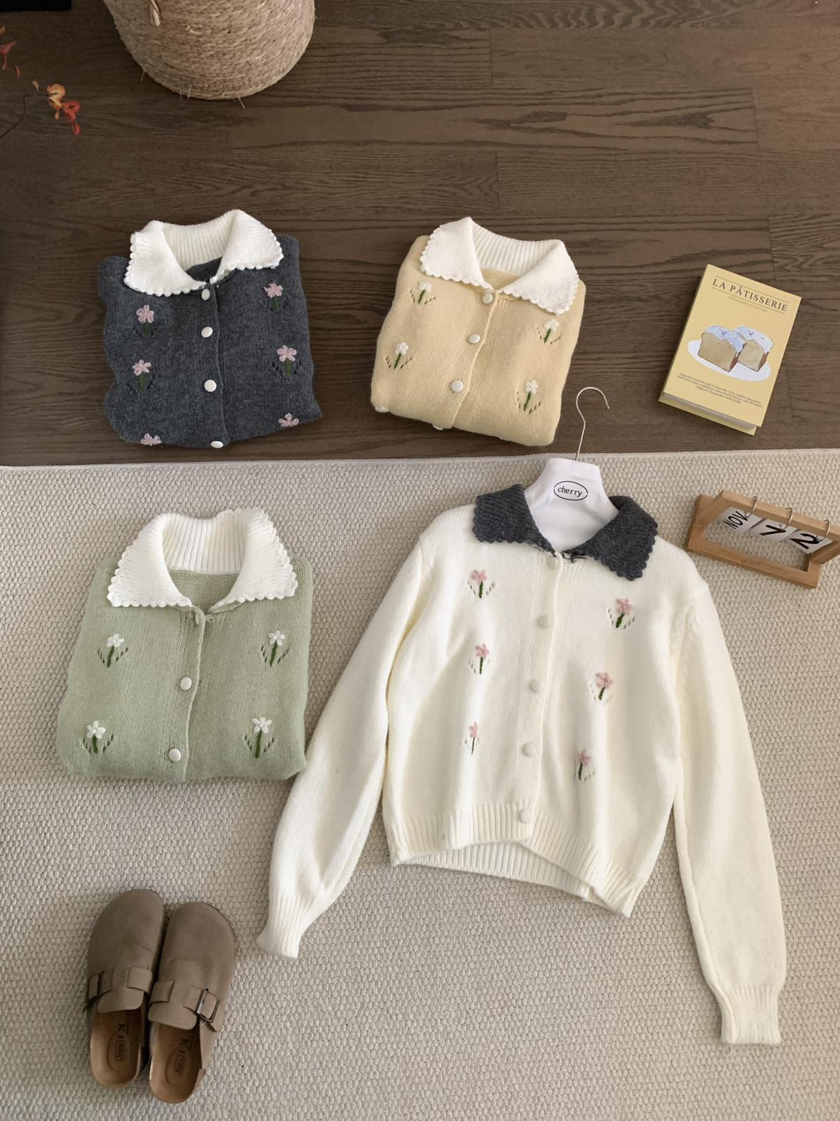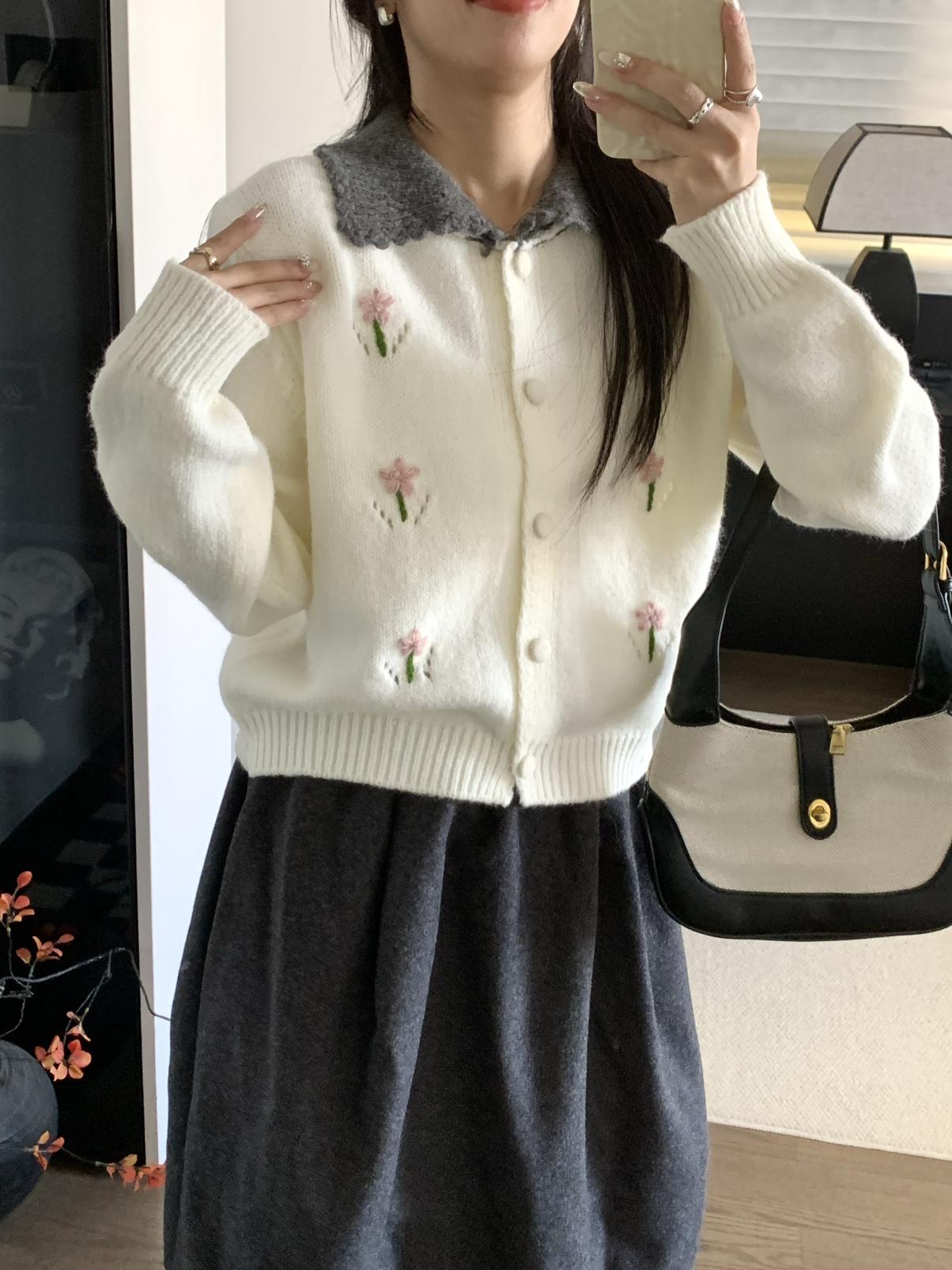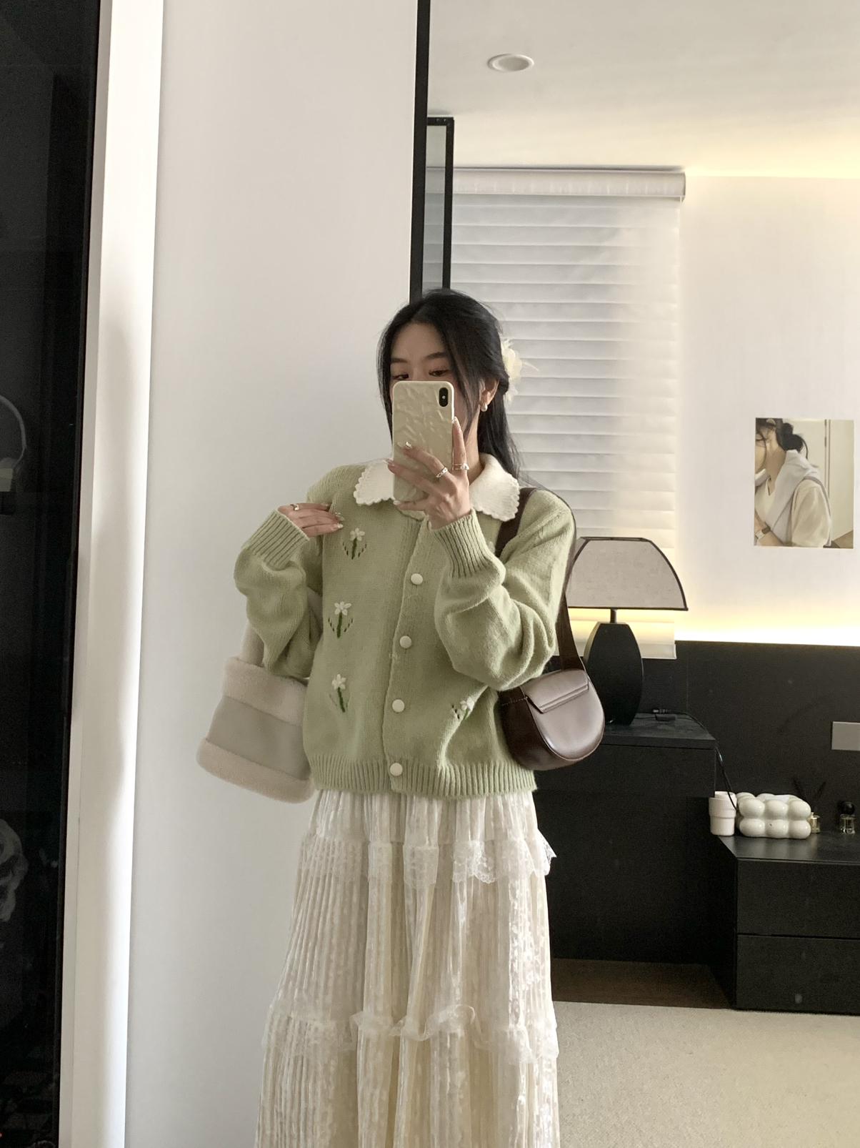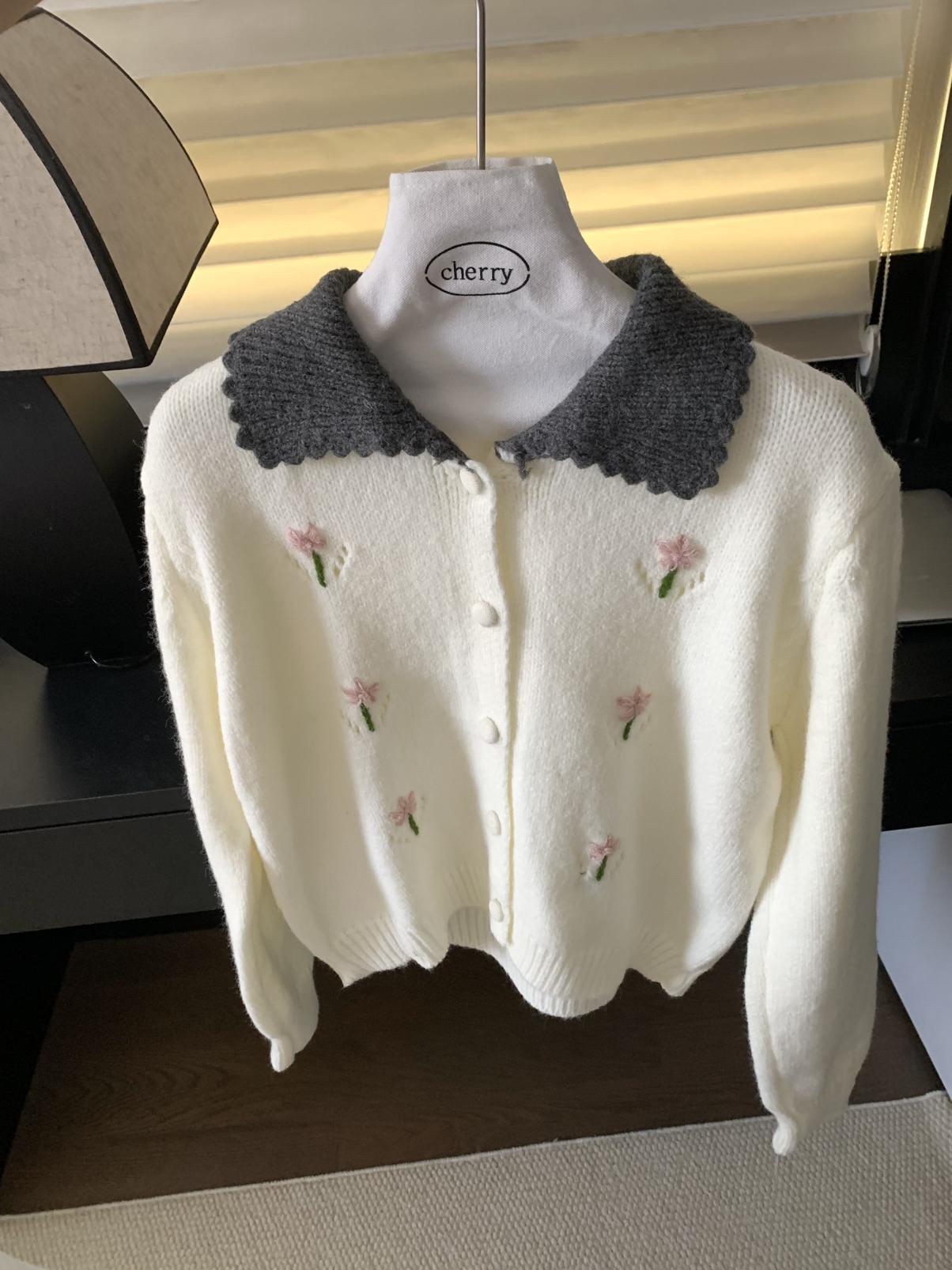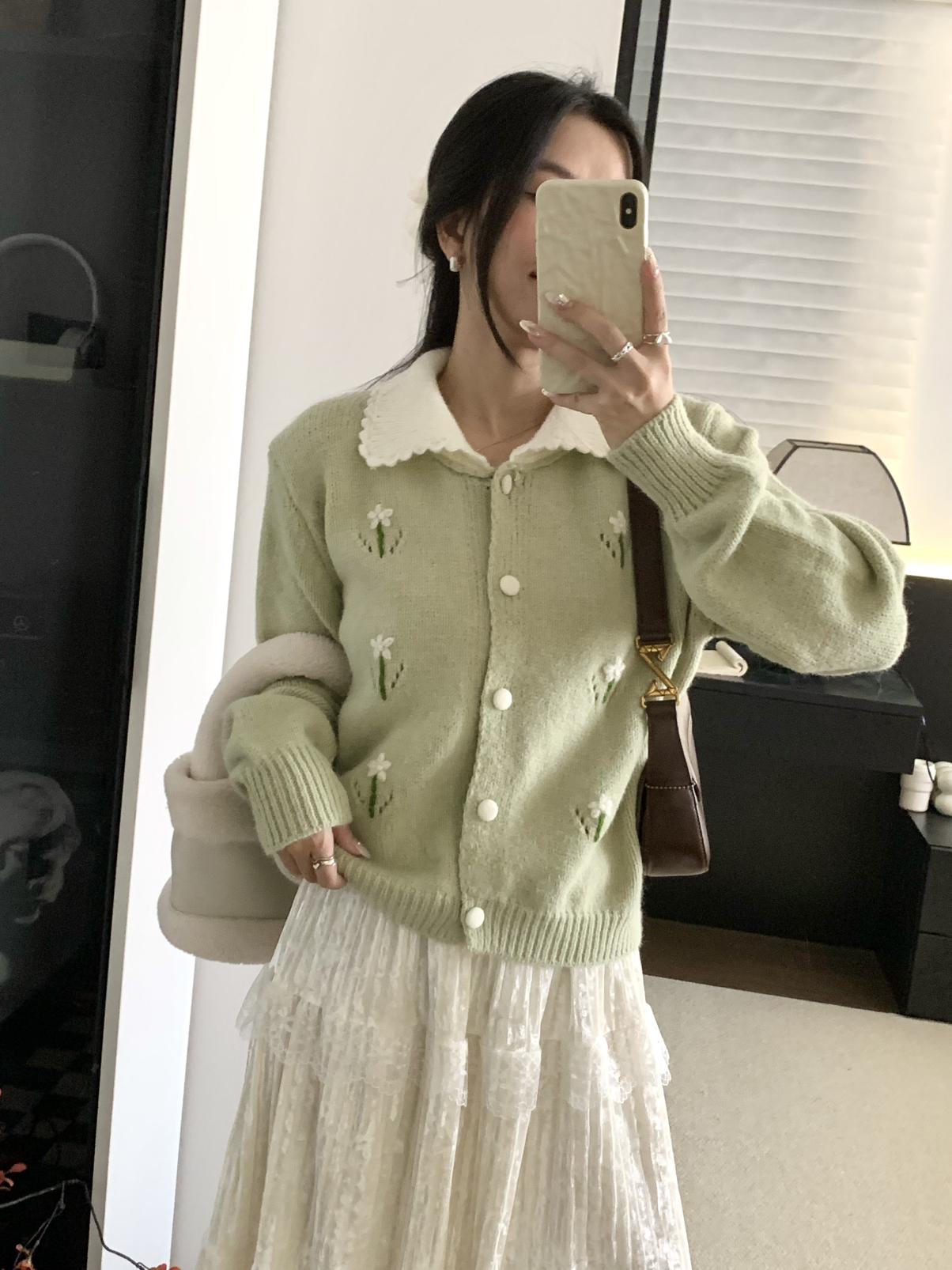【C7986】小清新重工手工鉤花翻領保暖毛衣