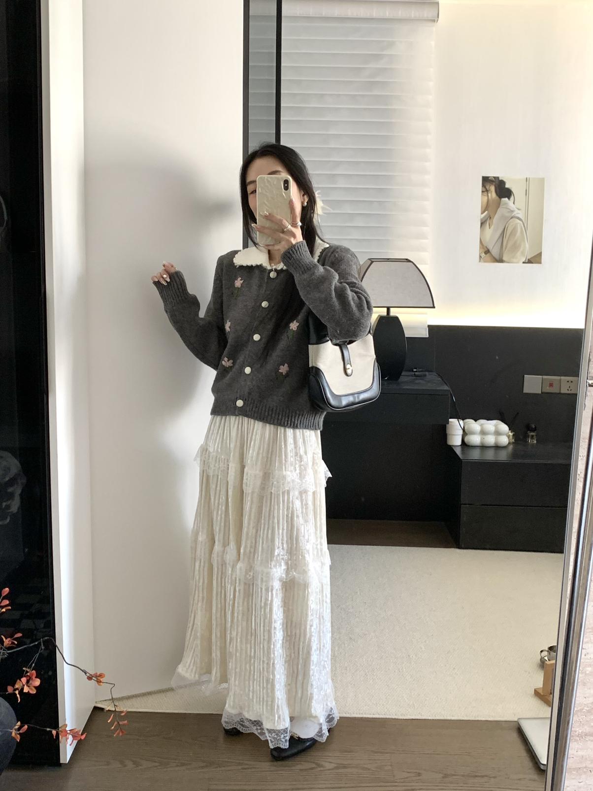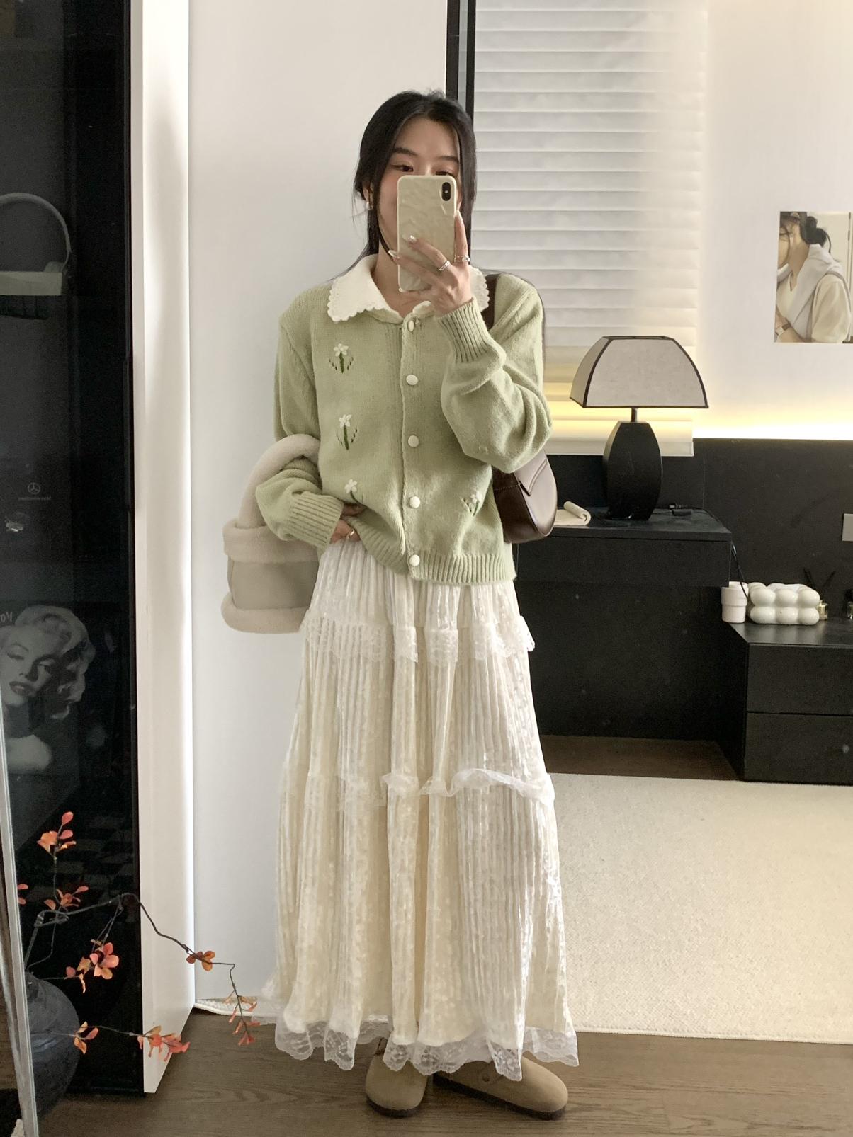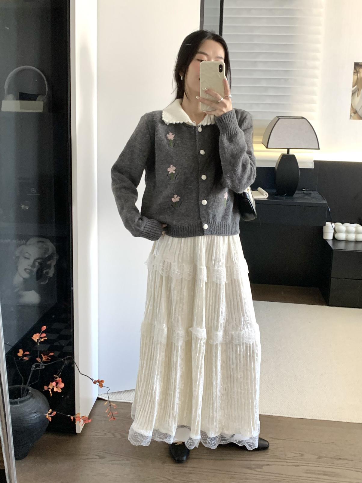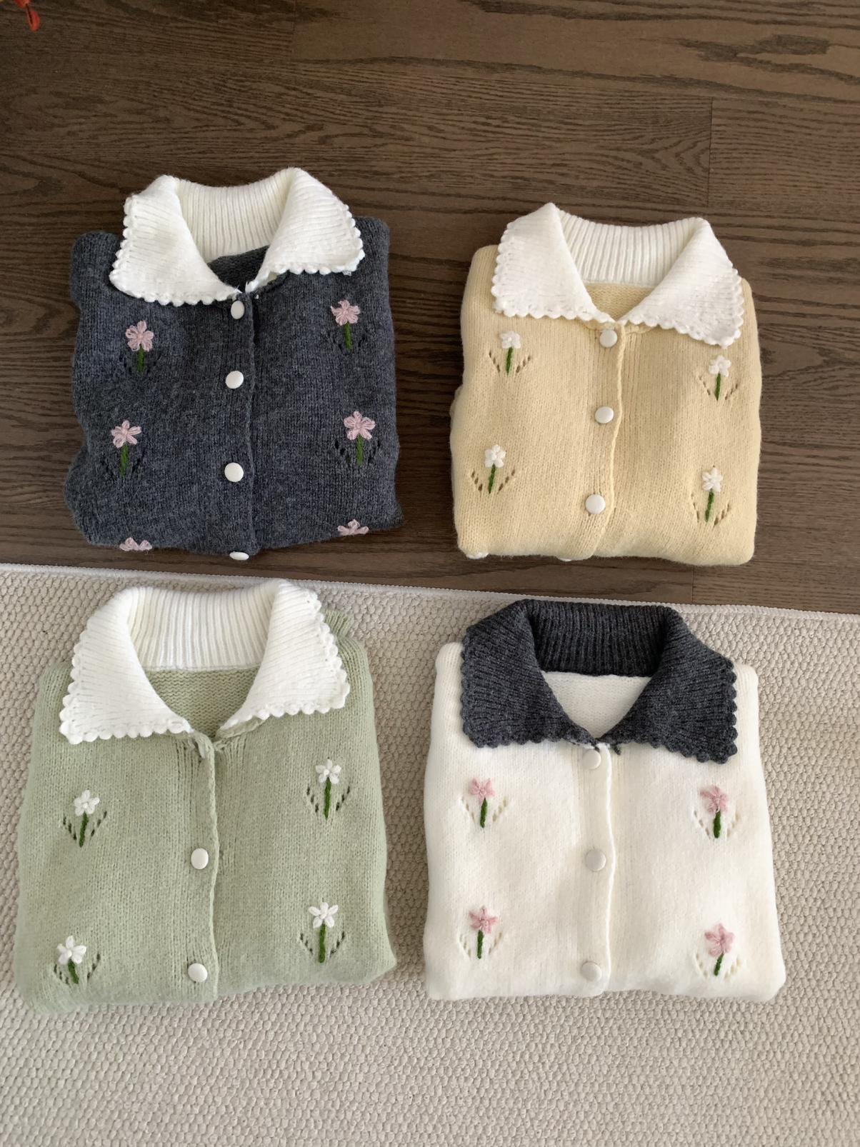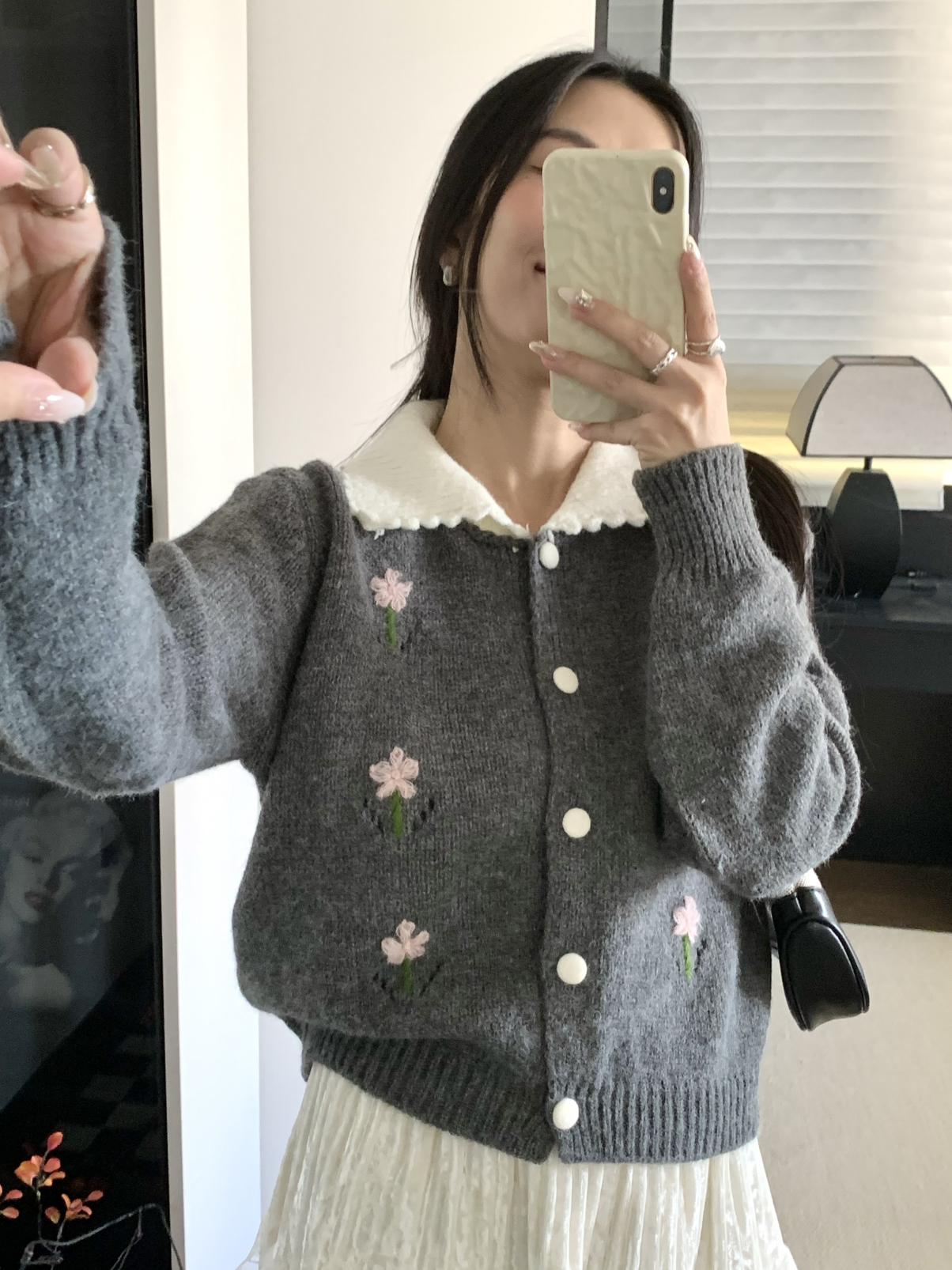 【C7986】小清新重工手工鉤花翻領保暖毛衣