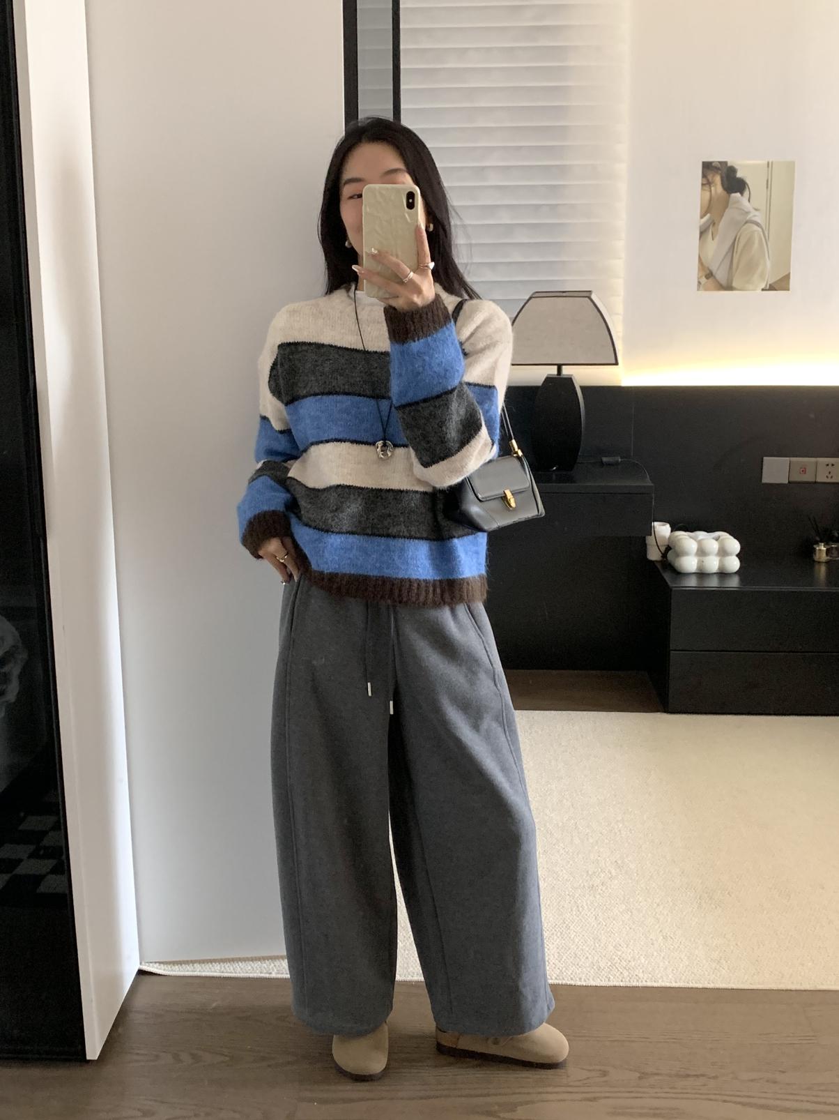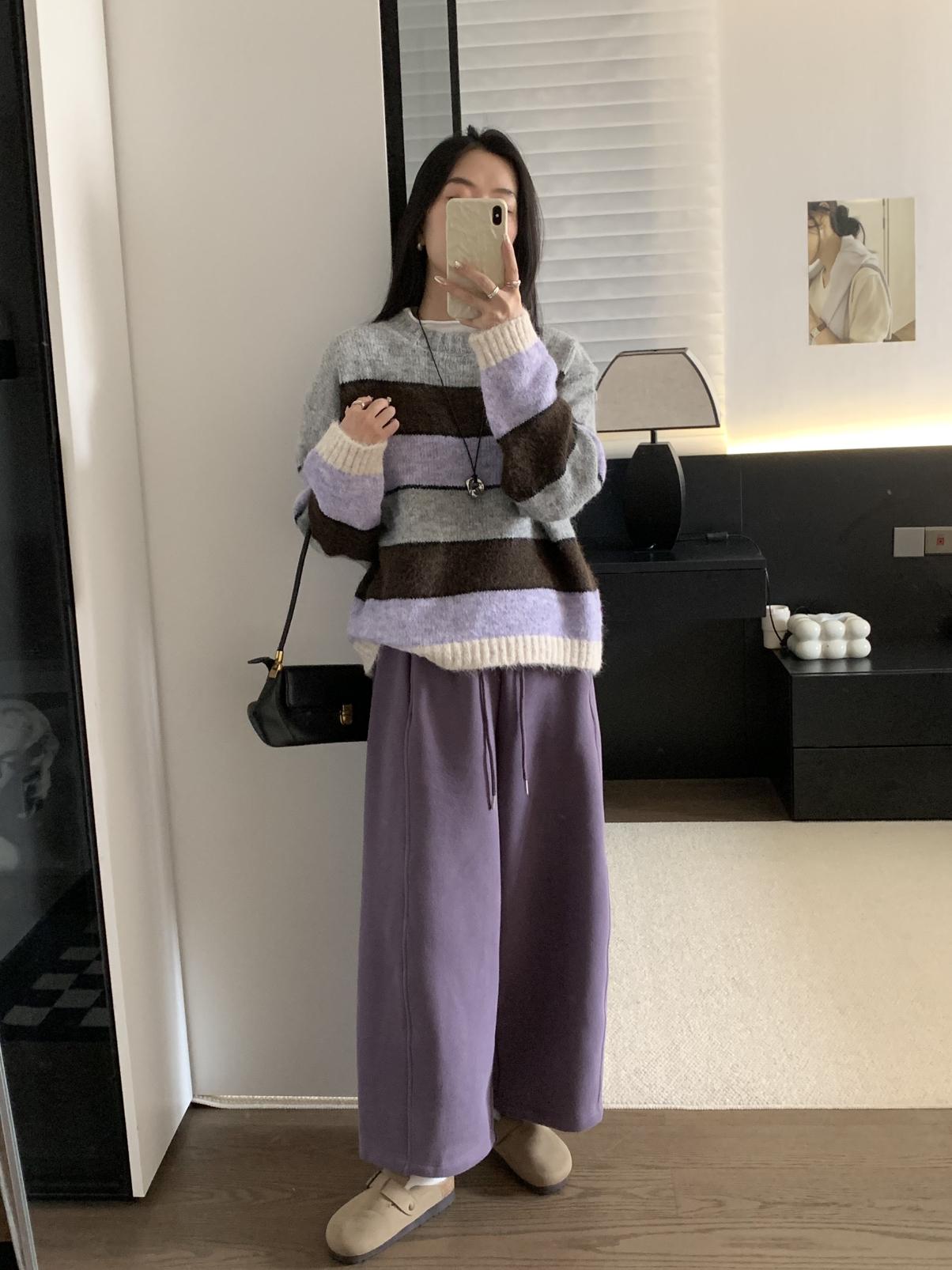 【C7988】加絨加厚不起球韓系奶奶褲衛衣褲