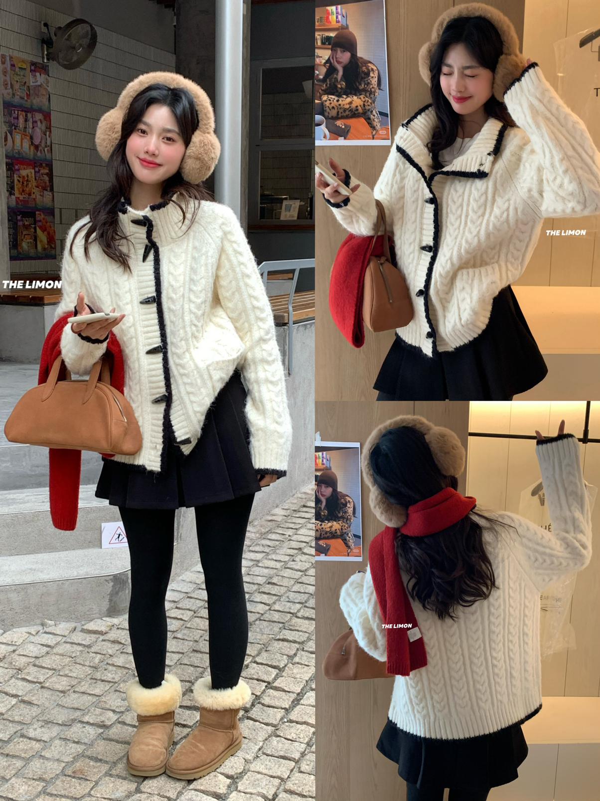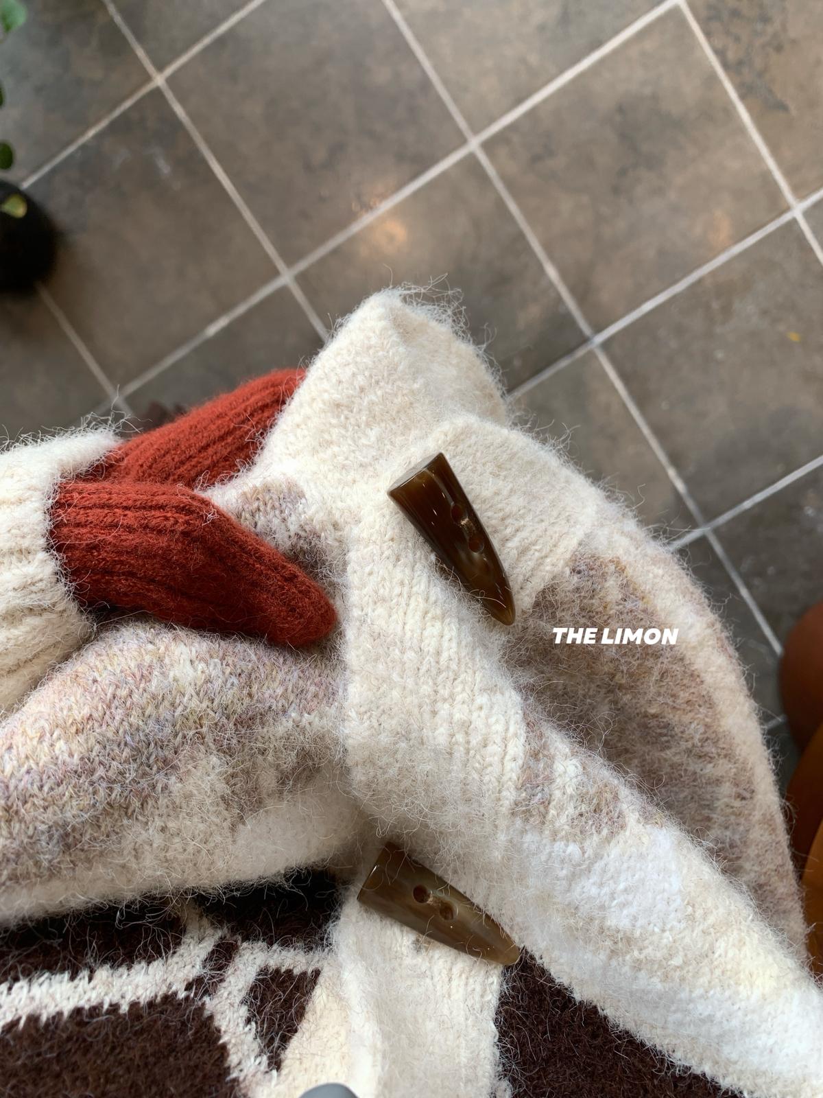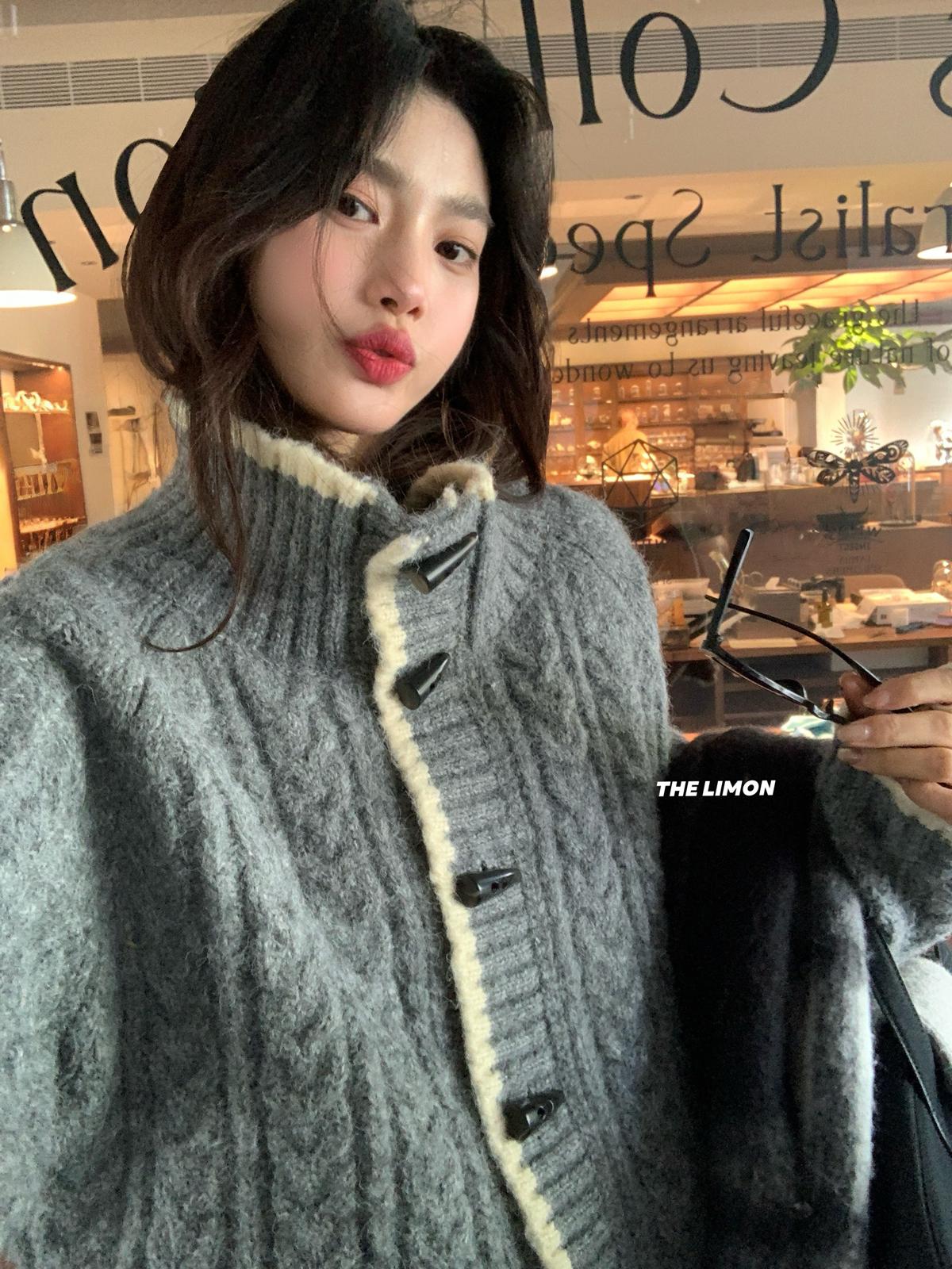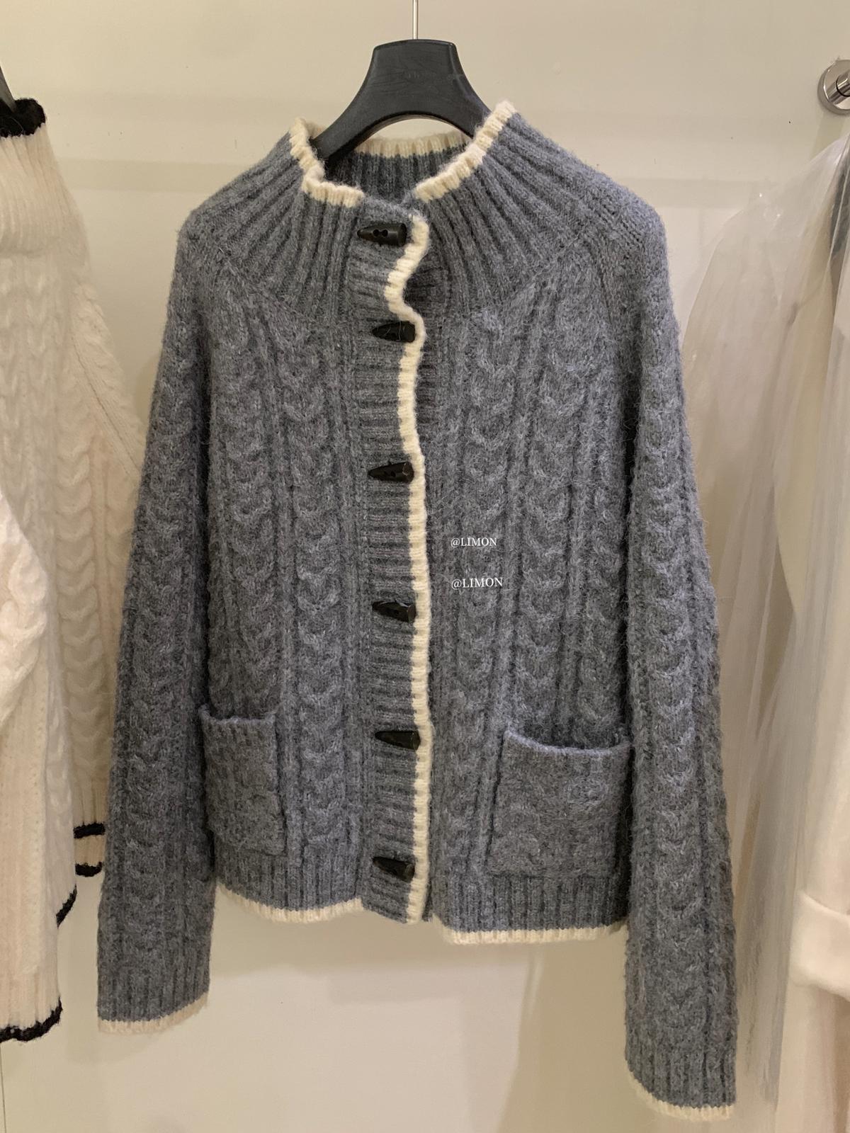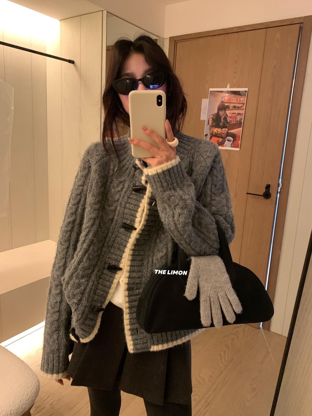 【C8008】高質感重工復古撞色牛角扣開衫保暖毛衣(含8%羊毛)