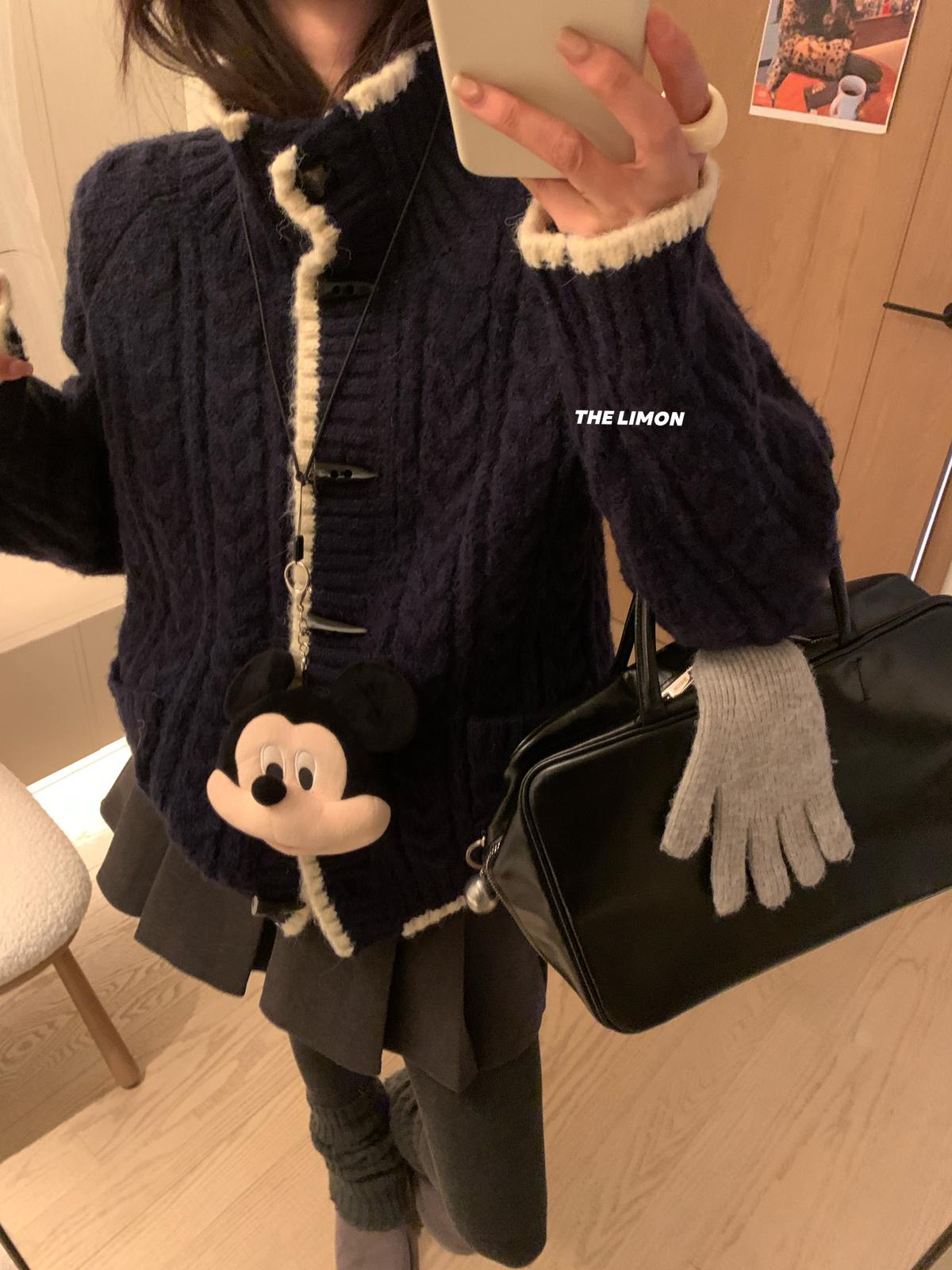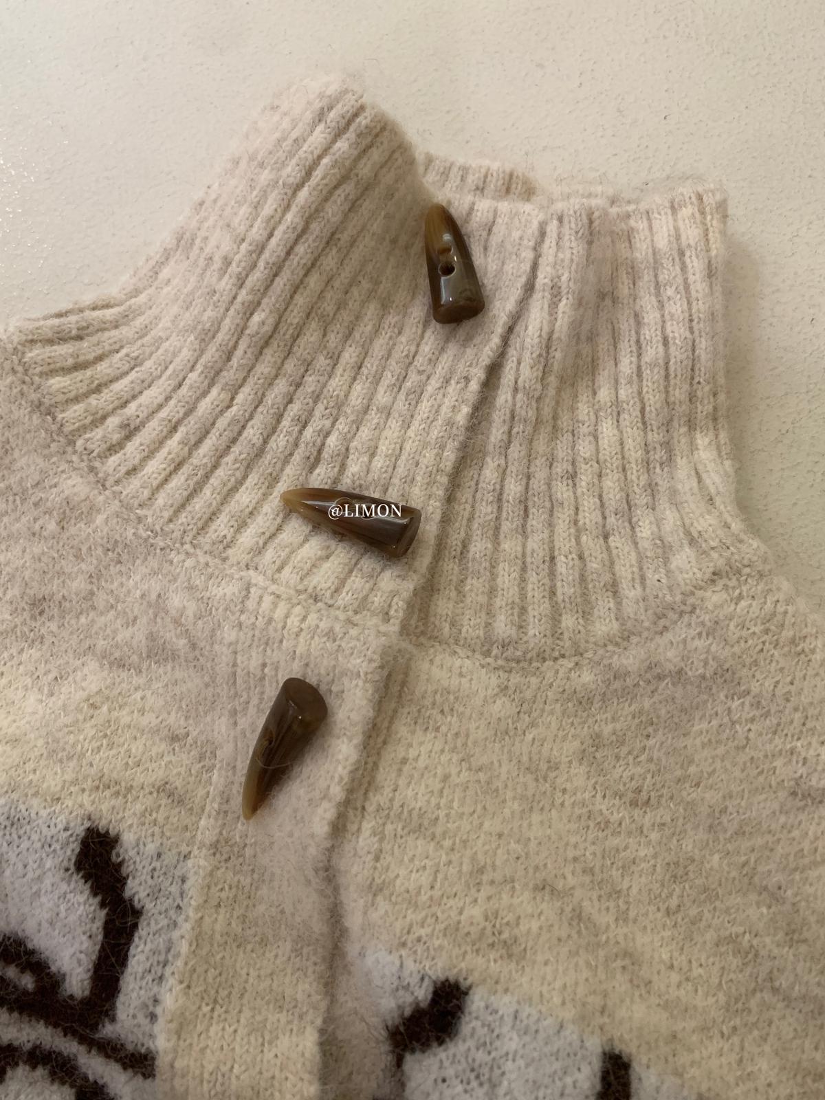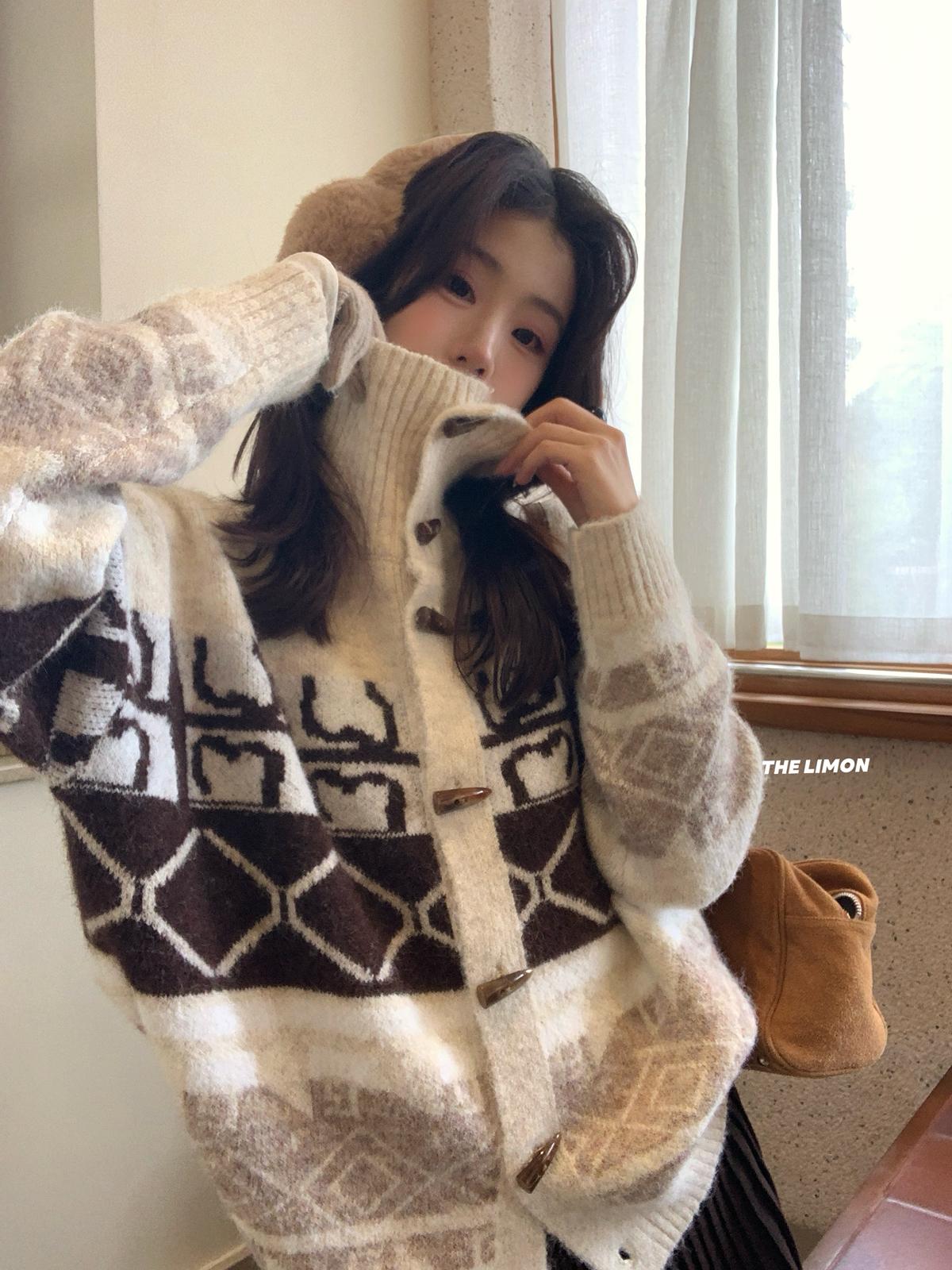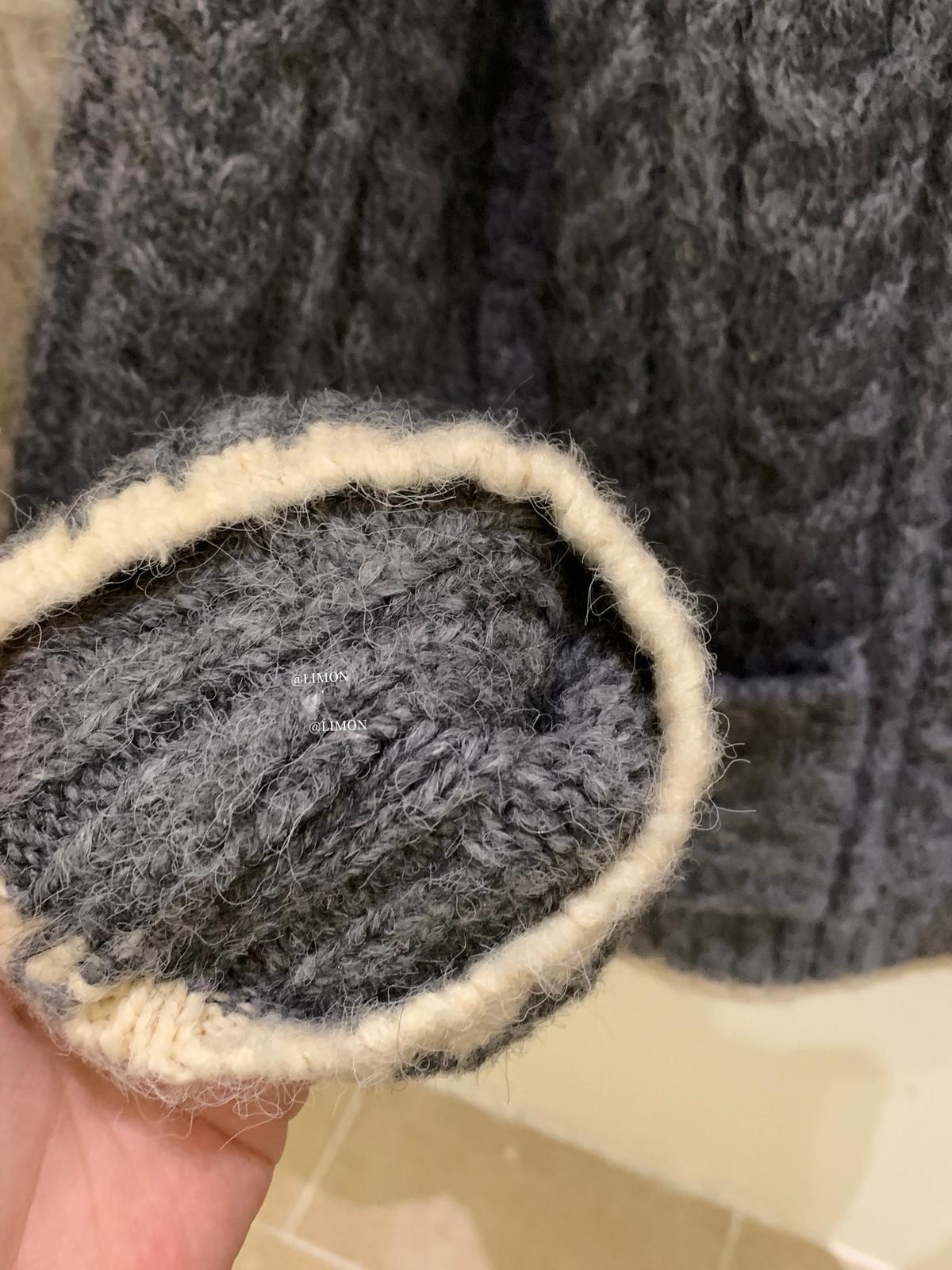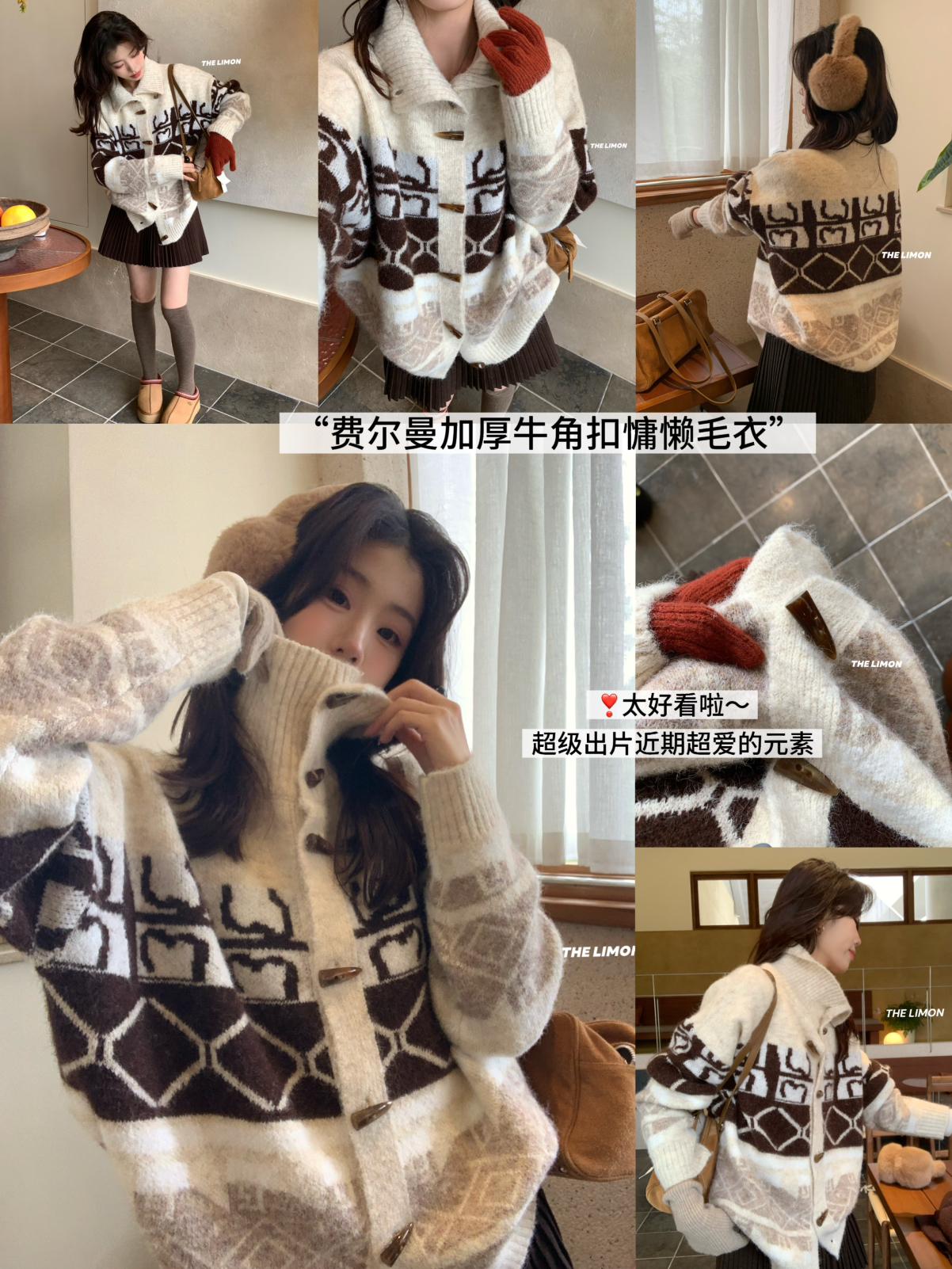 【C8008】高質感重工復古撞色牛角扣開衫保暖毛衣(含8%羊毛)