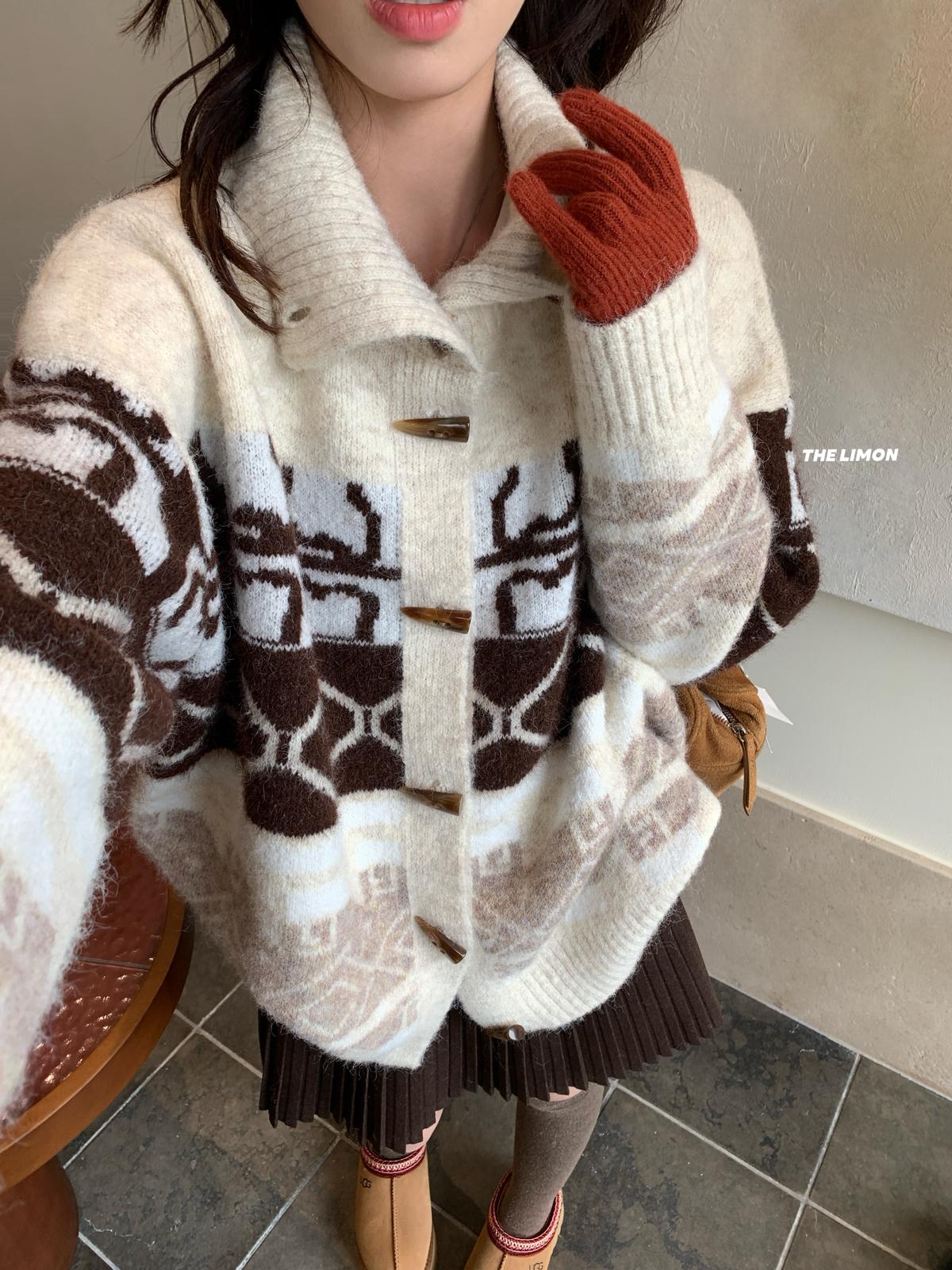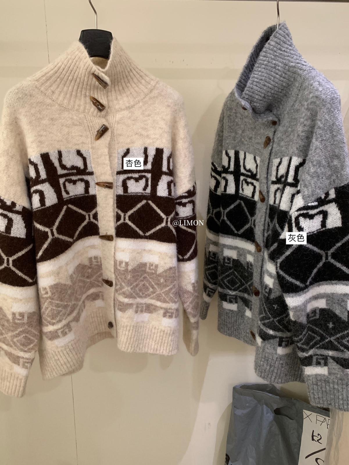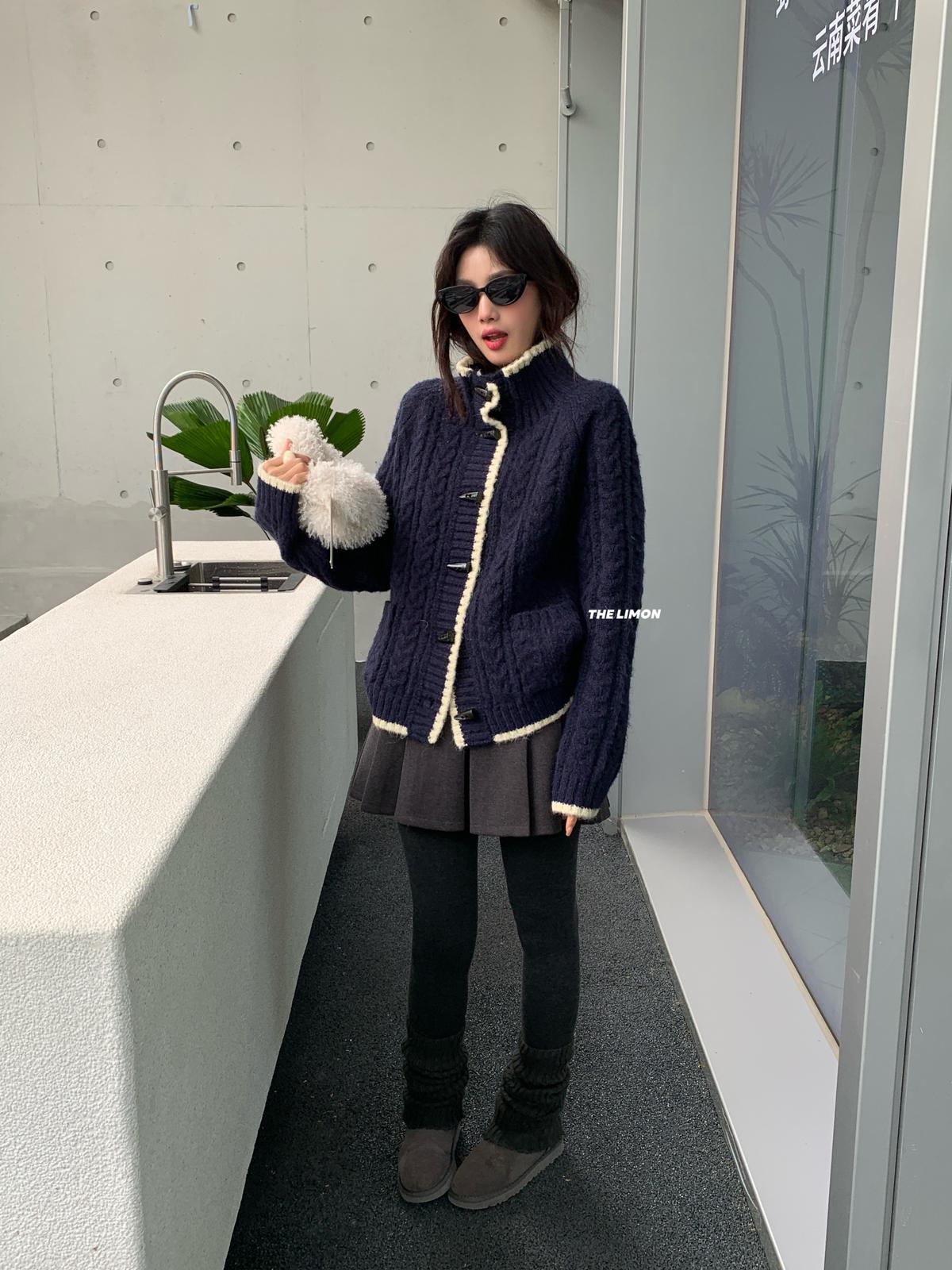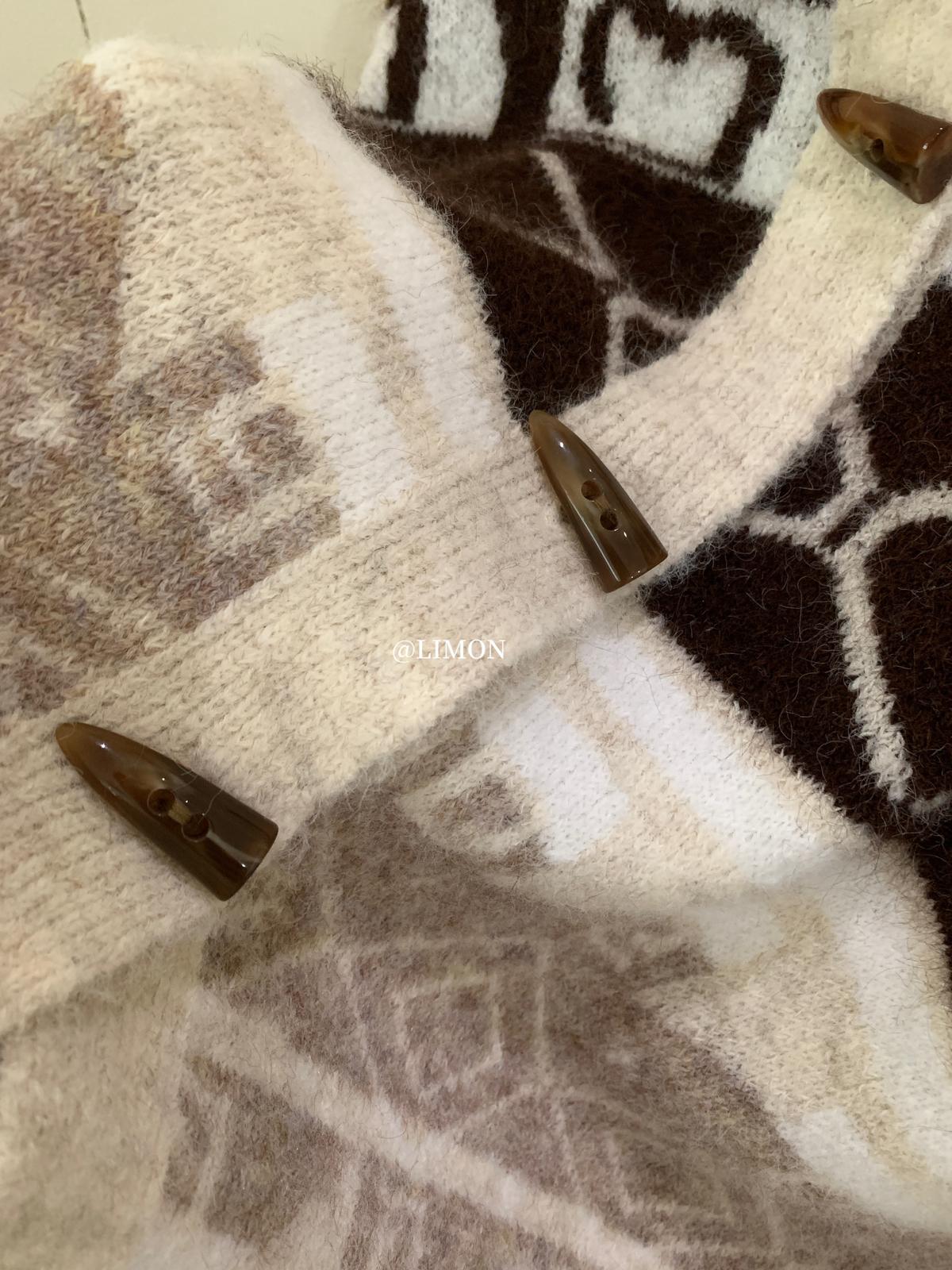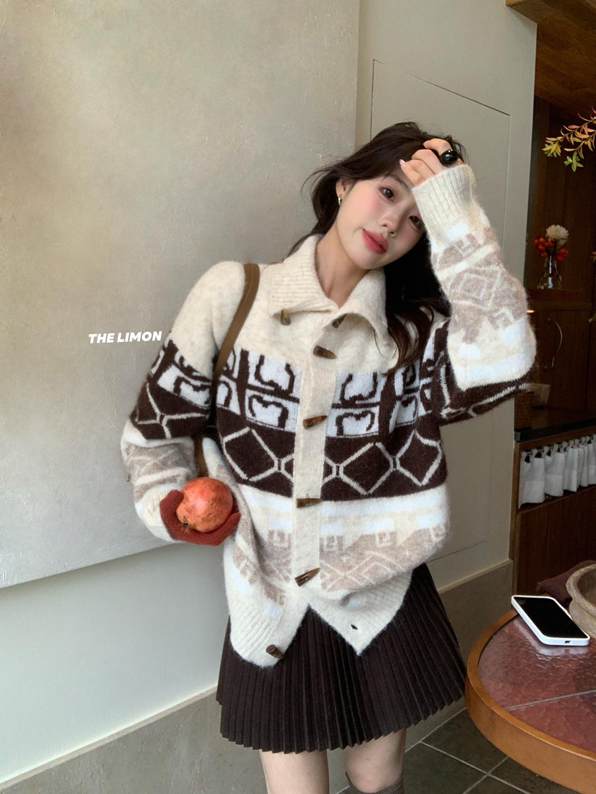 【C8008】高質感重工復古撞色牛角扣開衫保暖毛衣(含8%羊毛)