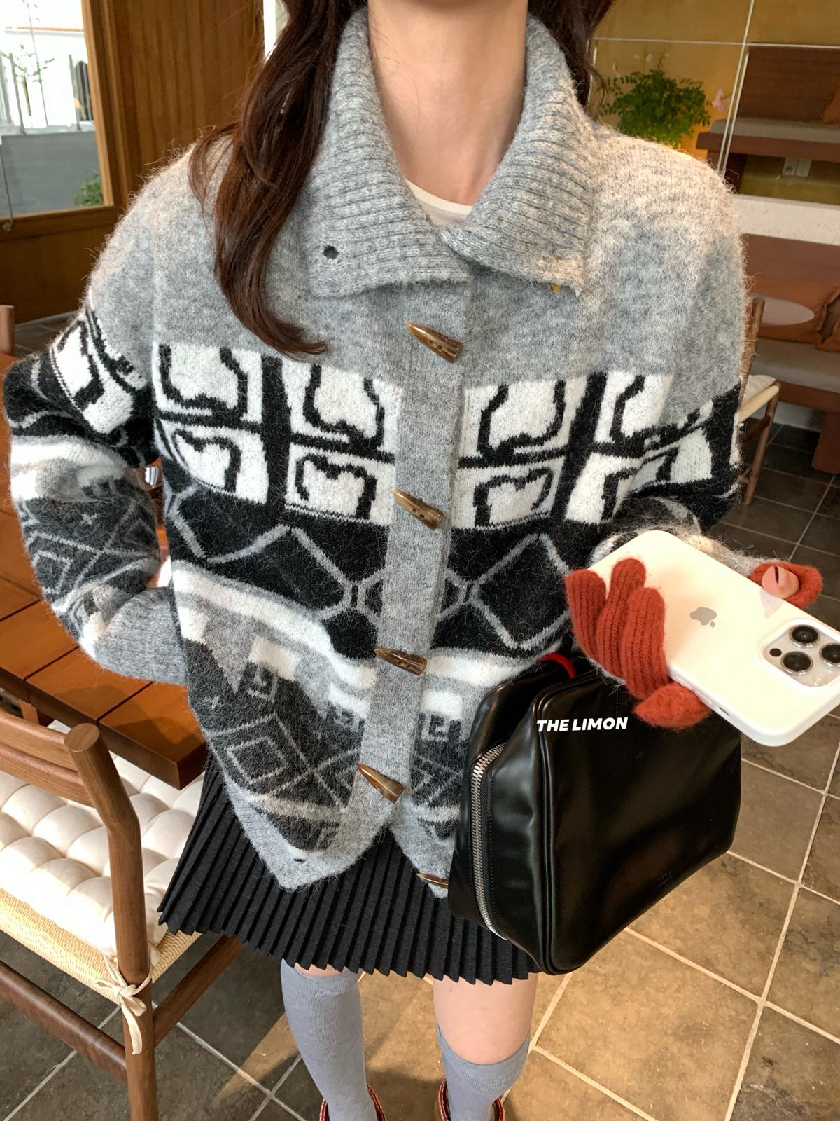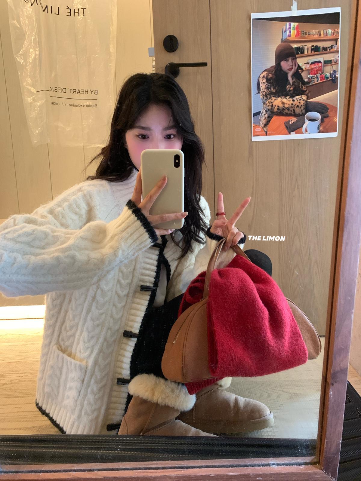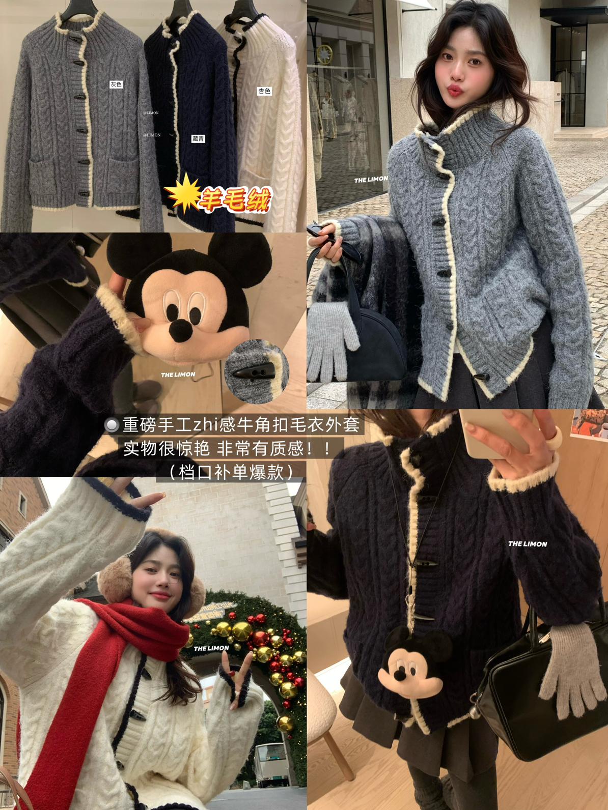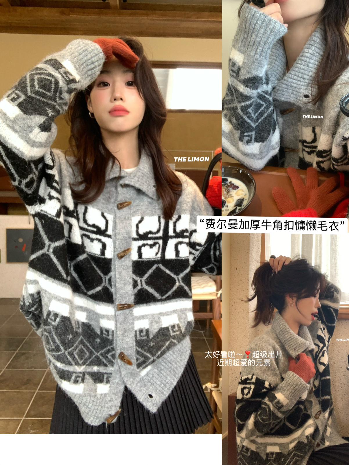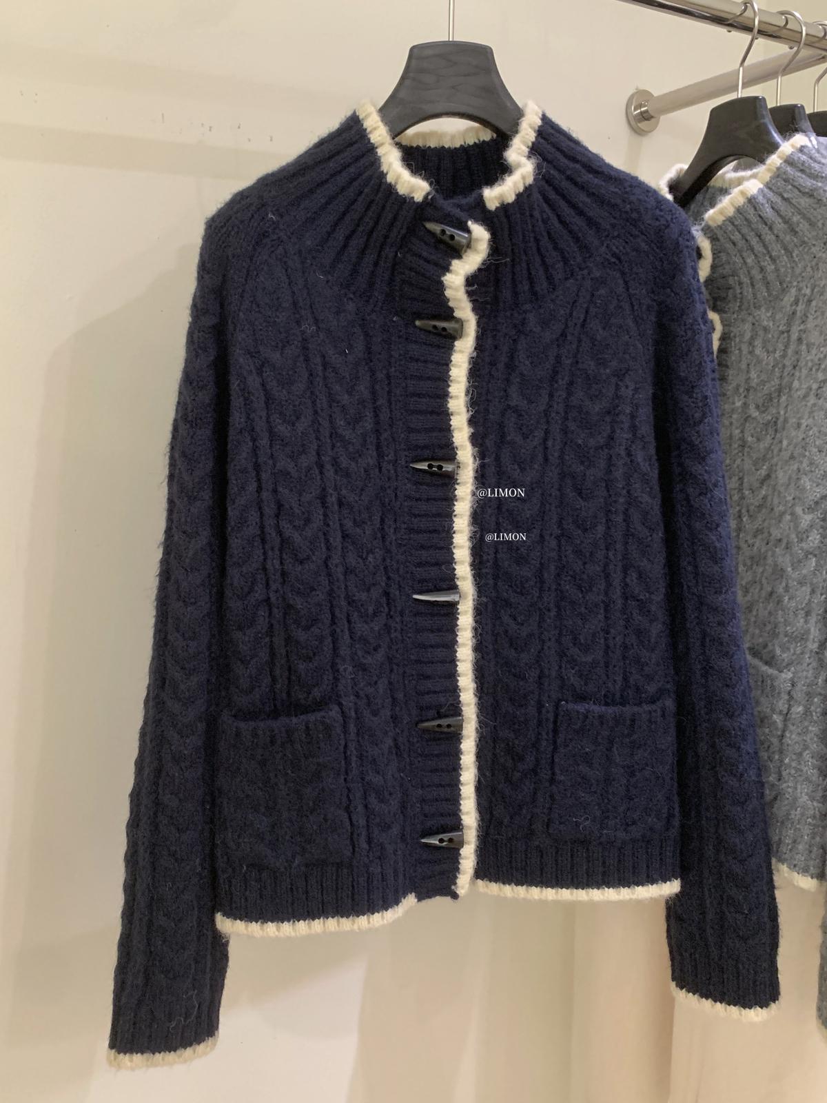 【C8008】高質感重工復古撞色牛角扣開衫保暖毛衣(含8%羊毛)