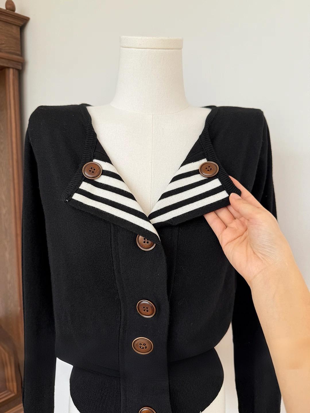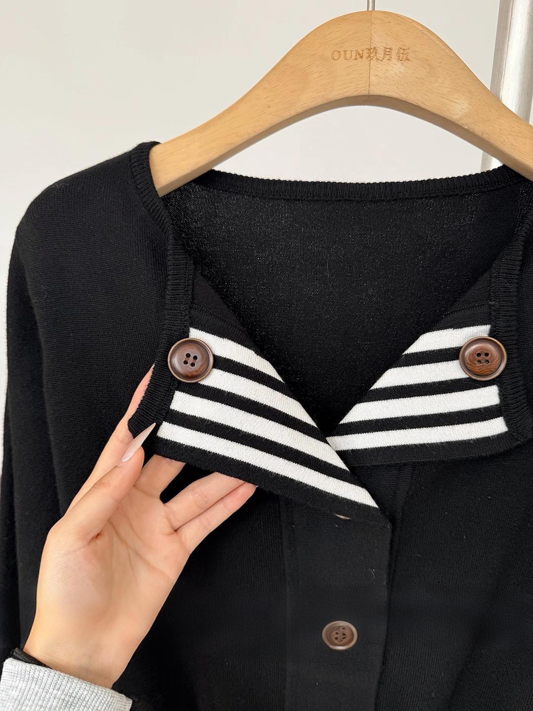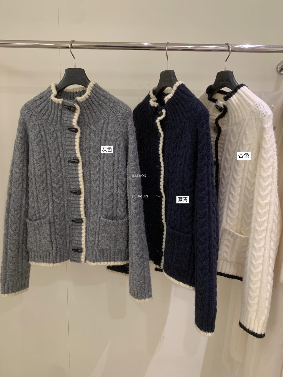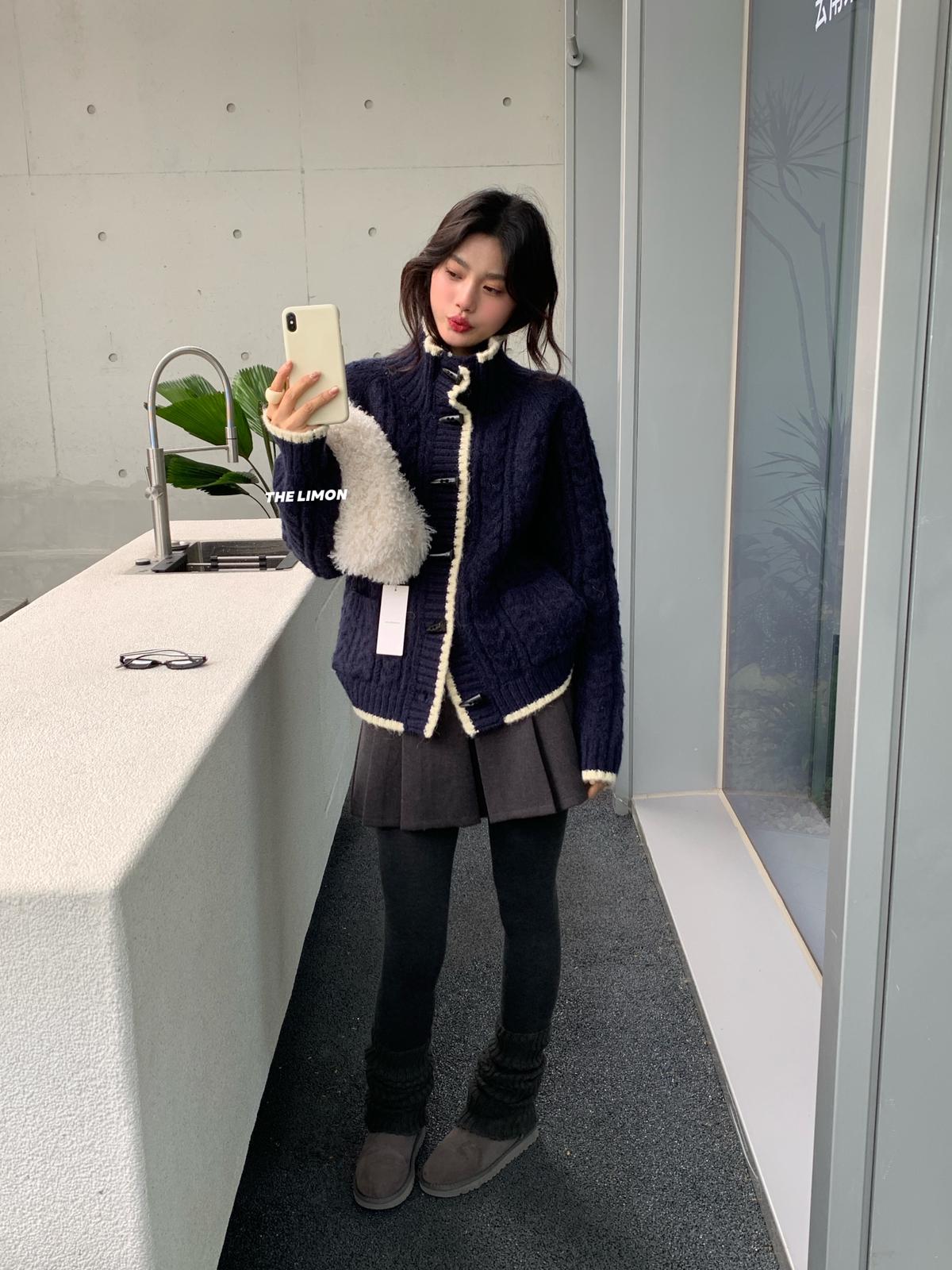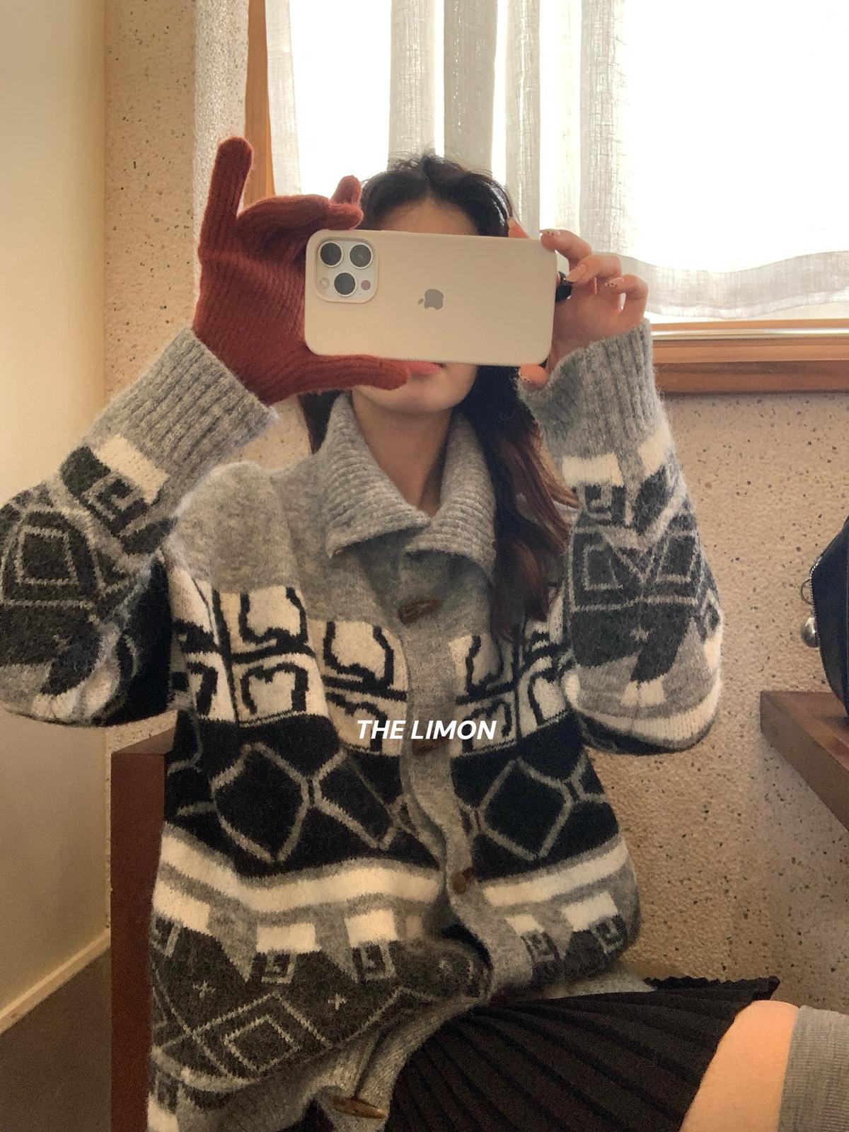 【C8008】高質感重工復古撞色牛角扣開衫保暖毛衣(含8%羊毛)