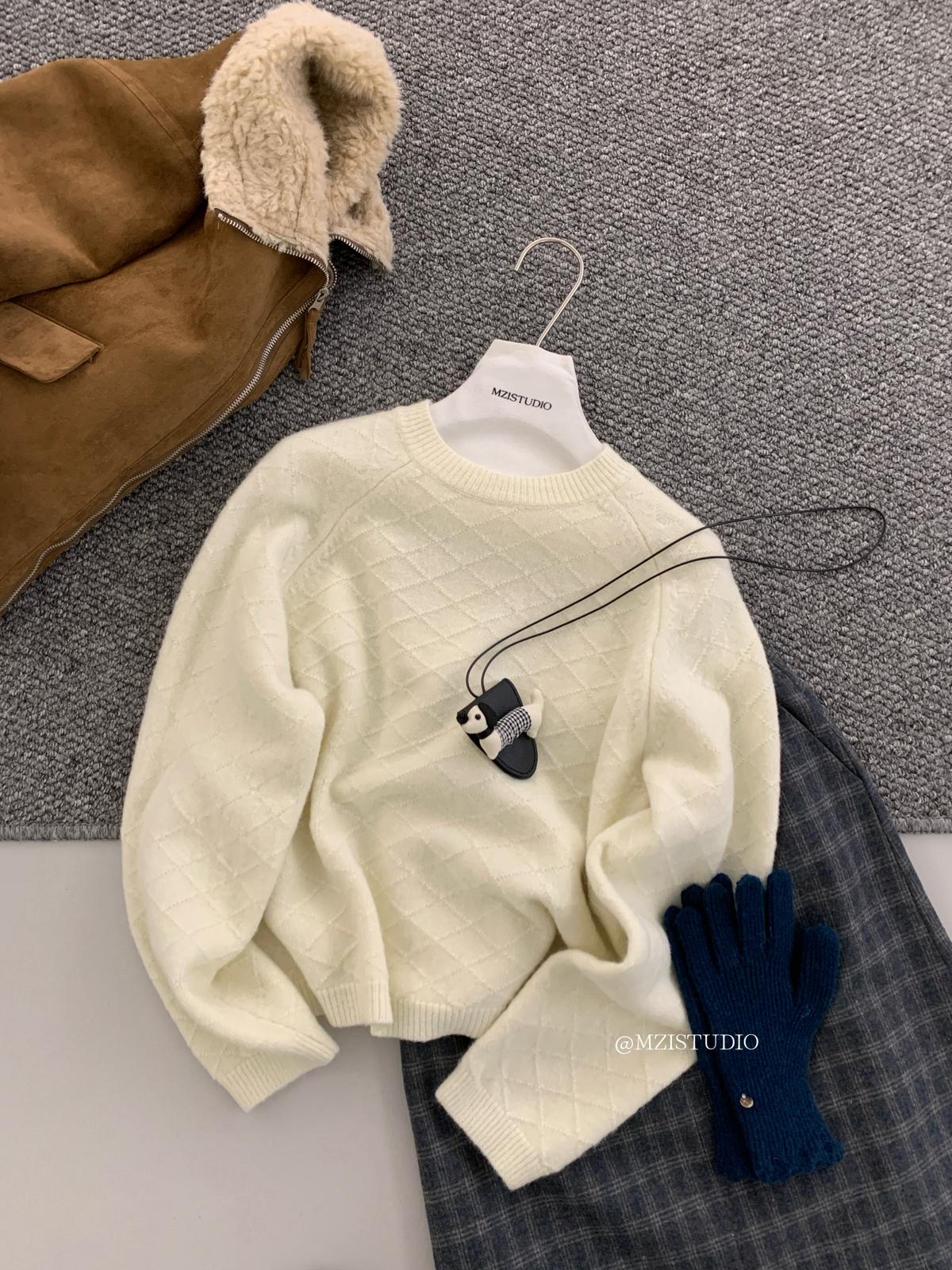 【C7999】溫暖信號韓系冬日提花紋理簡約氣質乾淨軟糯套頭保暖毛衣