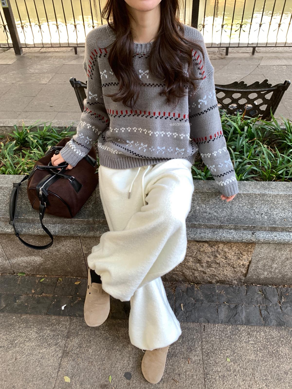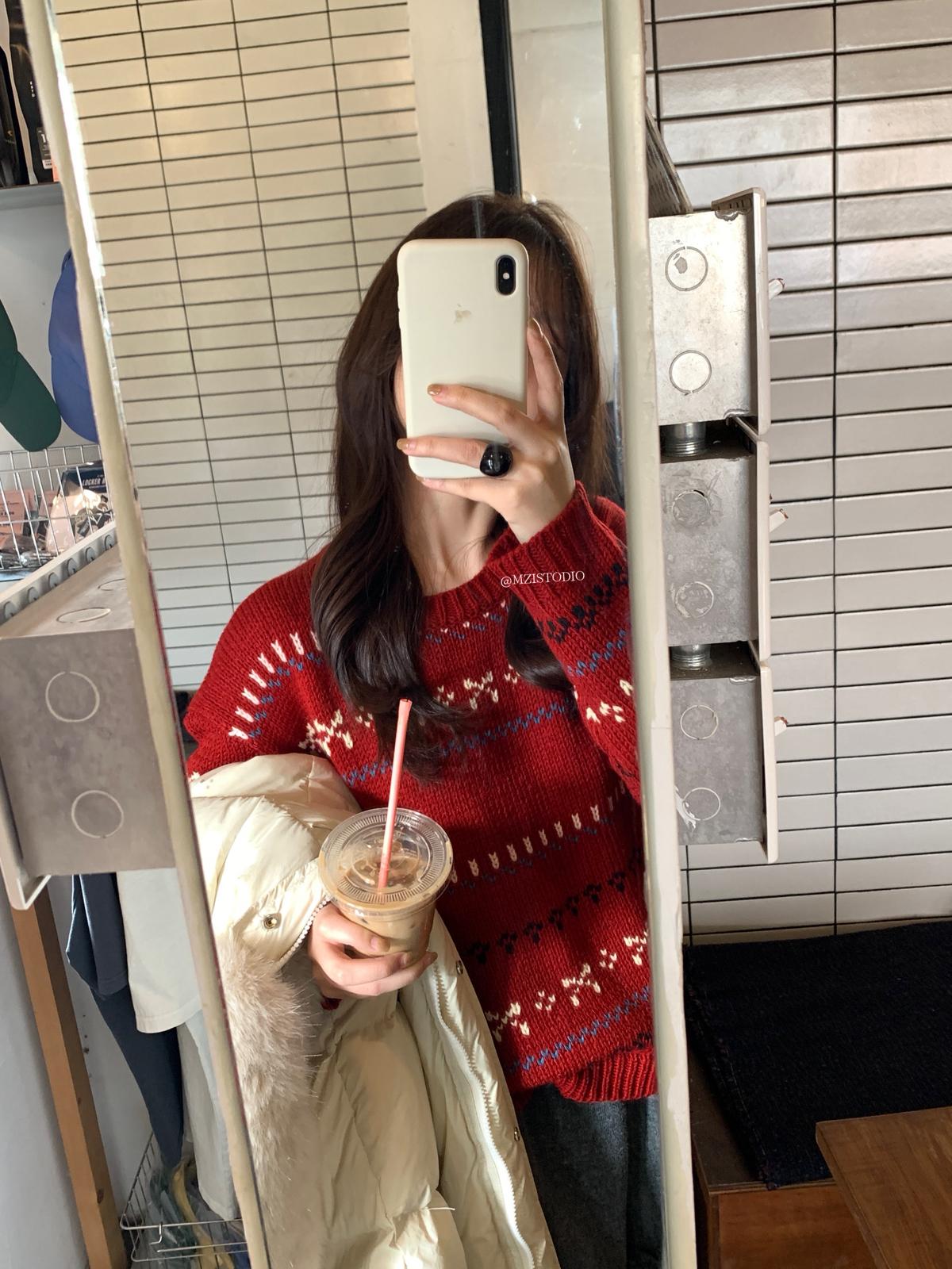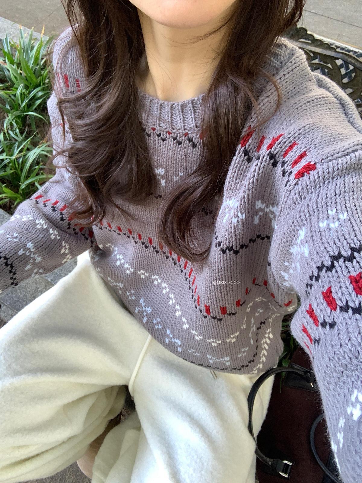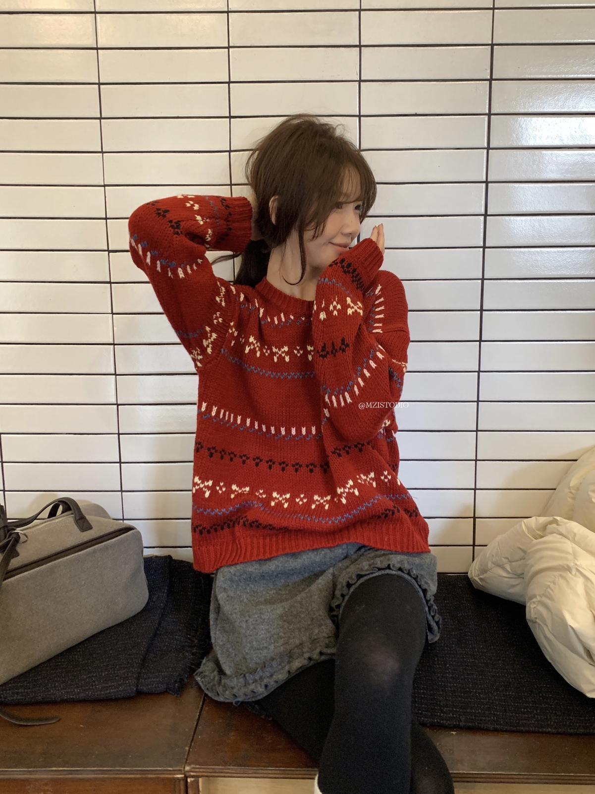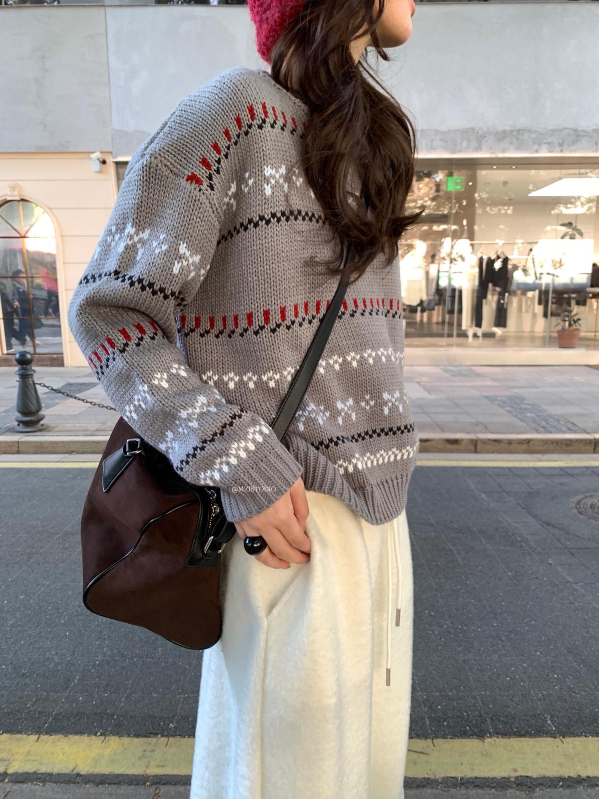 【C8000】冬日溫度詩韓系浪漫費爾島提花圓領柔軟細膩套頭保暖毛衣