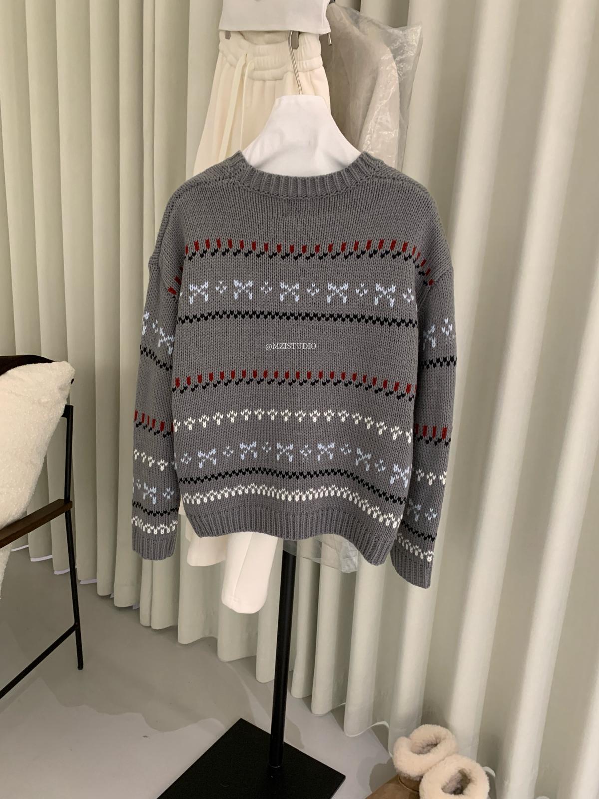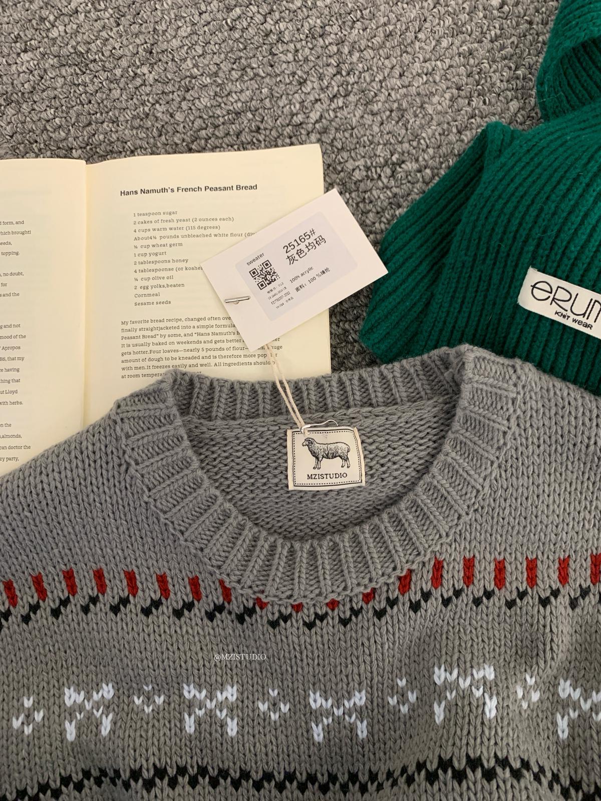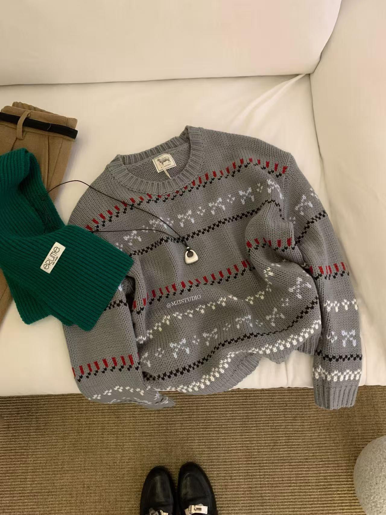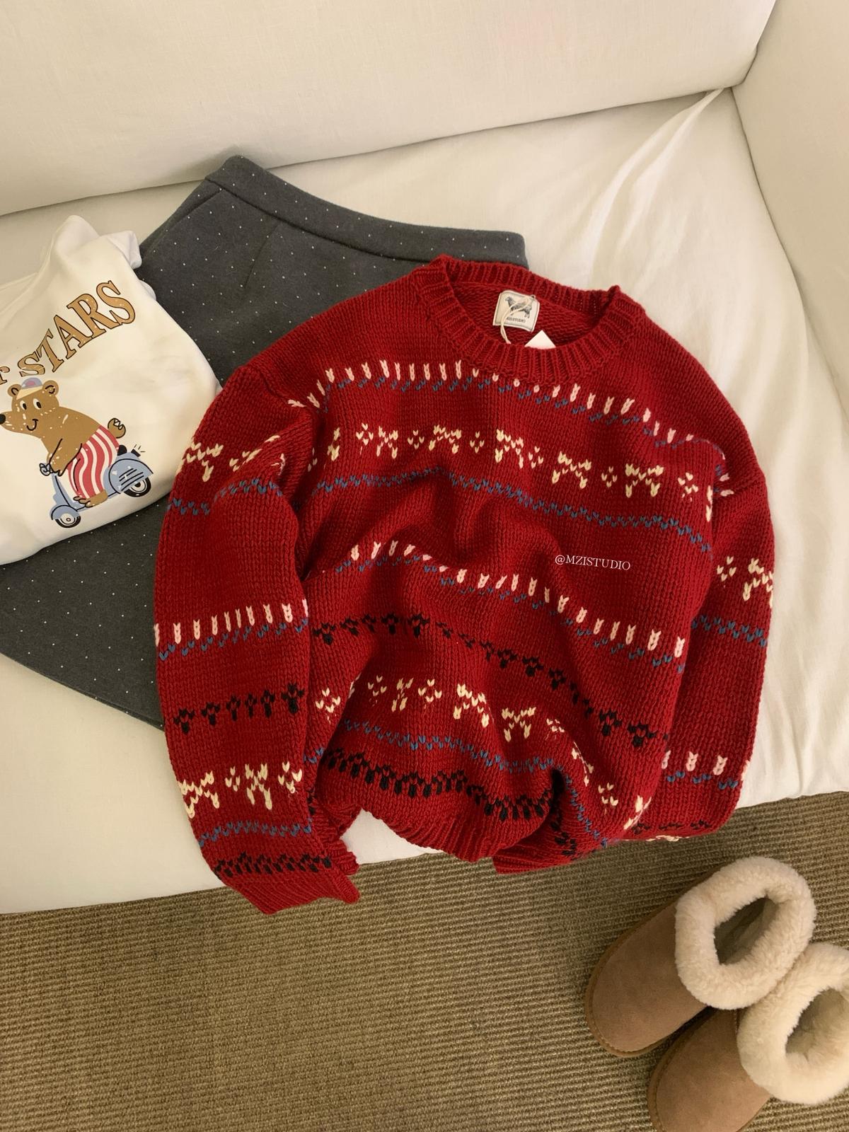 【C8000】冬日溫度詩韓系浪漫費爾島提花圓領柔軟細膩套頭保暖毛衣
