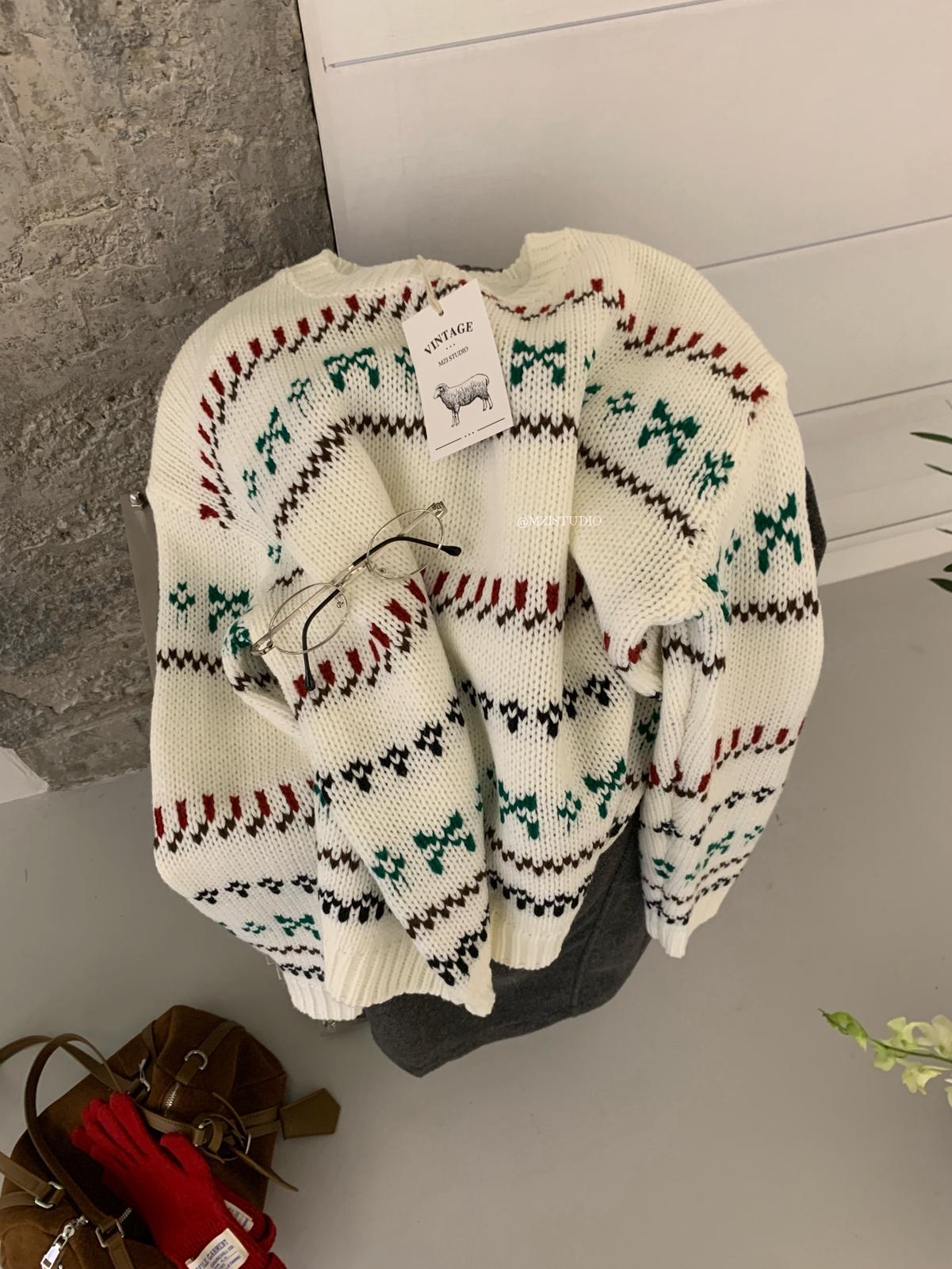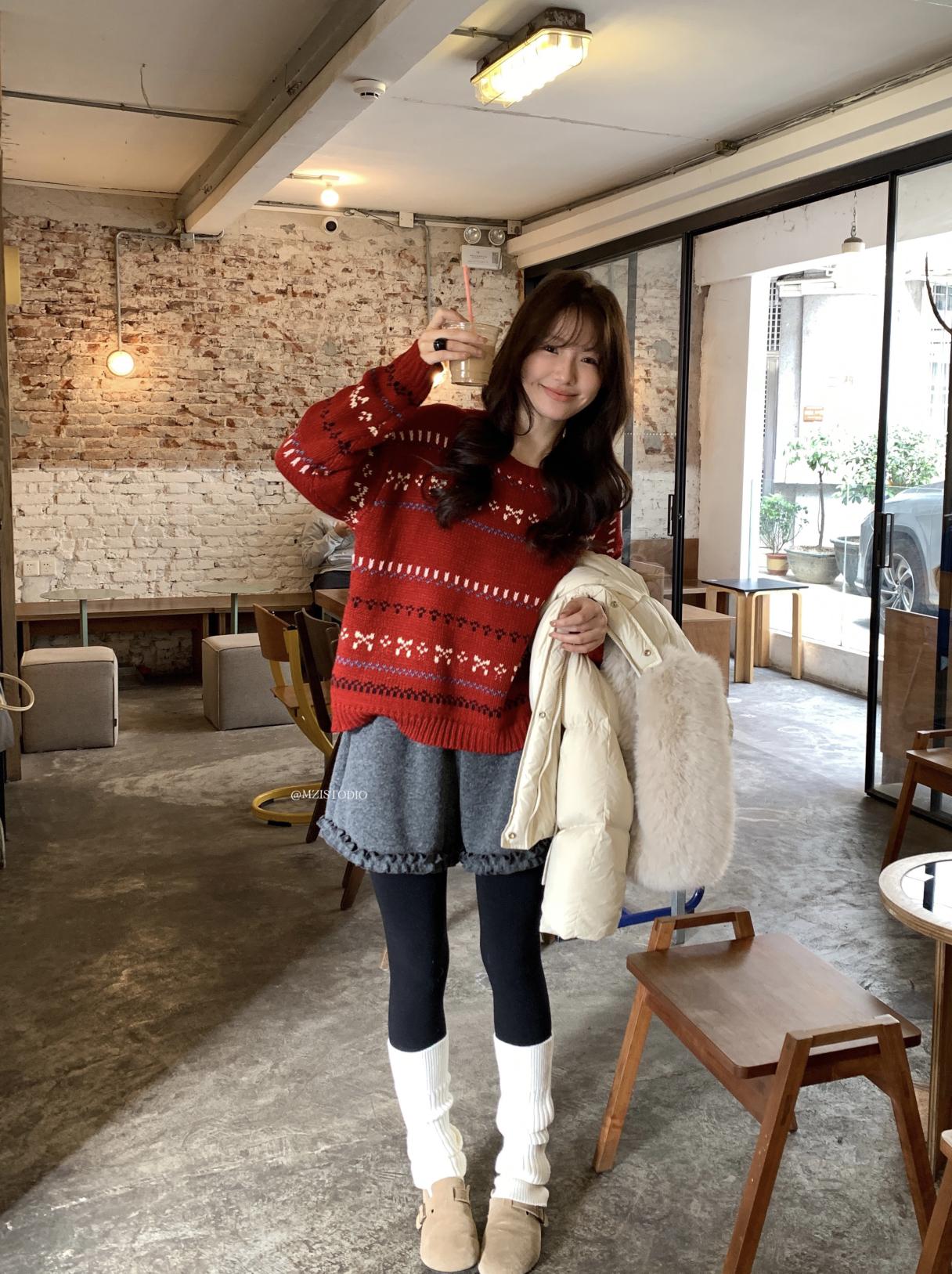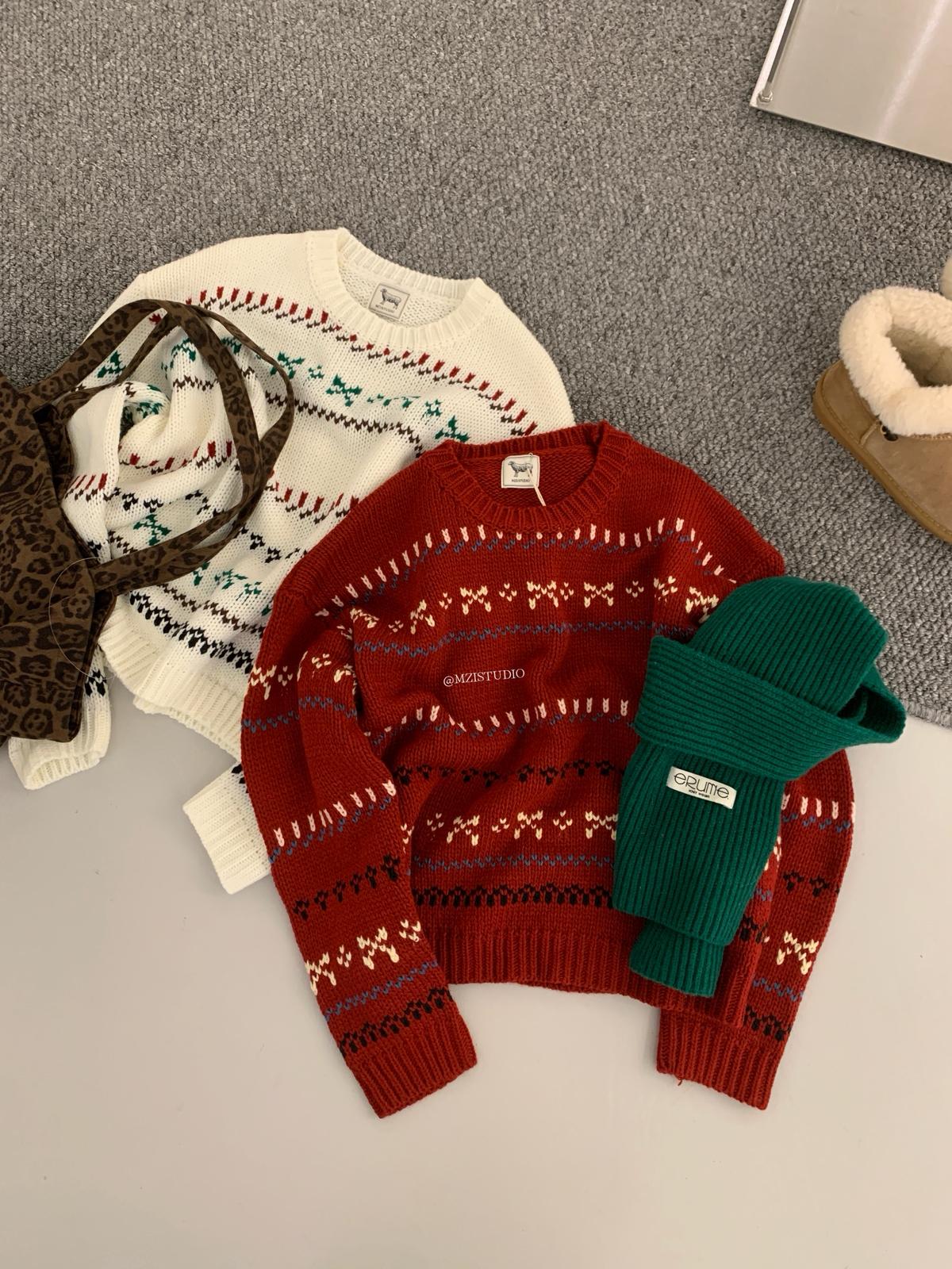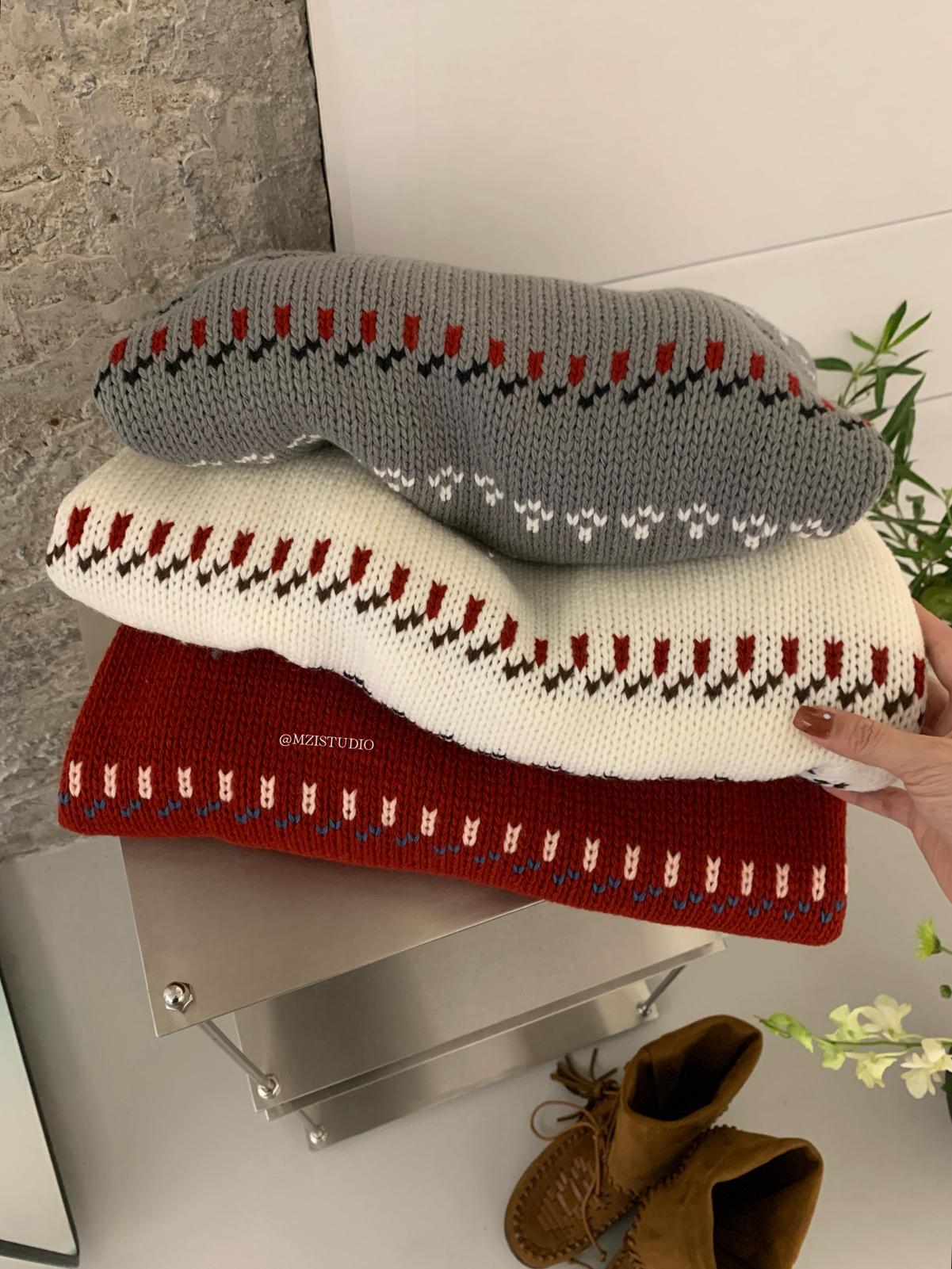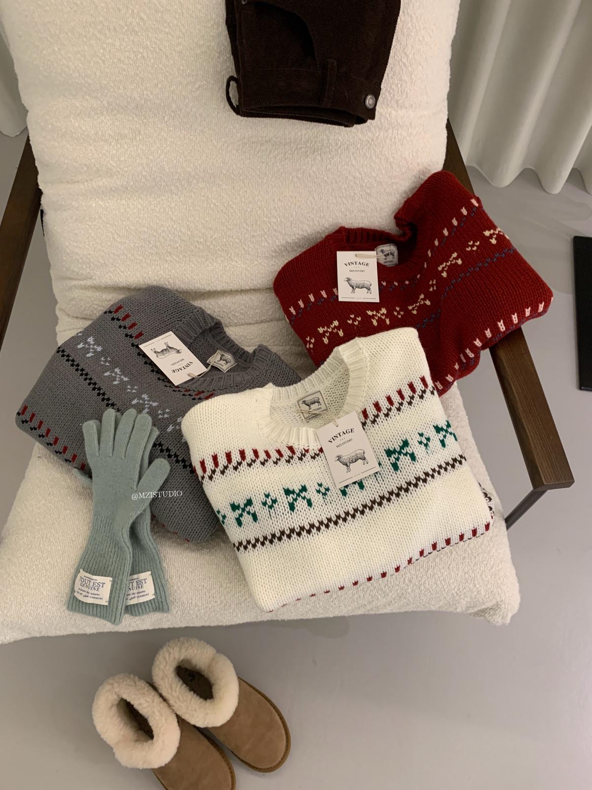 【C8000】冬日溫度詩韓系浪漫費爾島提花圓領柔軟細膩套頭保暖毛衣