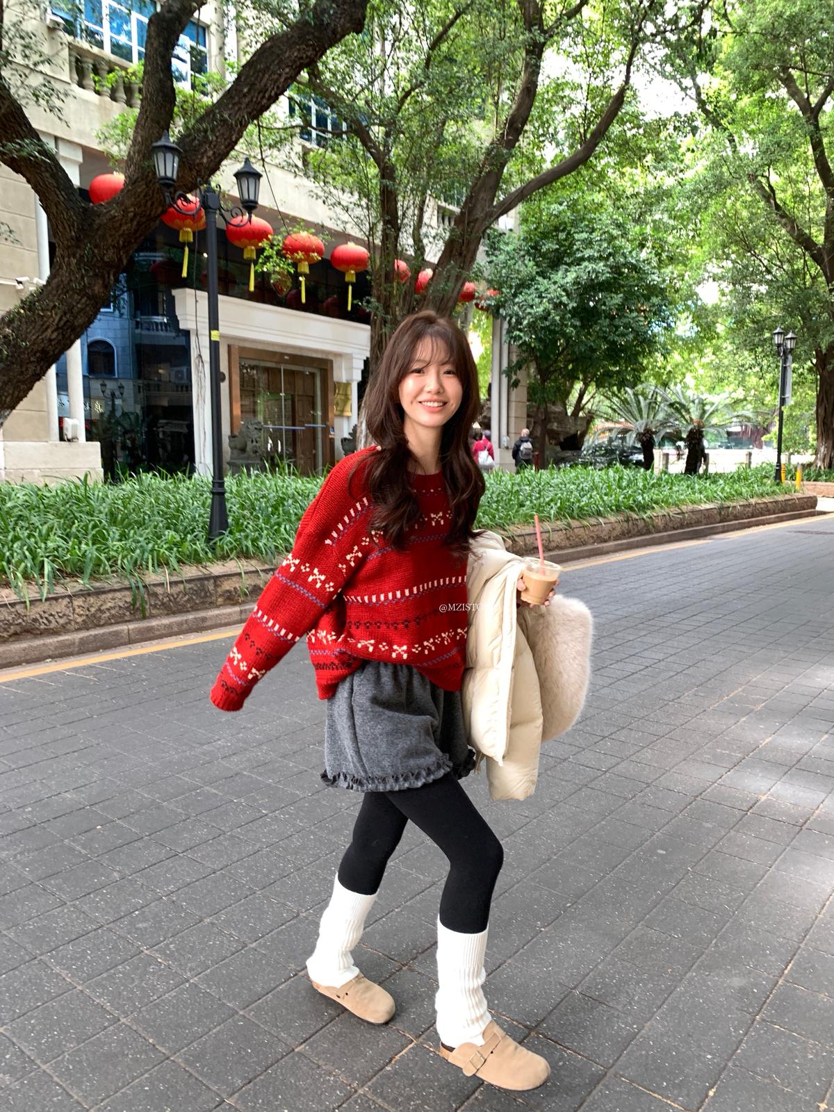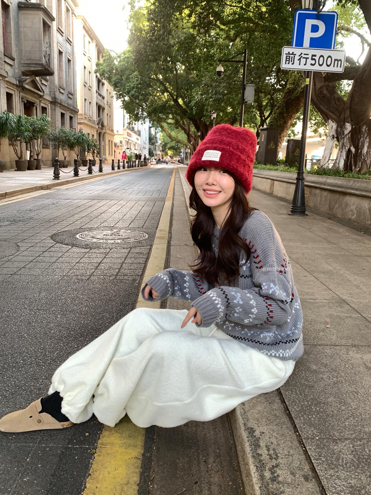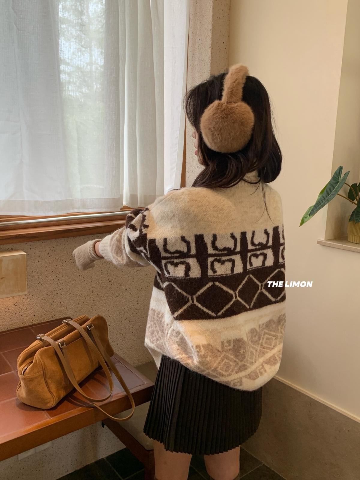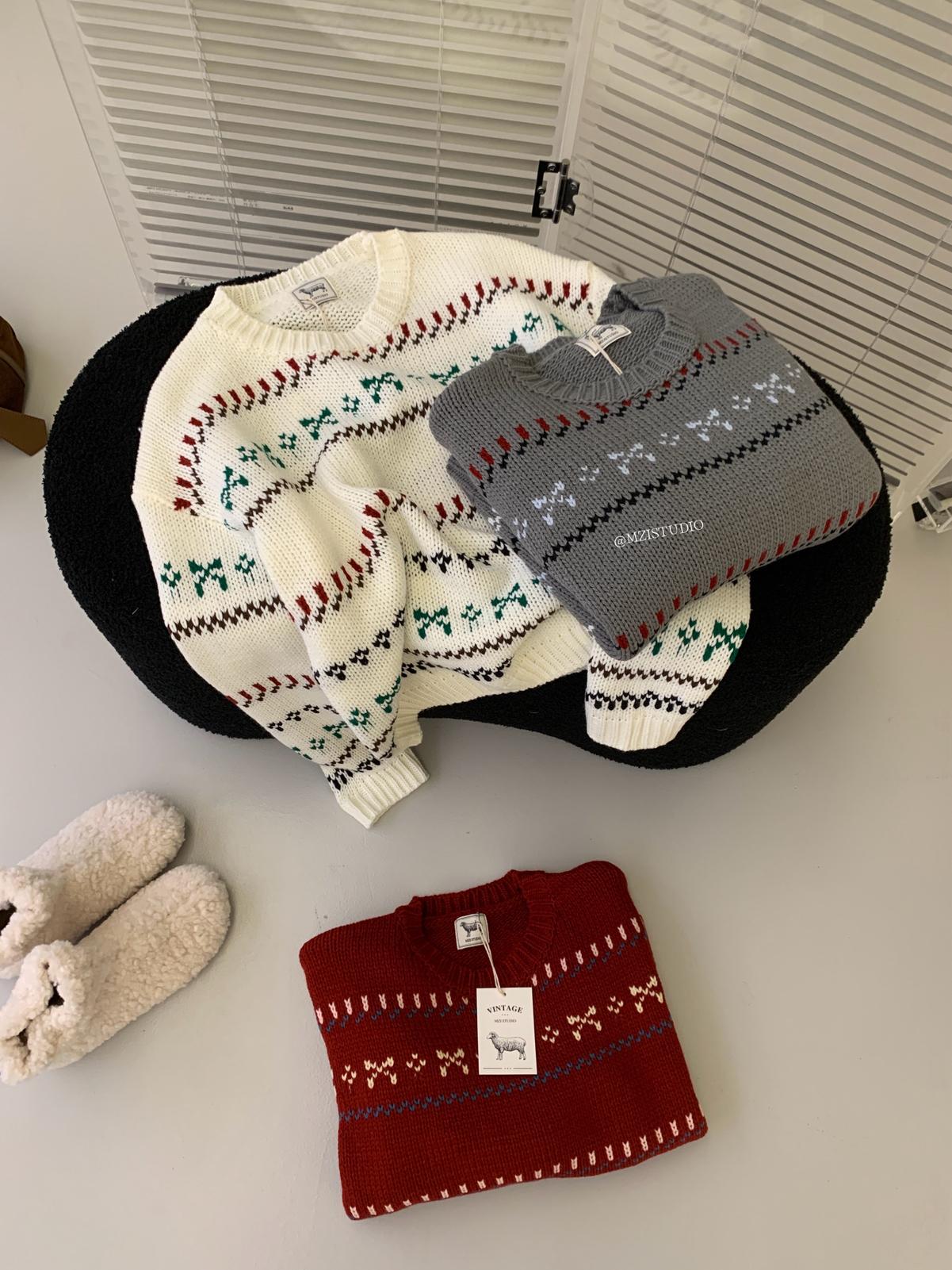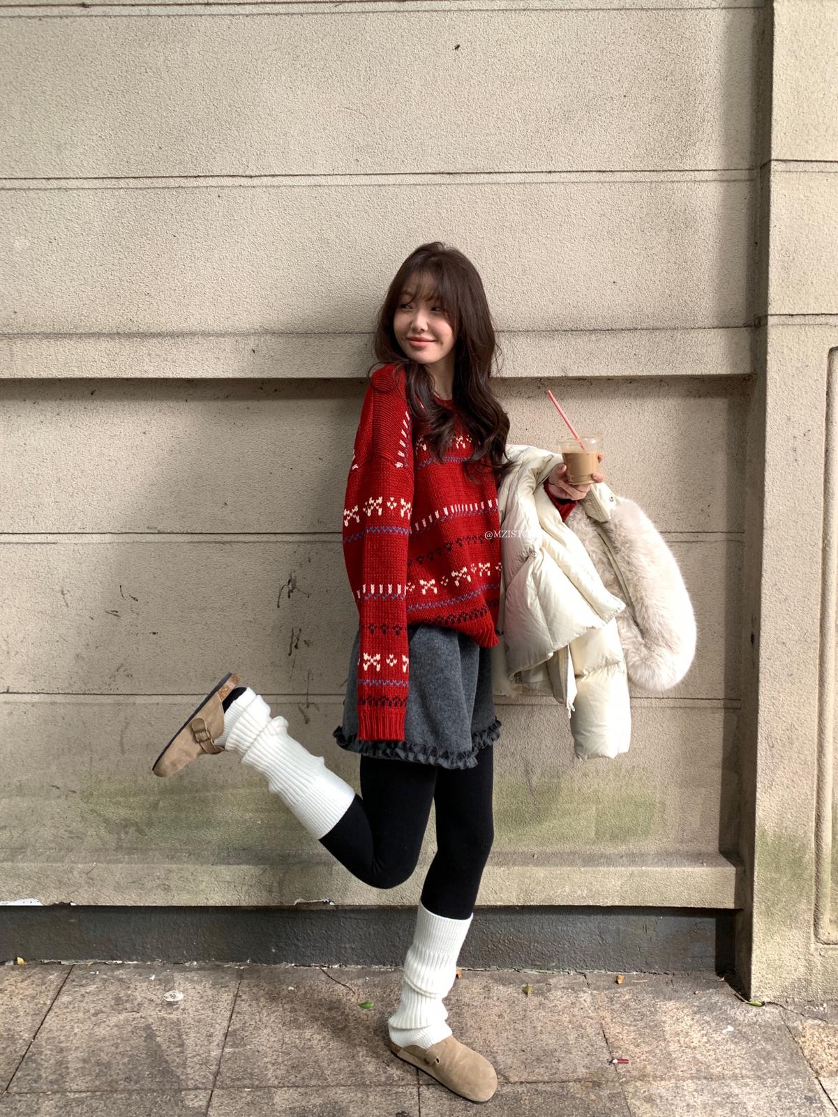 【C8000】冬日溫度詩韓系浪漫費爾島提花圓領柔軟細膩套頭保暖毛衣