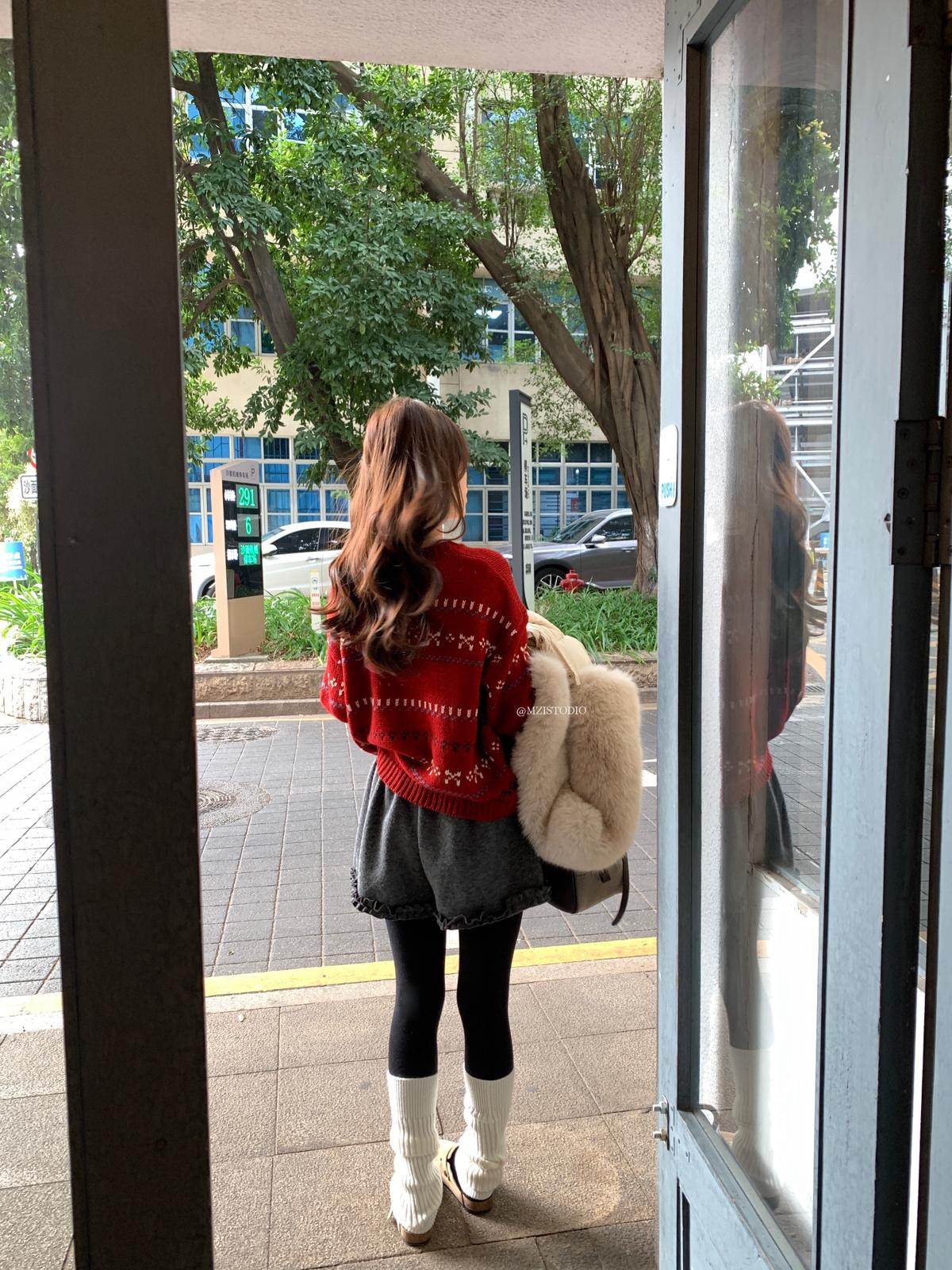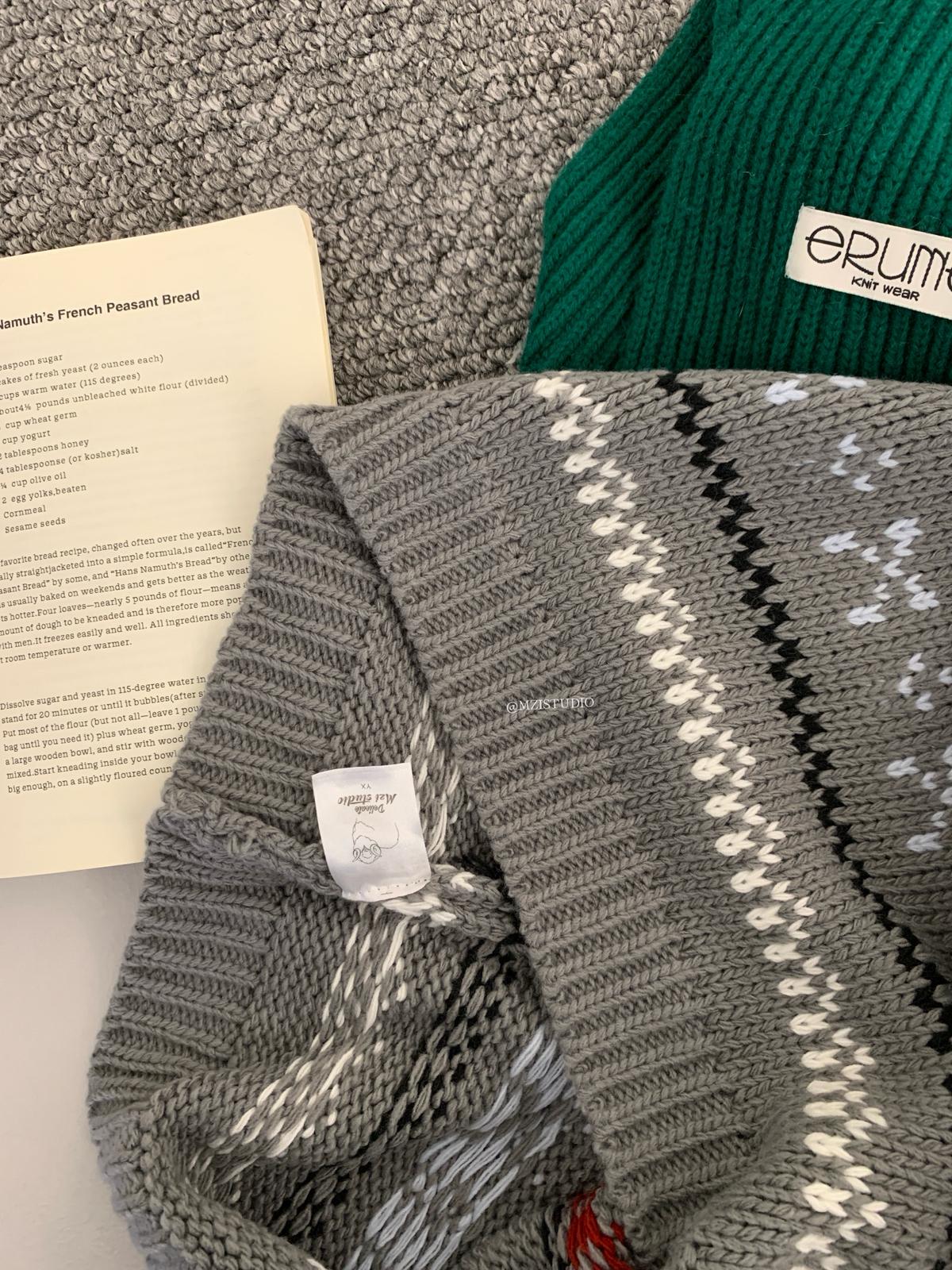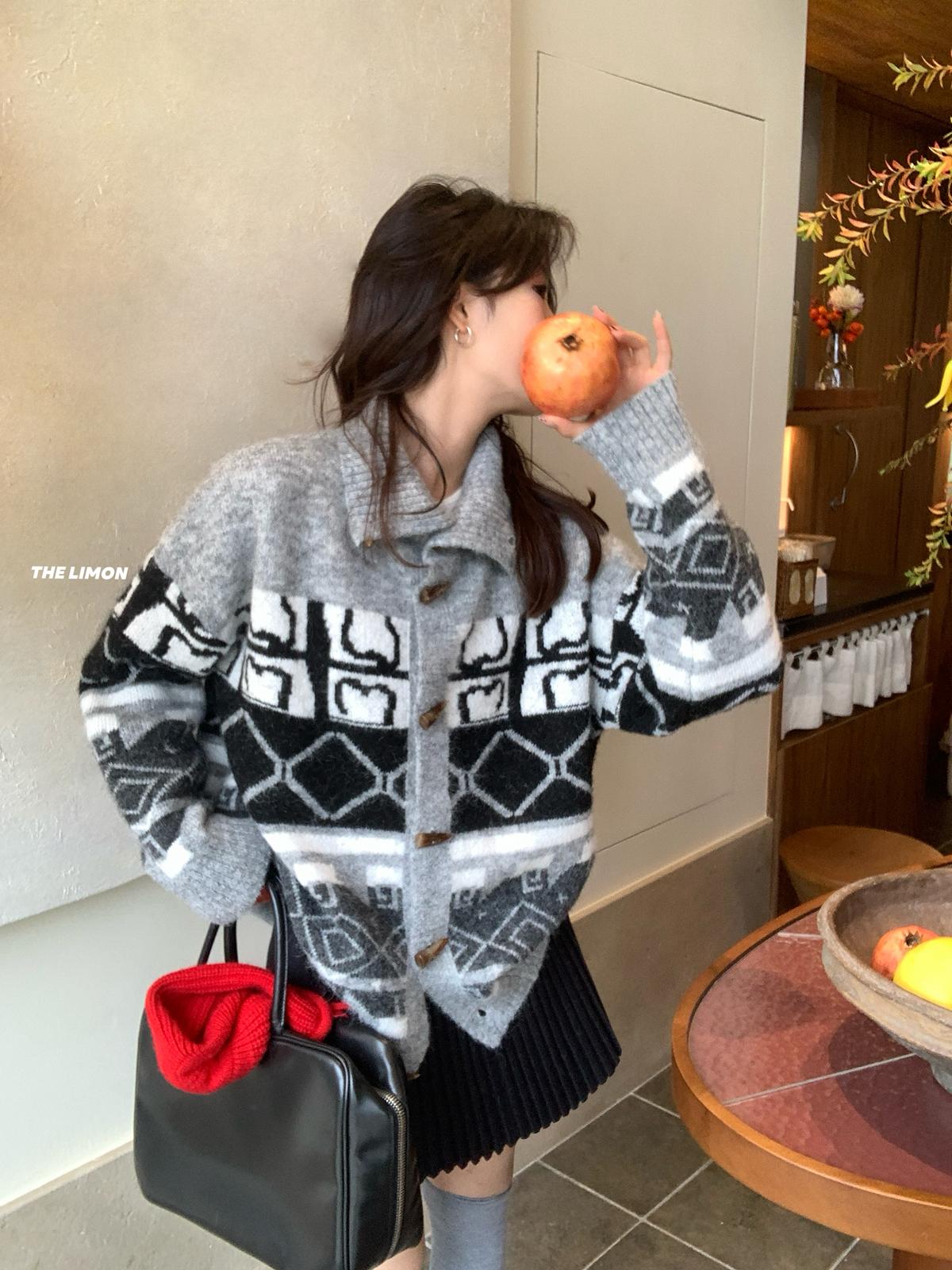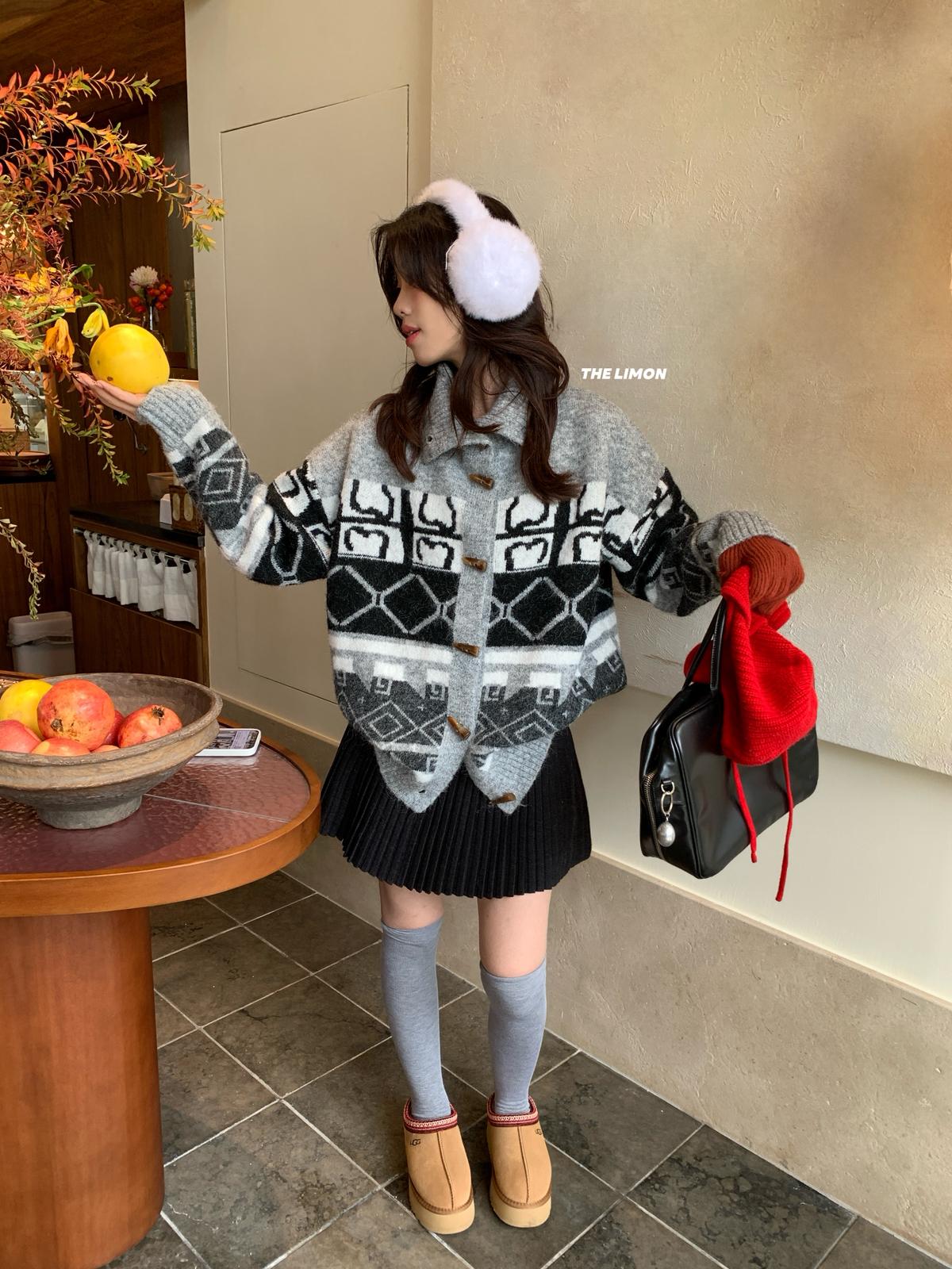 【C7983】冬新品慵懶費爾島提花連帽開衫毛衣+休閒短褲兩件套裝