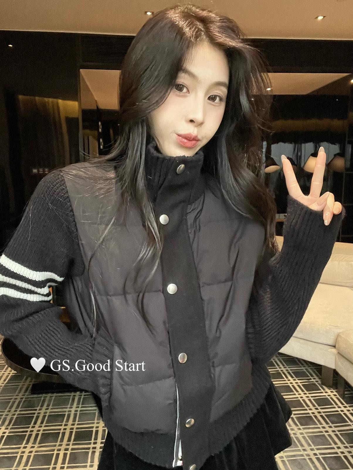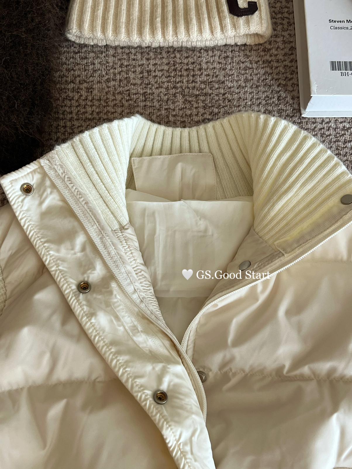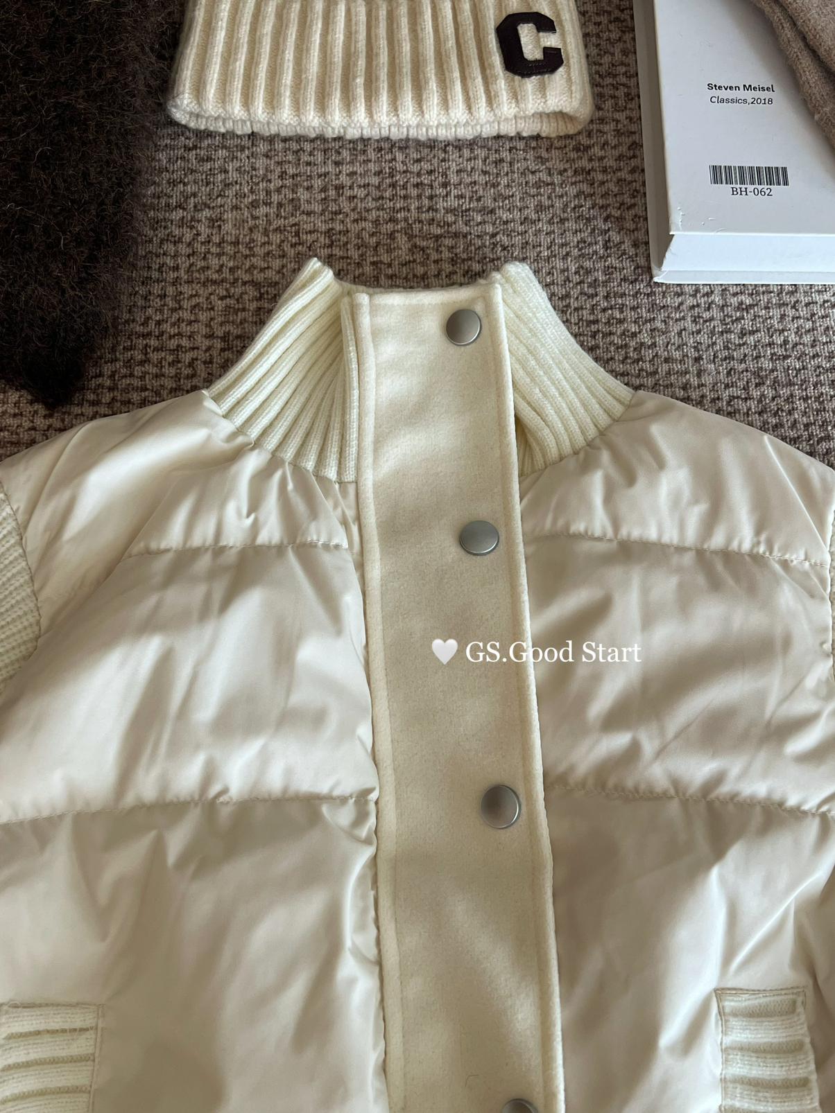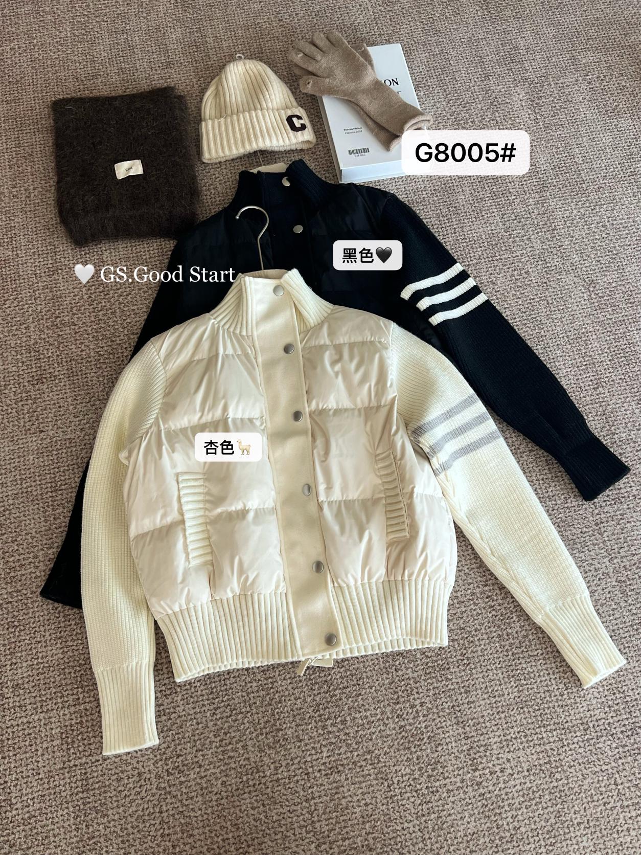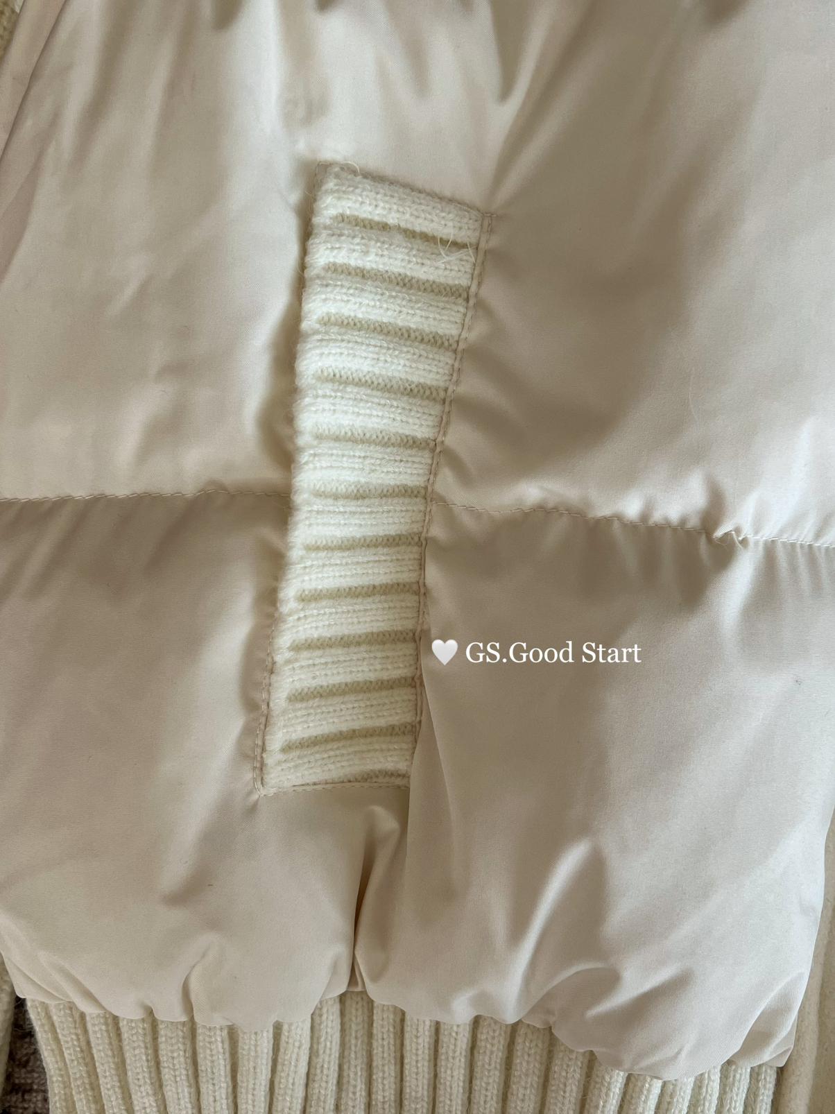 【C8012】全員自留款!版型優秀*顯瘦又保暖!冬季時髦休閒針織拼接短款羽絨服(好品質.收到都好評)