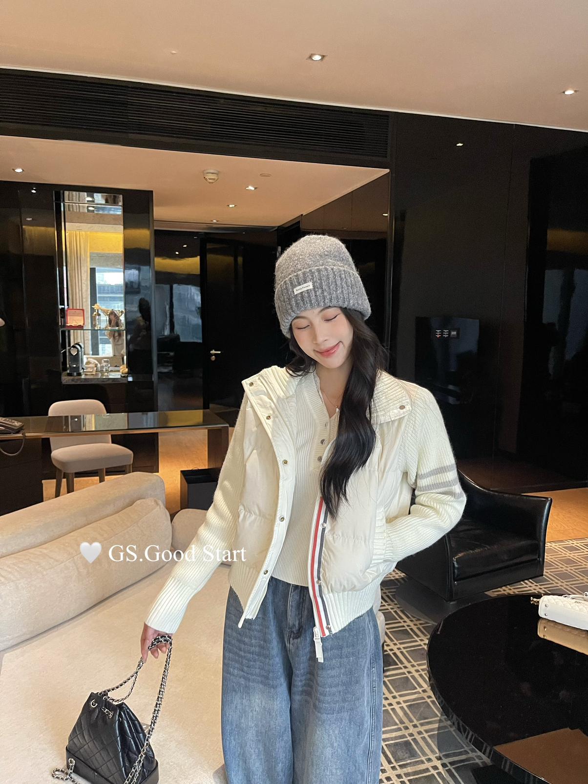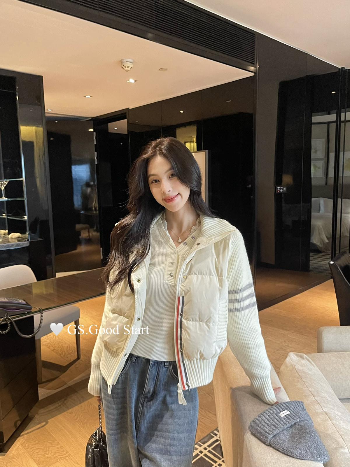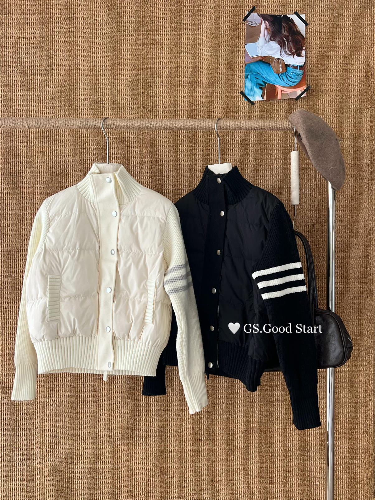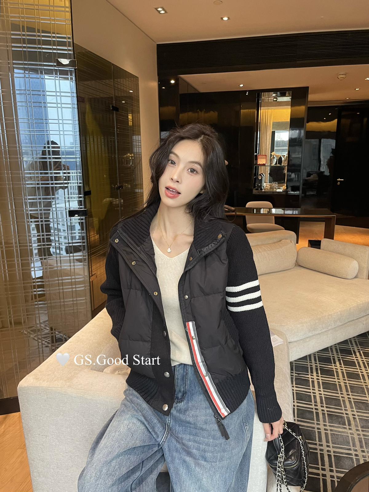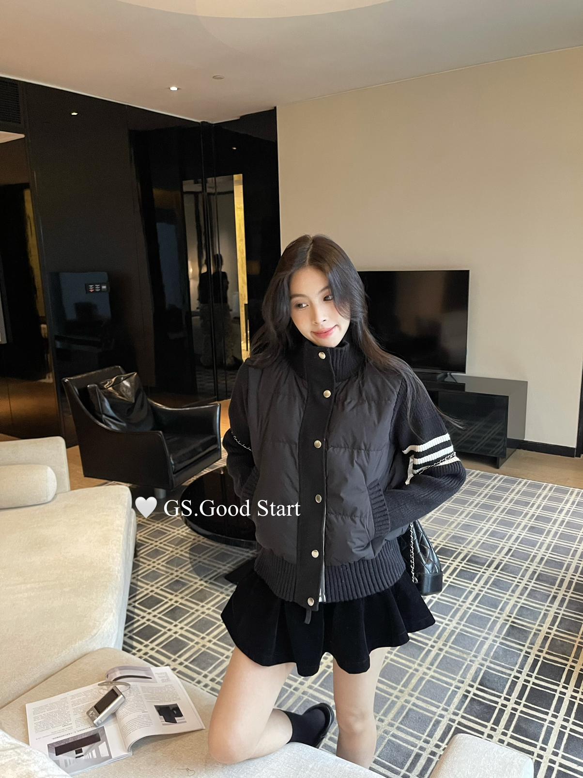 【C8012】全員自留款!版型優秀*顯瘦又保暖!冬季時髦休閒針織拼接短款羽絨服(好品質.收到都好評)
