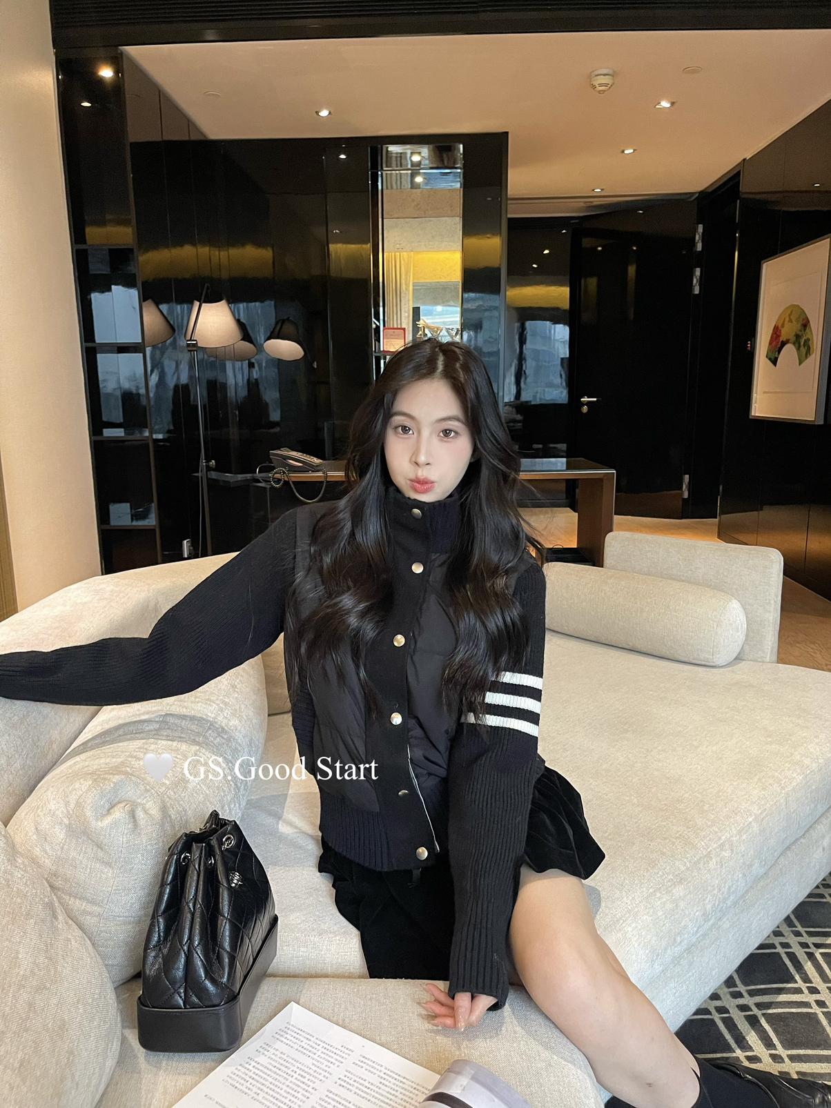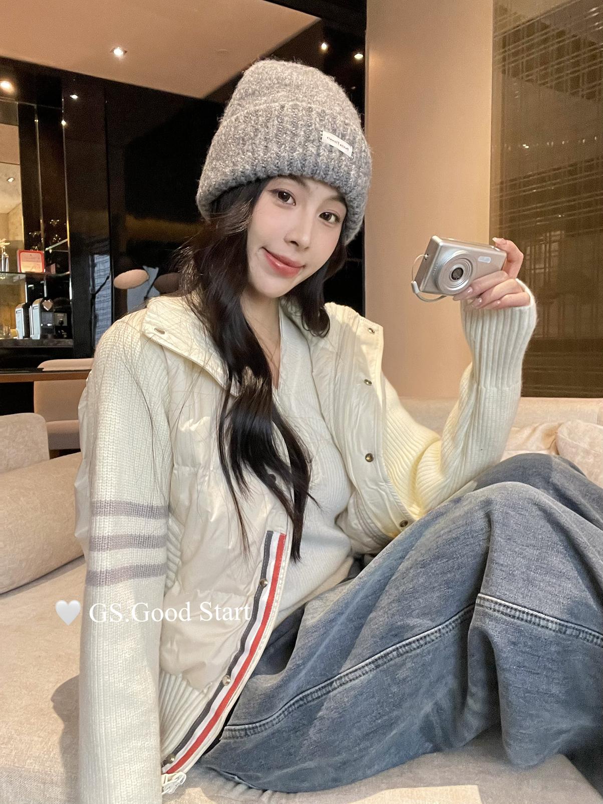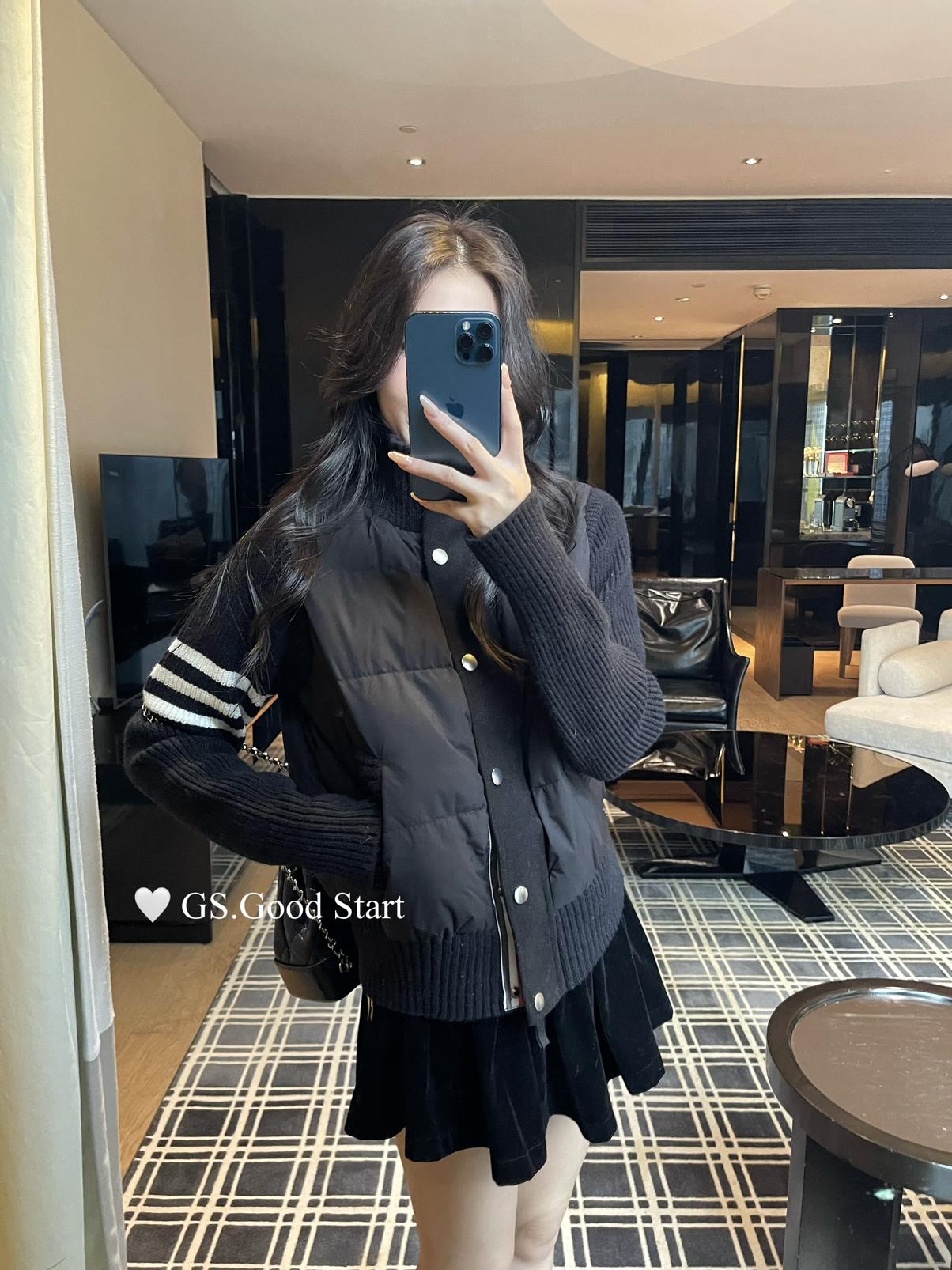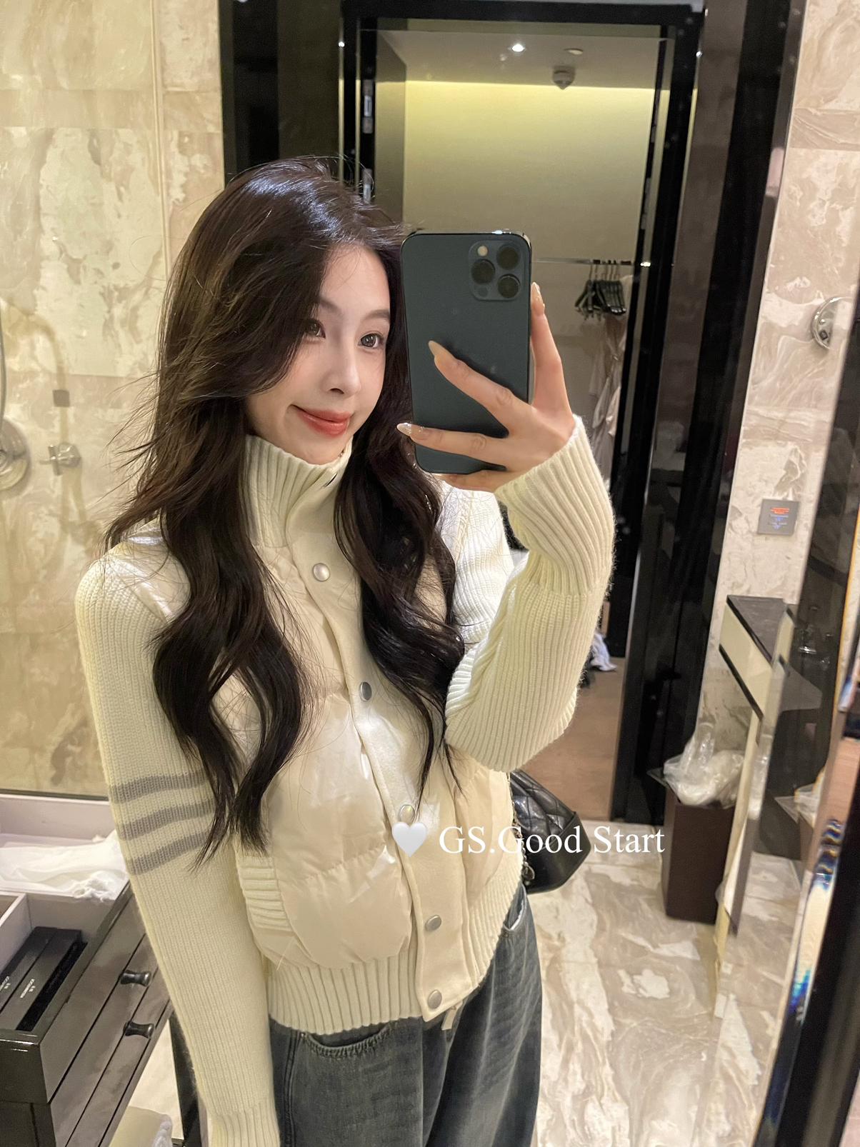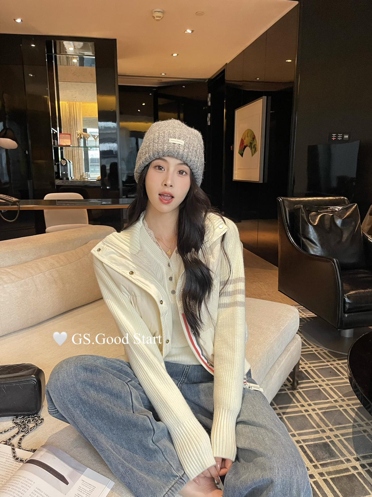 【C8012】全員自留款!版型優秀*顯瘦又保暖!冬季時髦休閒針織拼接短款羽絨服(好品質.收到都好評)