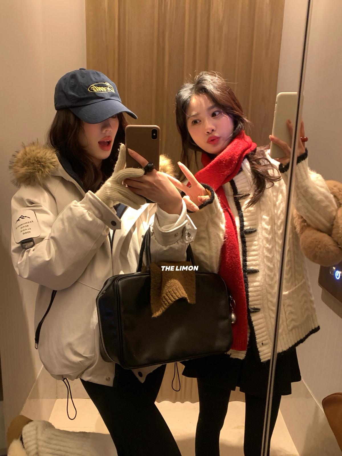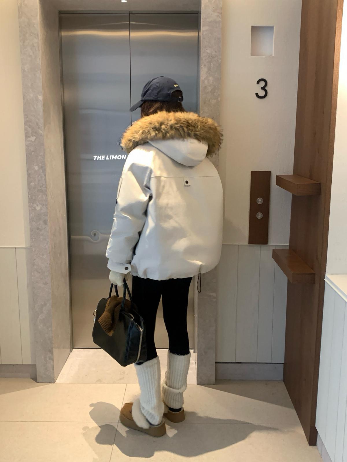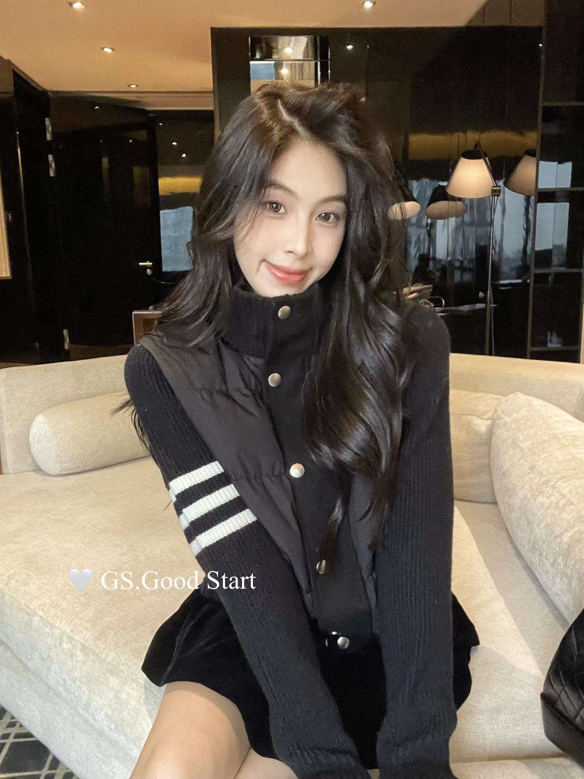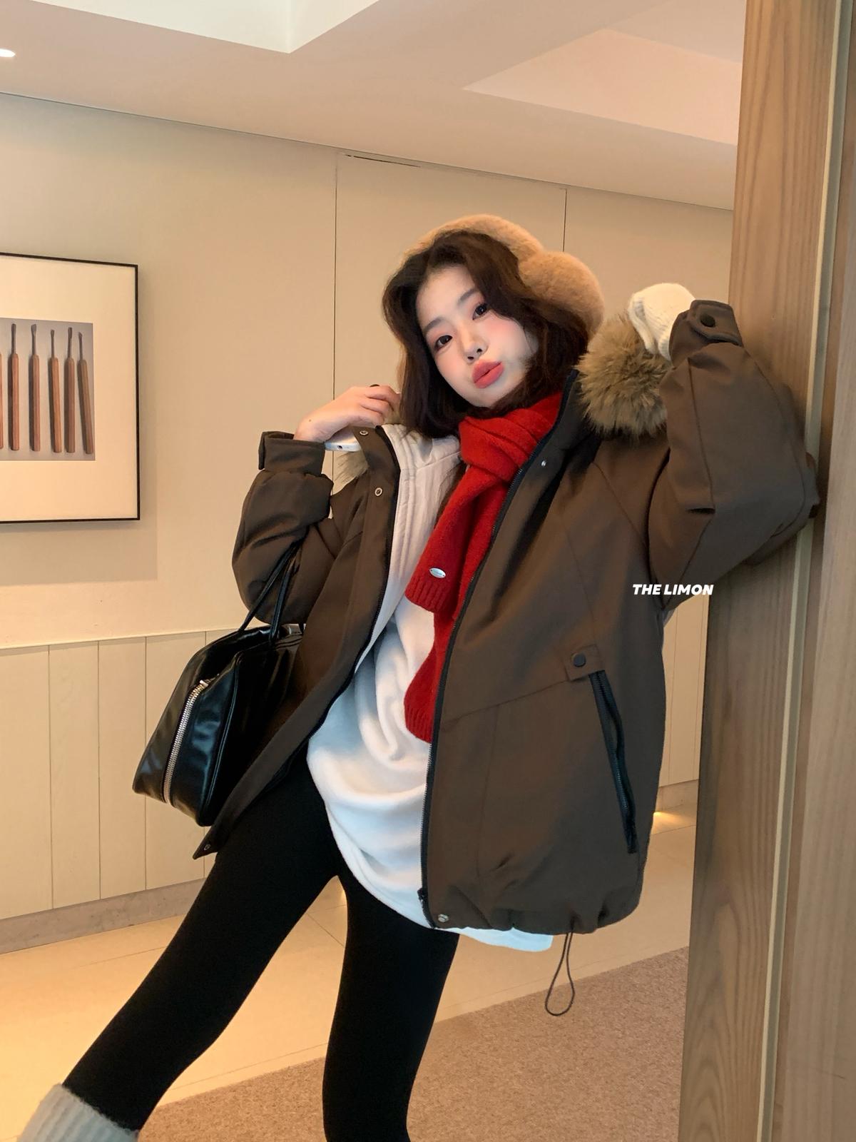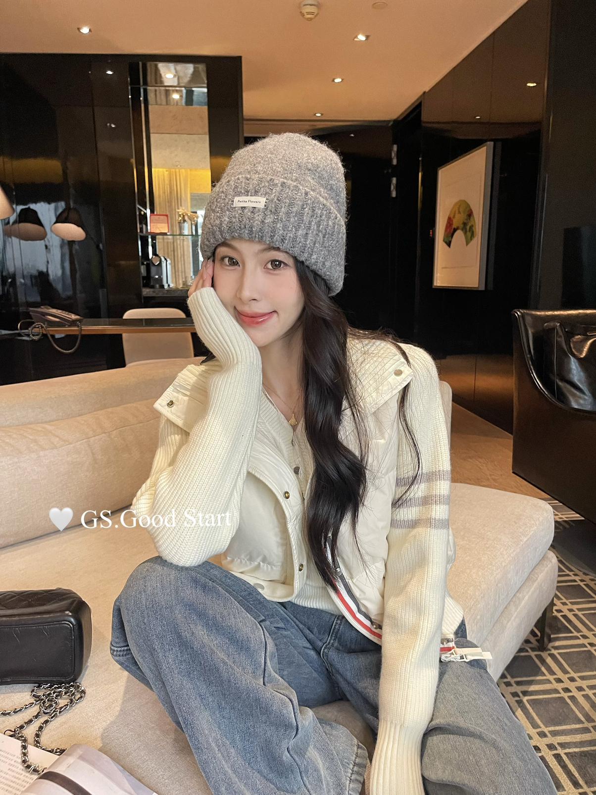 【C8012】全員自留款!版型優秀*顯瘦又保暖!冬季時髦休閒針織拼接短款羽絨服(好品質.收到都好評)