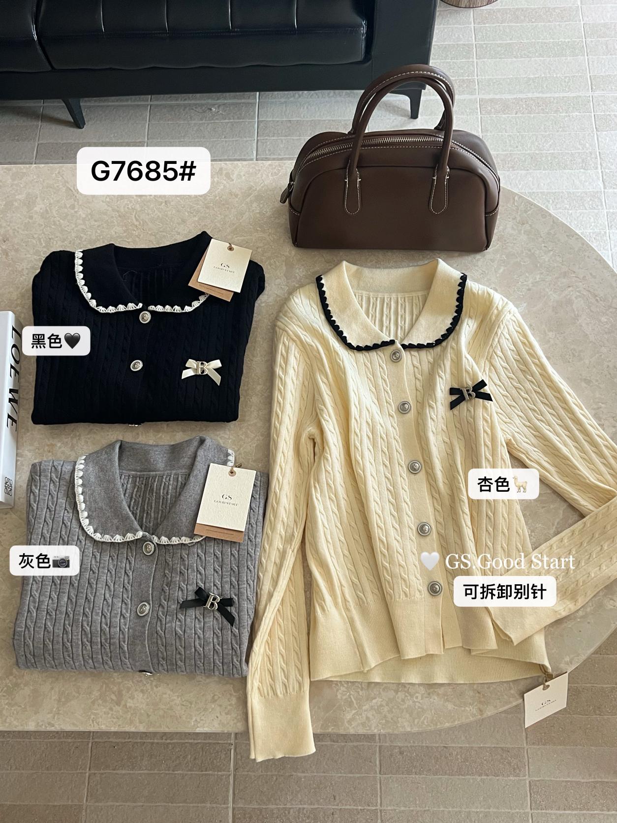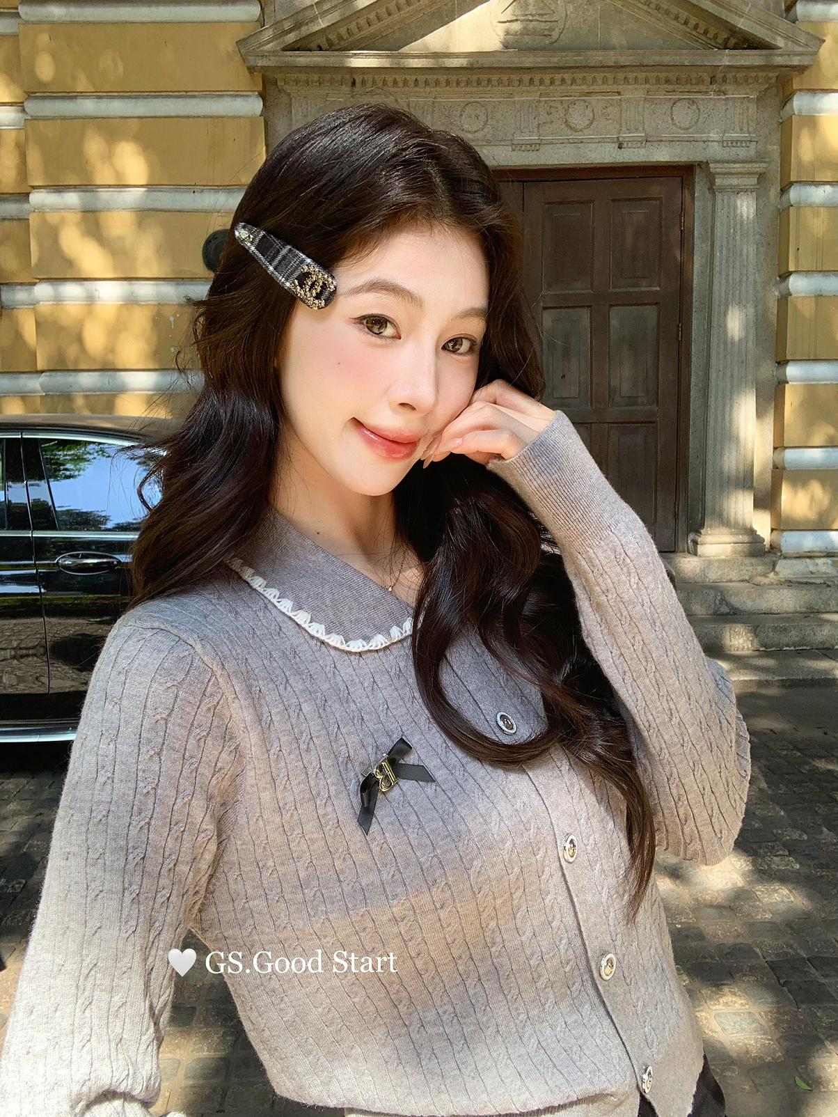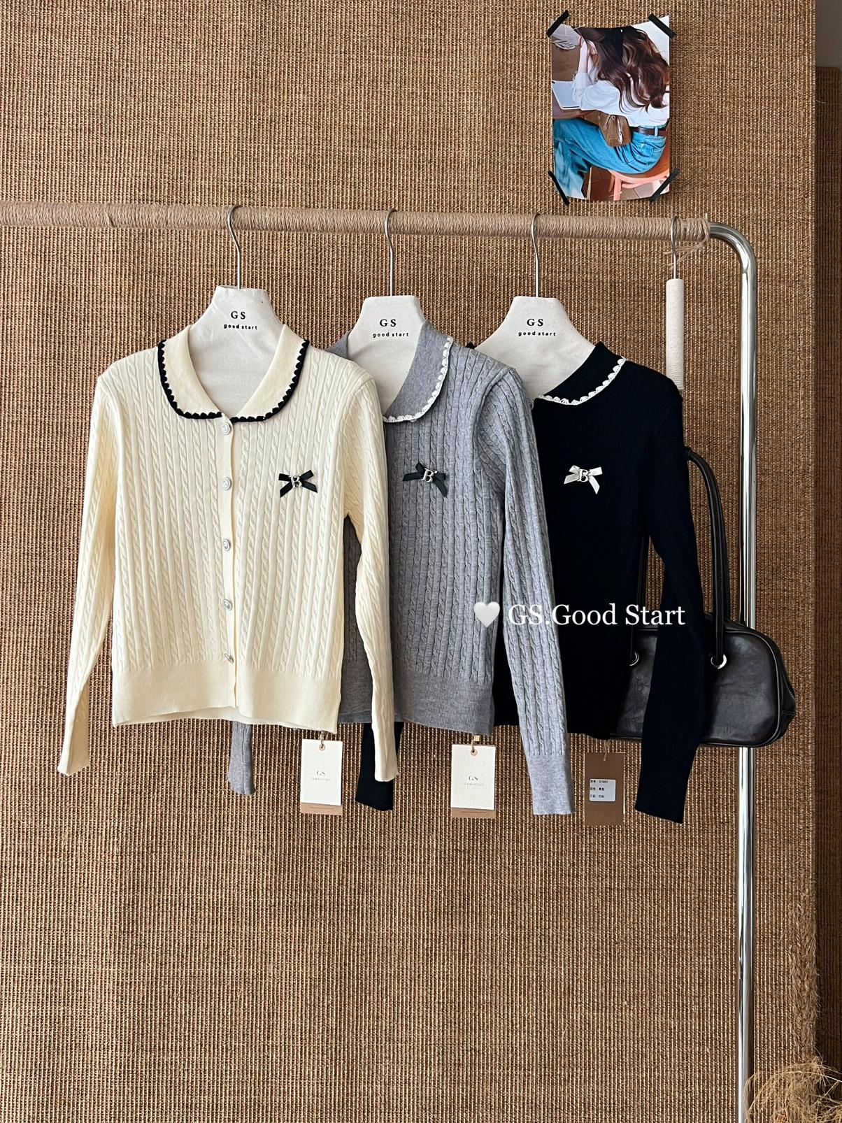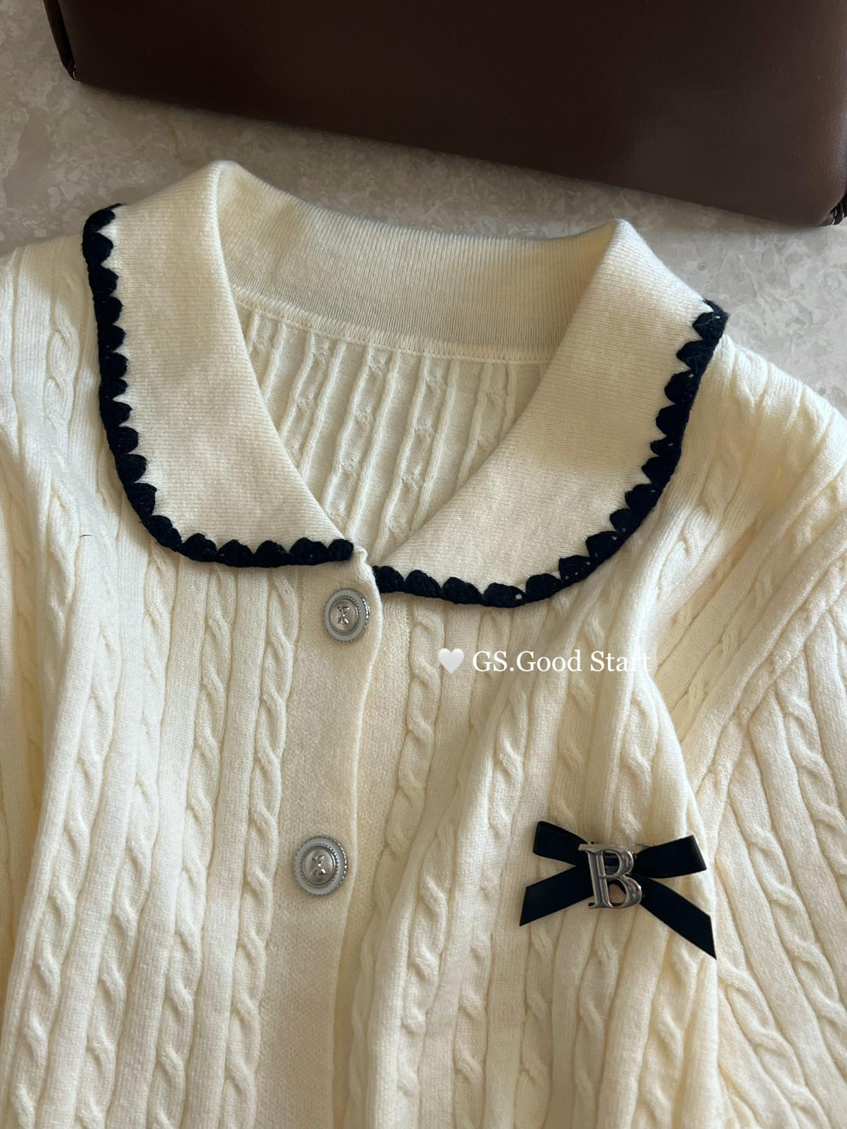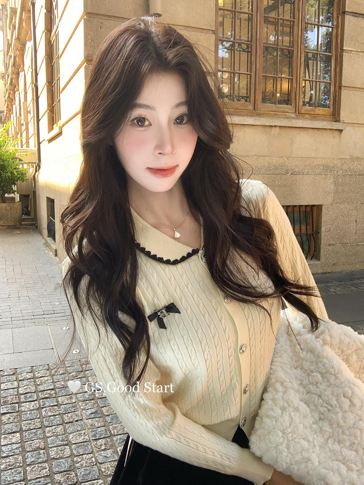 【C8009】香系乖乖千金~三色主推!閉眼入!冬法式氣質復古蝴蝶結針織小衫(配可拆卸別針)