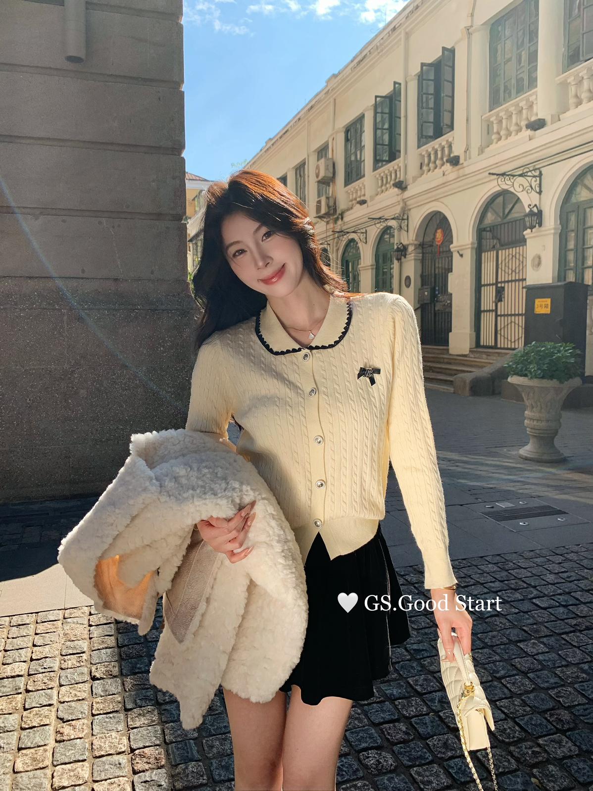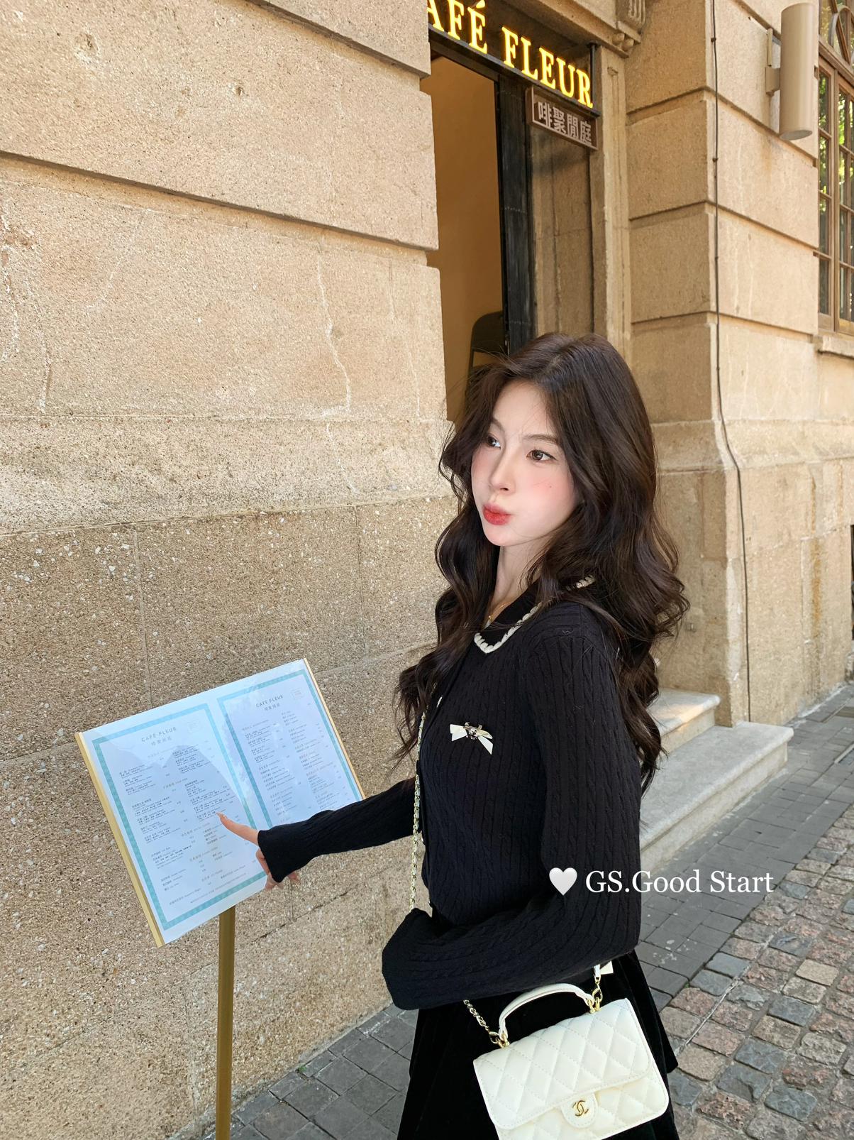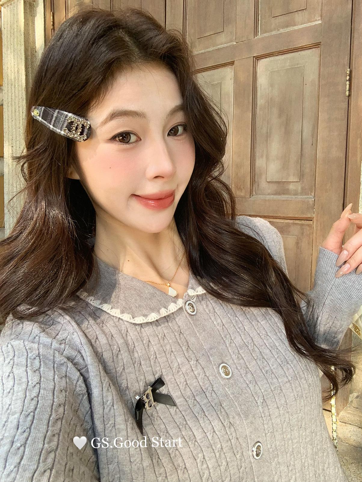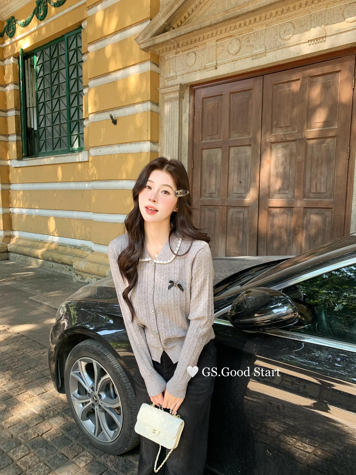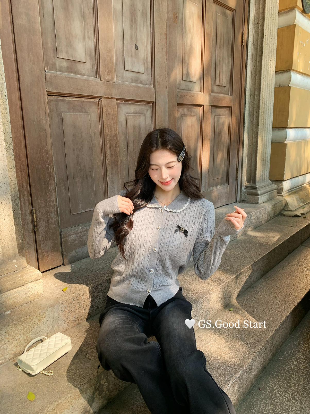 【C8009】香系乖乖千金~三色主推!閉眼入!冬法式氣質復古蝴蝶結針織小衫(配可拆卸別針)