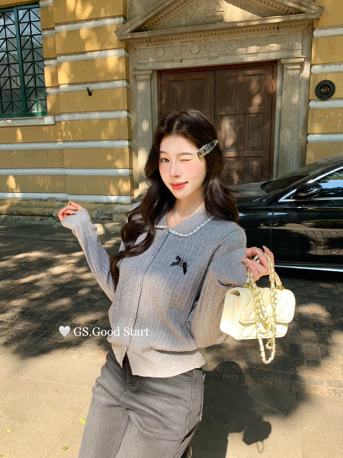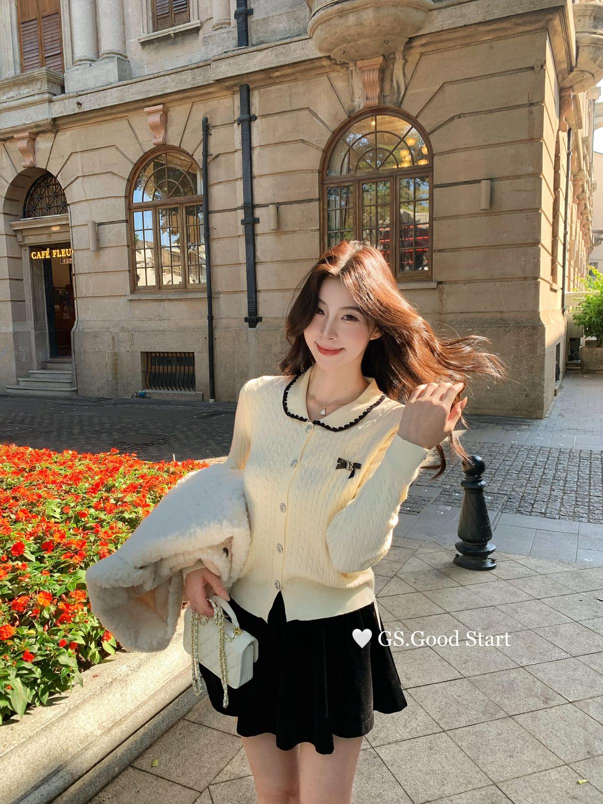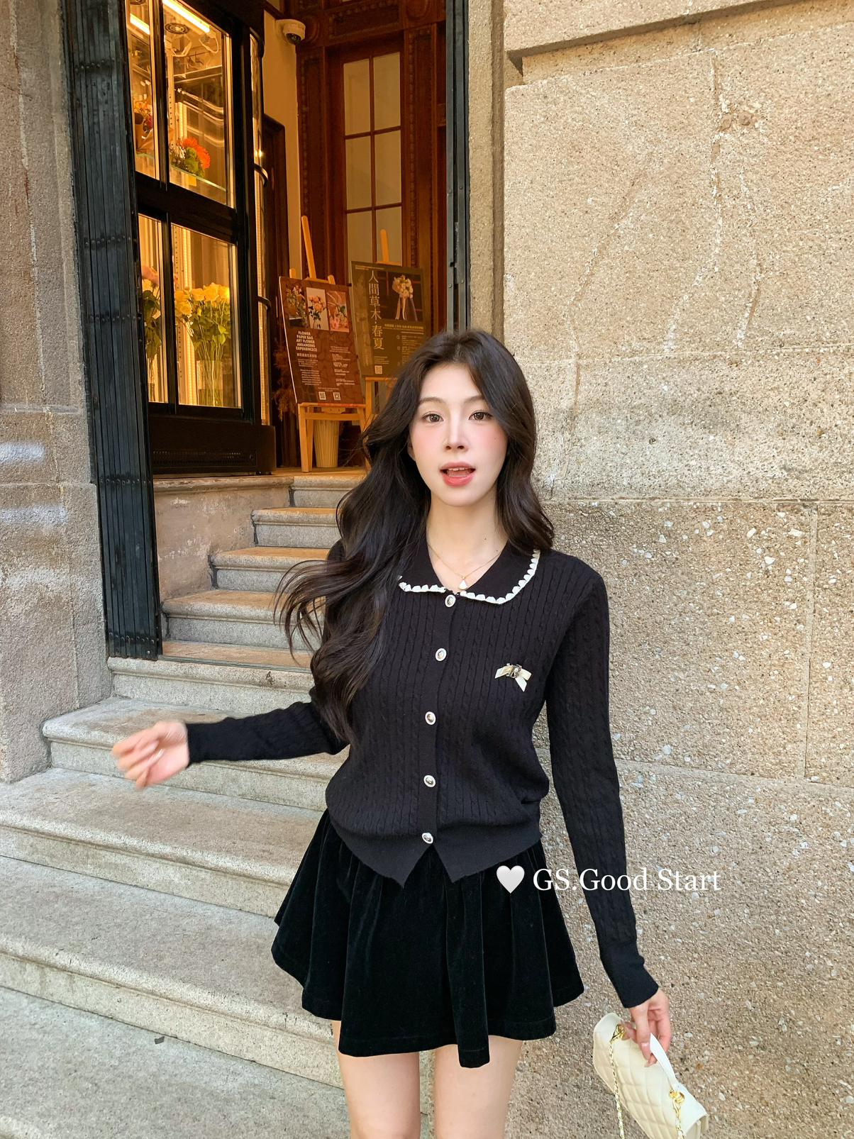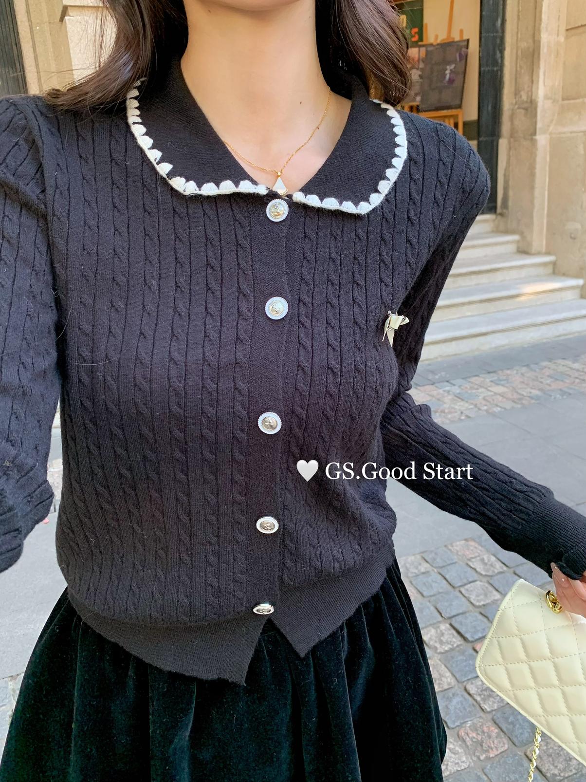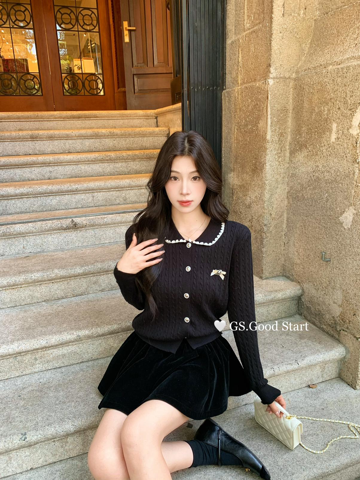 【C8009】香系乖乖千金~三色主推!閉眼入!冬法式氣質復古蝴蝶結針織小衫(配可拆卸別針)