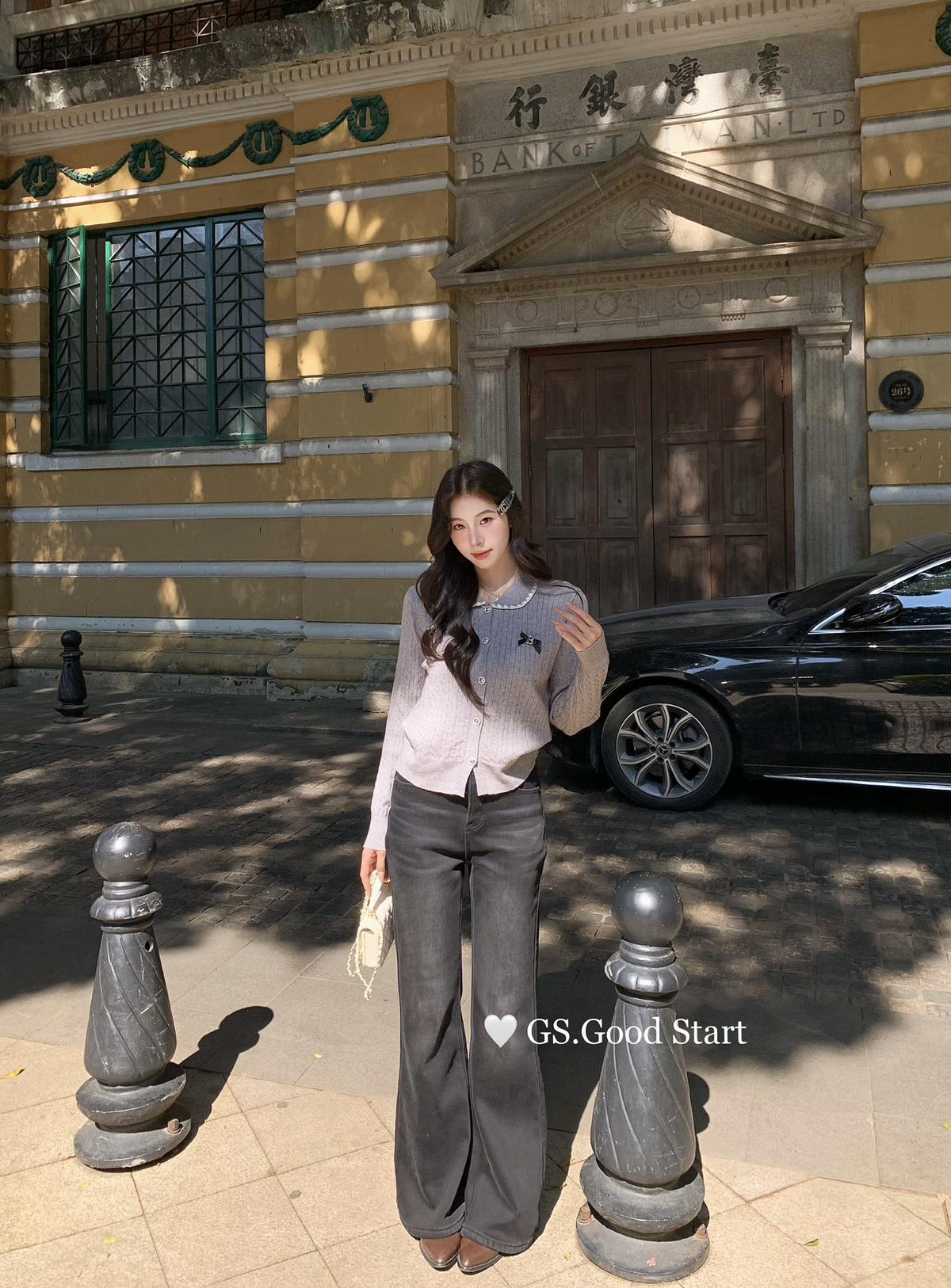 【C7997】韓版高腰貓須磨白雙袋設計微喇顯瘦加絨磨毛牛仔褲